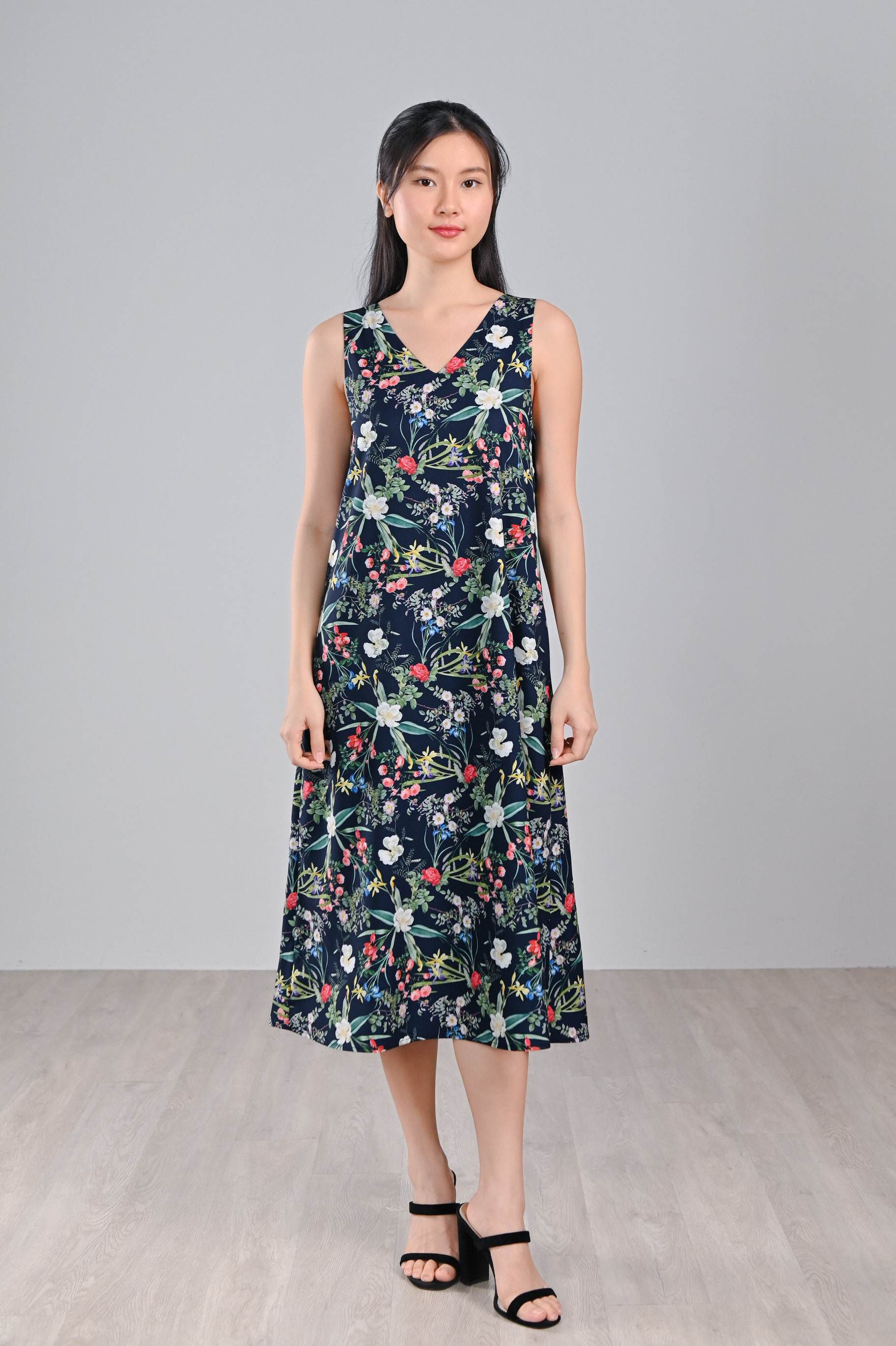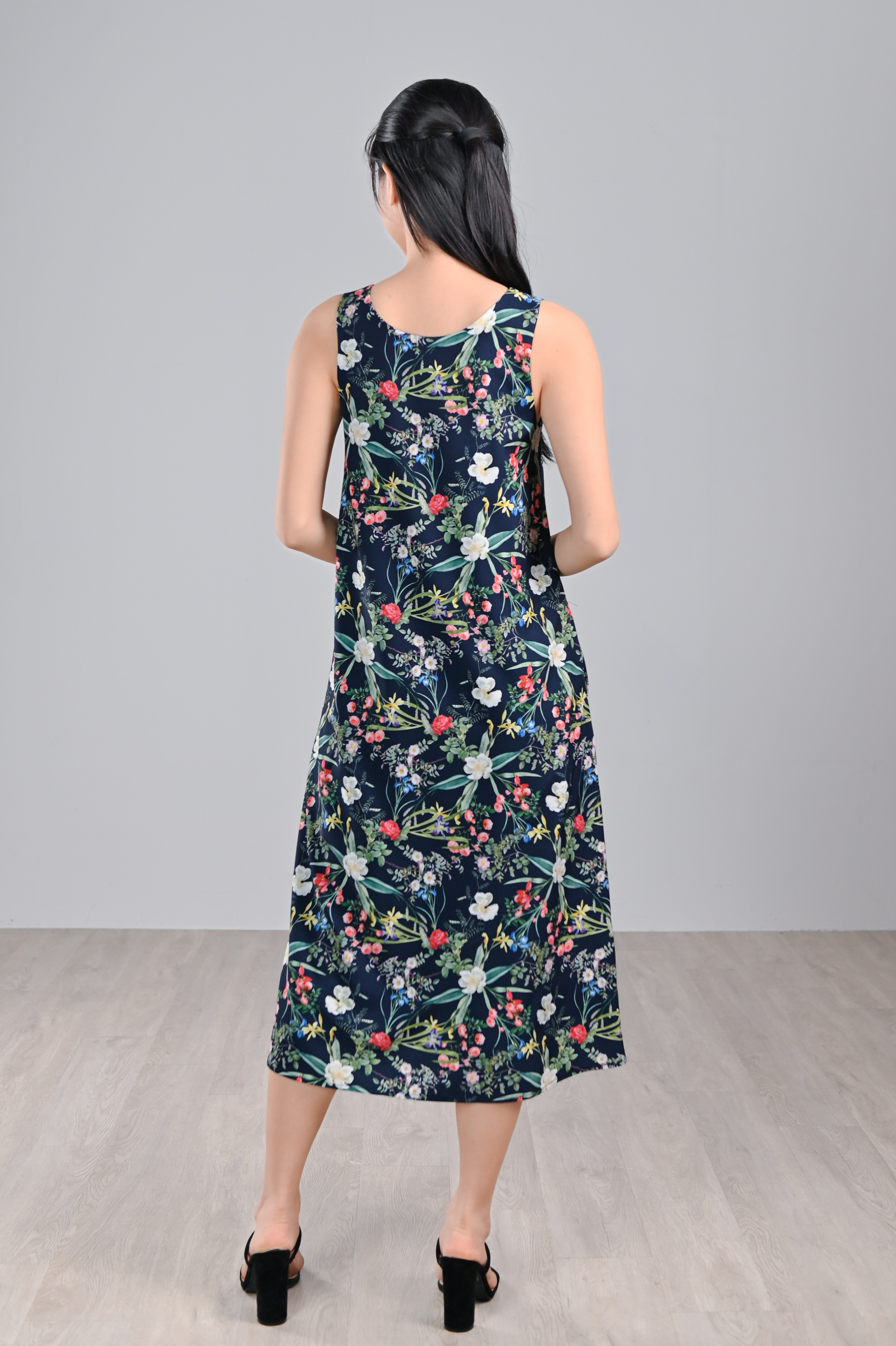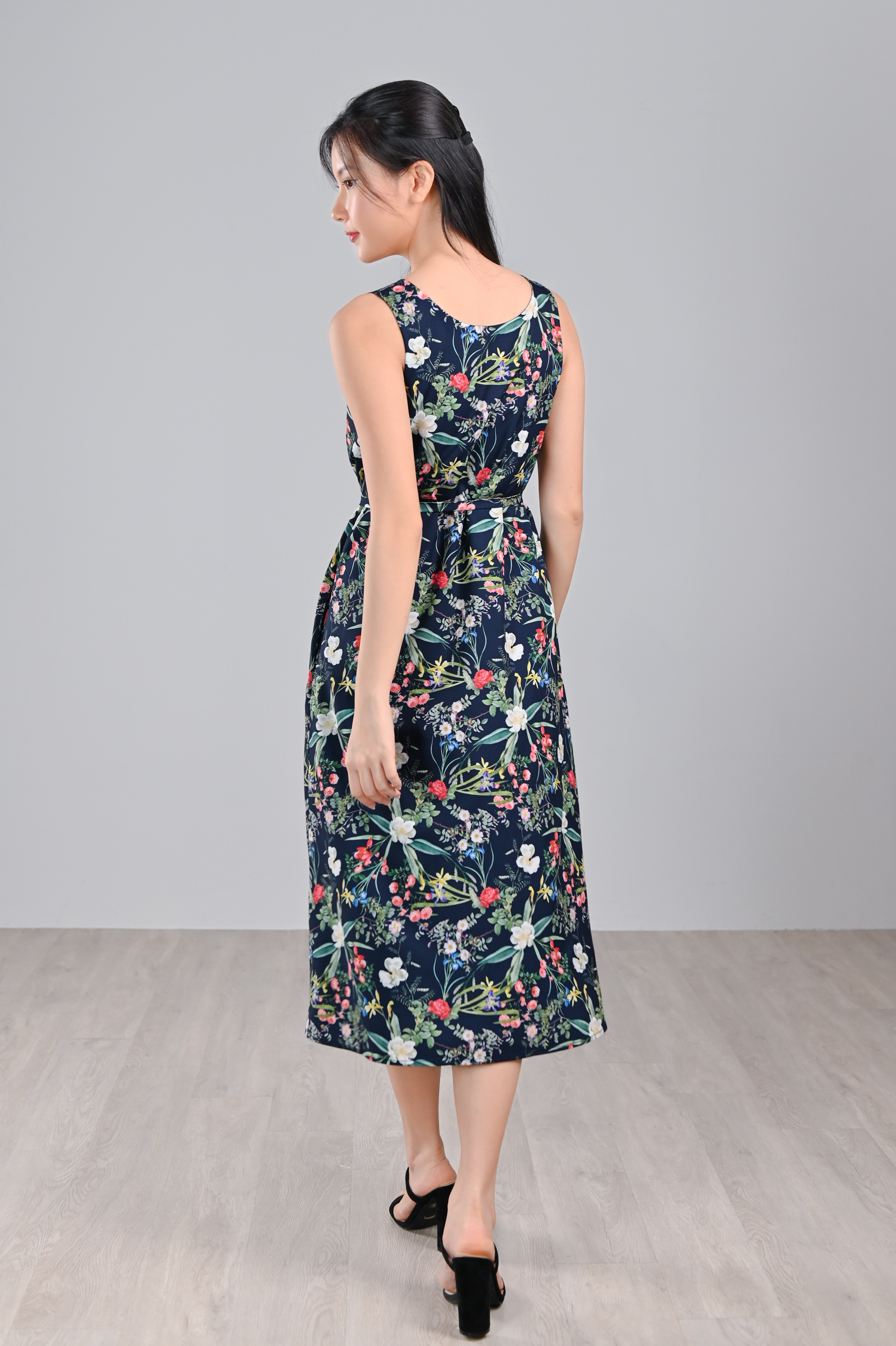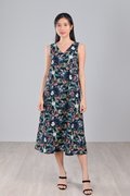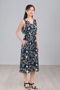NAVY LUSH FLORALS TWO-WAY MIDI DRESS