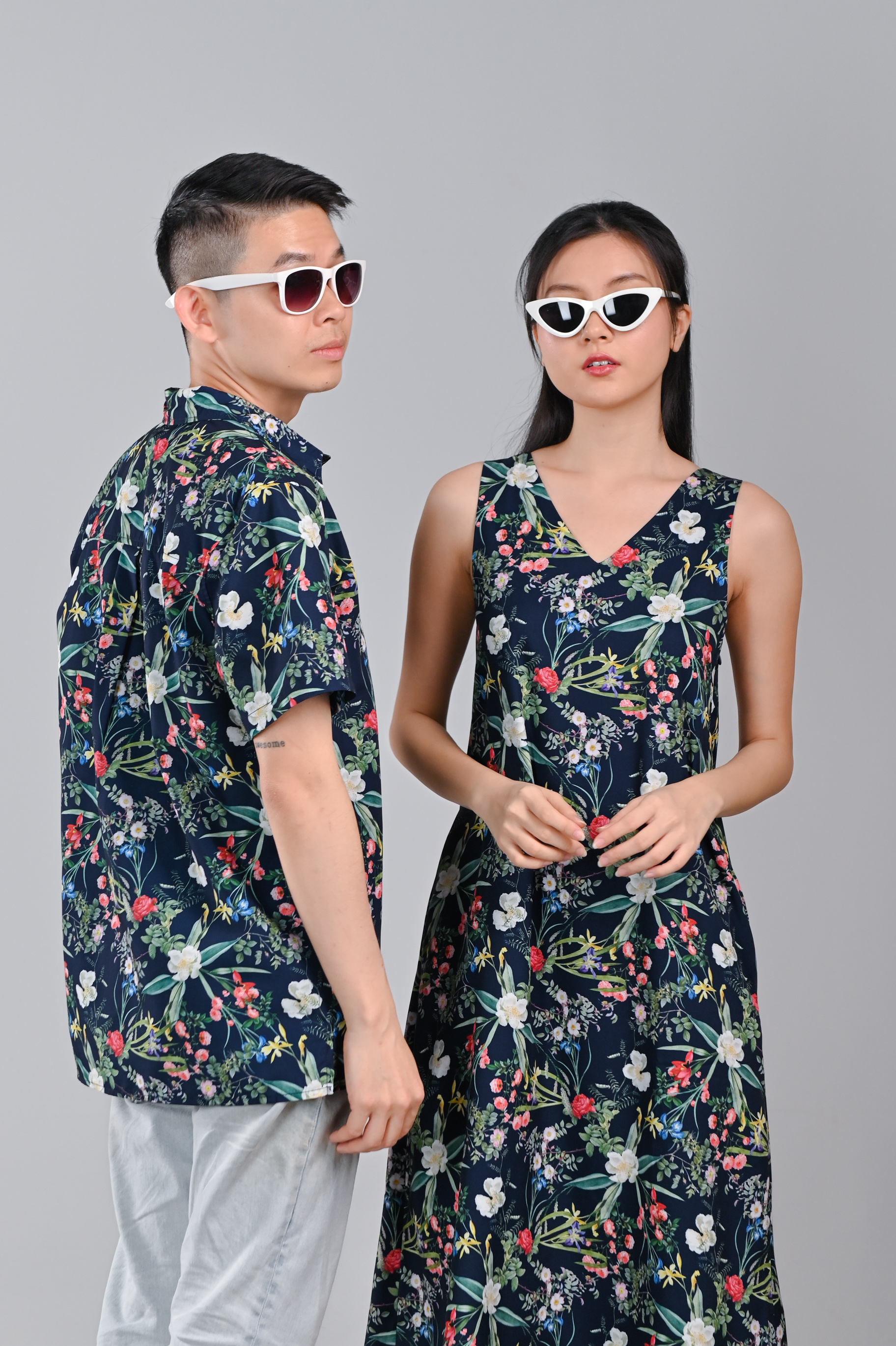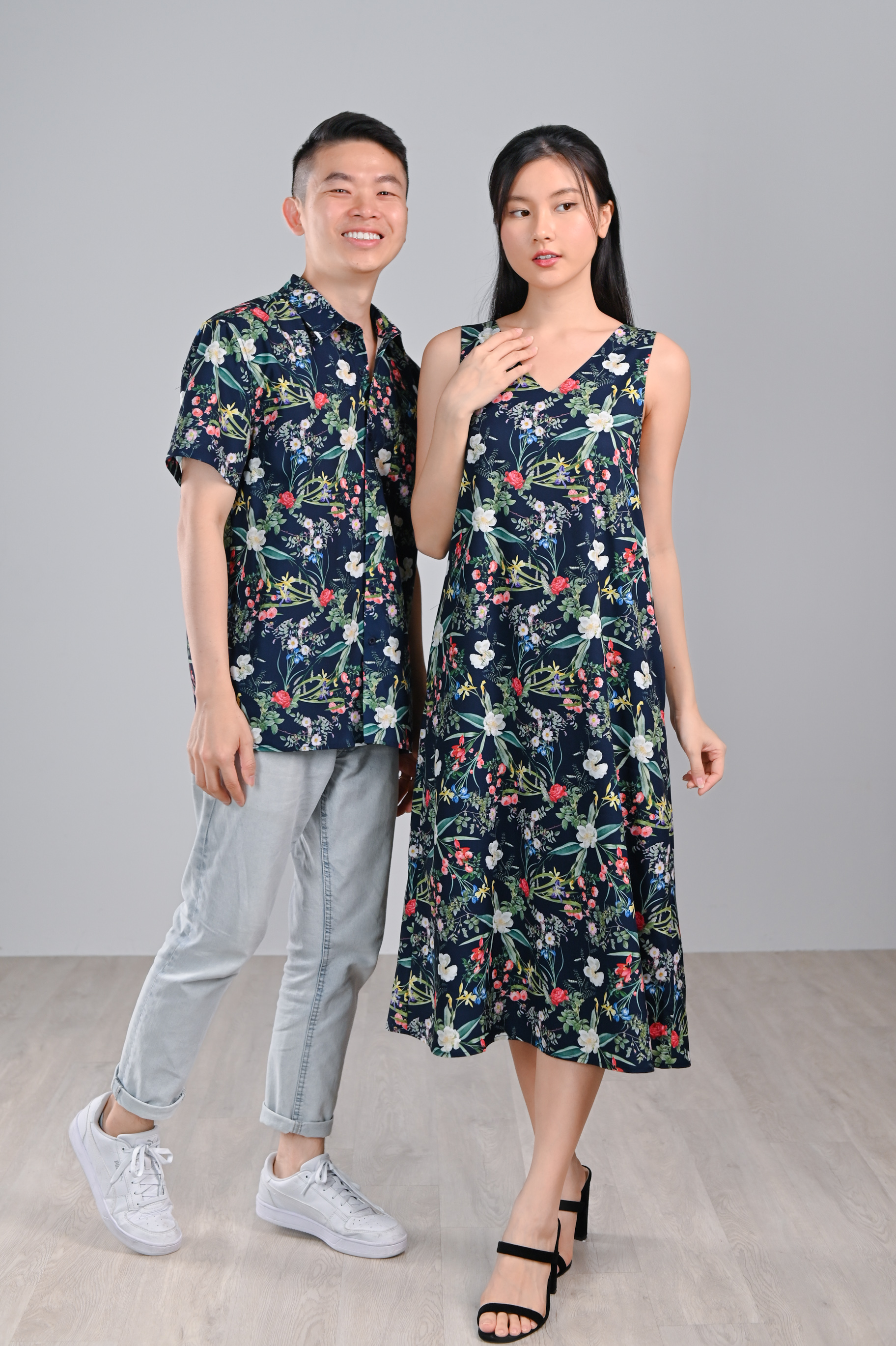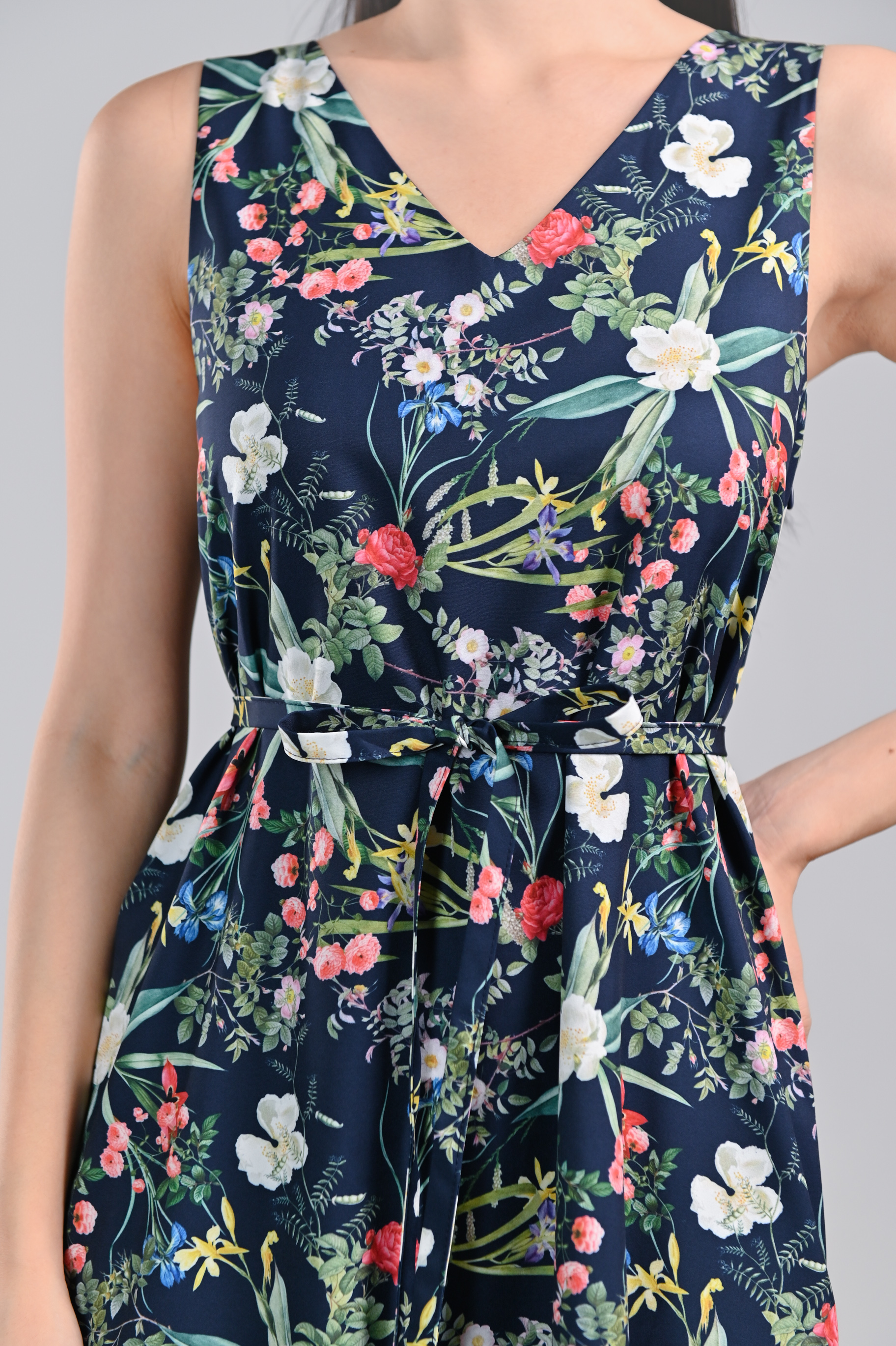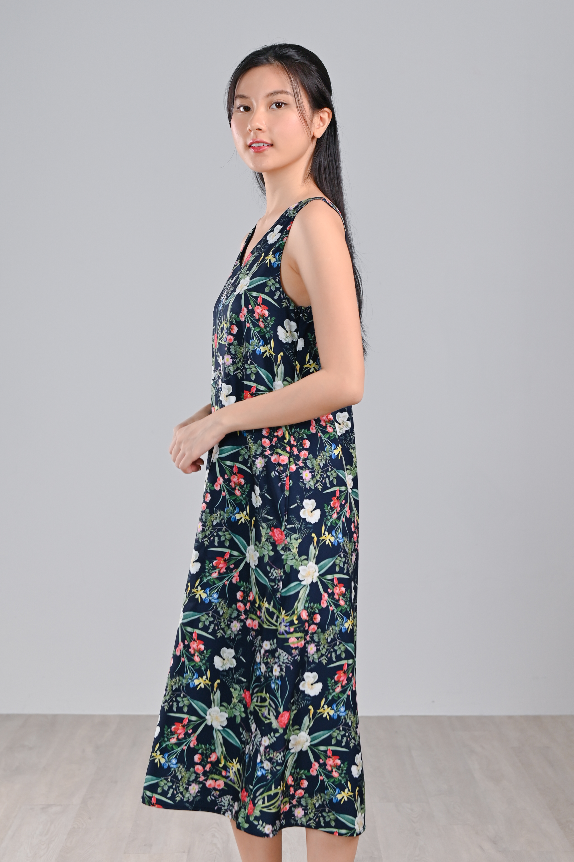 NAVY LUSH FLORALS TWO-WAY MIDI DRESS