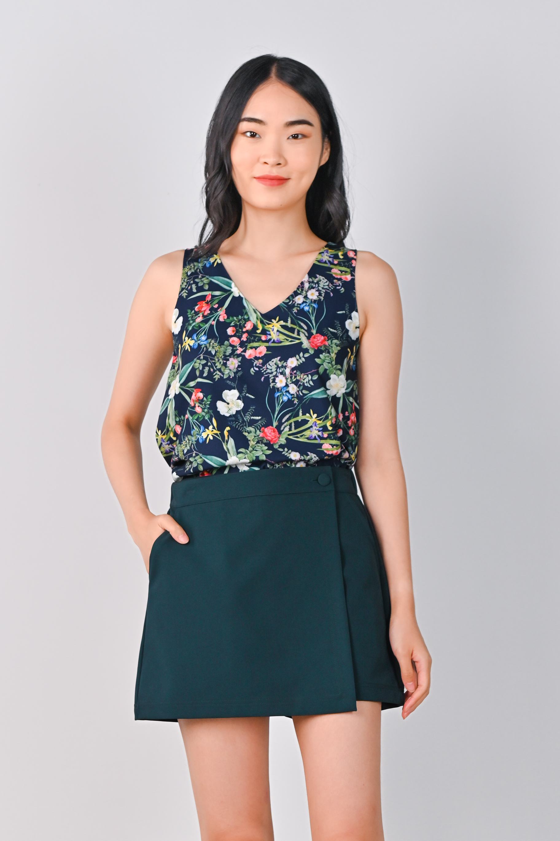 NAVY LUSH FLORALS TWO-WAY TOP