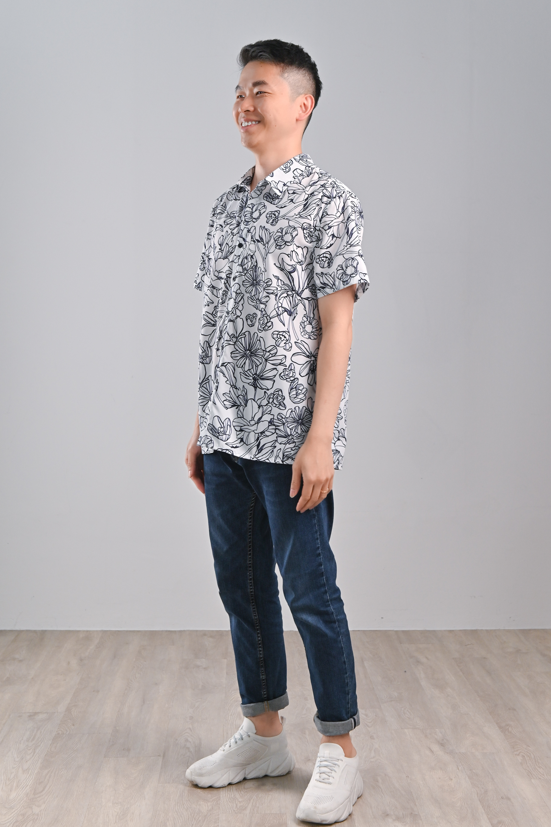 NAVY SKETCHED FLORALS MEN’S SHIRT