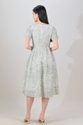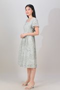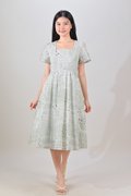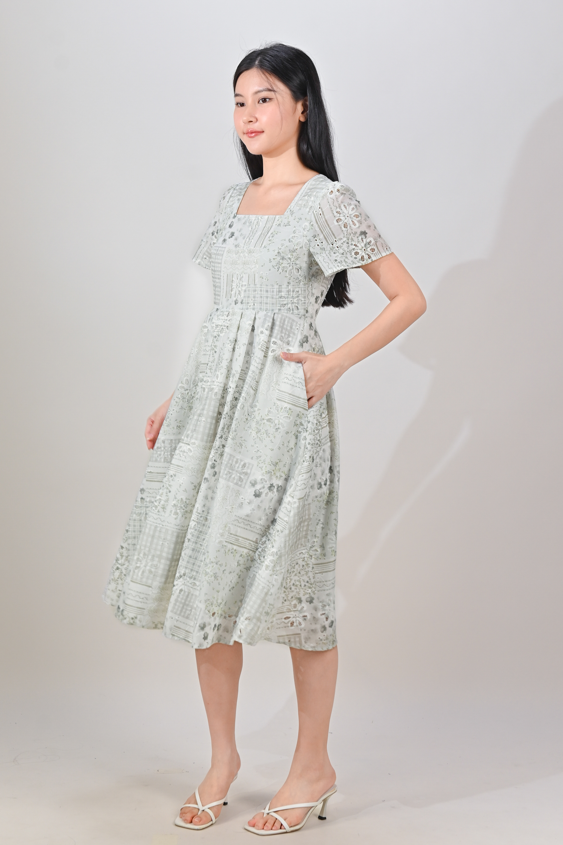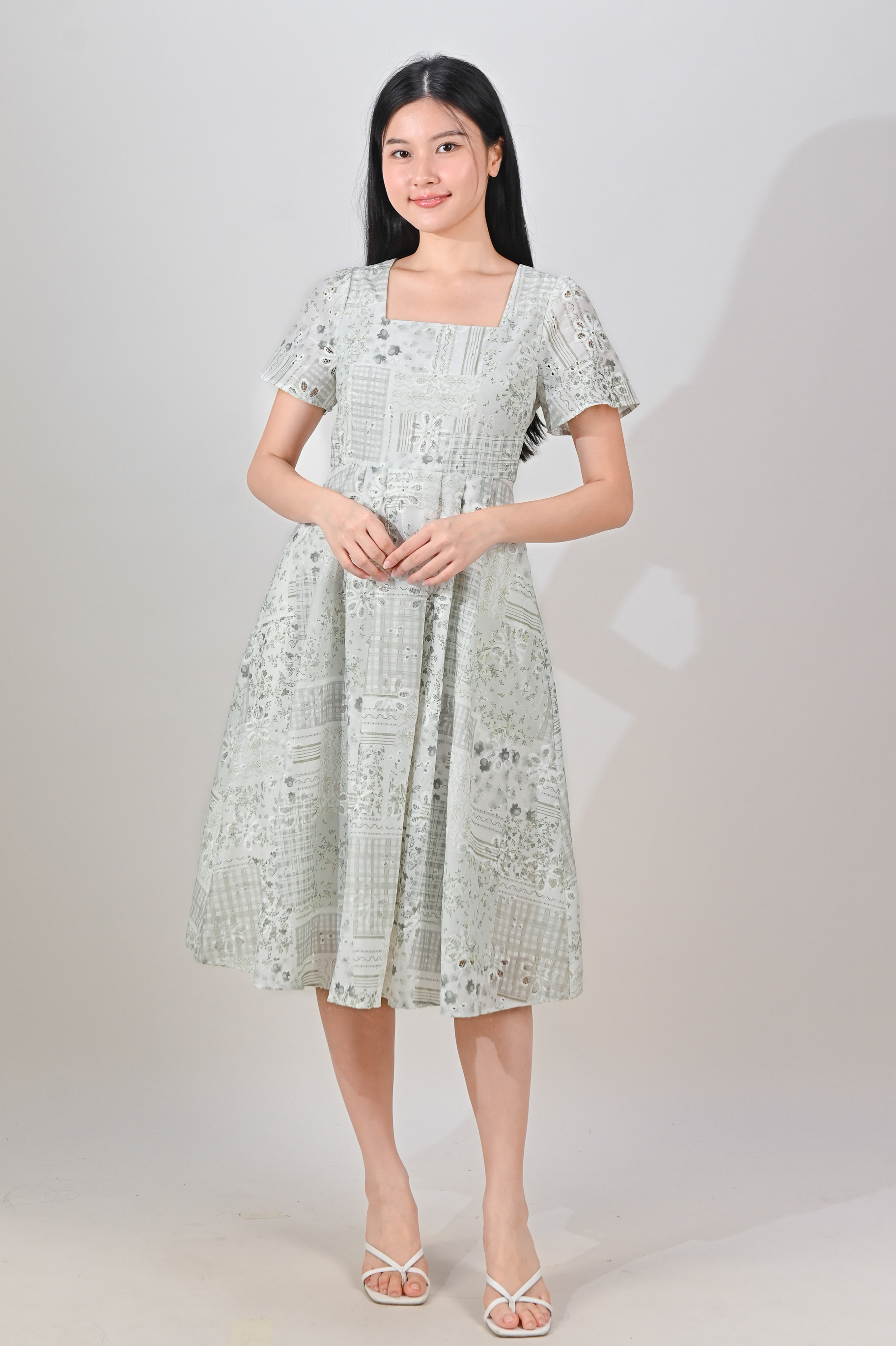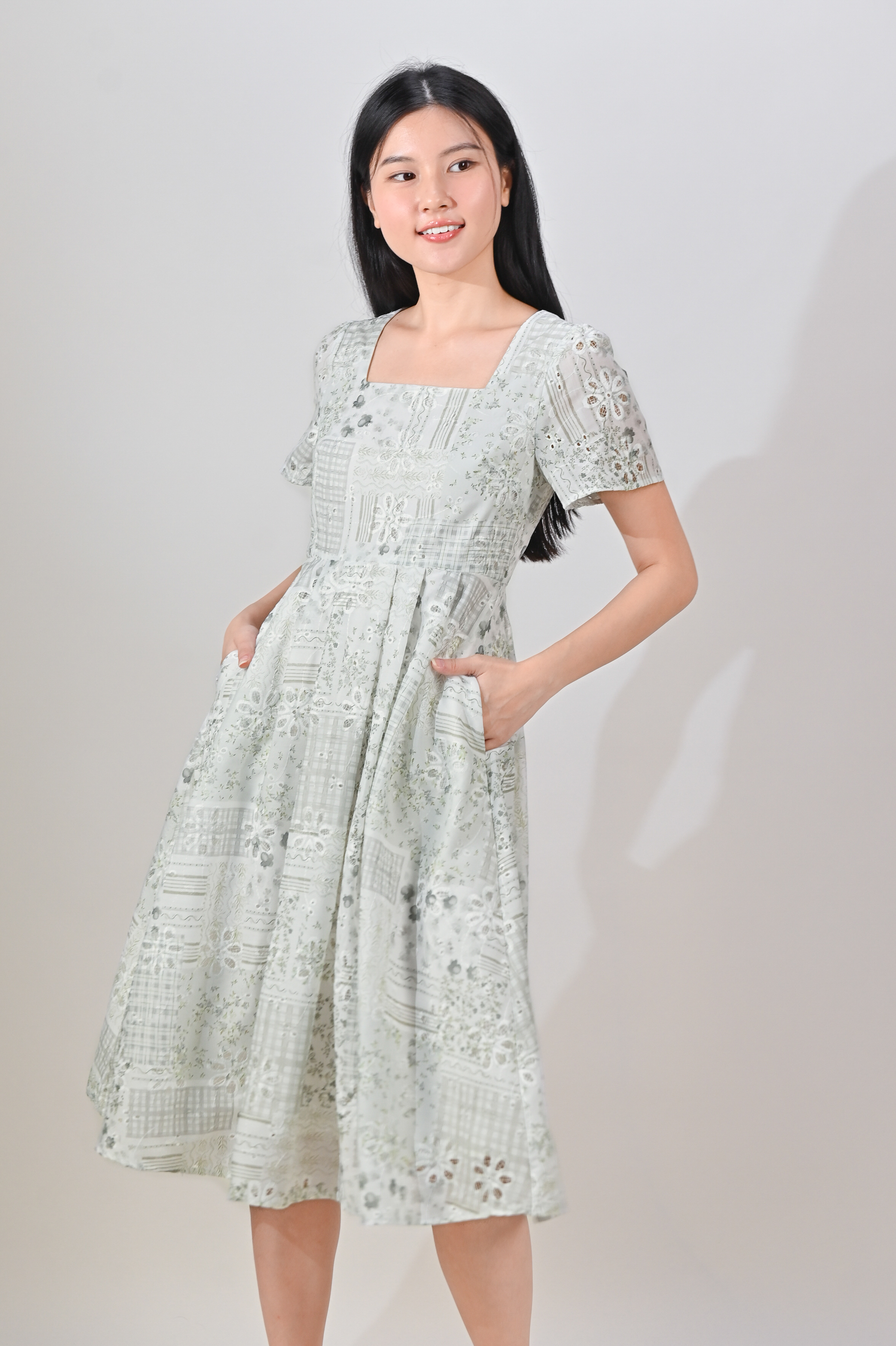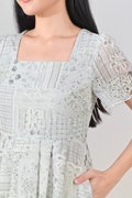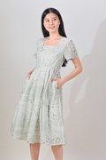 NERIDA EYELET SQUARE-NECK DRESS IN GREEN PATCHWORK