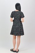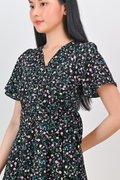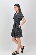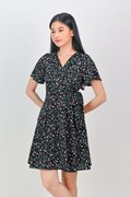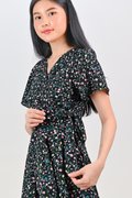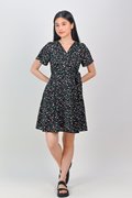 NERINE BLACK FLORAL FAUX-WRAP DRESS