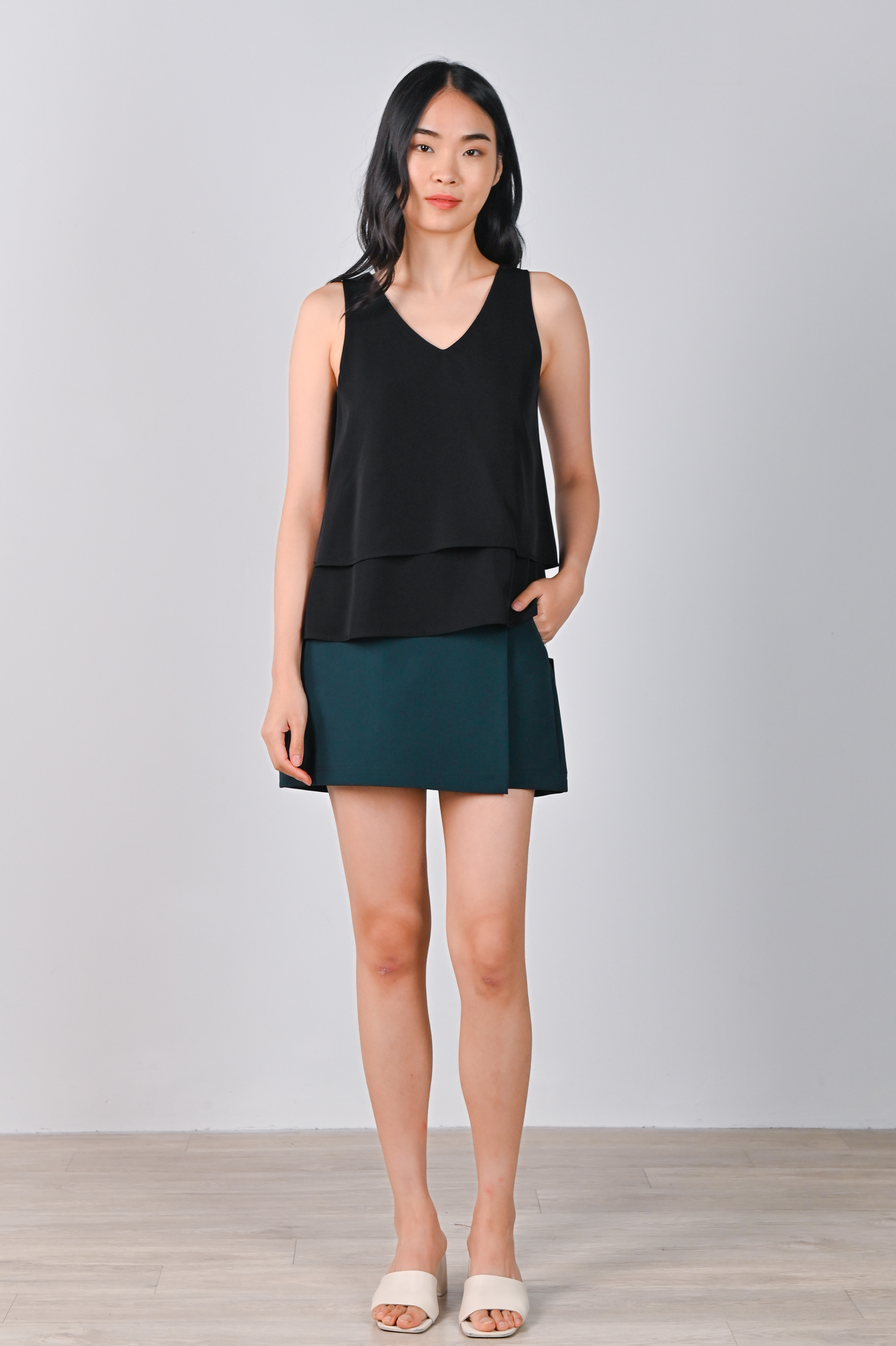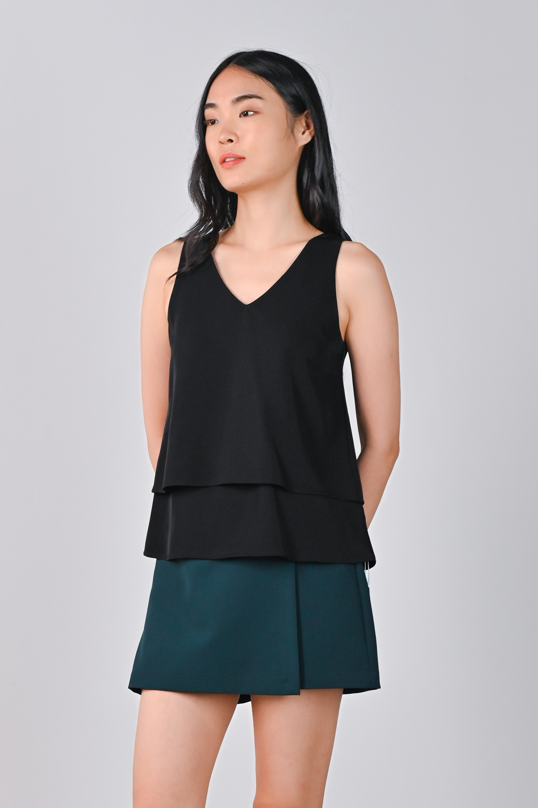 NICOLE SLEEVELESS LAYERED TOP IN BLACK