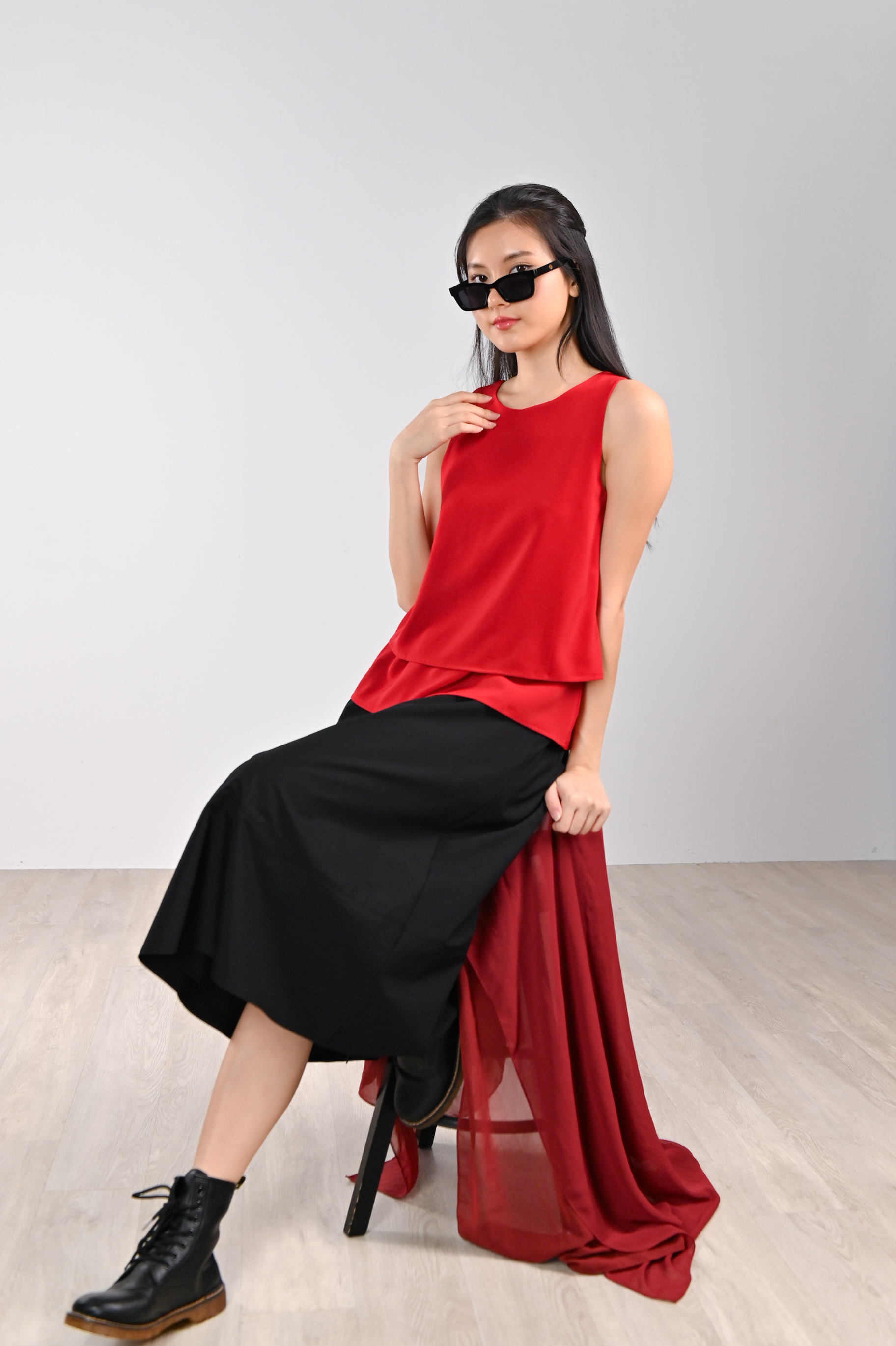 NICOLE SLEEVELESS LAYERED TOP IN RED