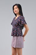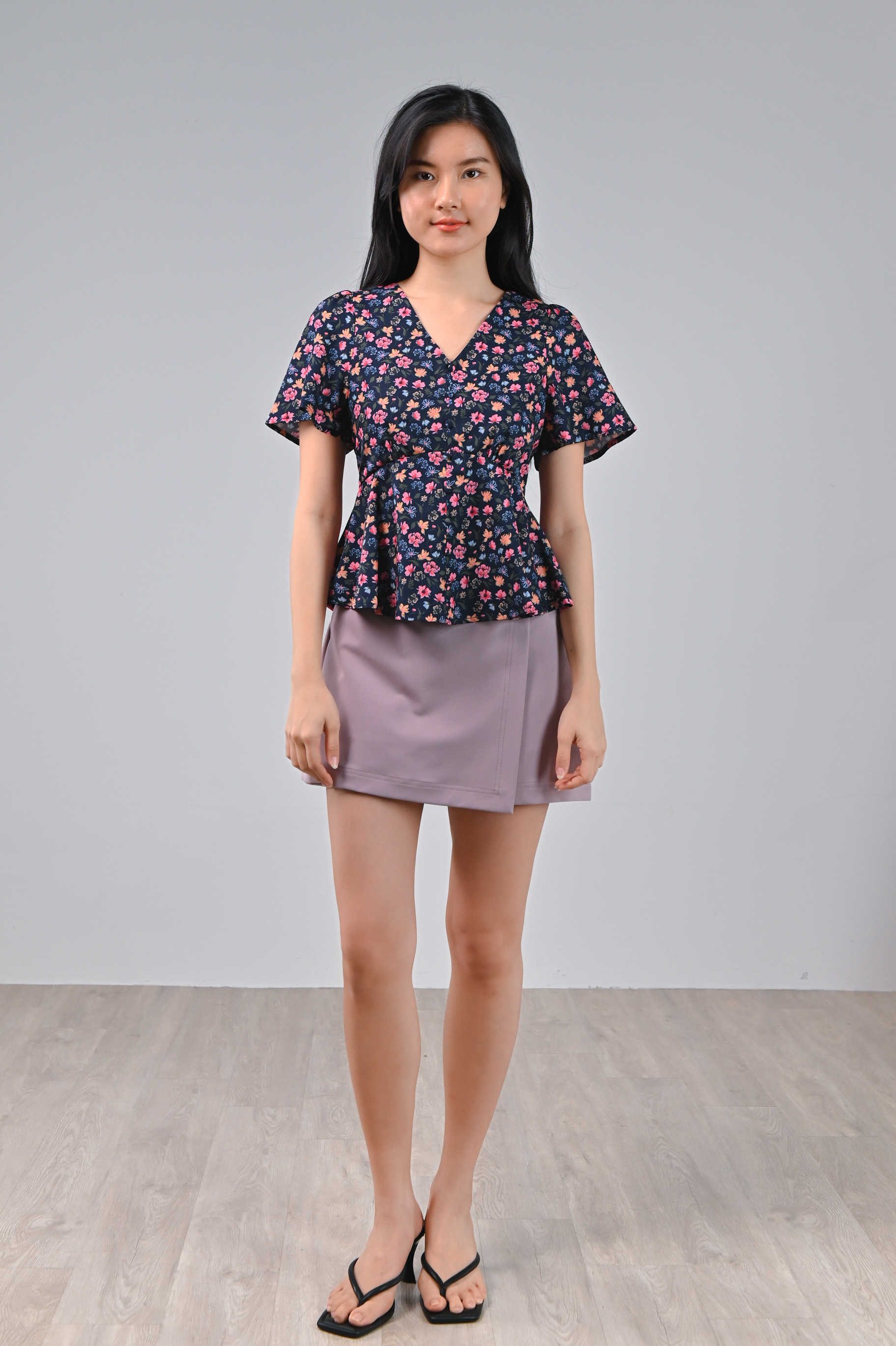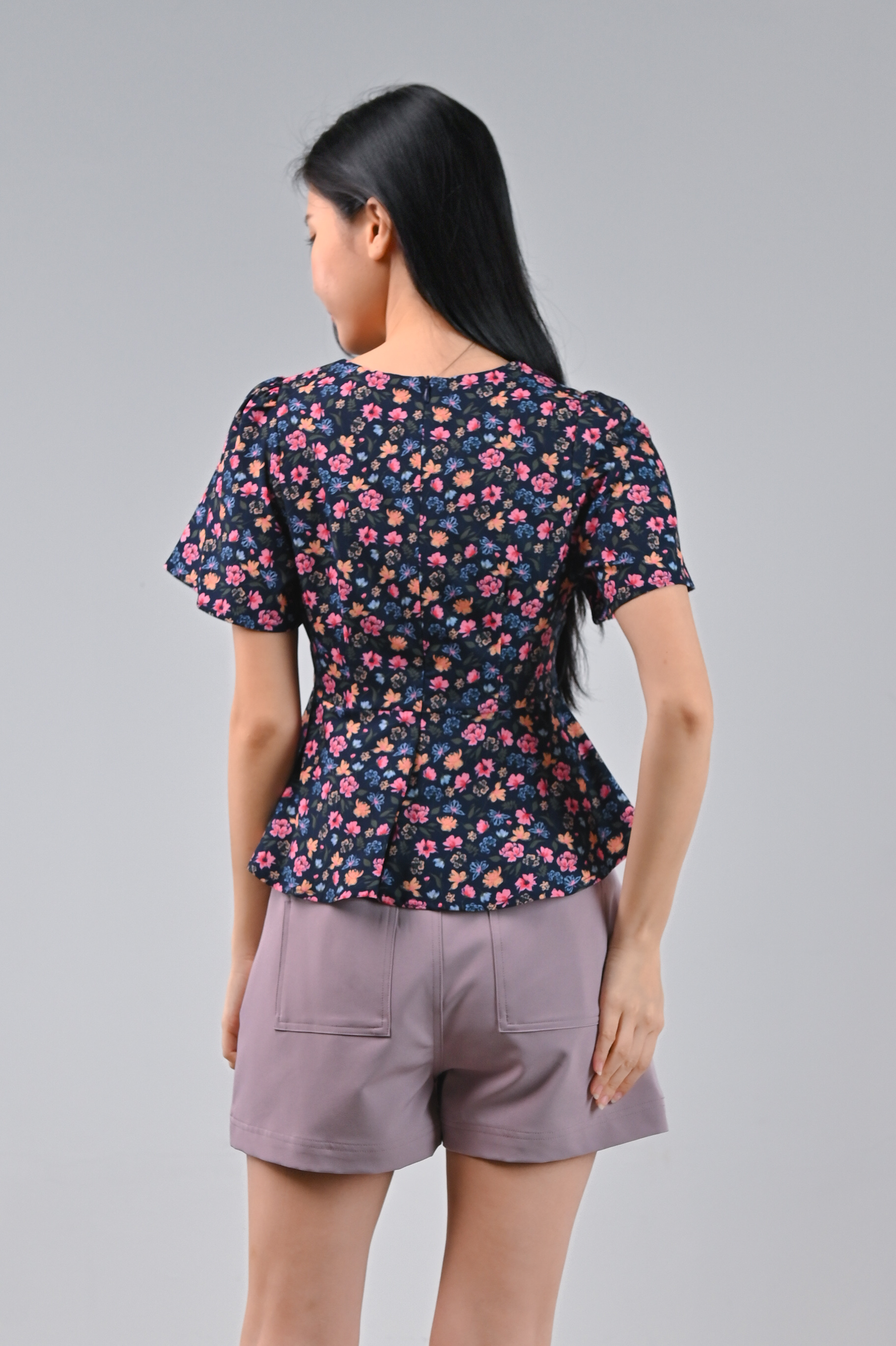 NIGHT GARDEN PEPLUM BUTTON TOP