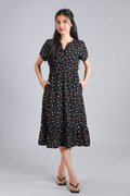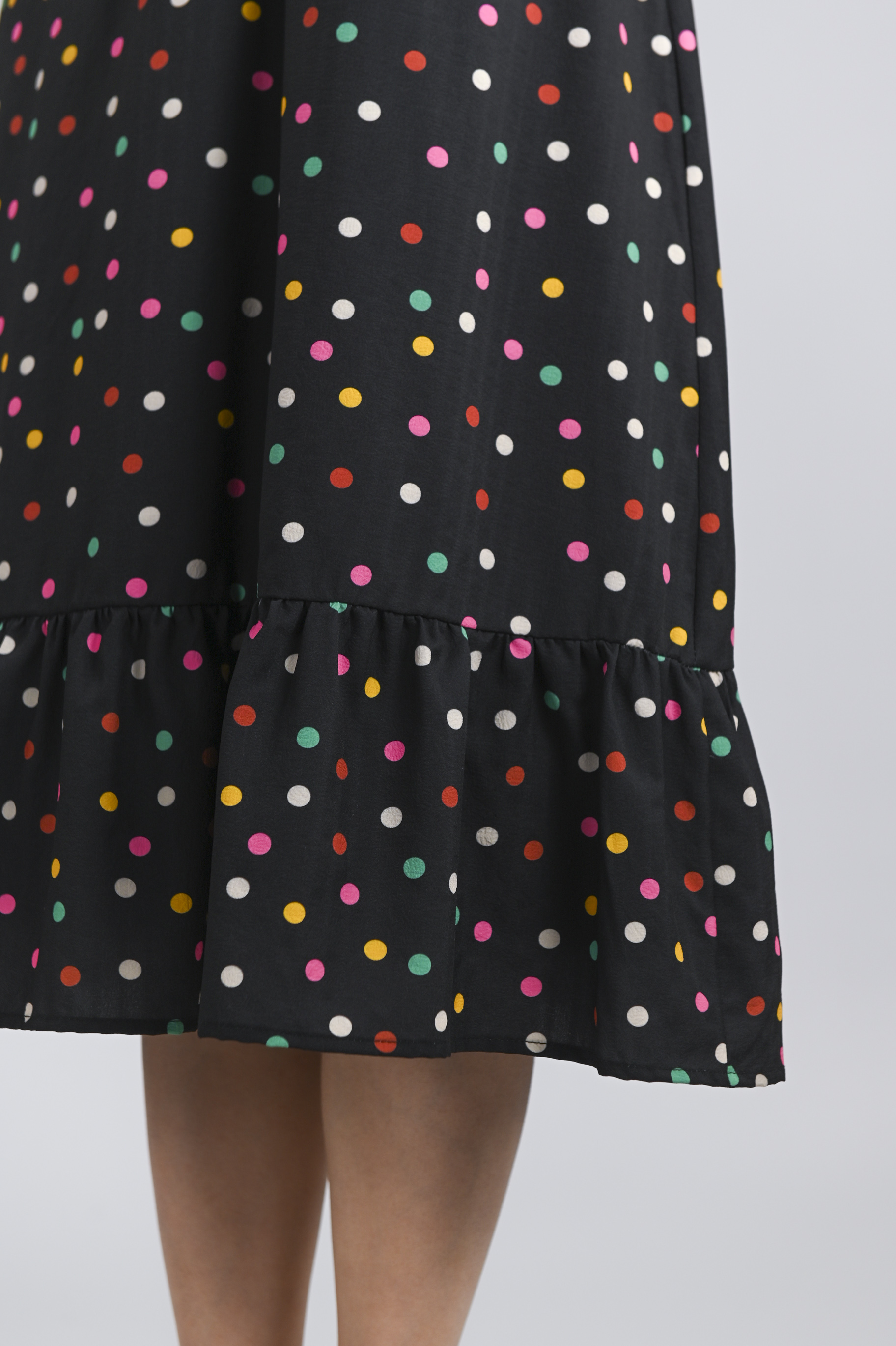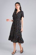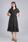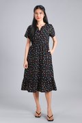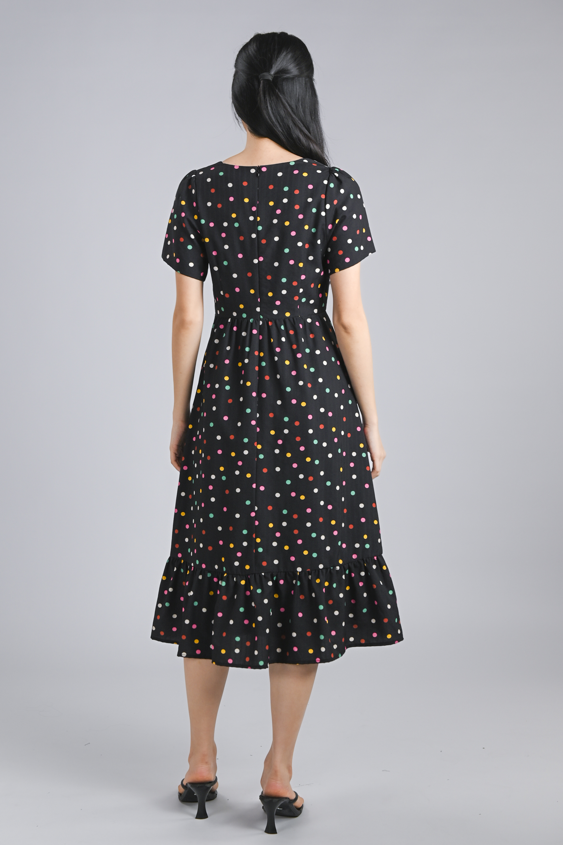NOELLE BLACK COLOURFUL POLKA SLEEVED MIDI DRESS