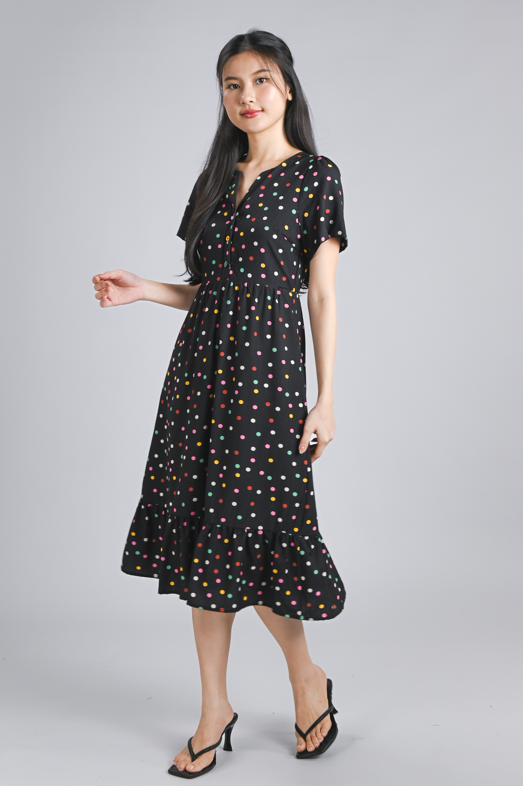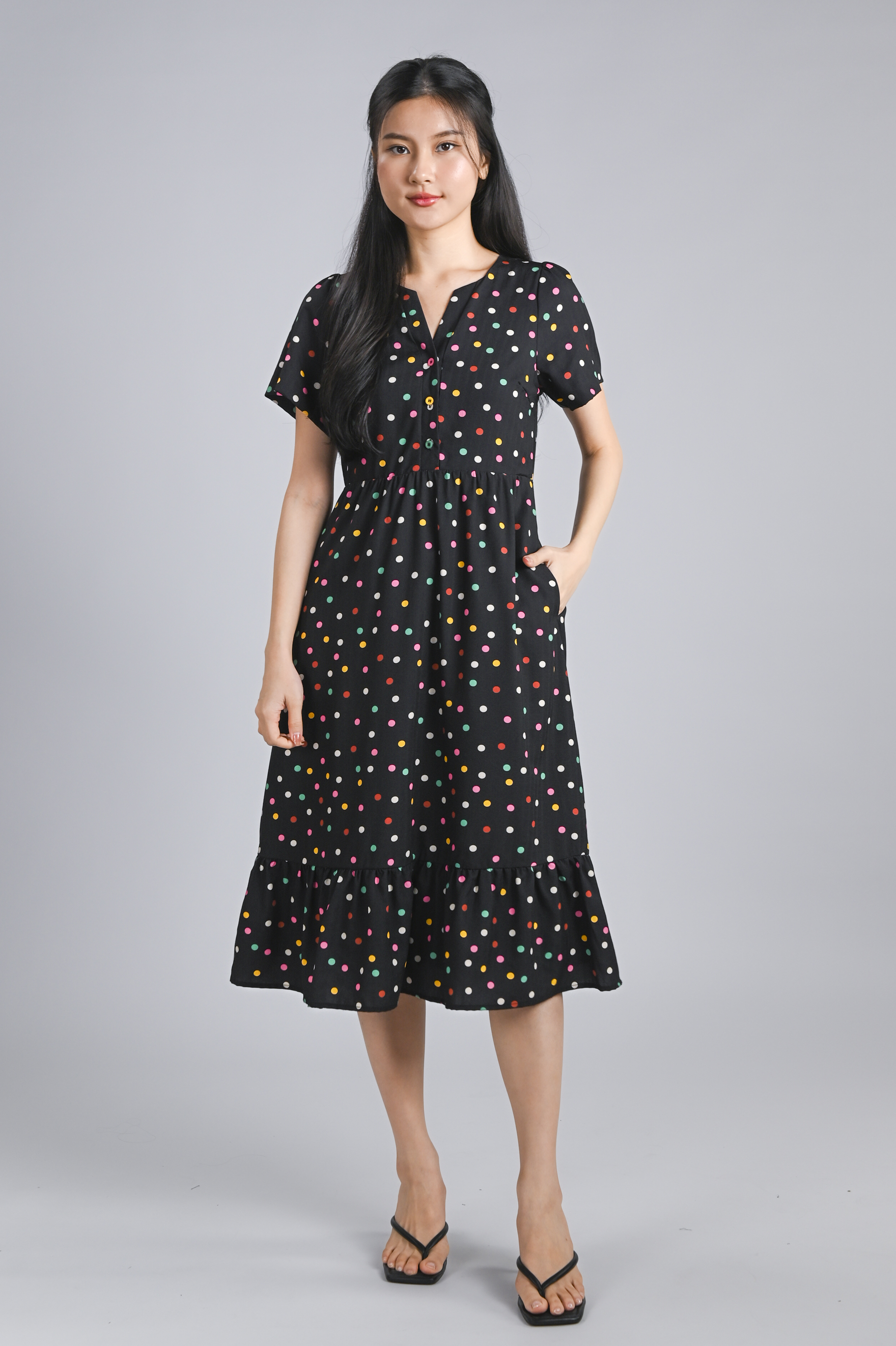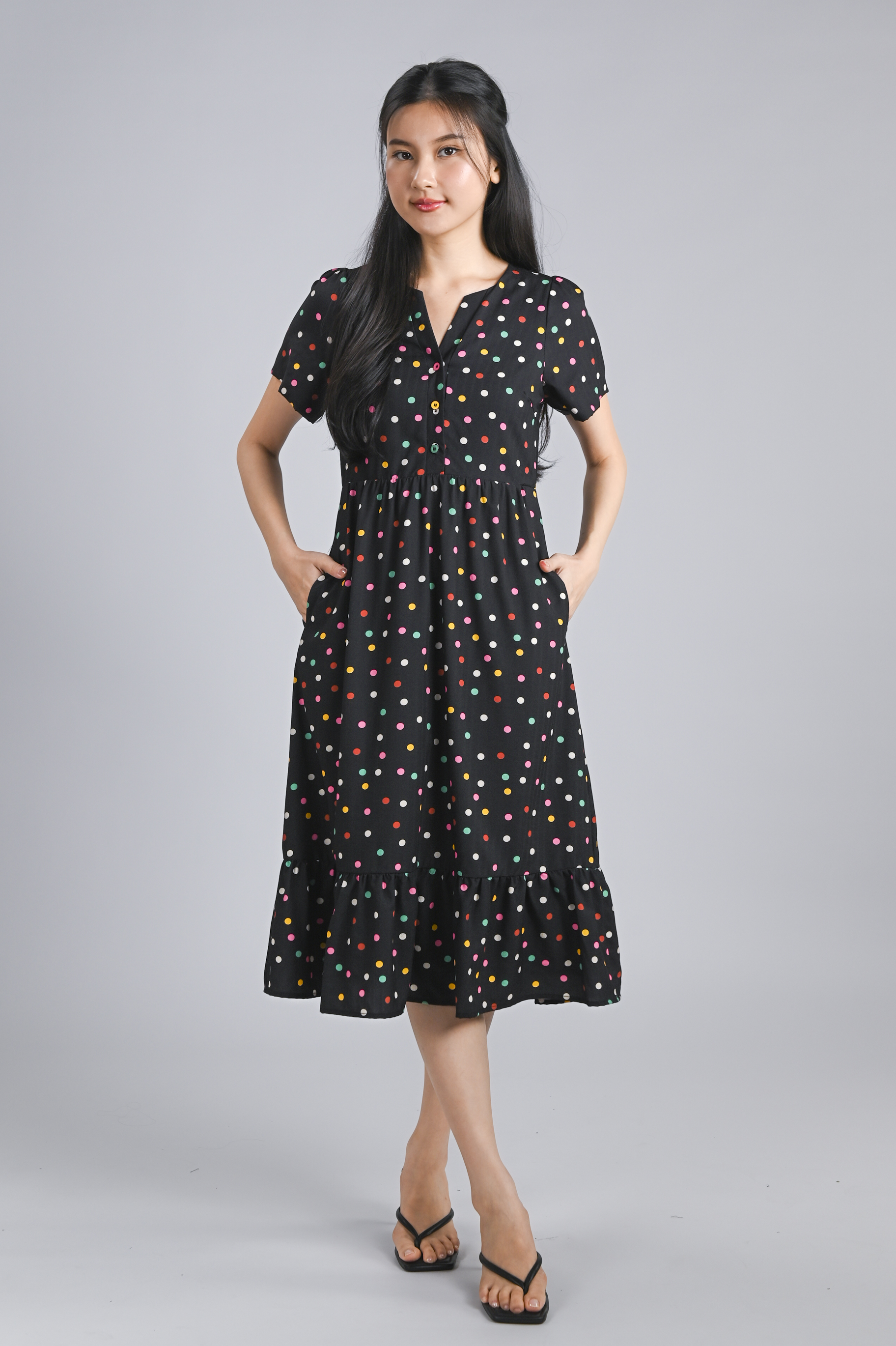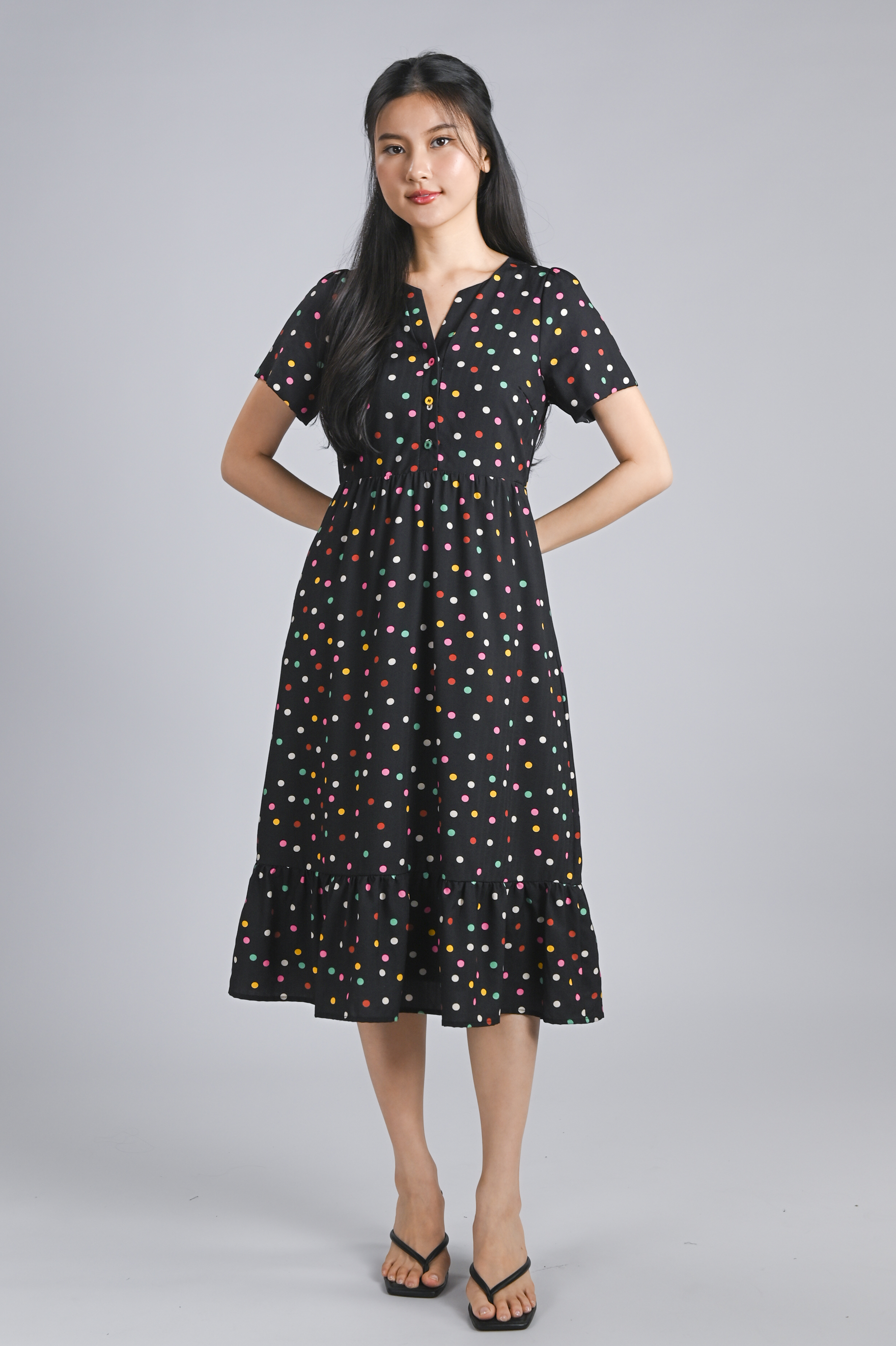 Actual stocks may varyPutting the "pop" in polka dots! 🌈 Our Noelle Polka Dress is here to brighten up your wardrobe with its colourful confetti polka print 🎉