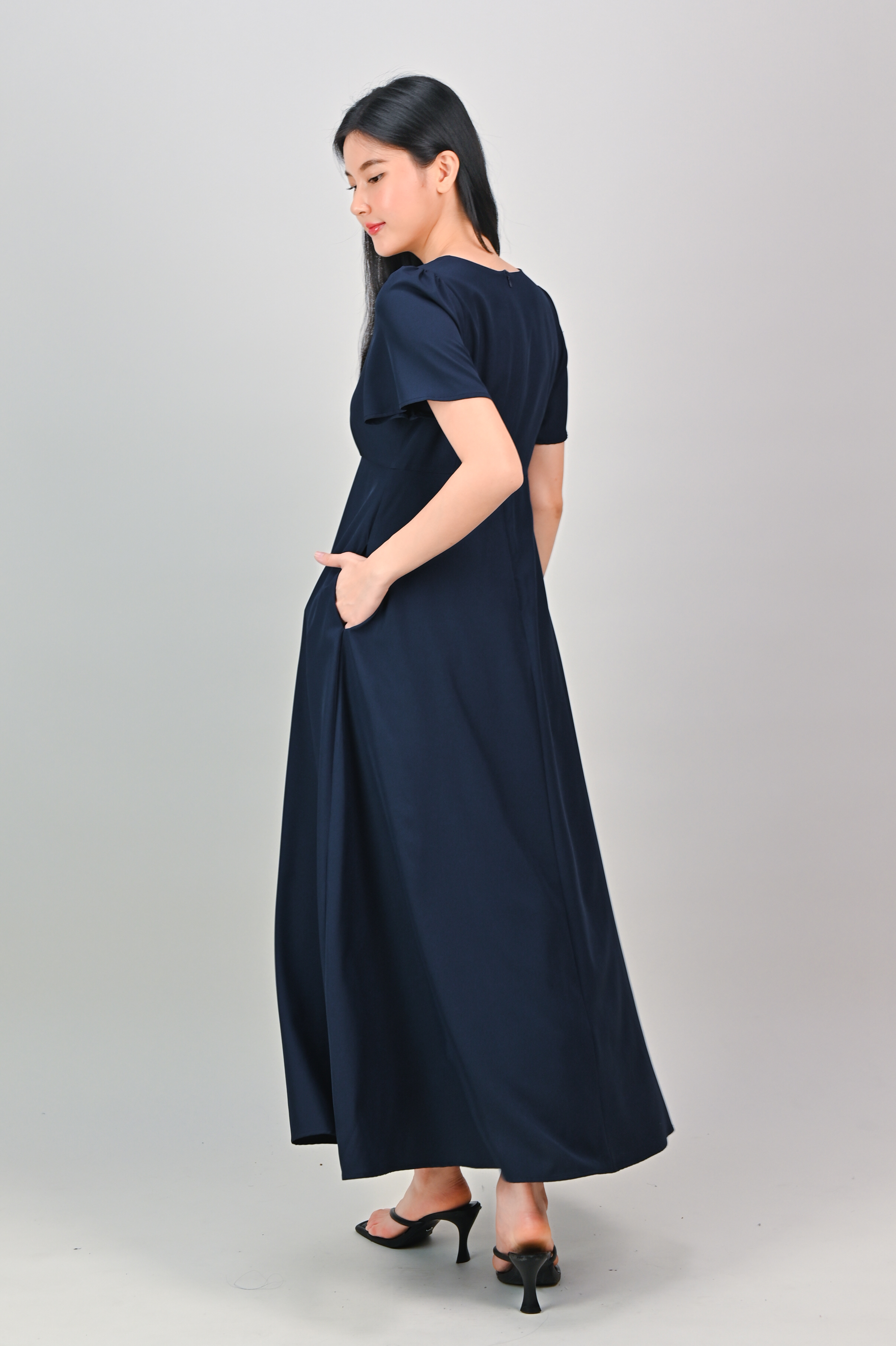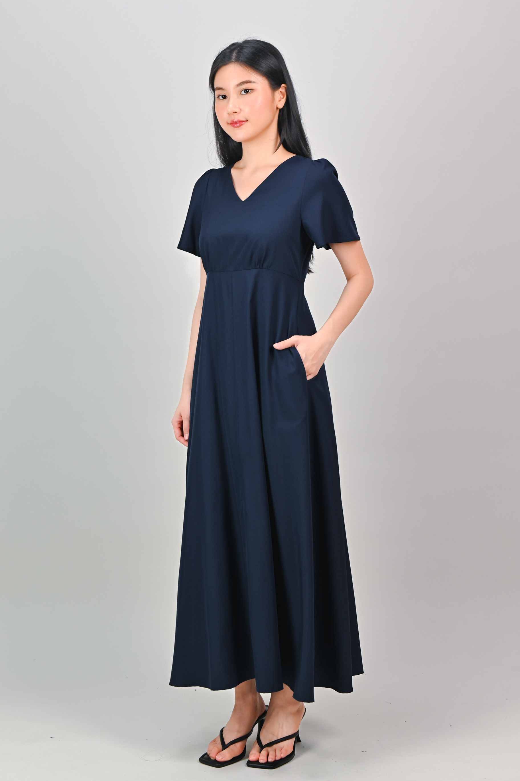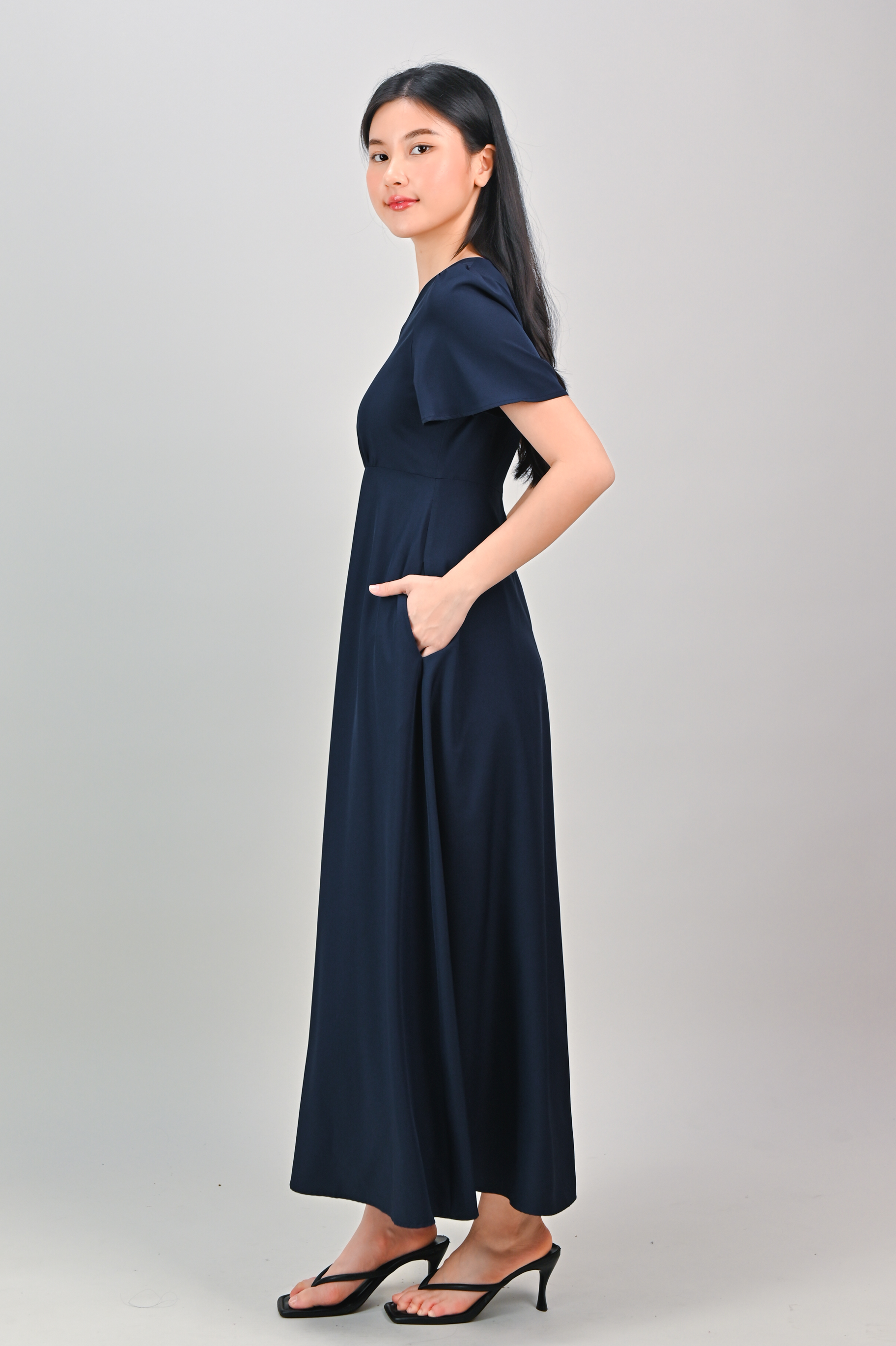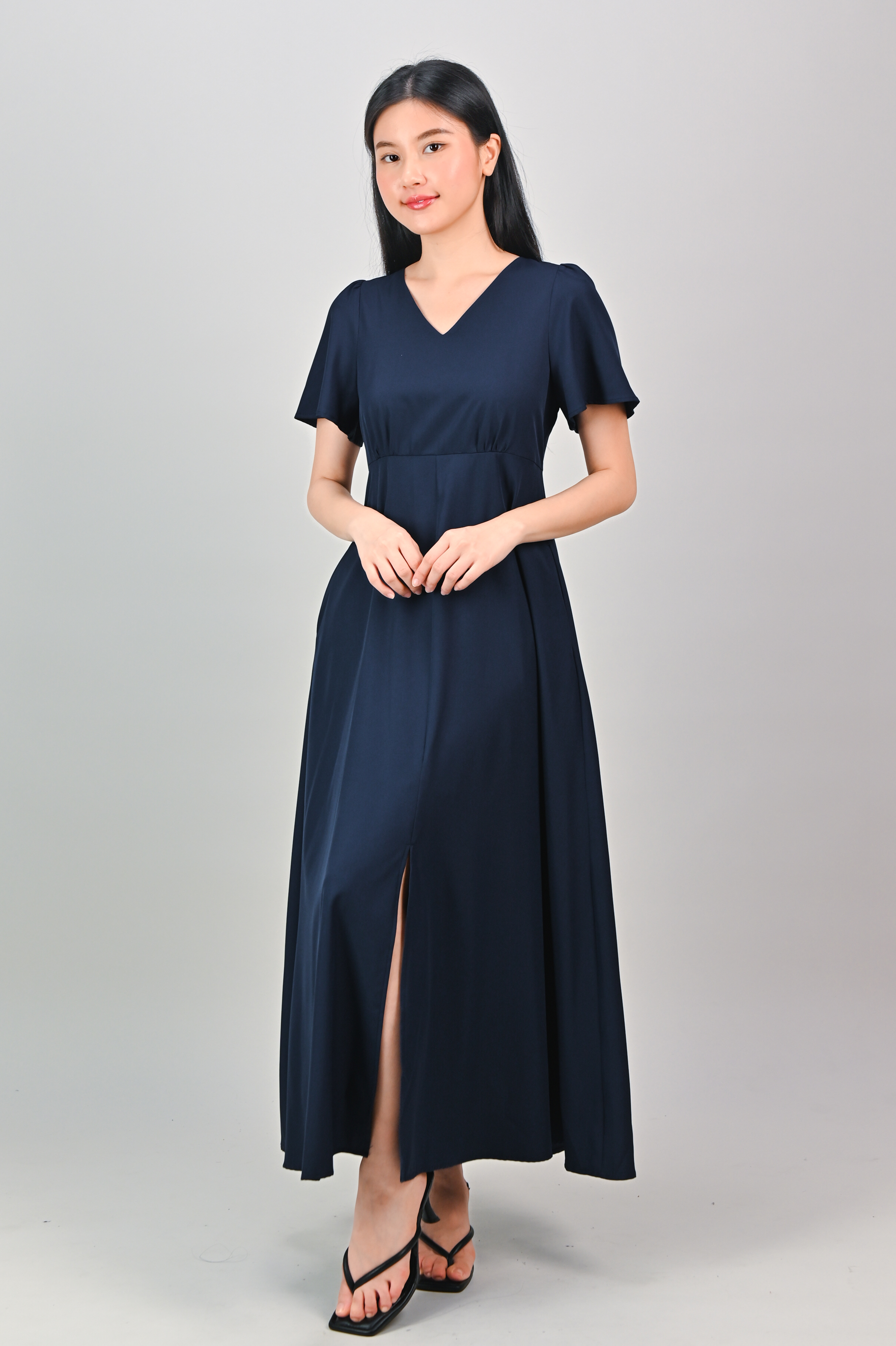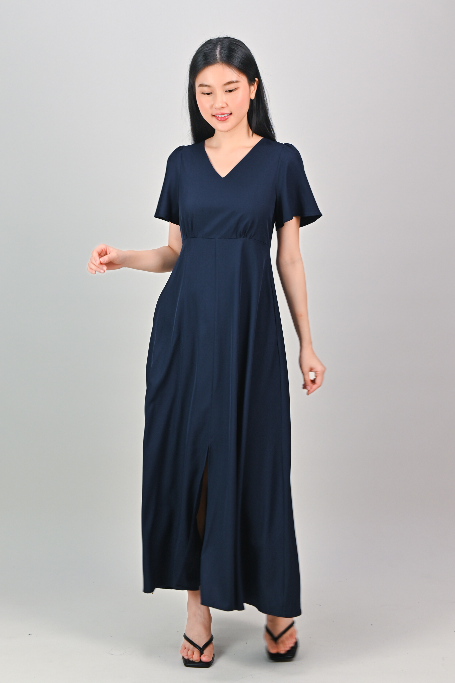 OONA CENTRE-SLIT MAXI DRESS IN NAVY