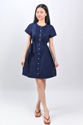OPHYRA PINTUCK BABYDOLL DRESS IN NAVY
