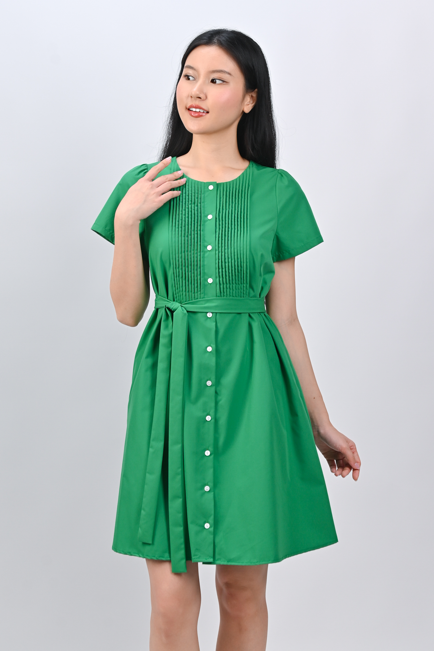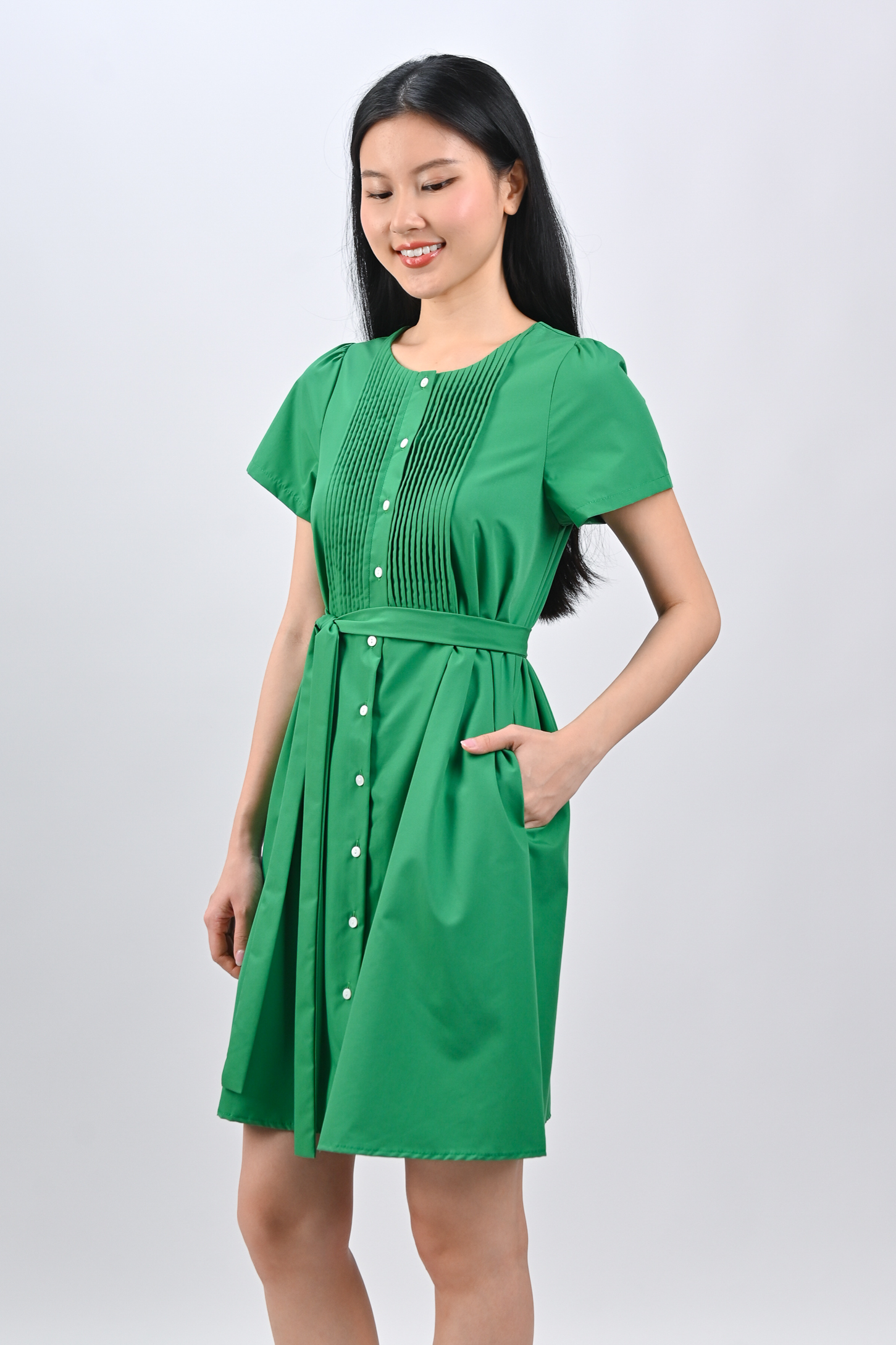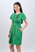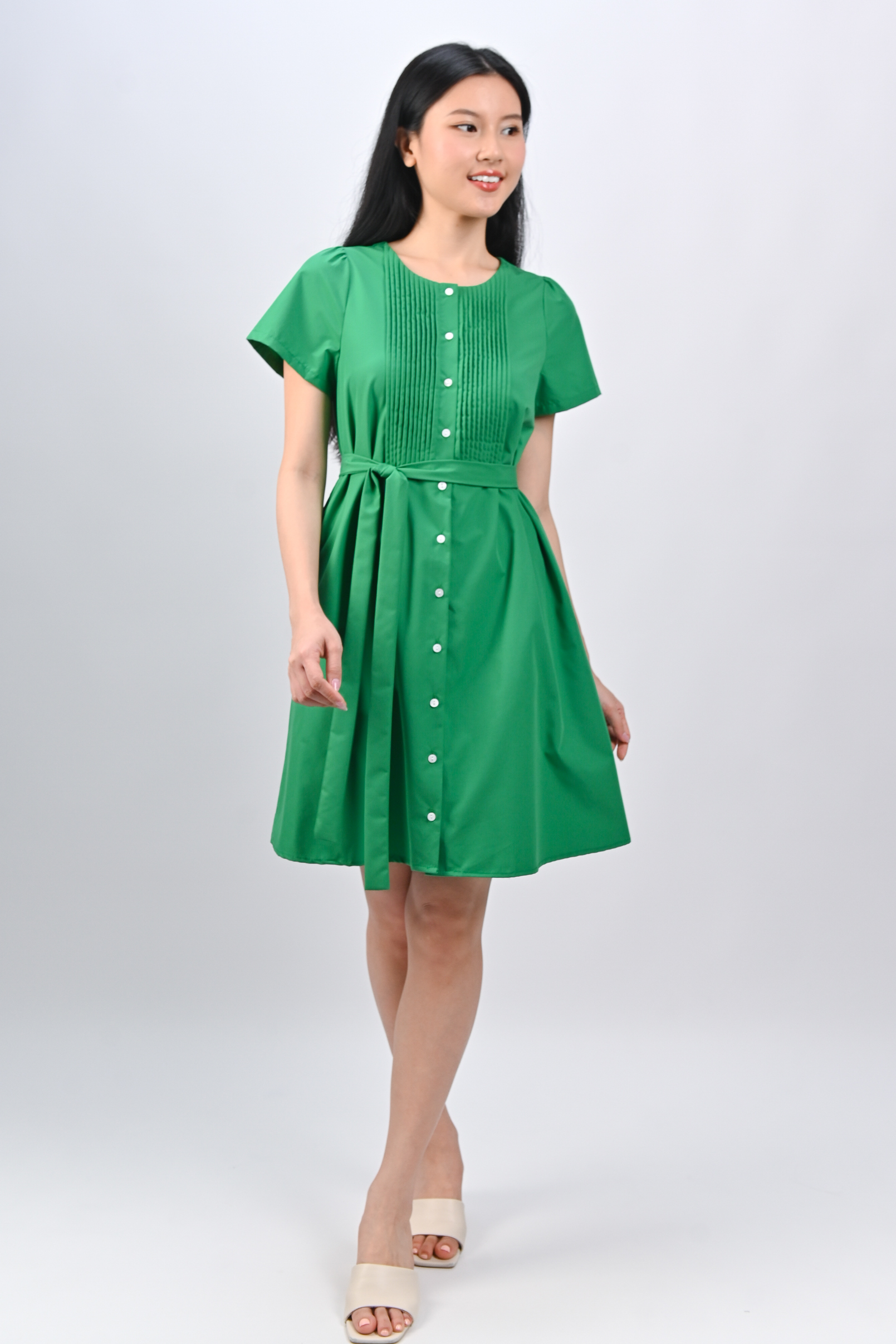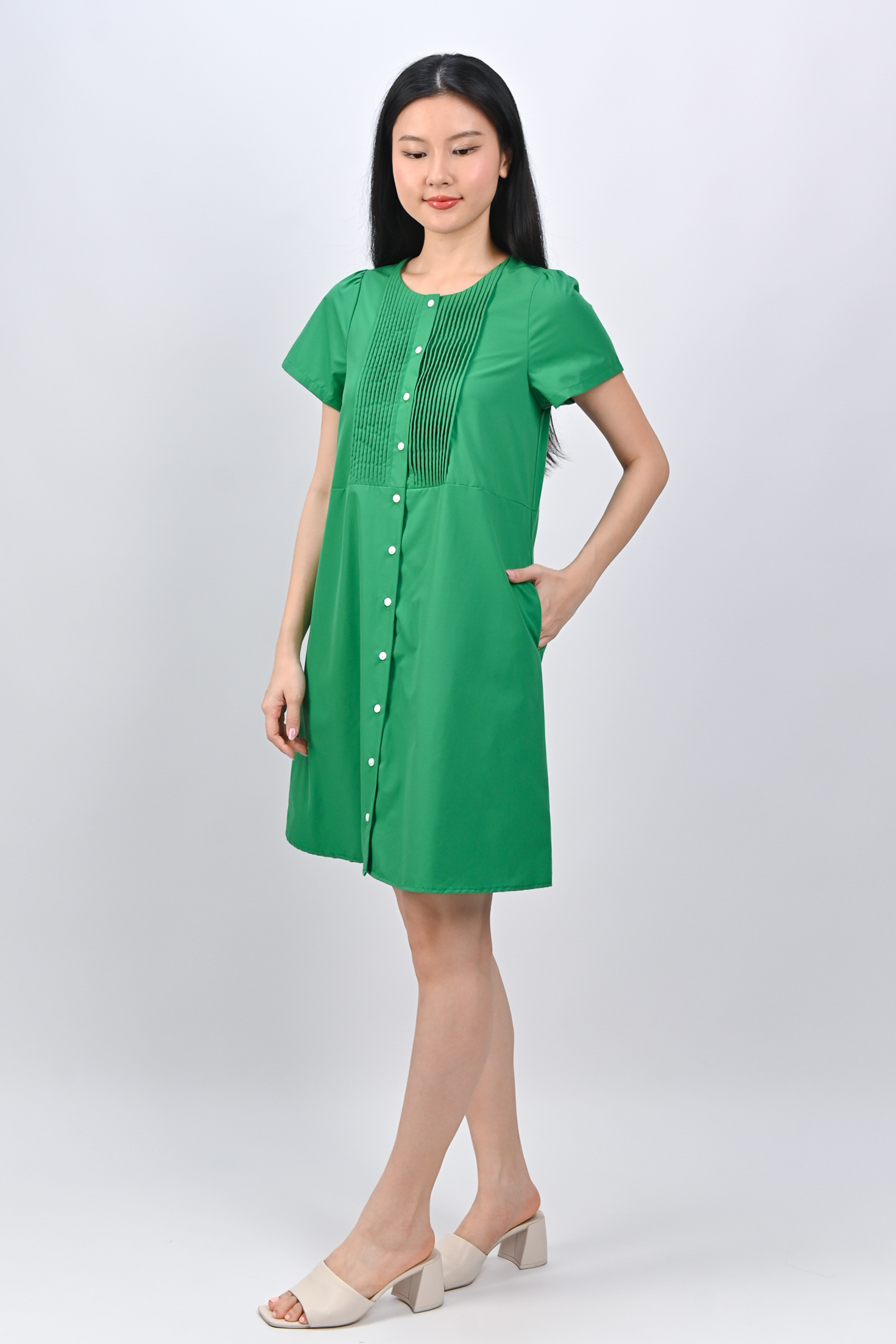 OPHYRA PINTUCK DRESS IN GREEN