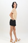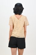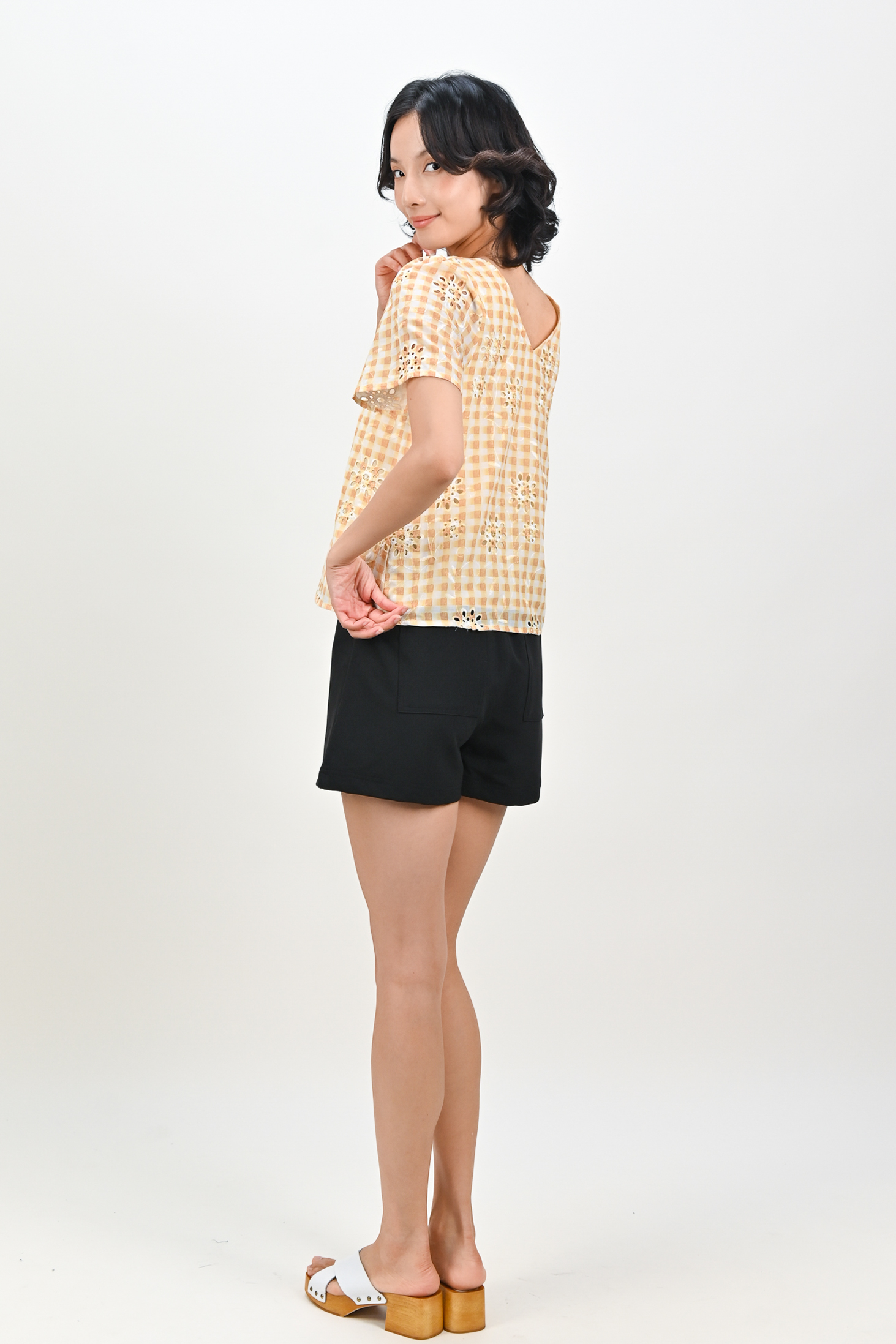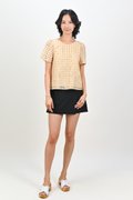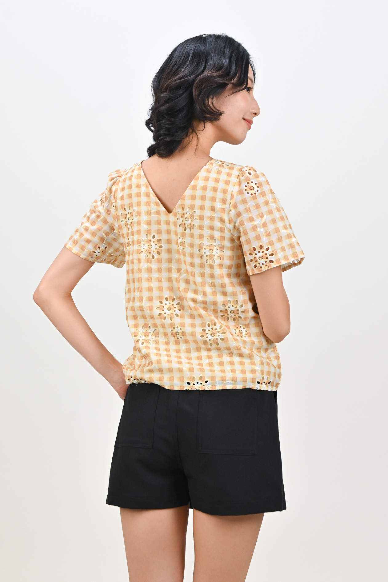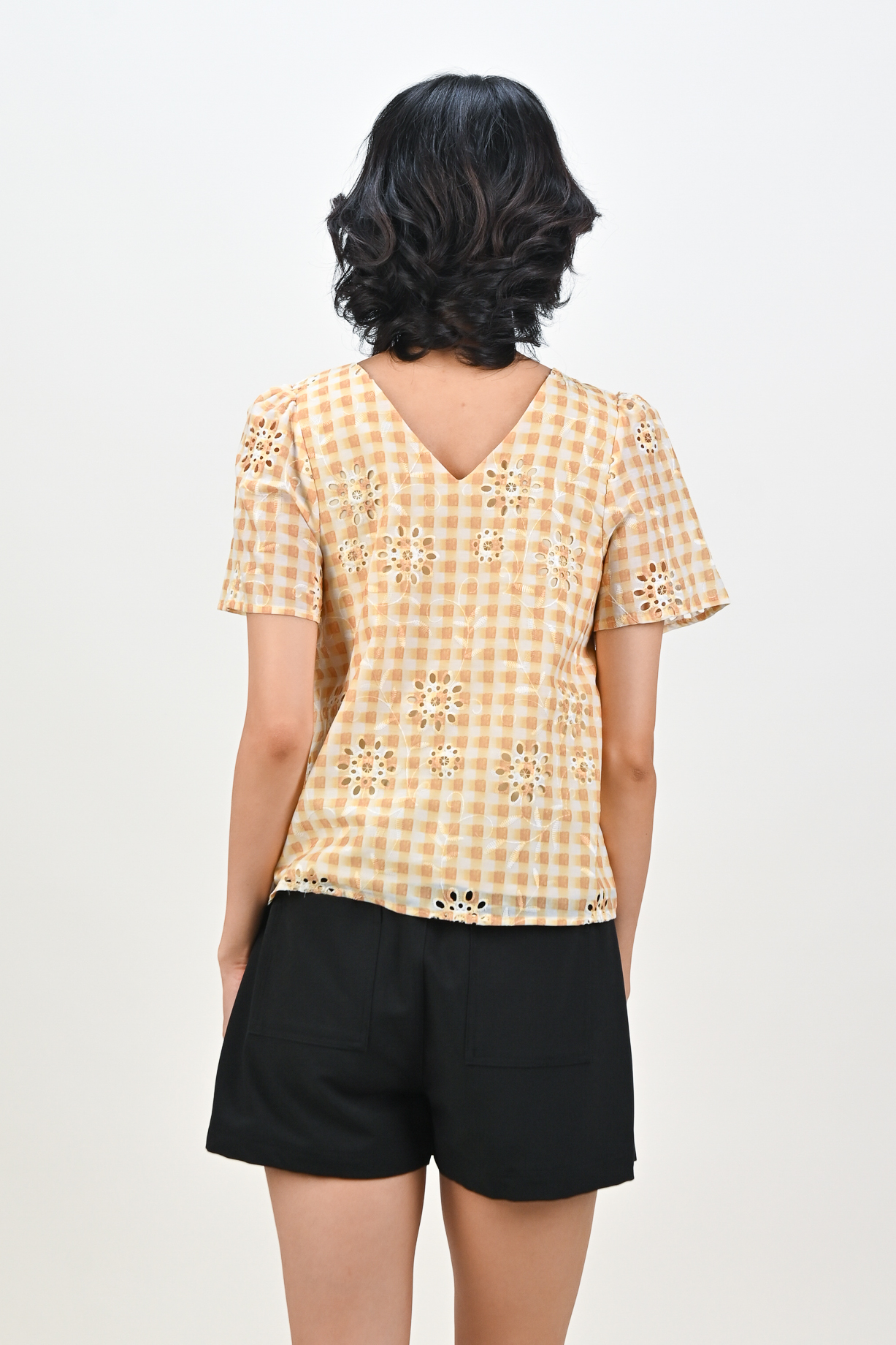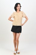ORELIA GINGHAM EYELET SLEEVED TOP IN YELLOW