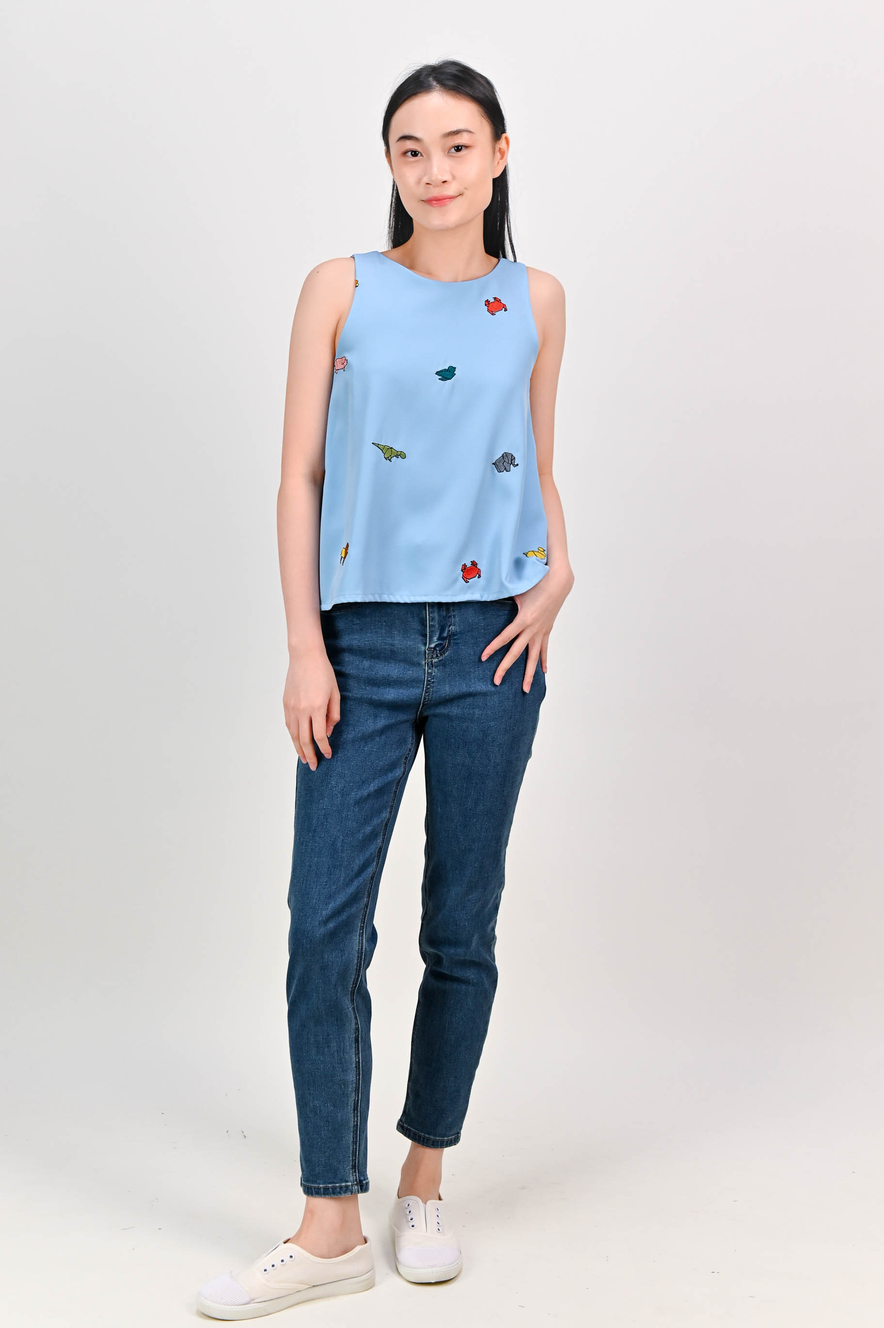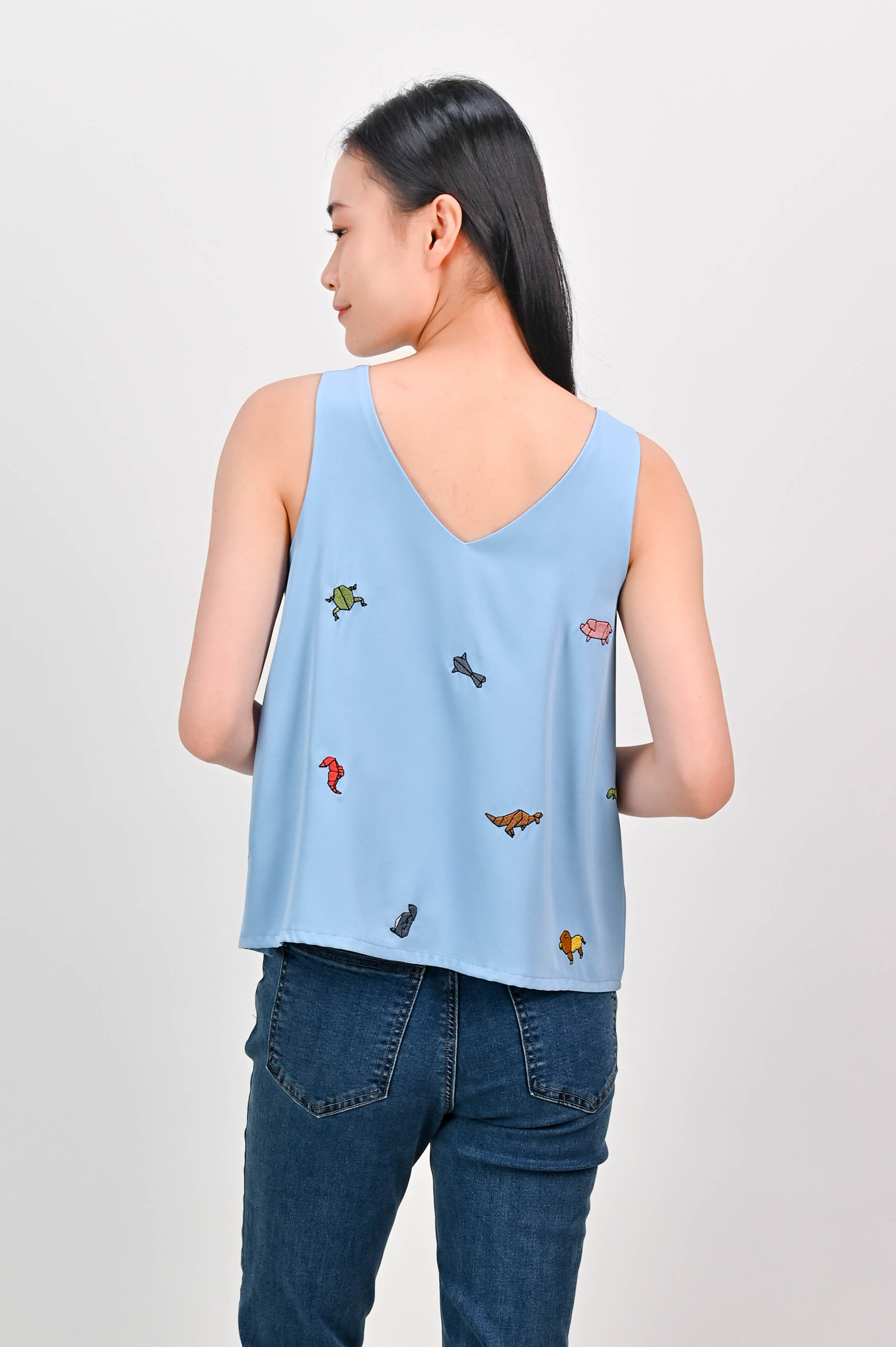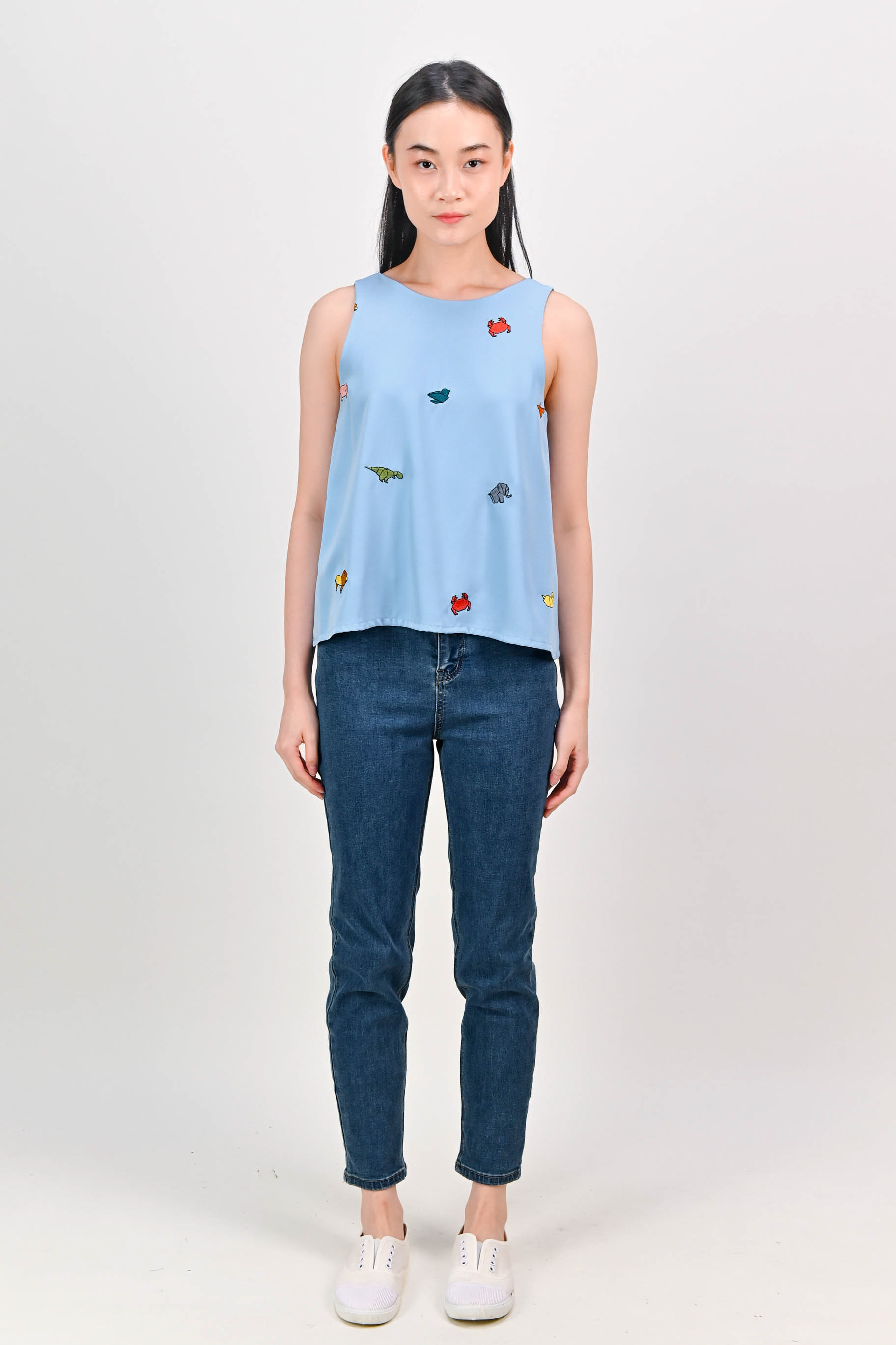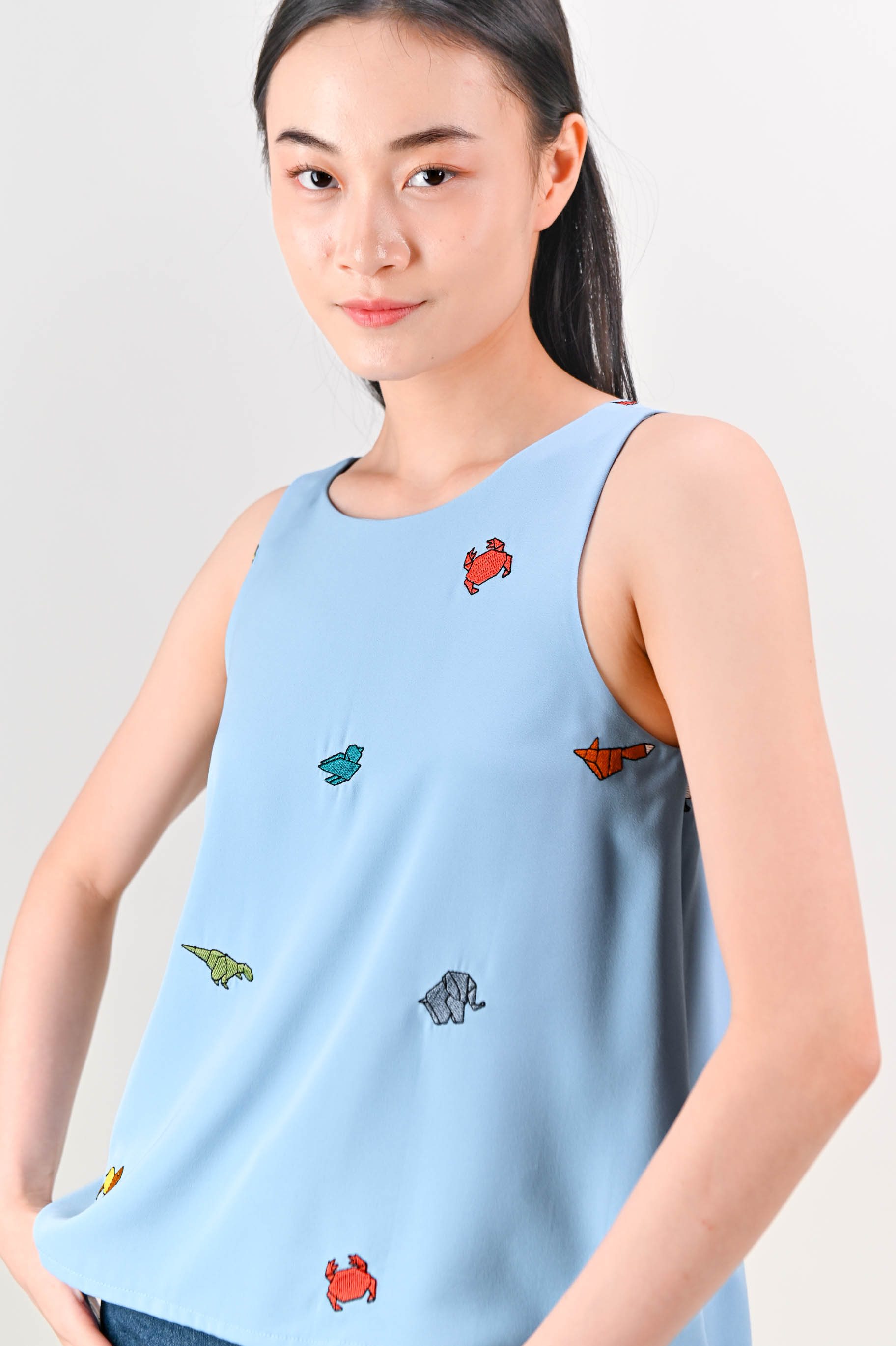 ORIGAMI ZOO EMB. TWO-WAY TOP IN BLUE