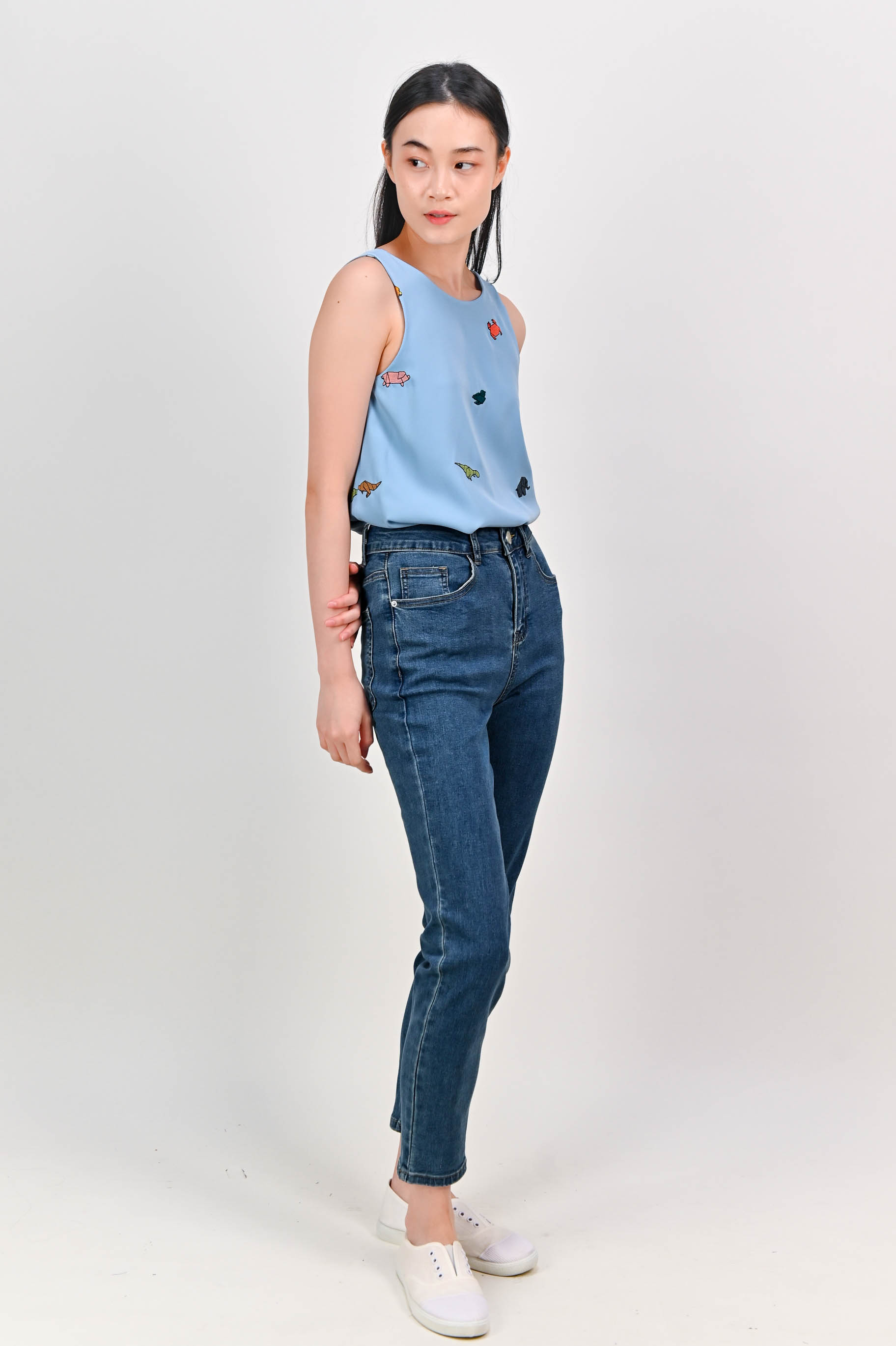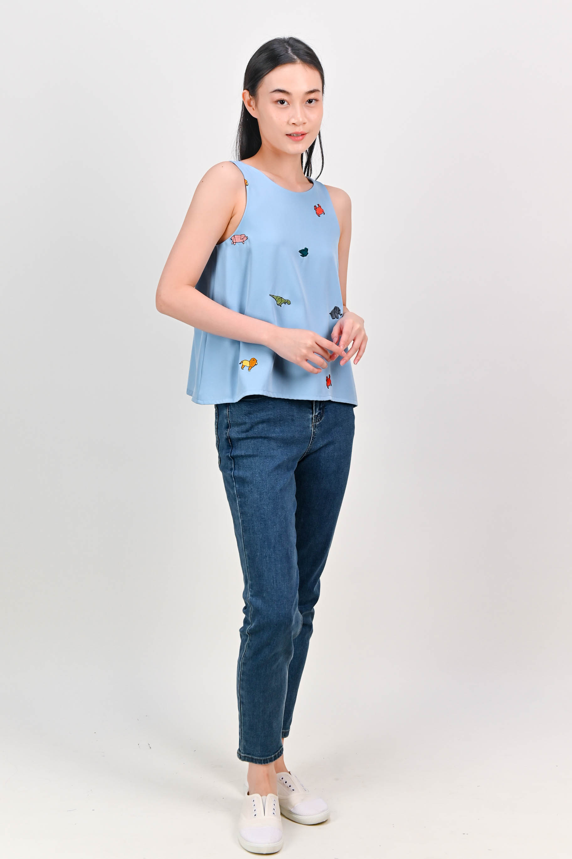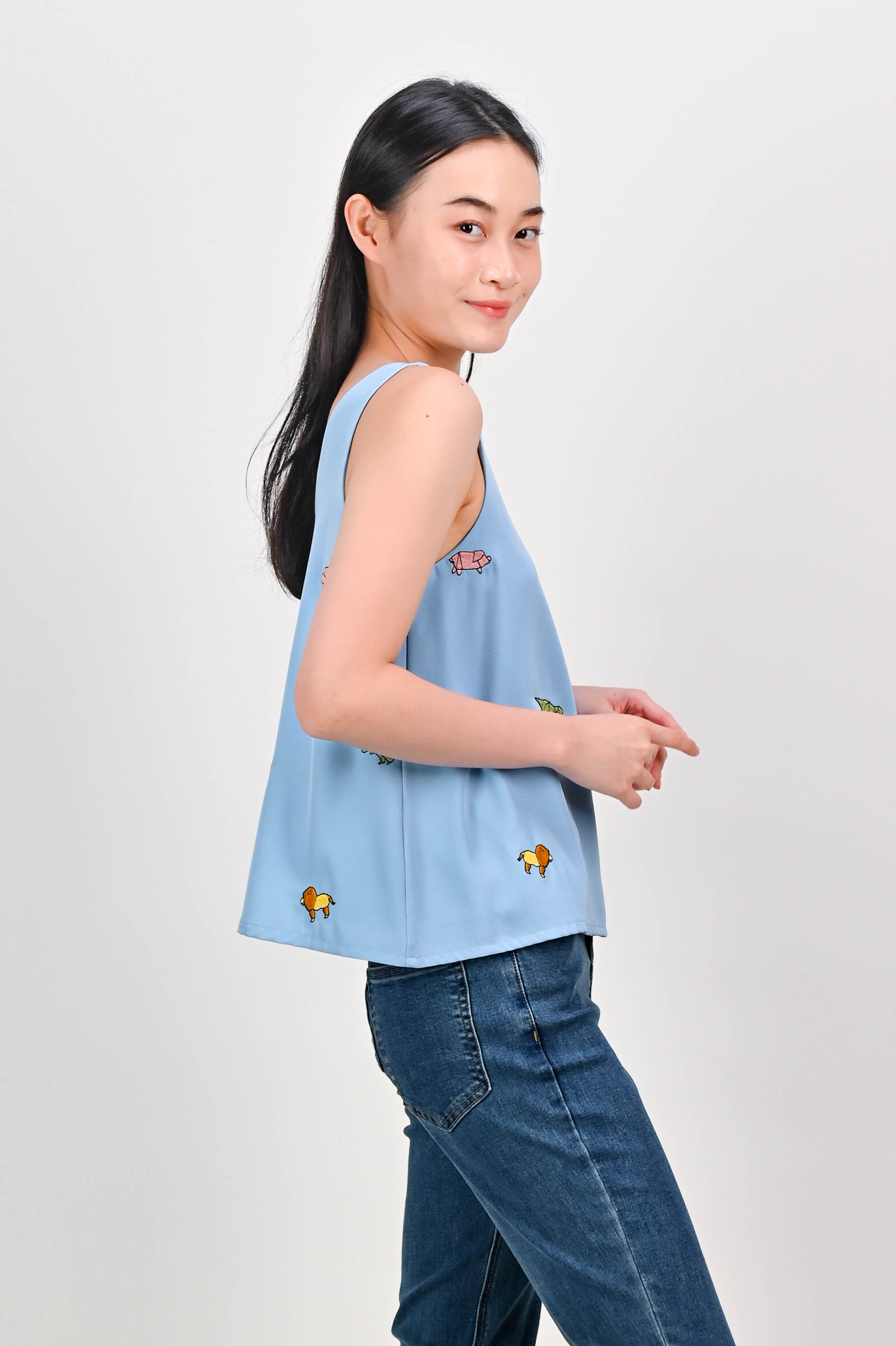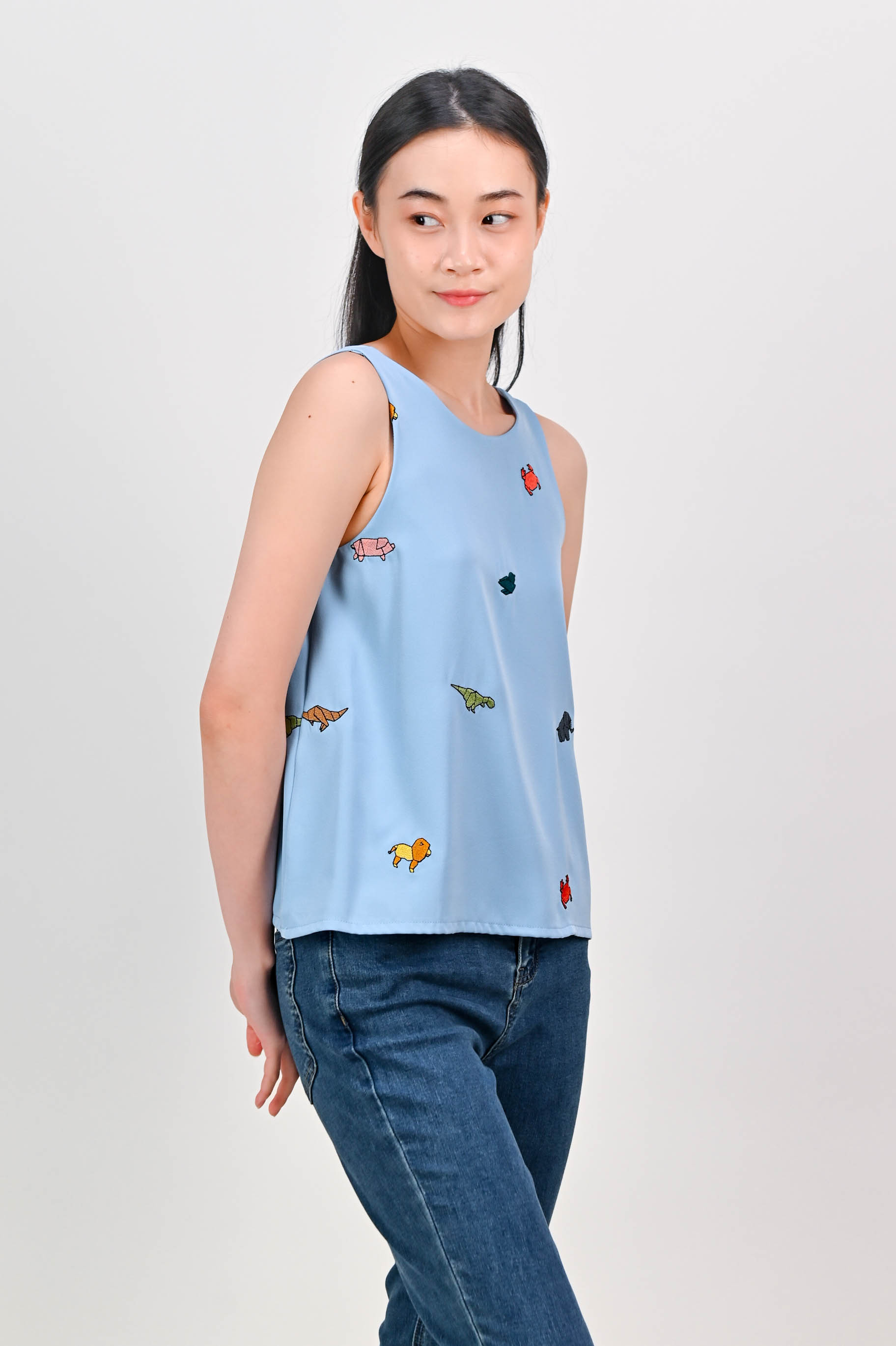 ORIGAMI ZOO EMB. TWO-WAY TOP IN BLUE