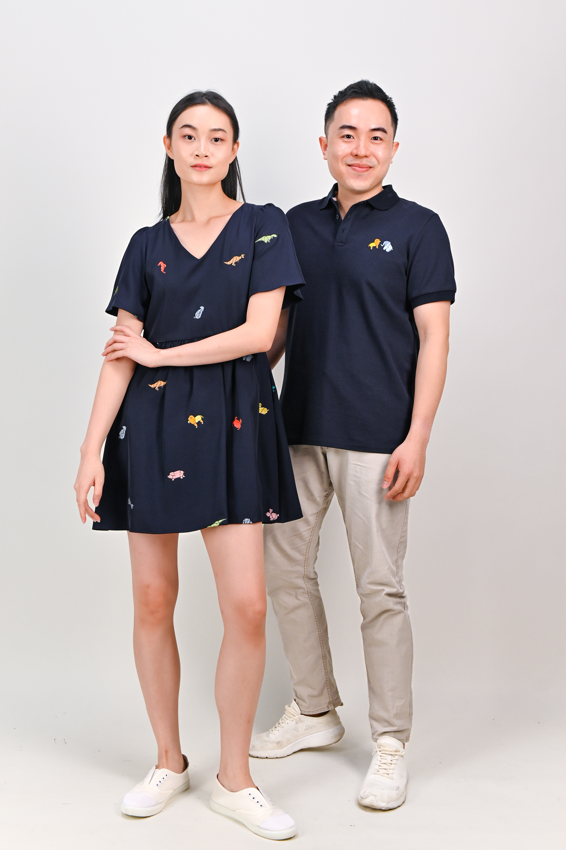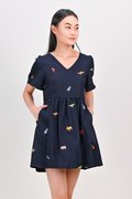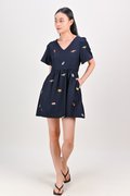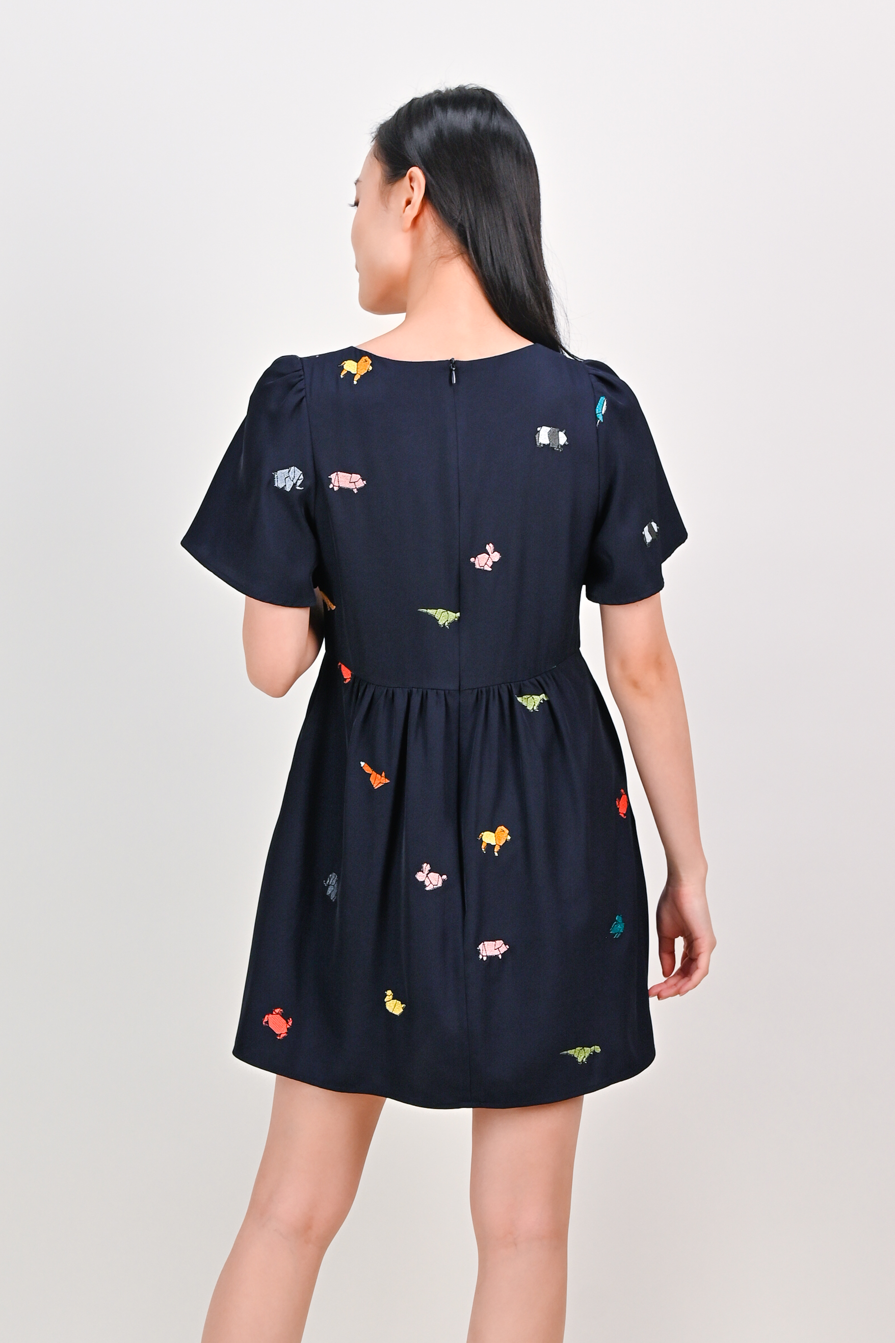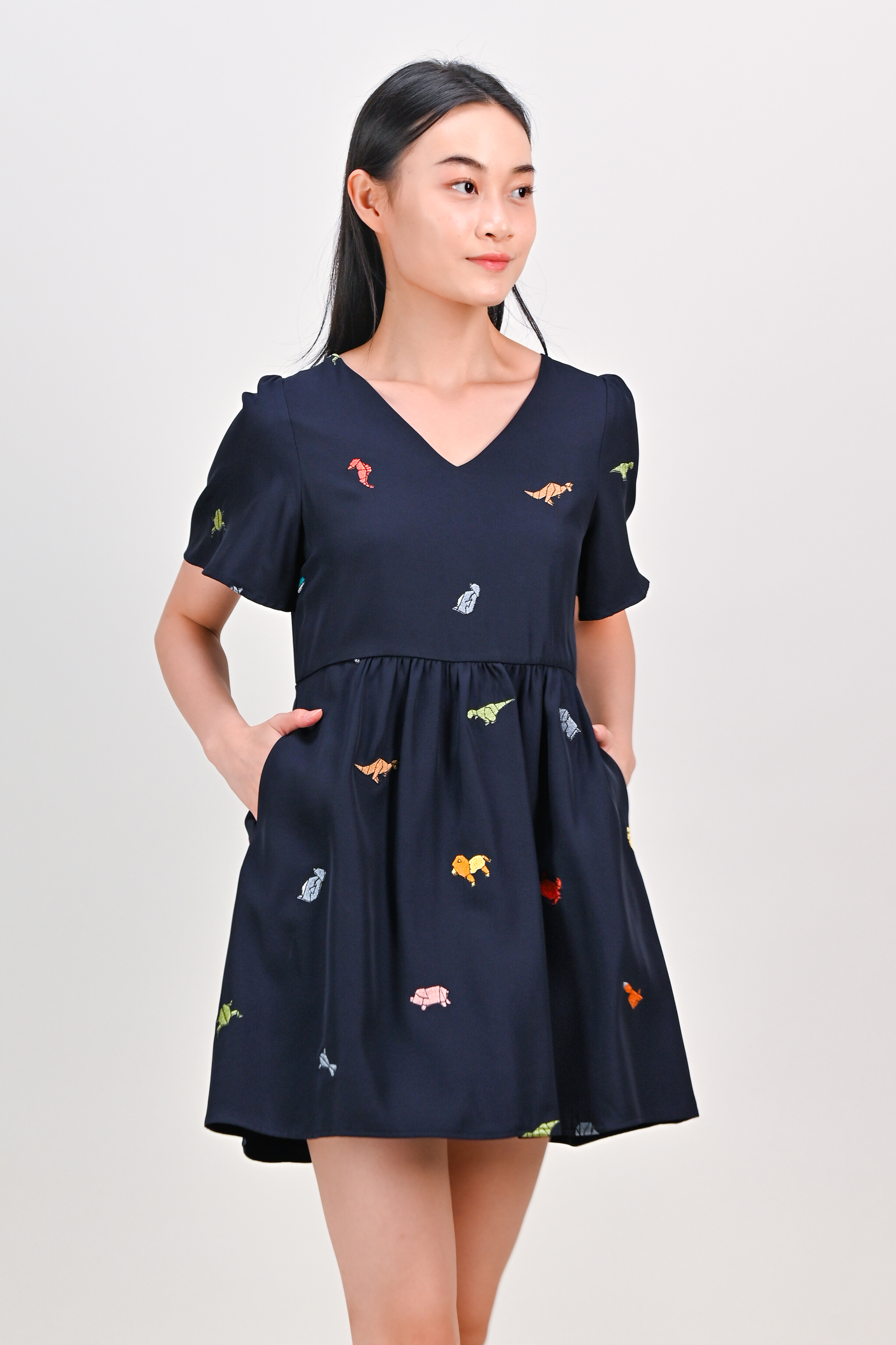 ORIGAMI ZOO NAVY EMB. V-NECK DRESS-ROMPER