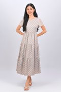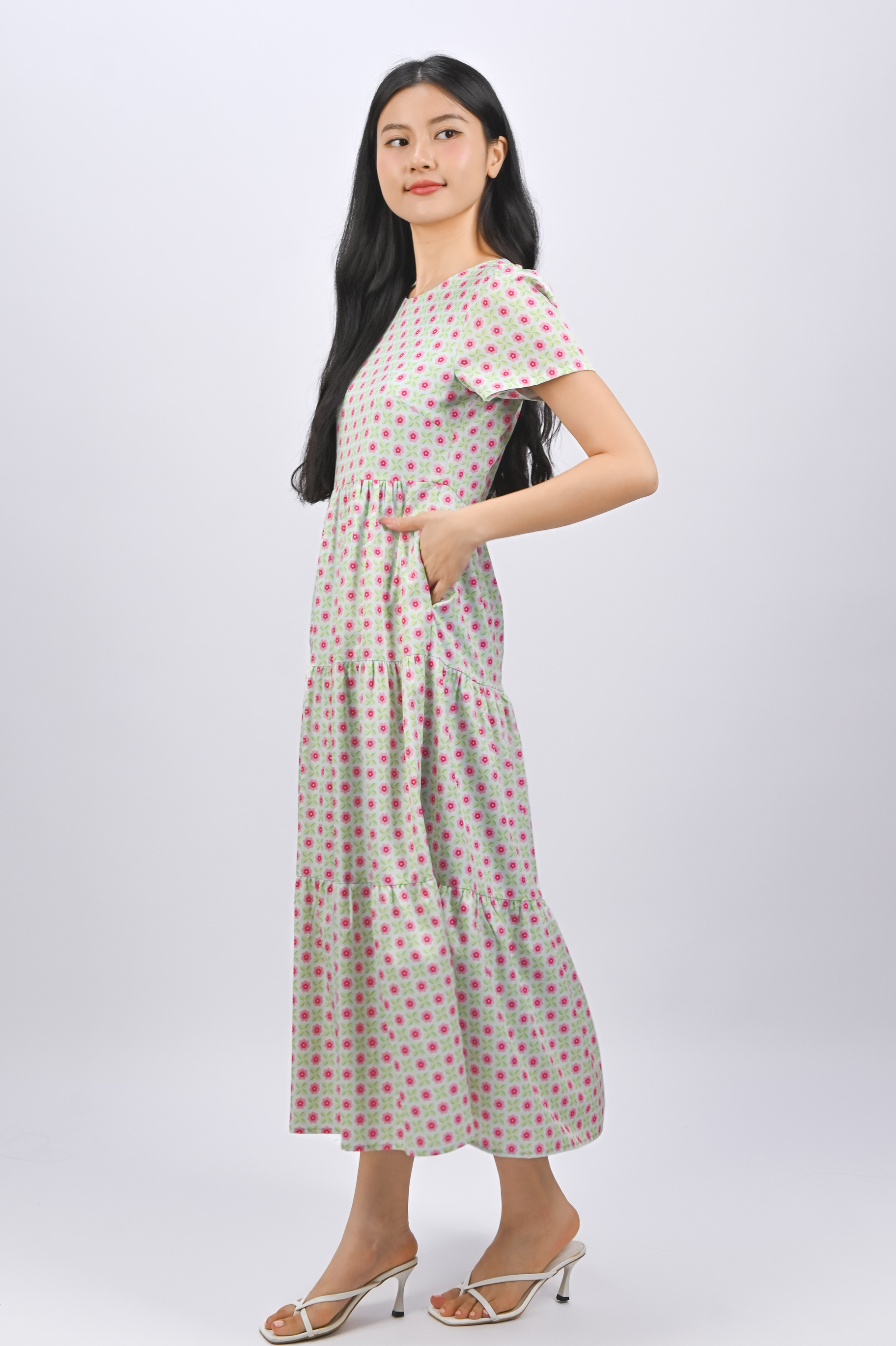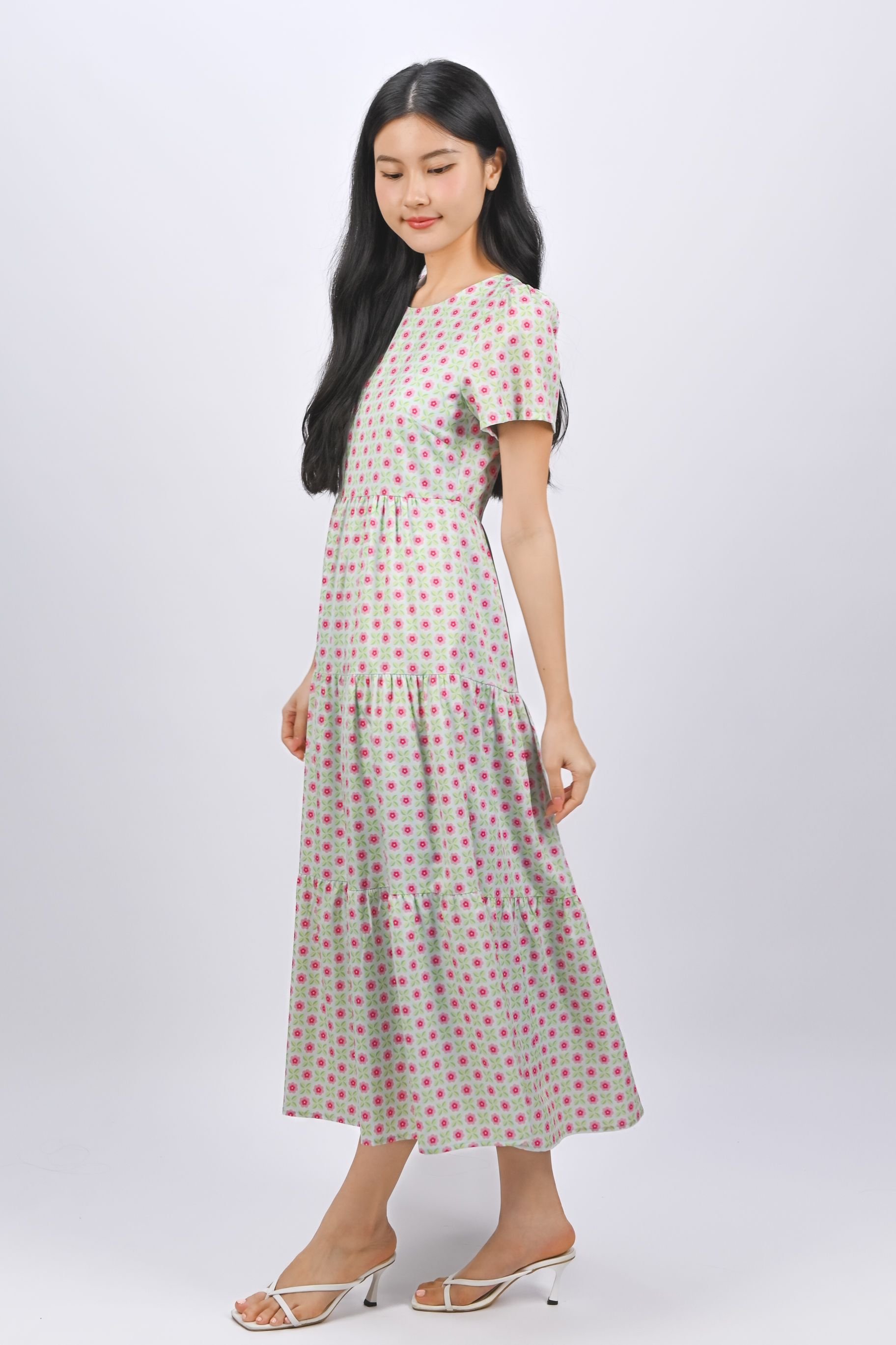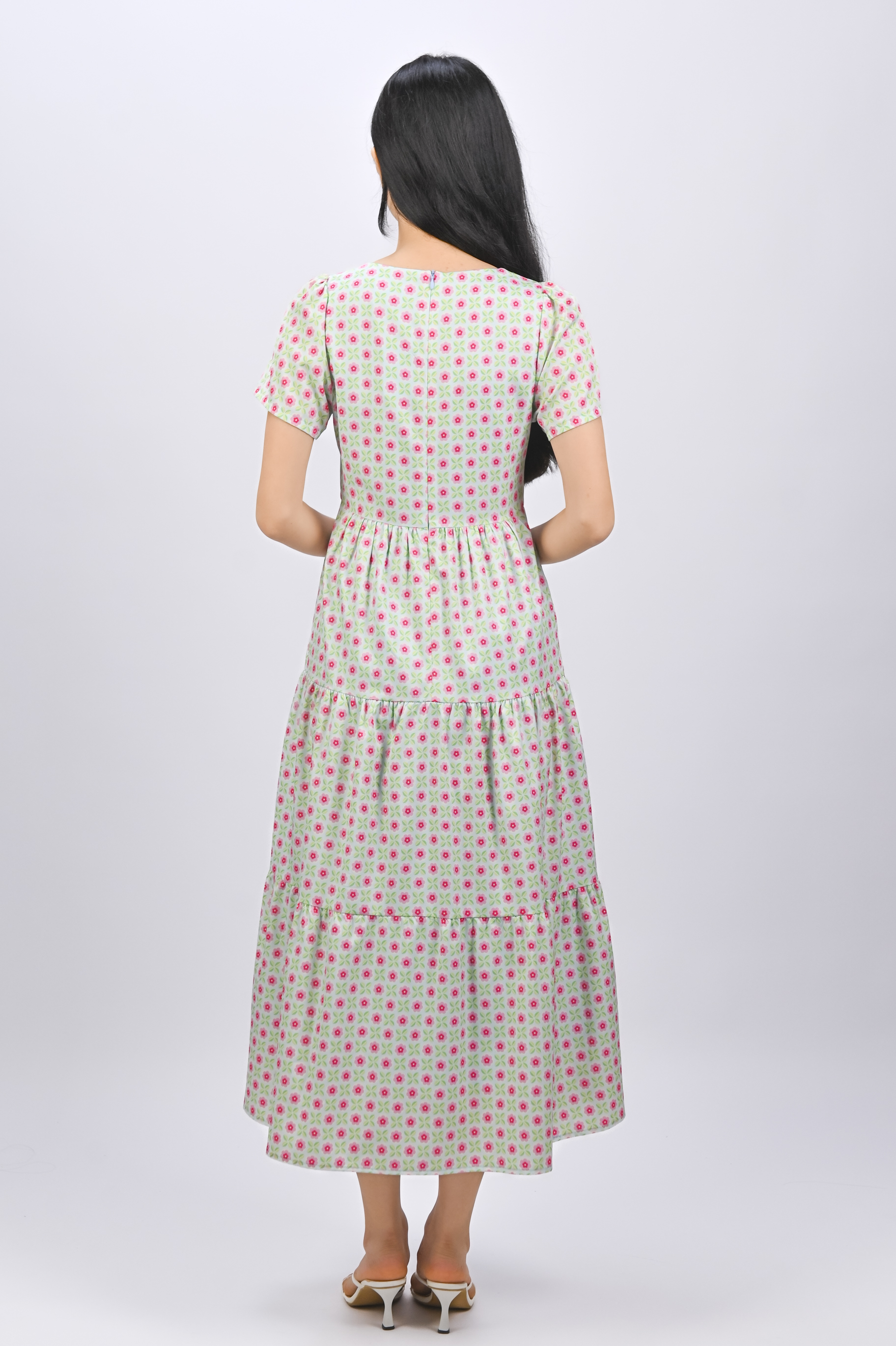 PANDAN POP ROUND-NECK TIERED MIDAXI DRESS