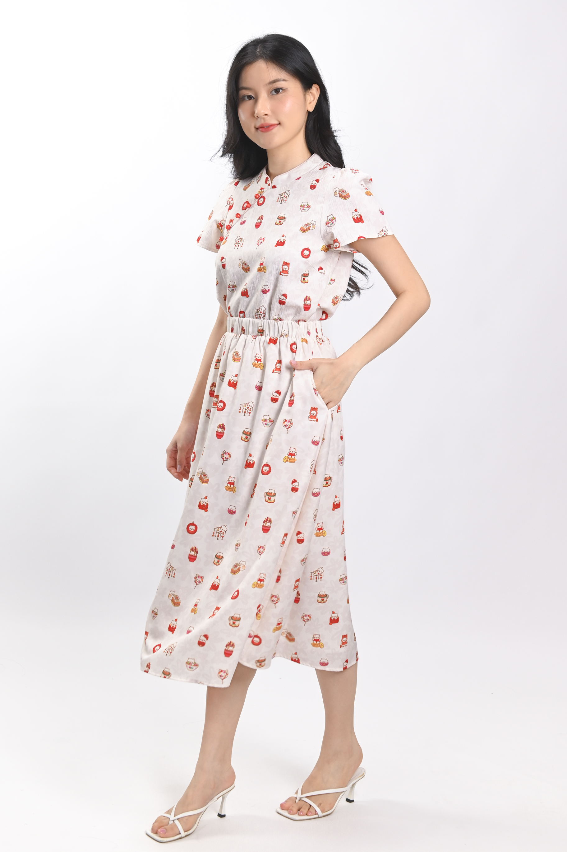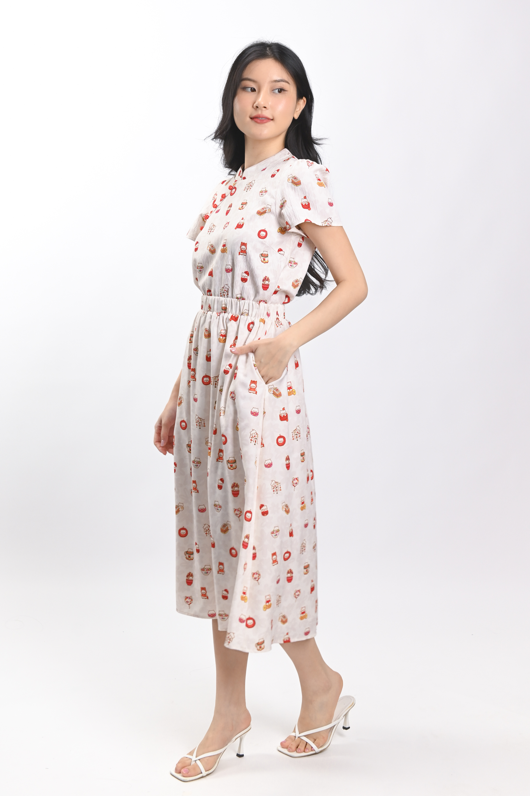 PAWSPERITY CAT ELASTIC-WAIST MIDI SKIRT