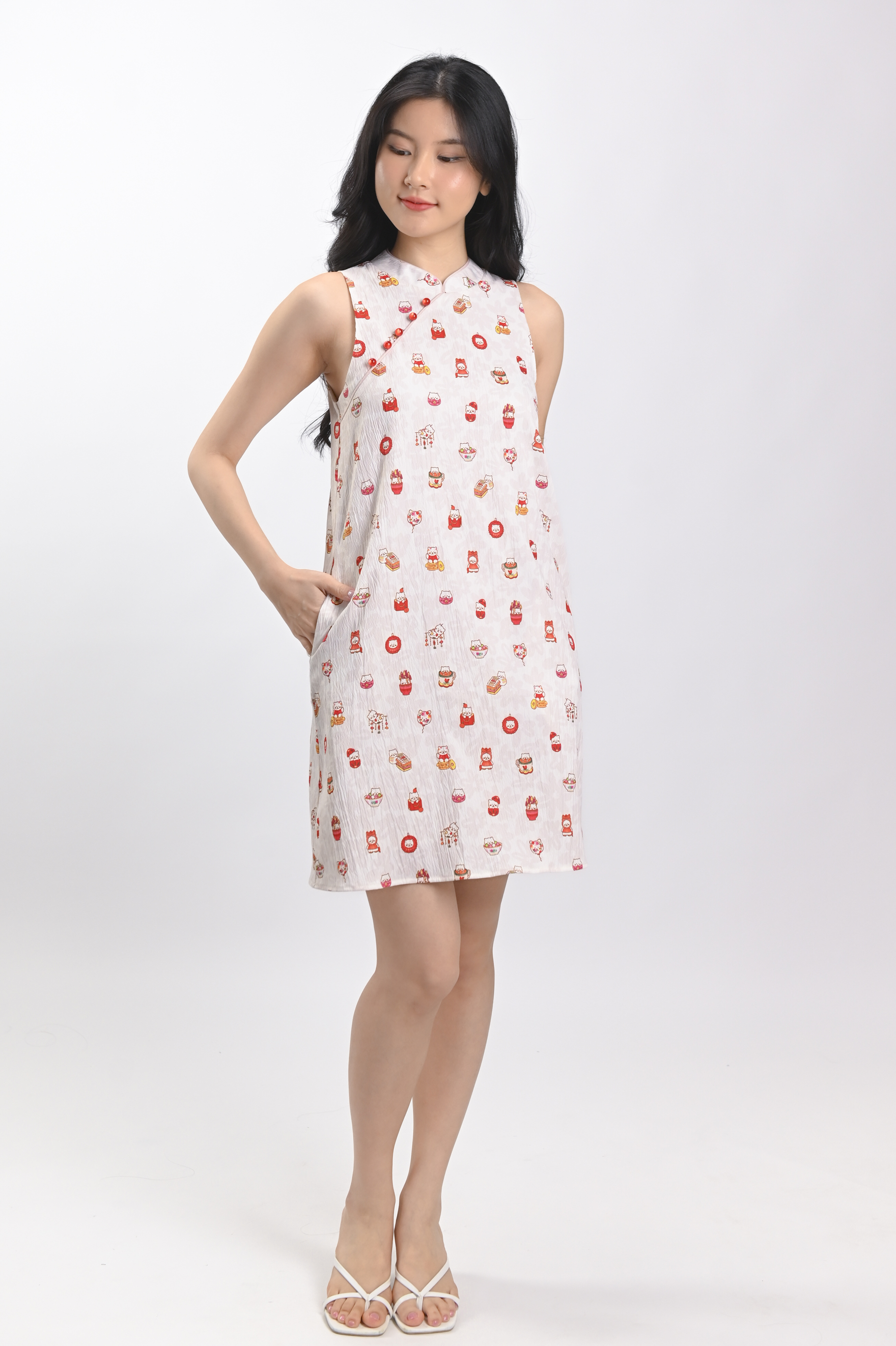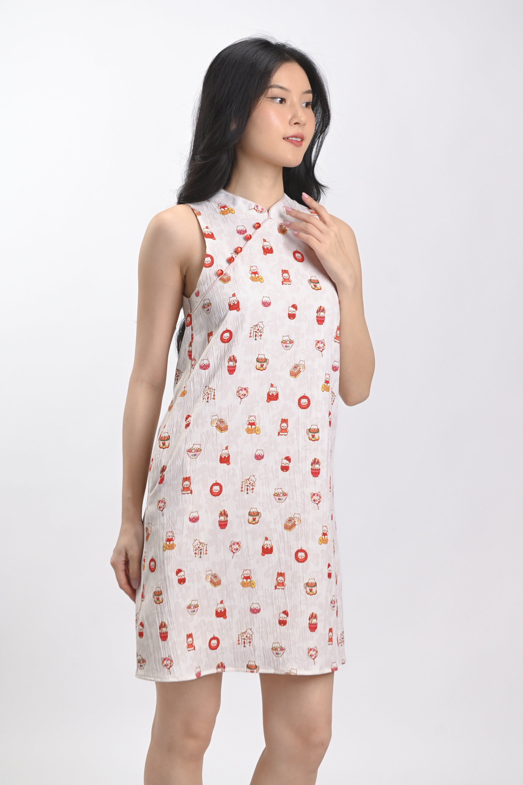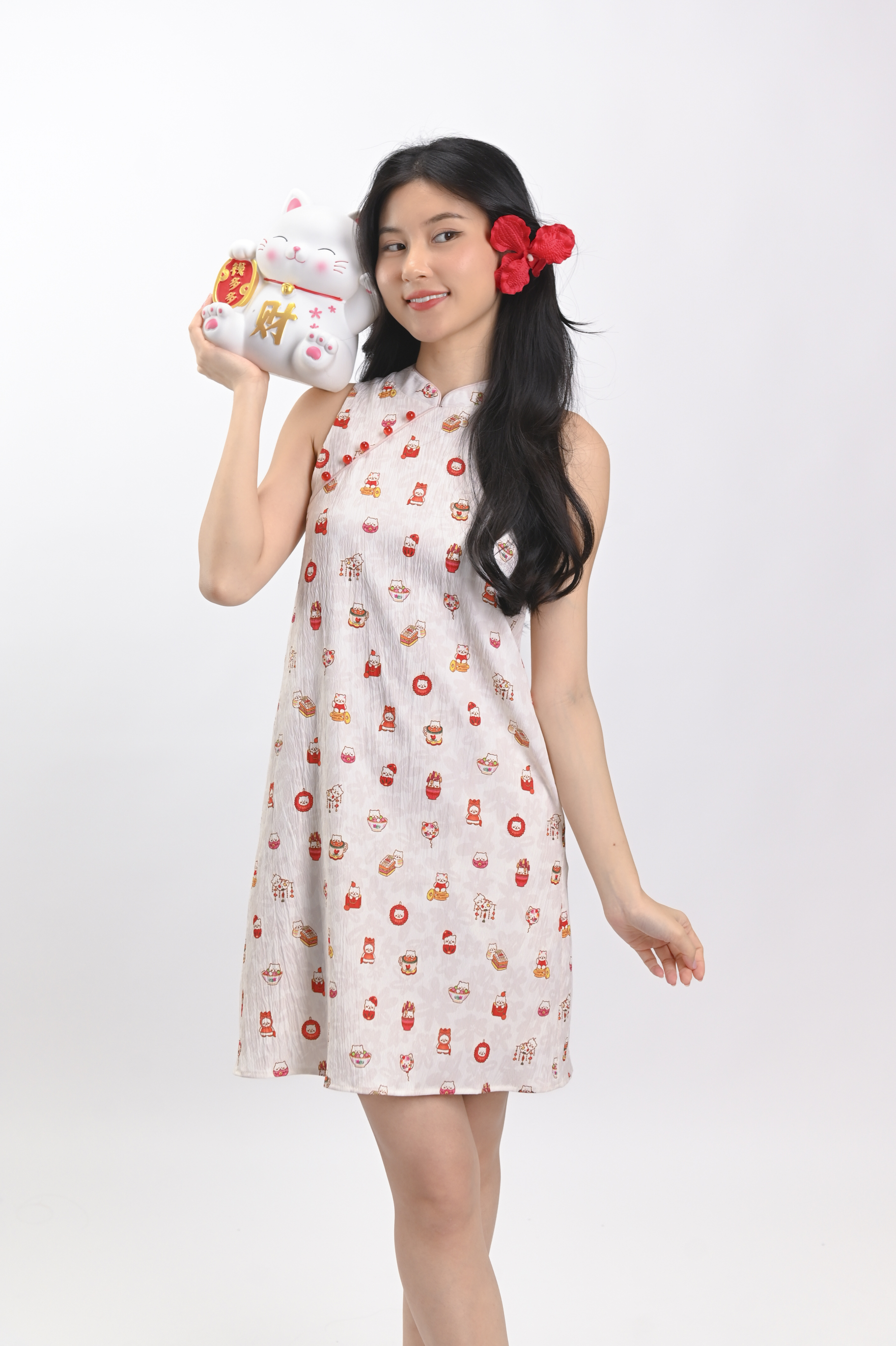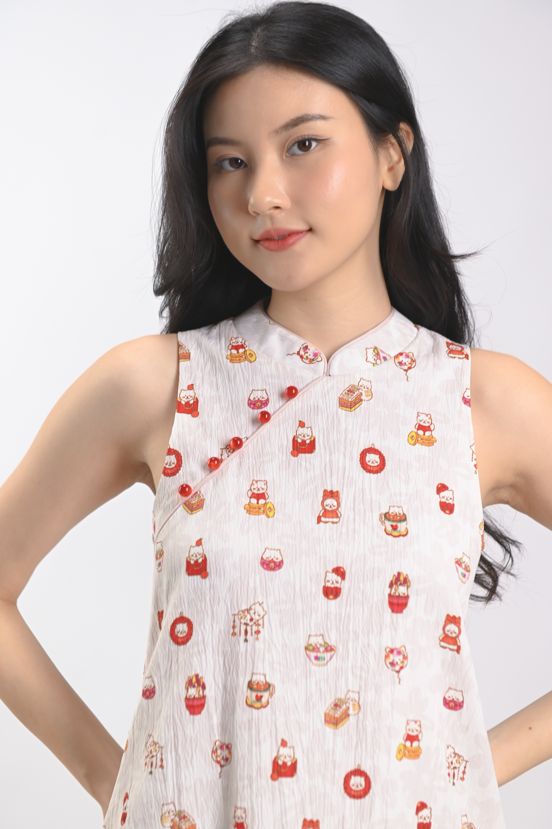 PAWSPERITY CAT SLEEVELESS CHEONGSAM DRESS