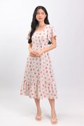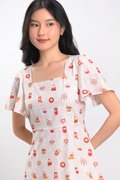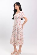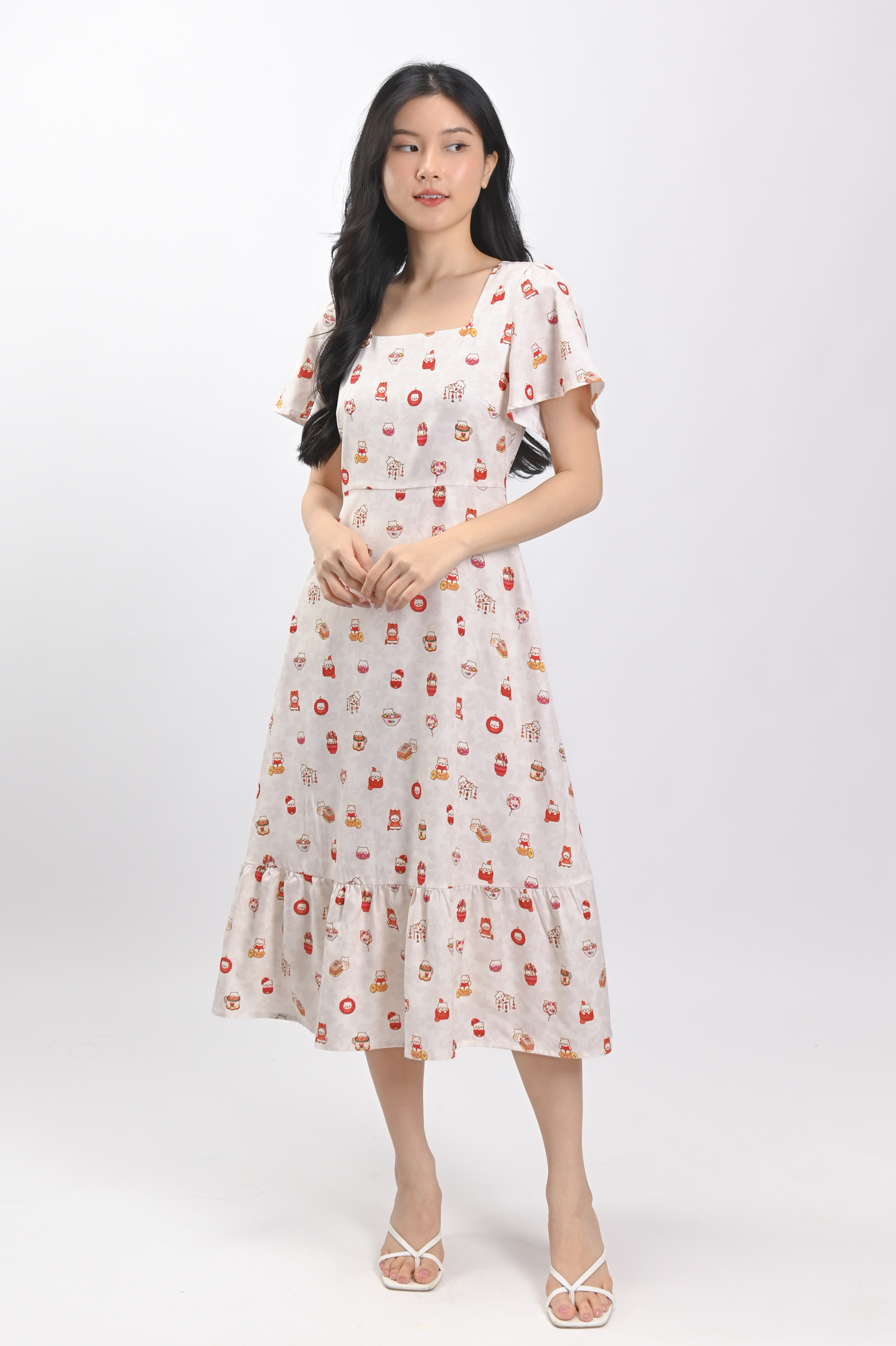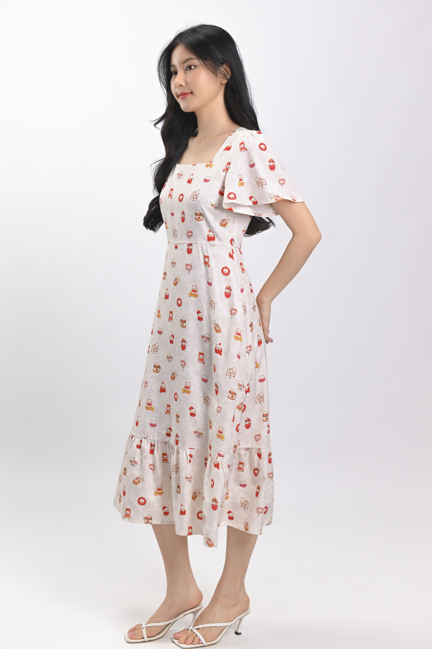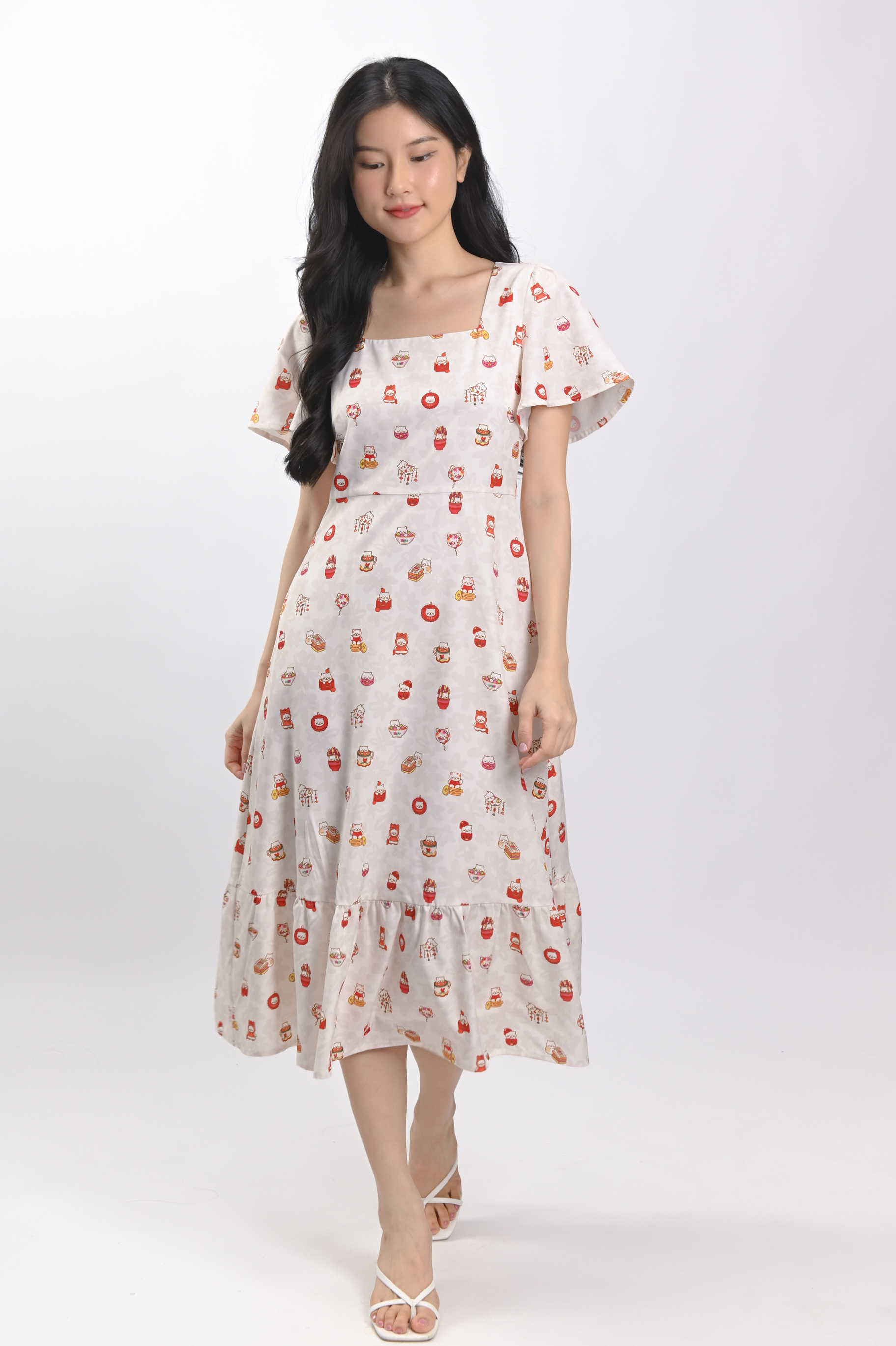 PAWSPERITY CAT SQUARE-NECK SLEEVED MIDI DRESS