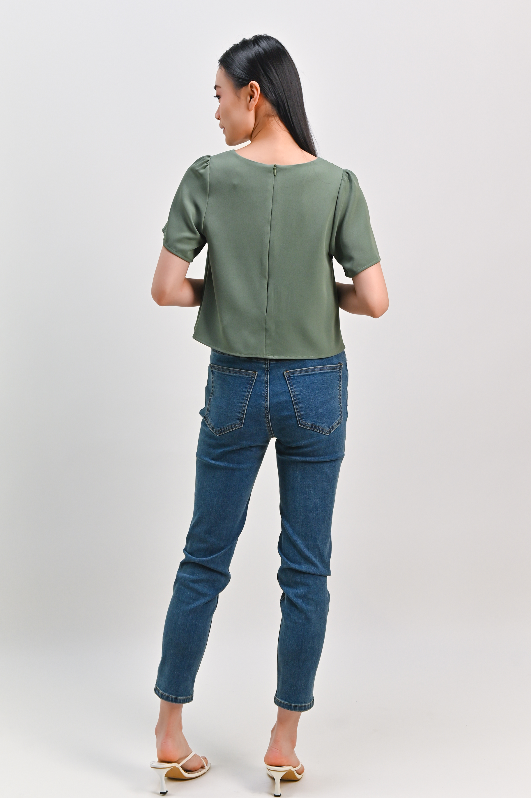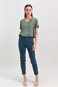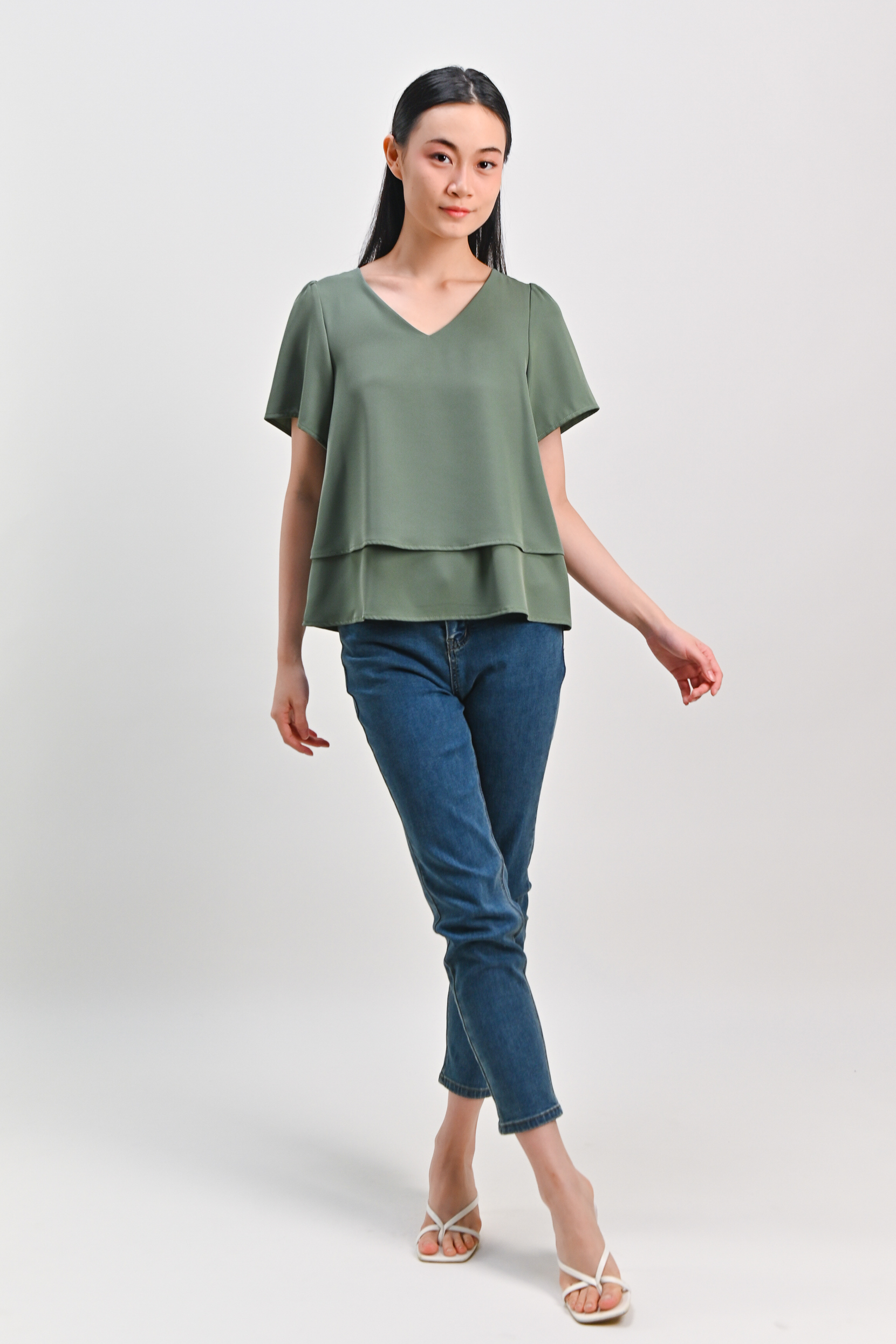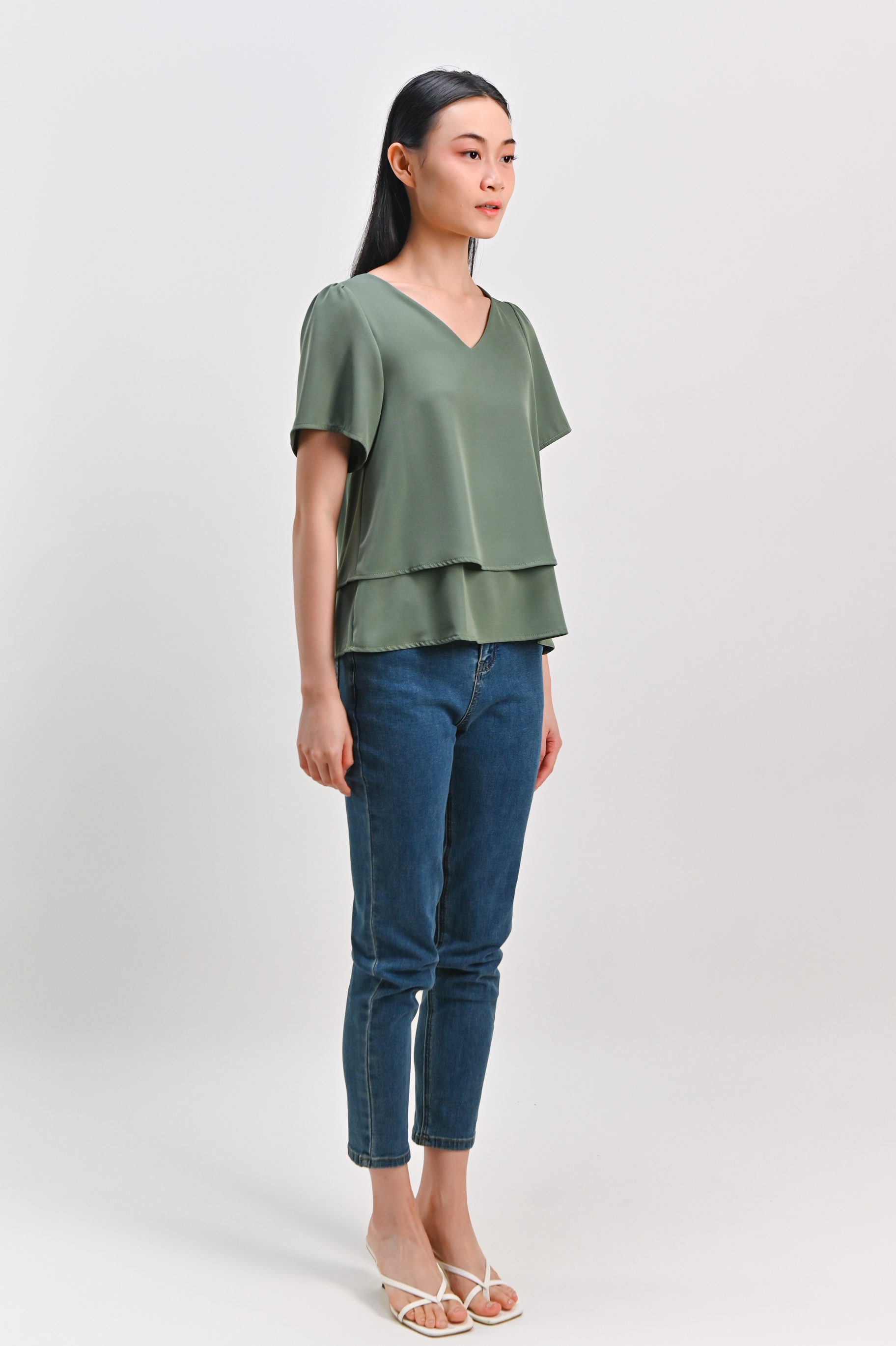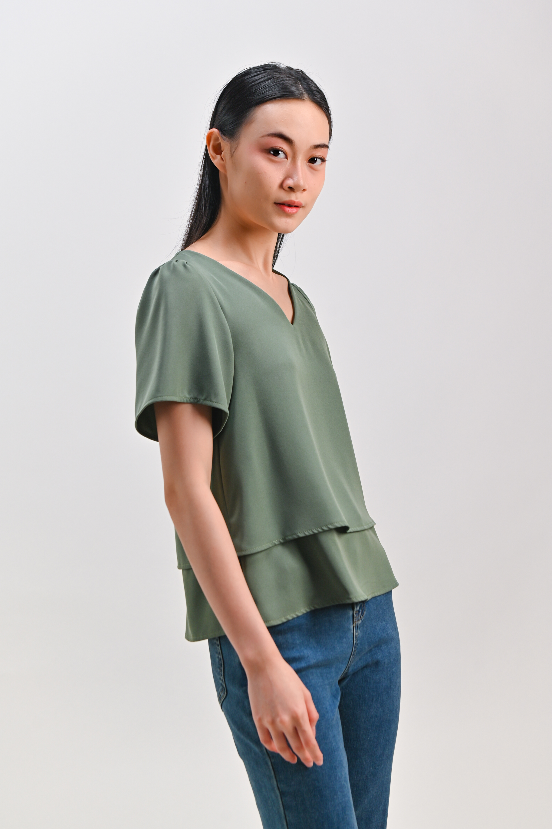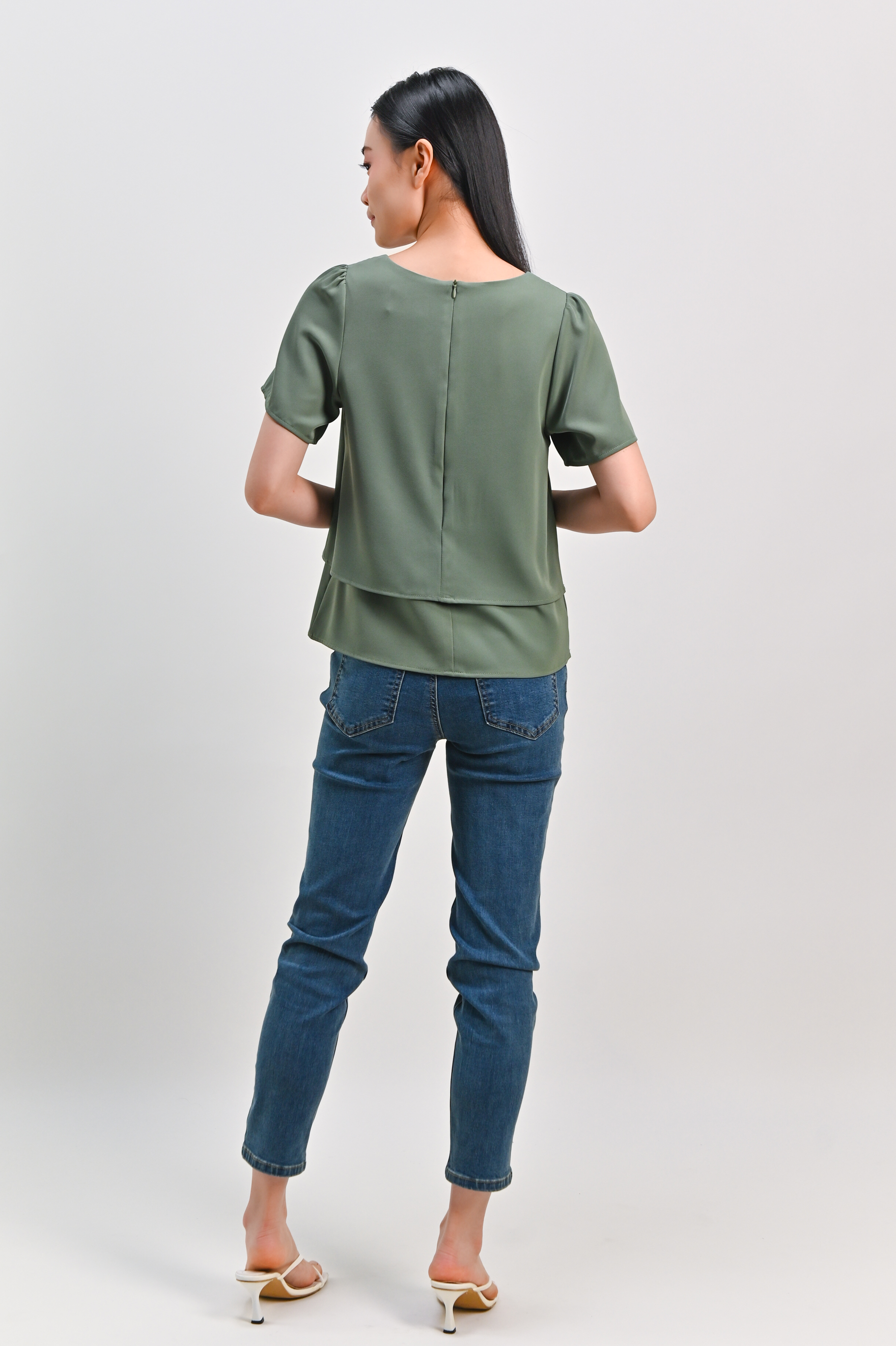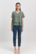 PEIPEI SLEEVED LAYERED TOP IN LIGHT GREEN