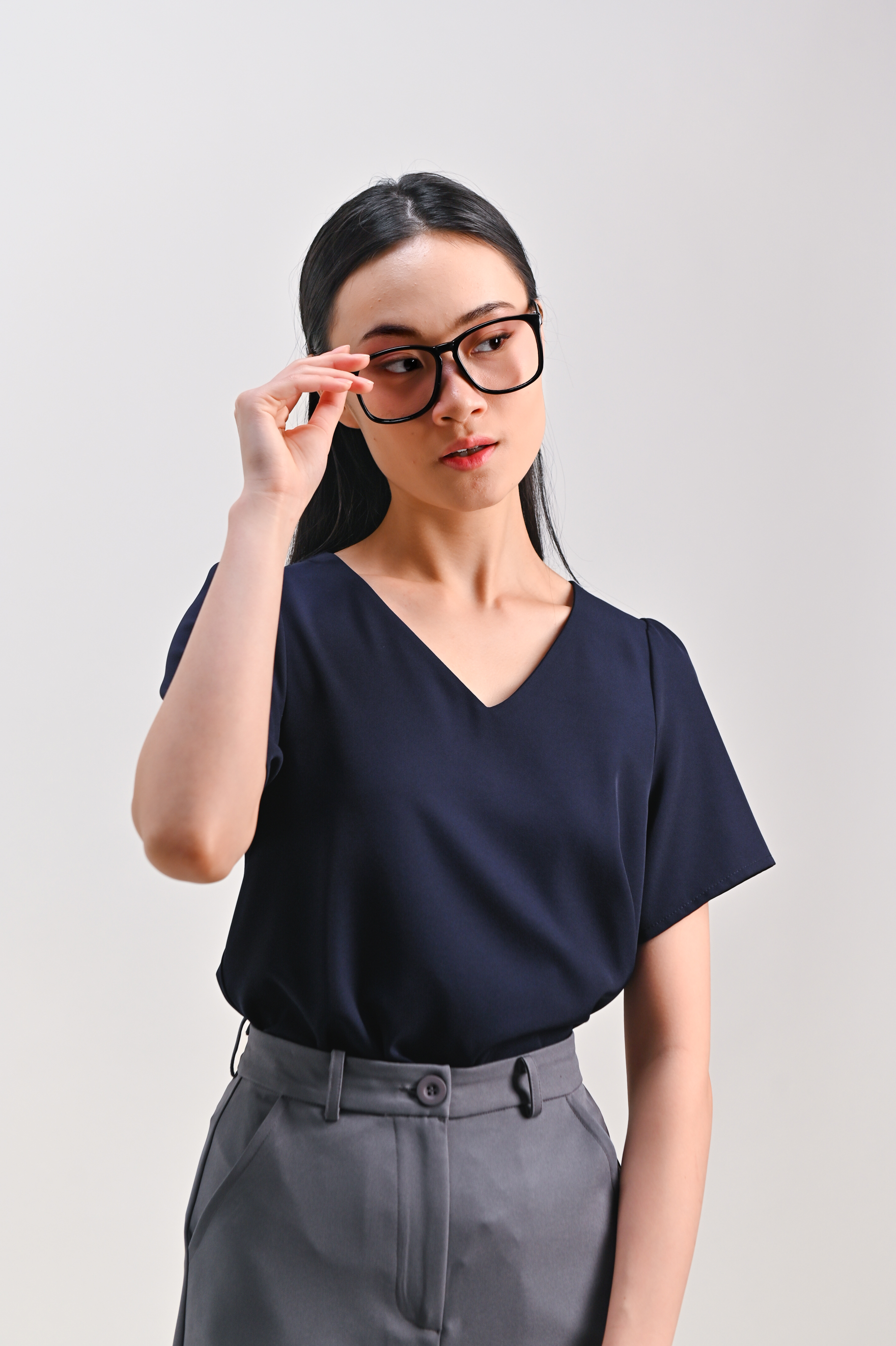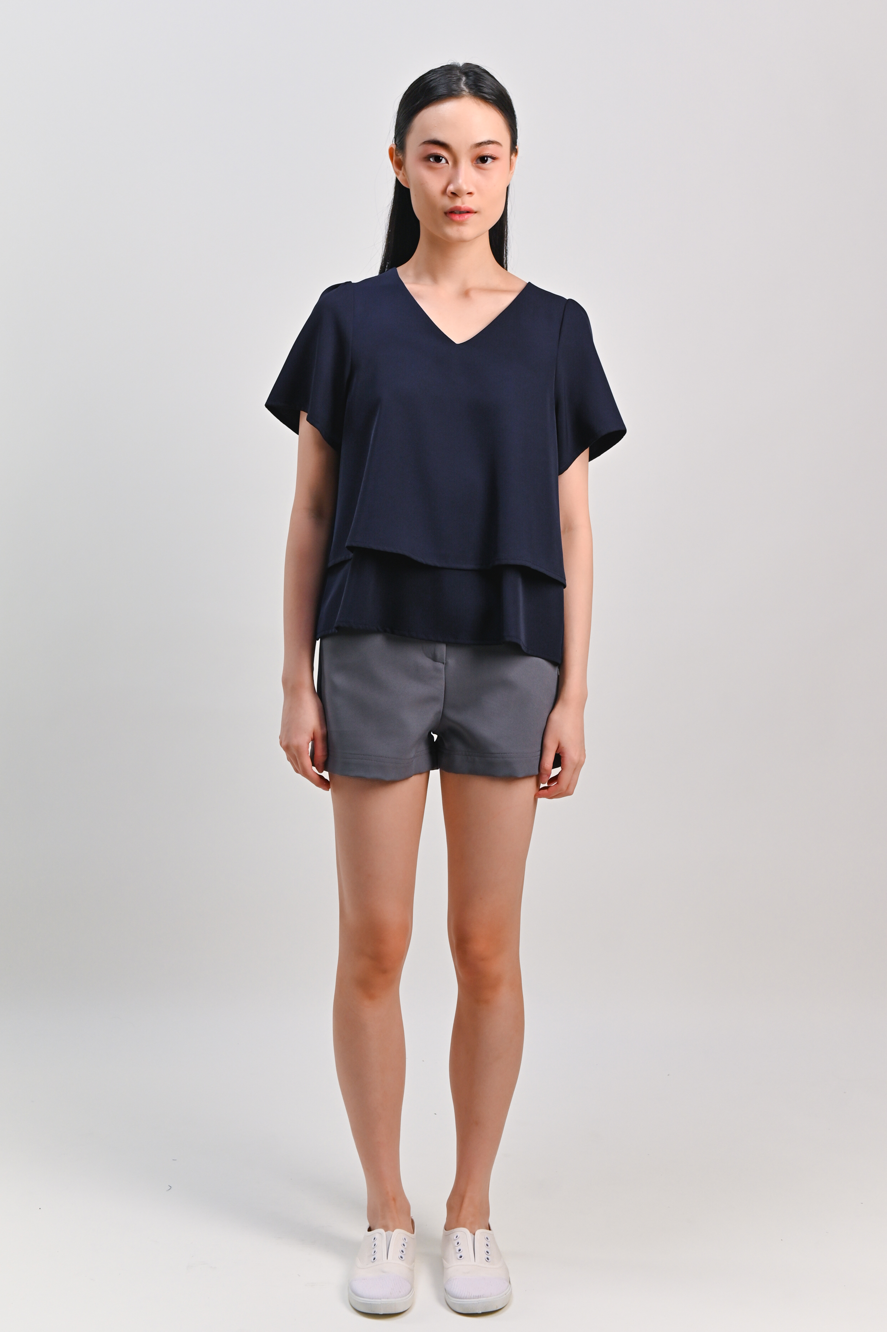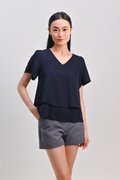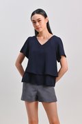 PEIPEI SLEEVED LAYERED TOP IN NAVY