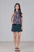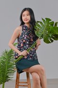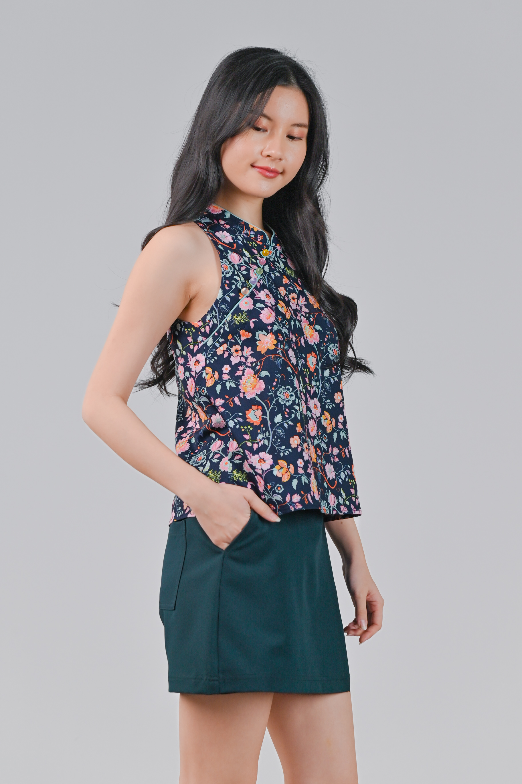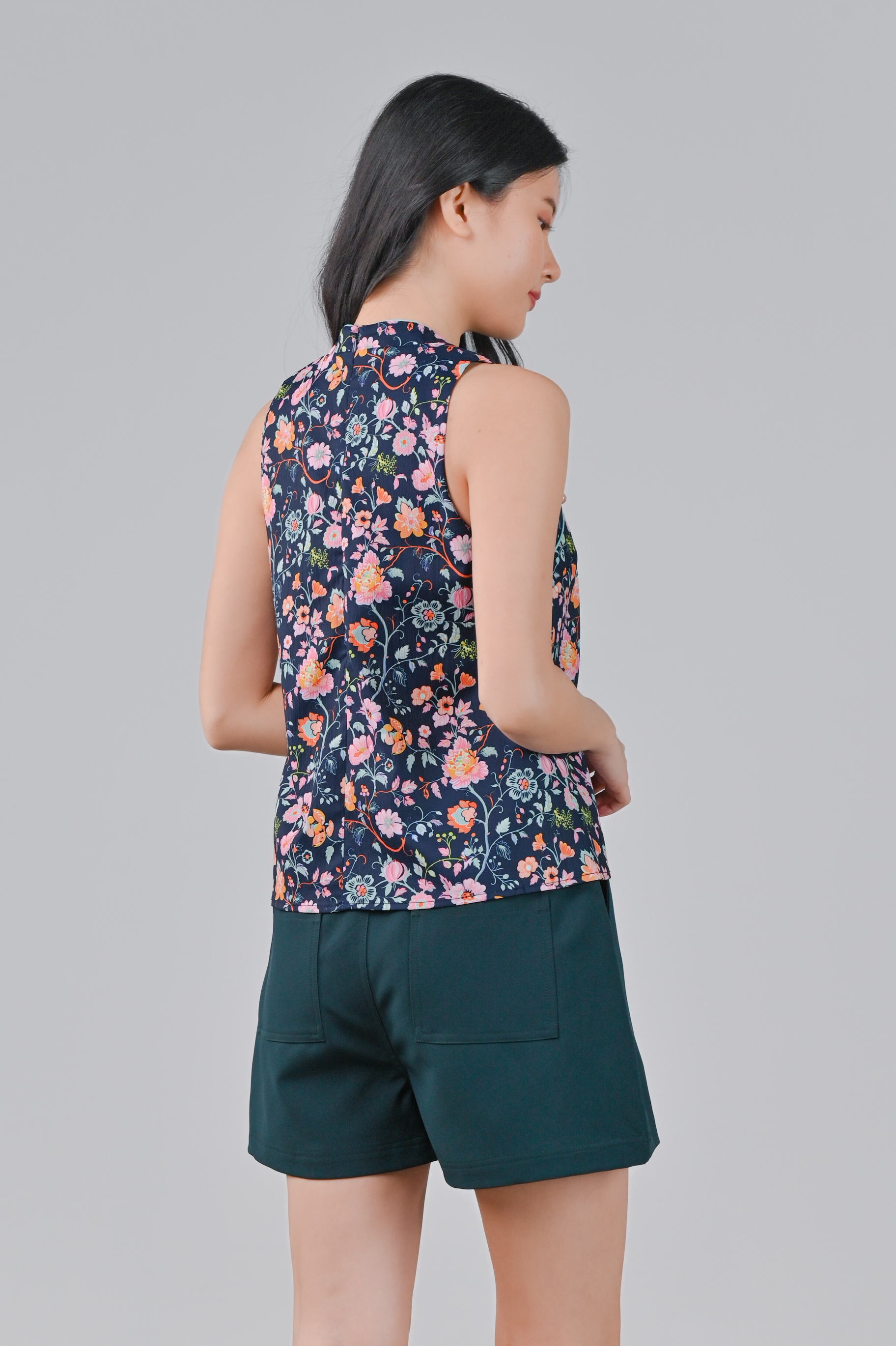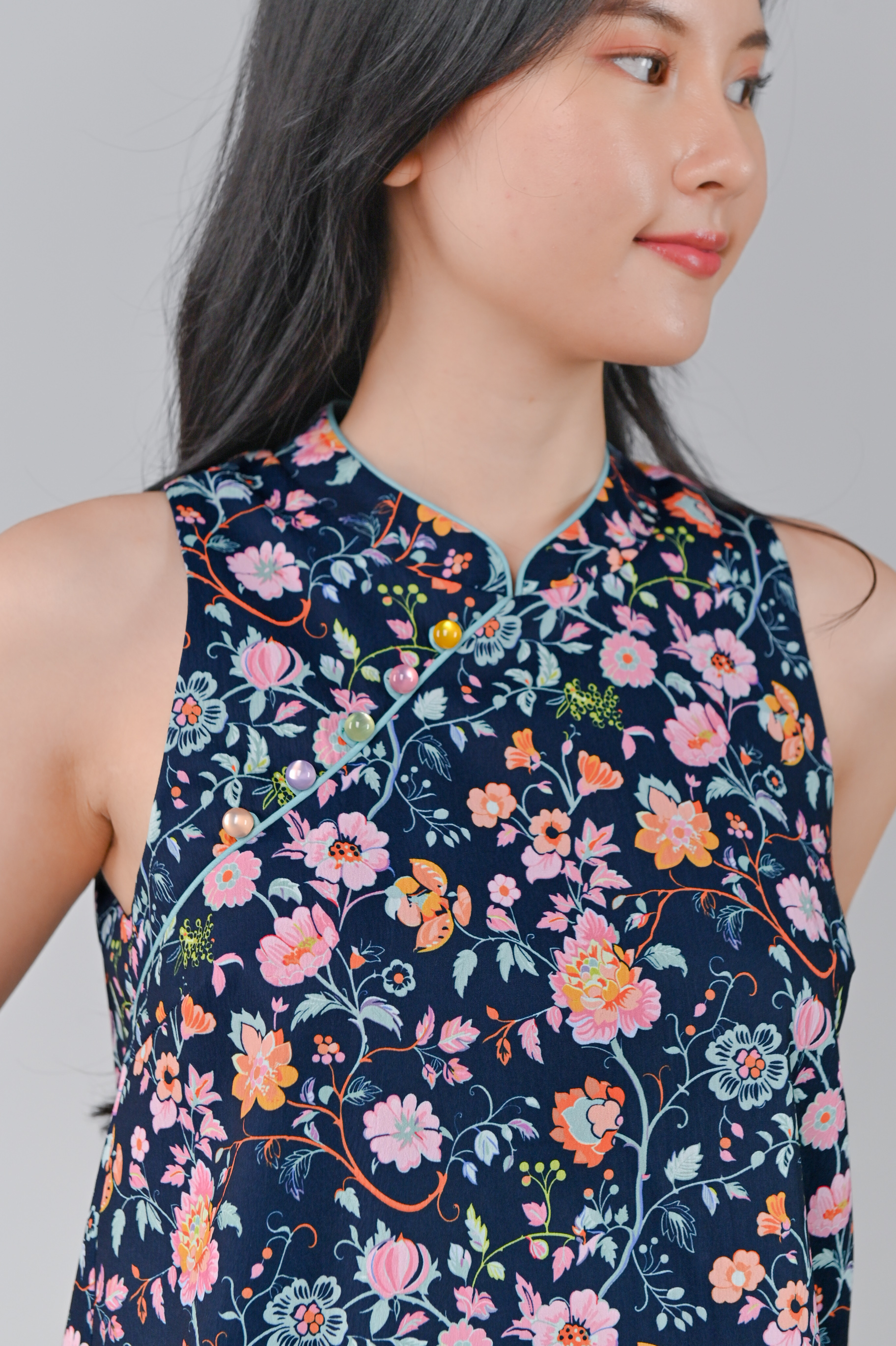 PEONY REVERIE SLEEVELESS CHEONGSAM TOP IN NAVY