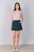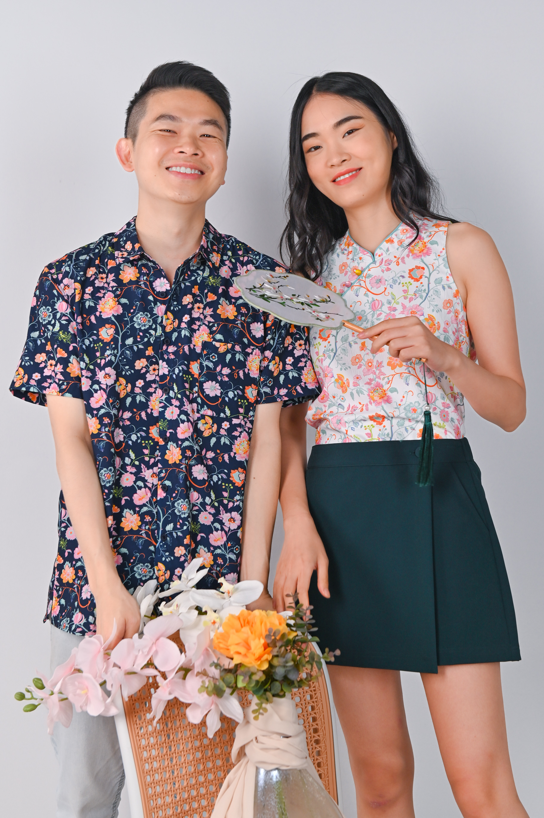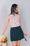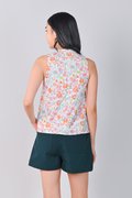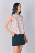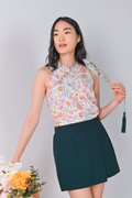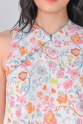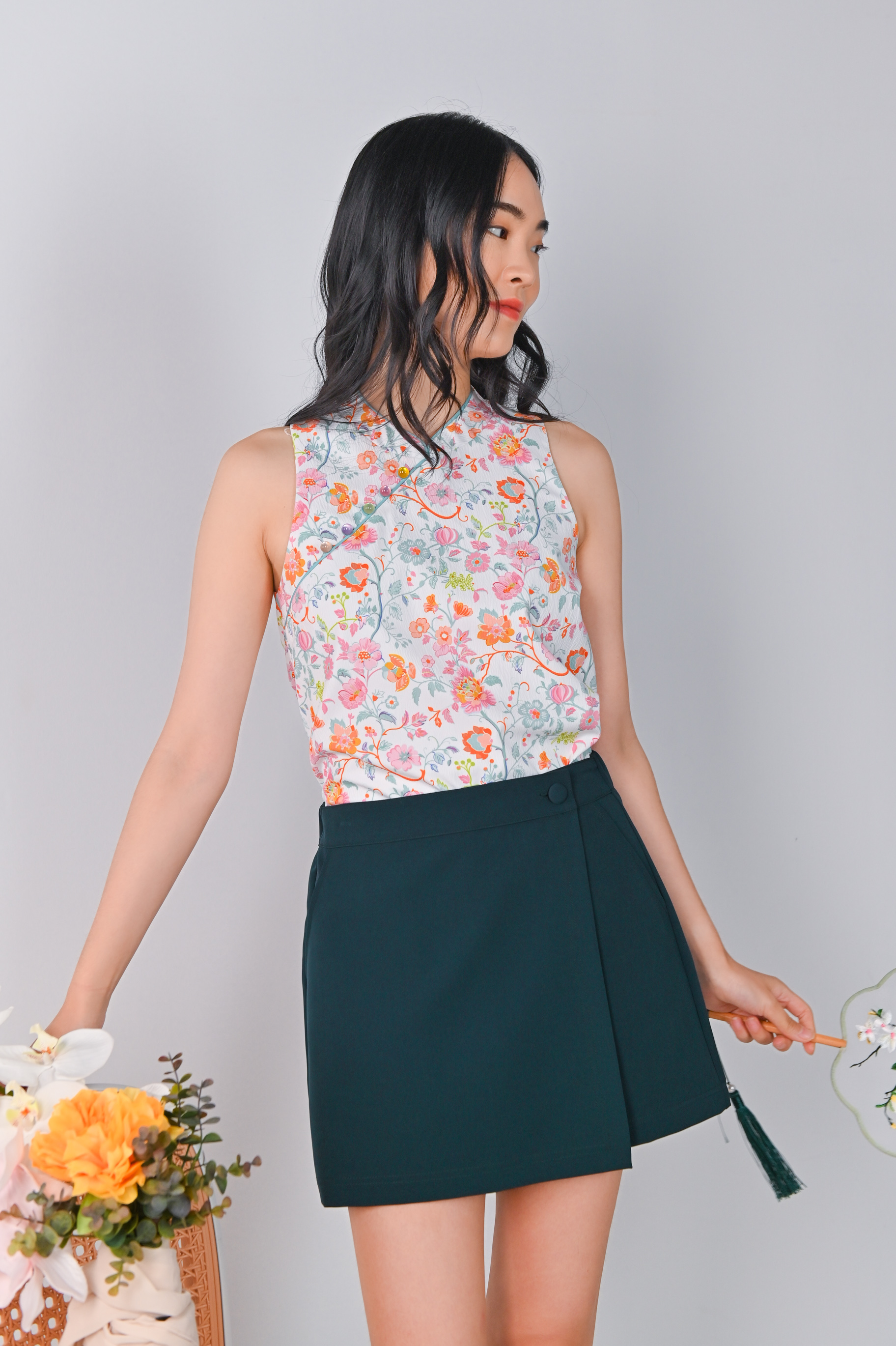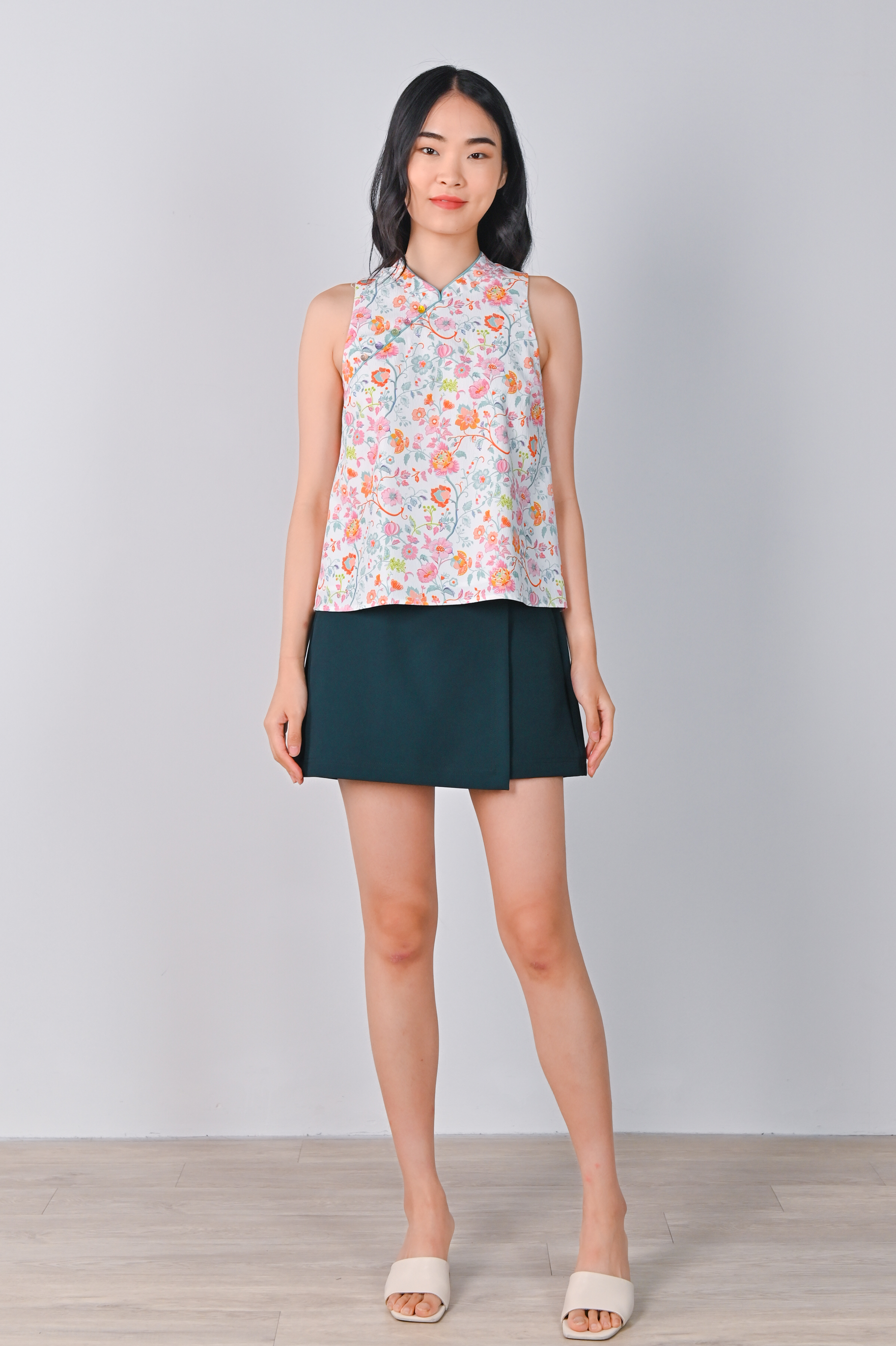 PEONY REVERIE SLEEVELESS CHEONGSAM TOP IN WHITE/GREEN