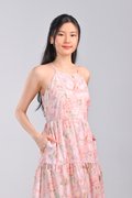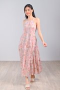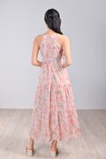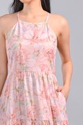 PINK BOTANICAL CUT-IN TIERED DRESS