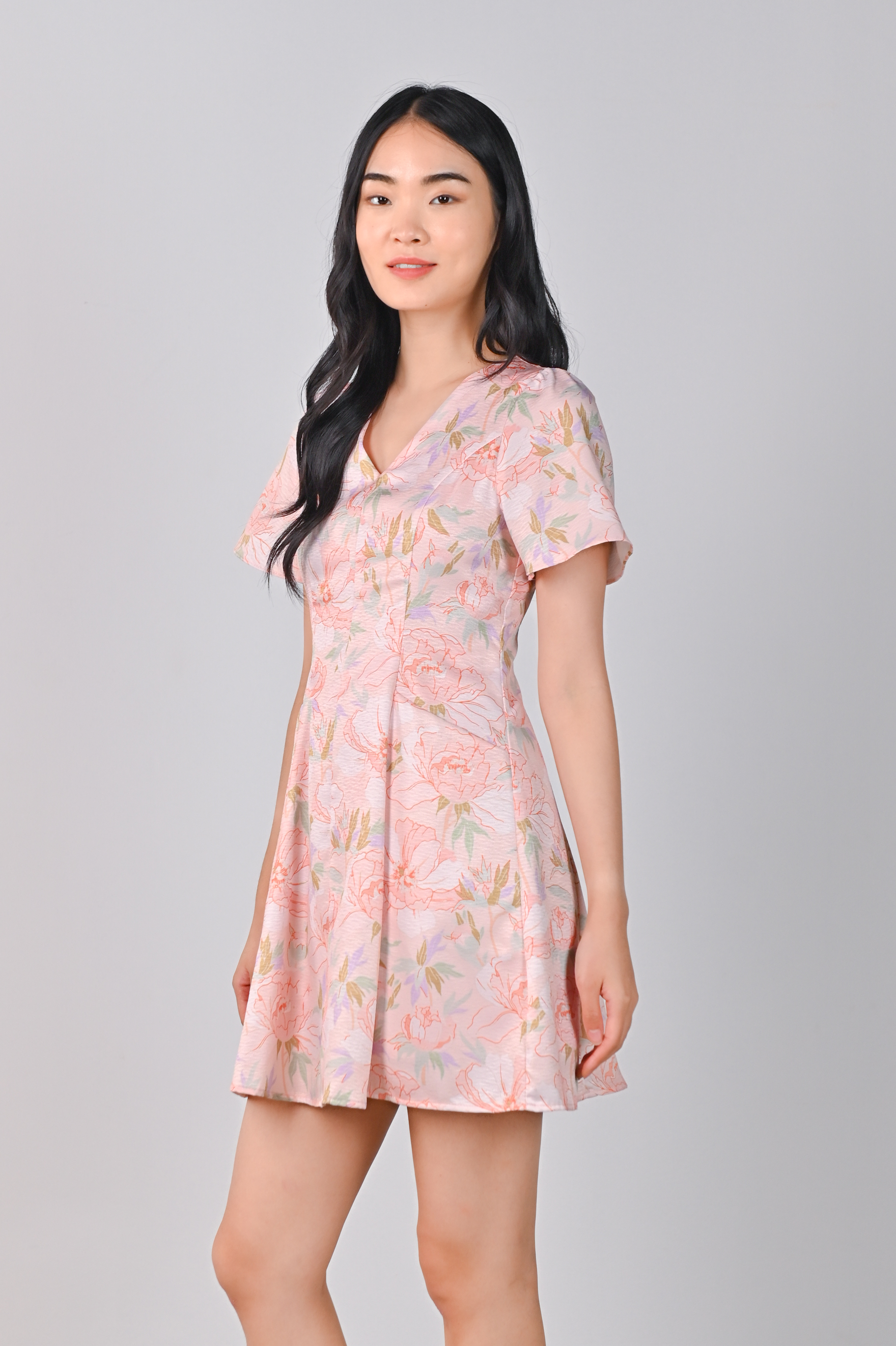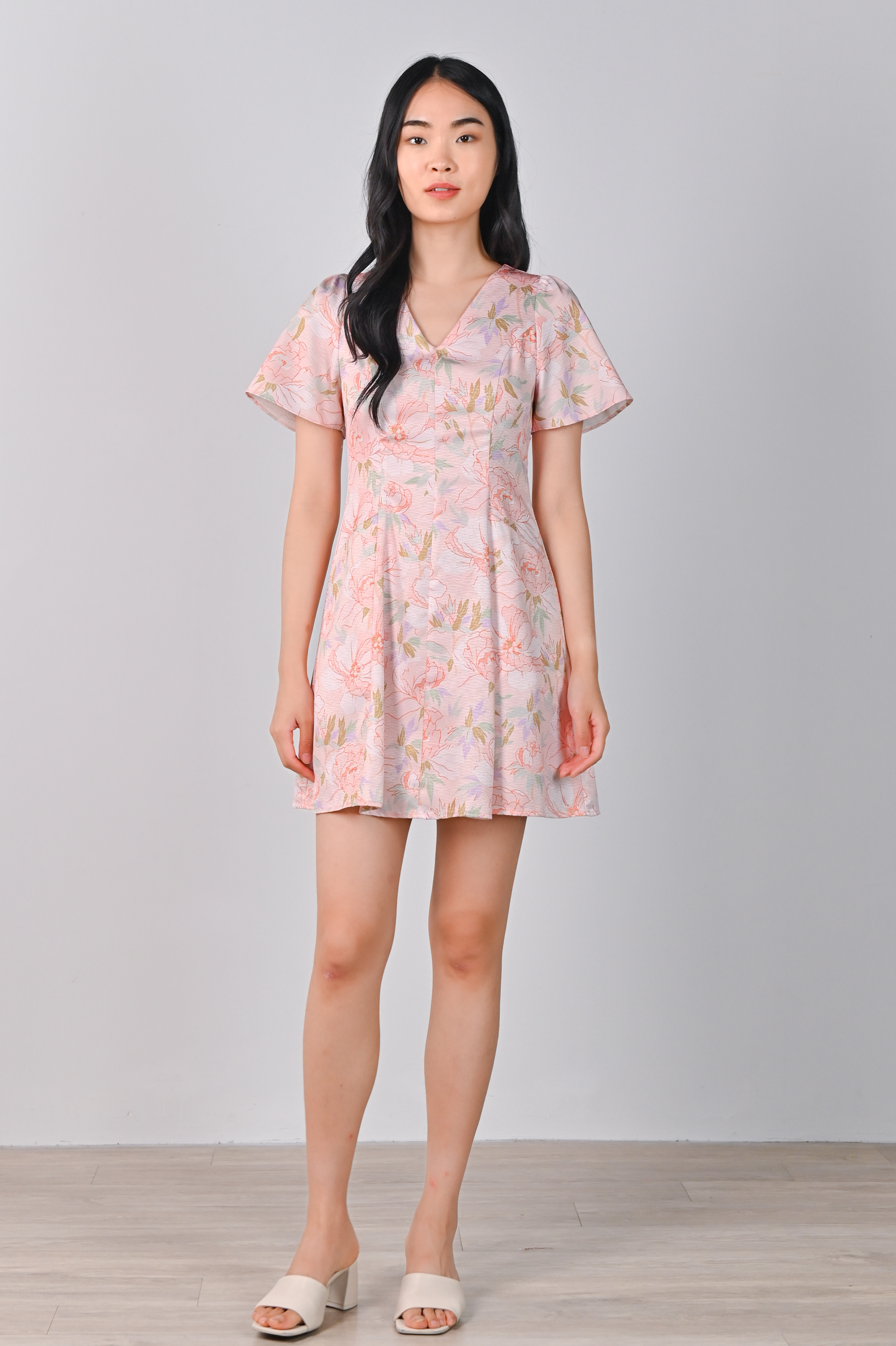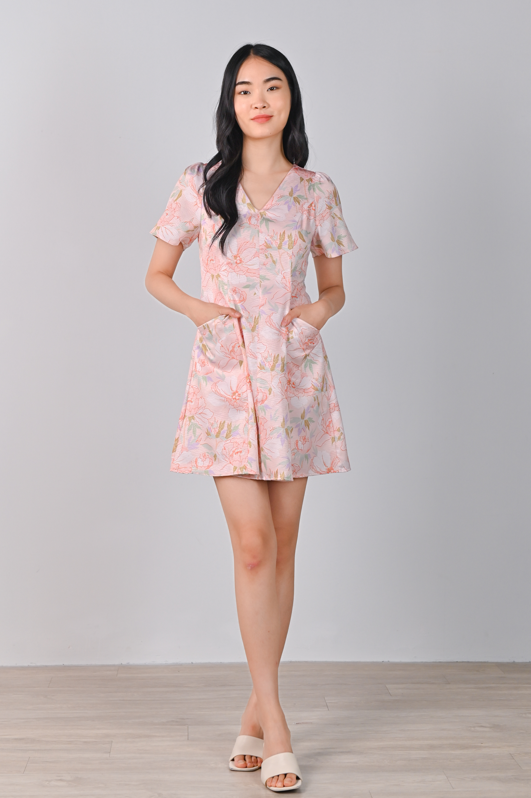 Actual stocks may varyShort, cute and beautiful! Step into the spotlight in our Pink Botanical Dress-Romper! 🤩