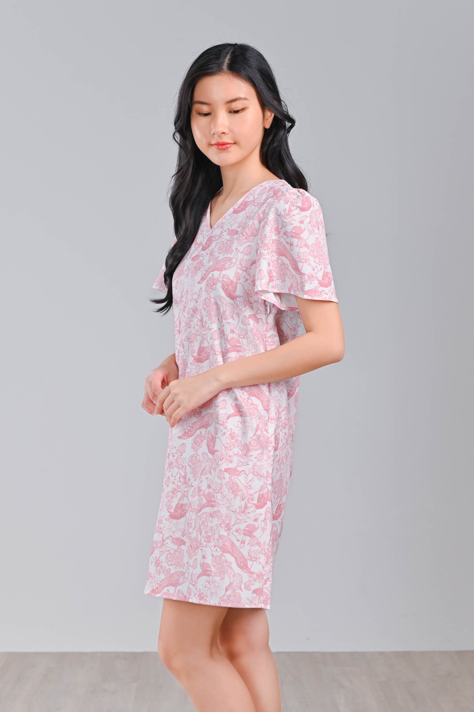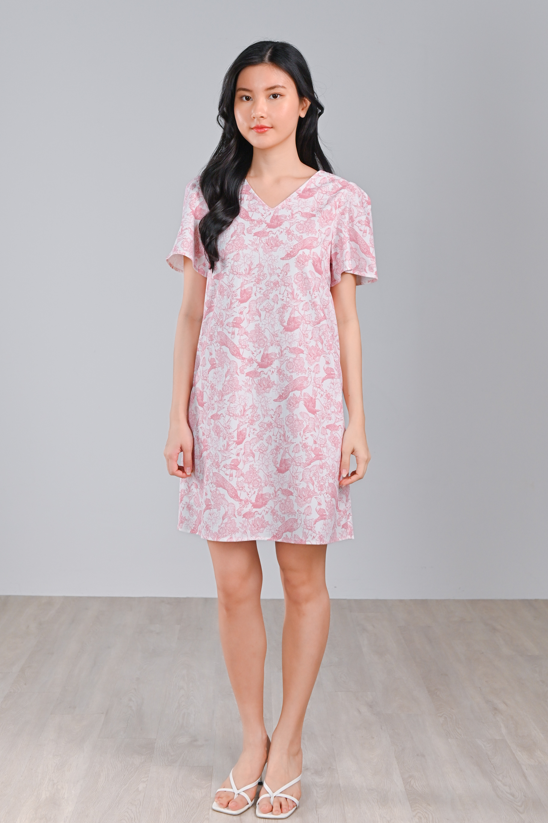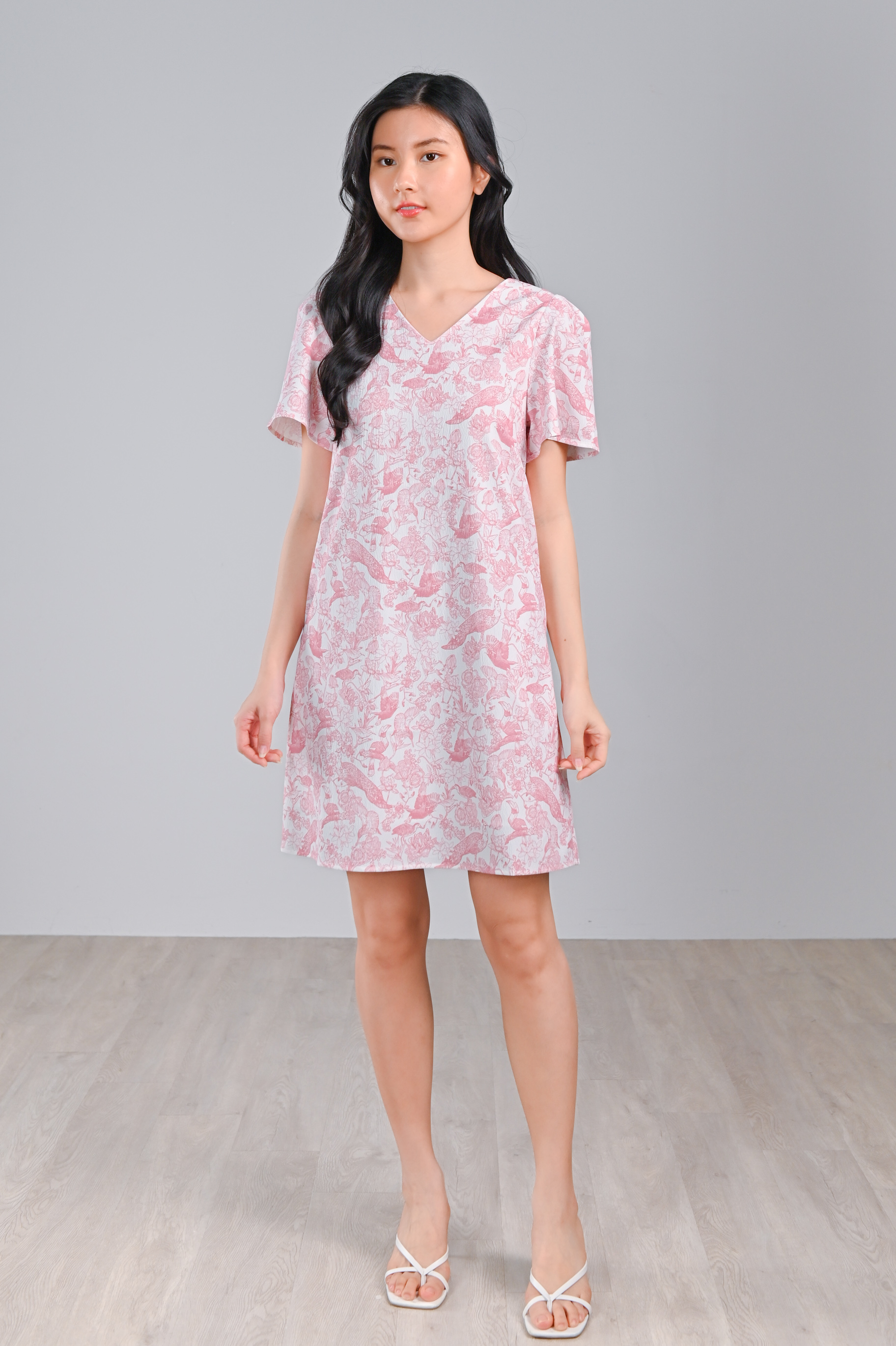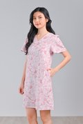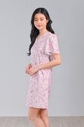 PINK FEATHERED TALES SLEEVED SHIFT DRESS