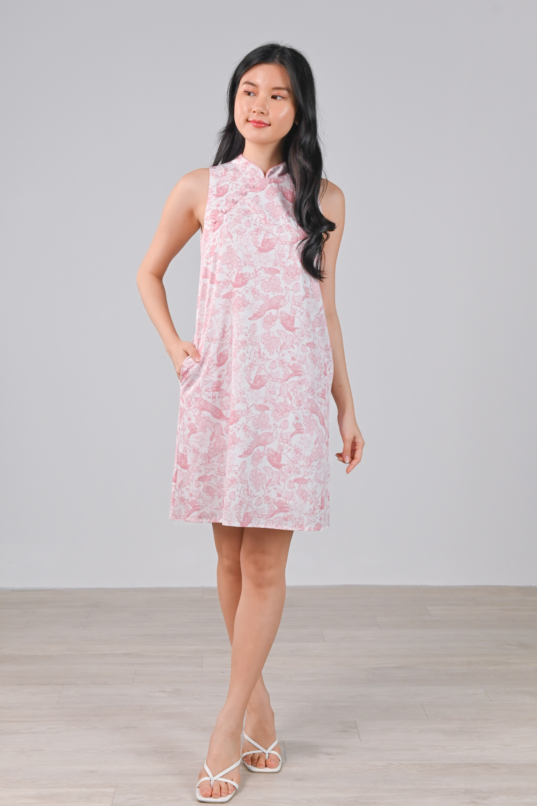 PINK FEATHERED TALES SLEEVELESS CHEONGSAM