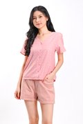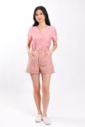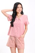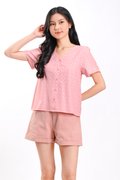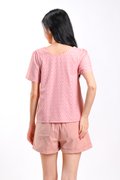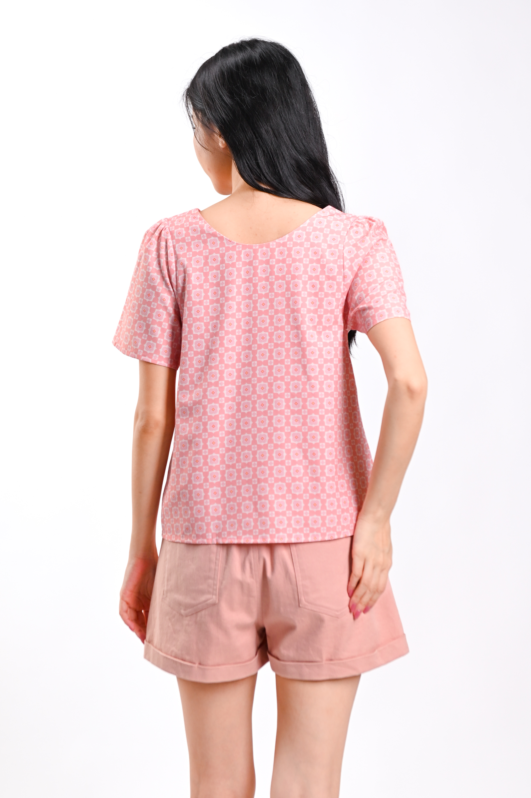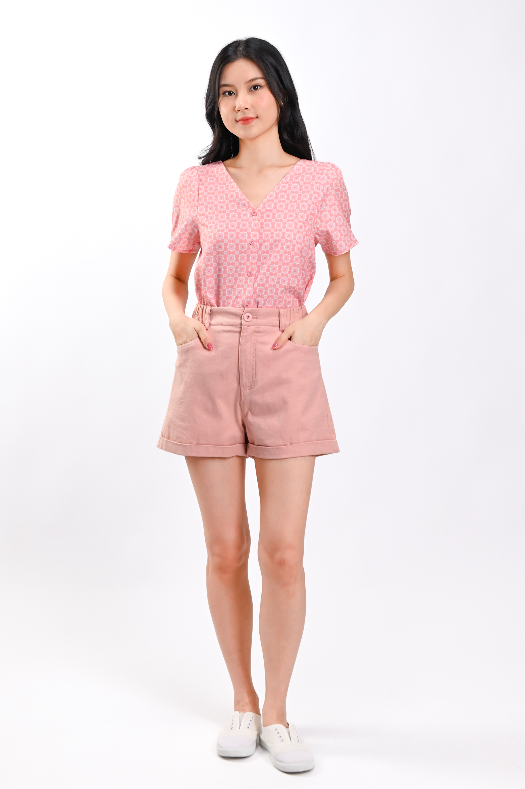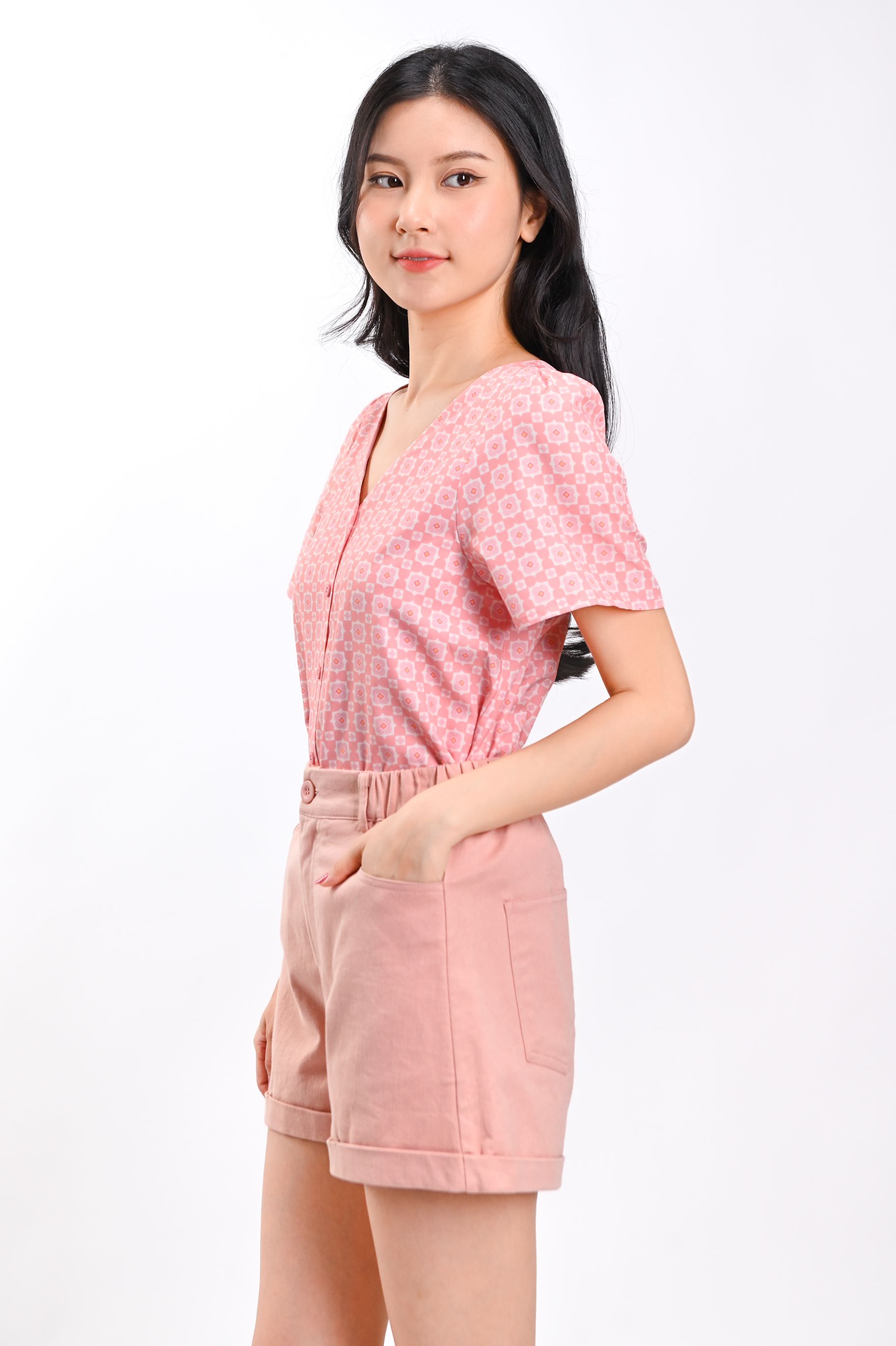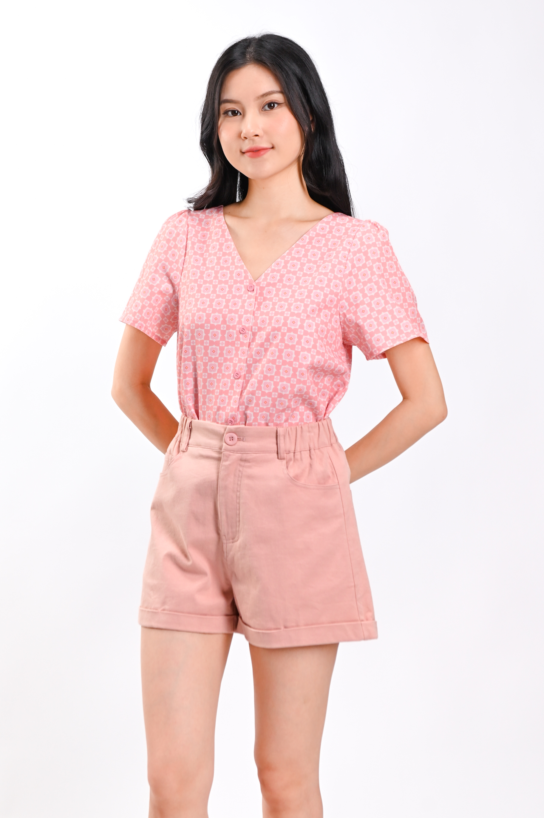 PINK PETITE PETALS SLEEVED BUTTON TOP