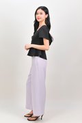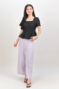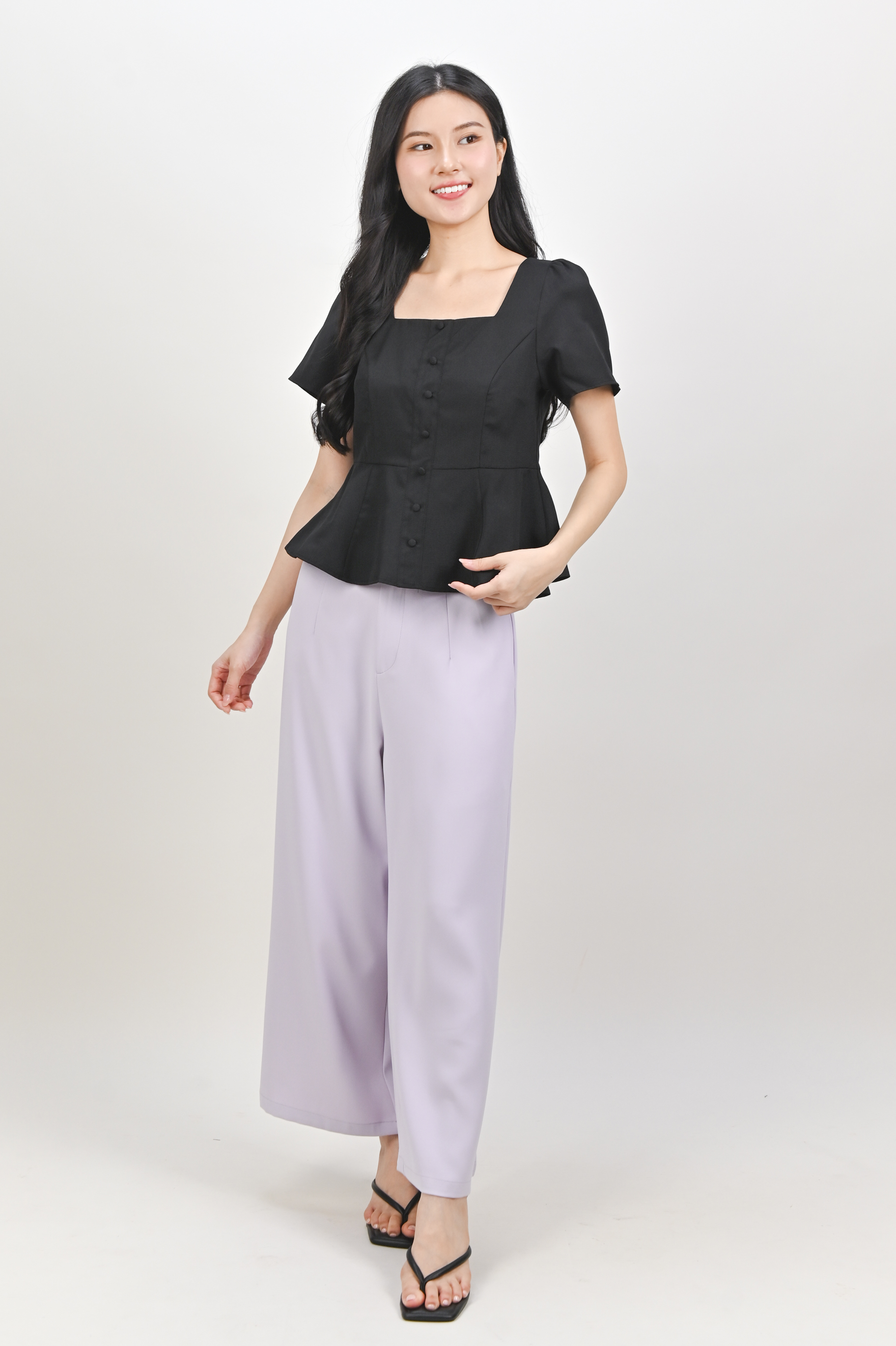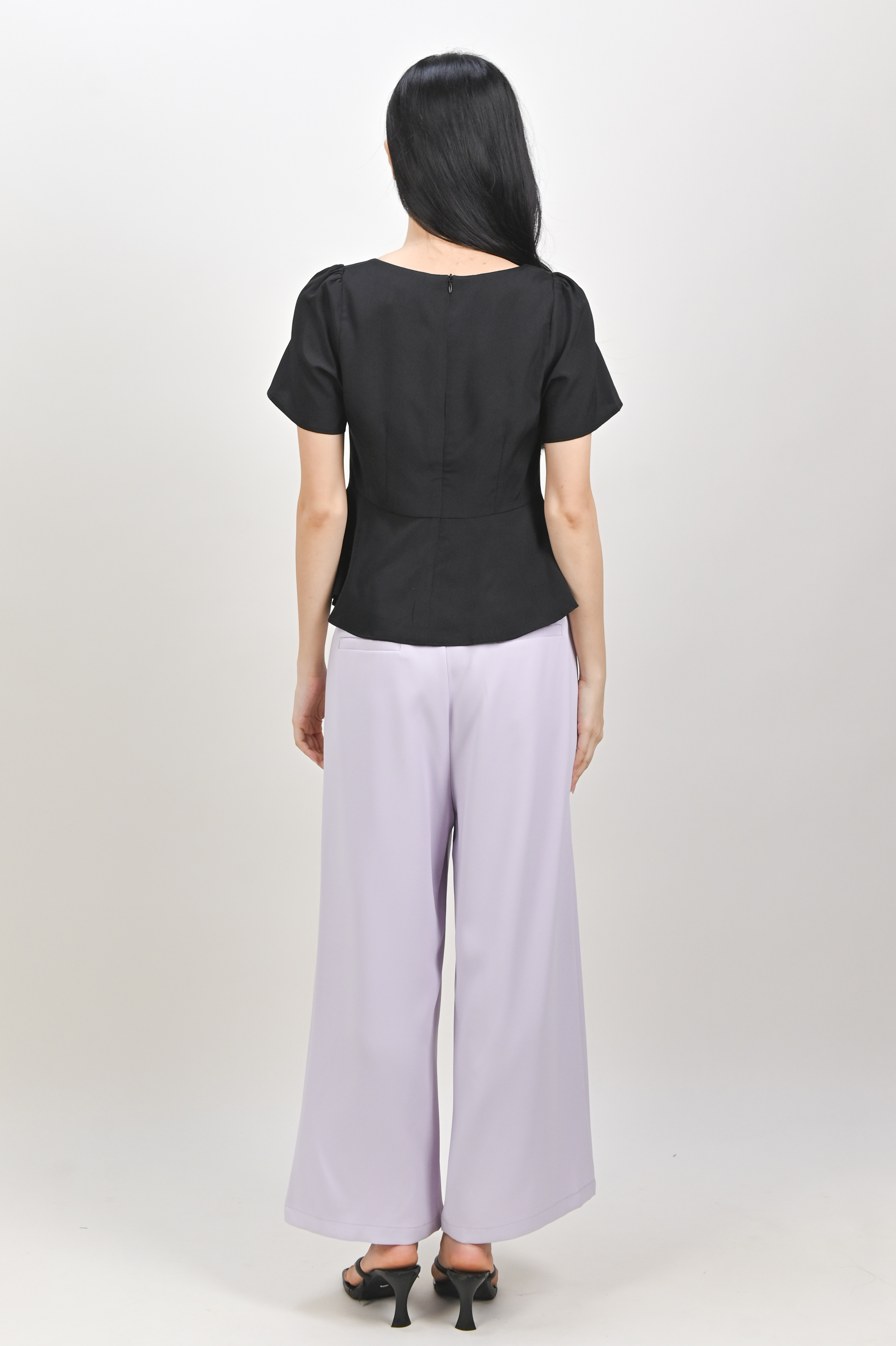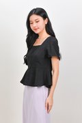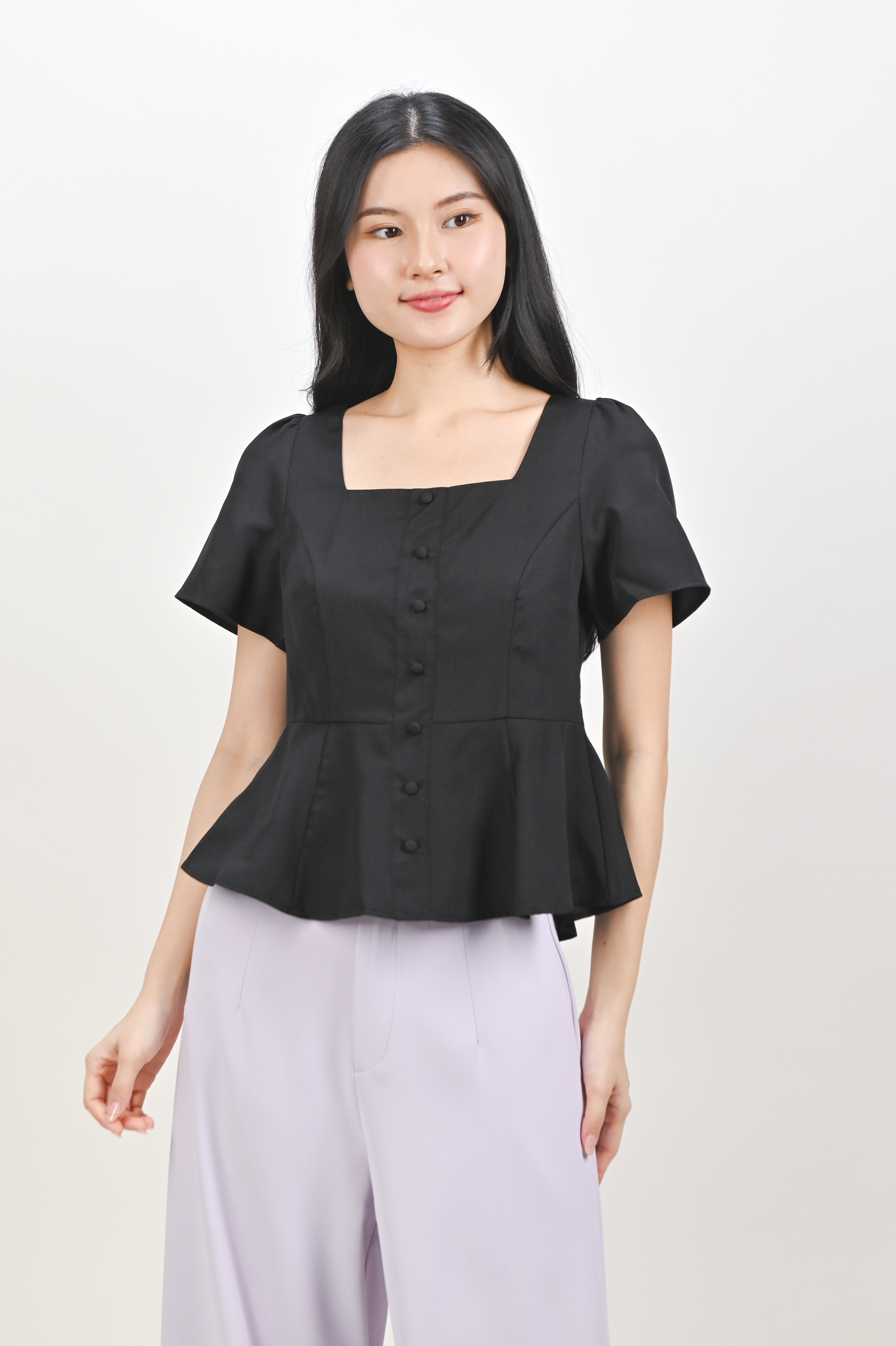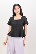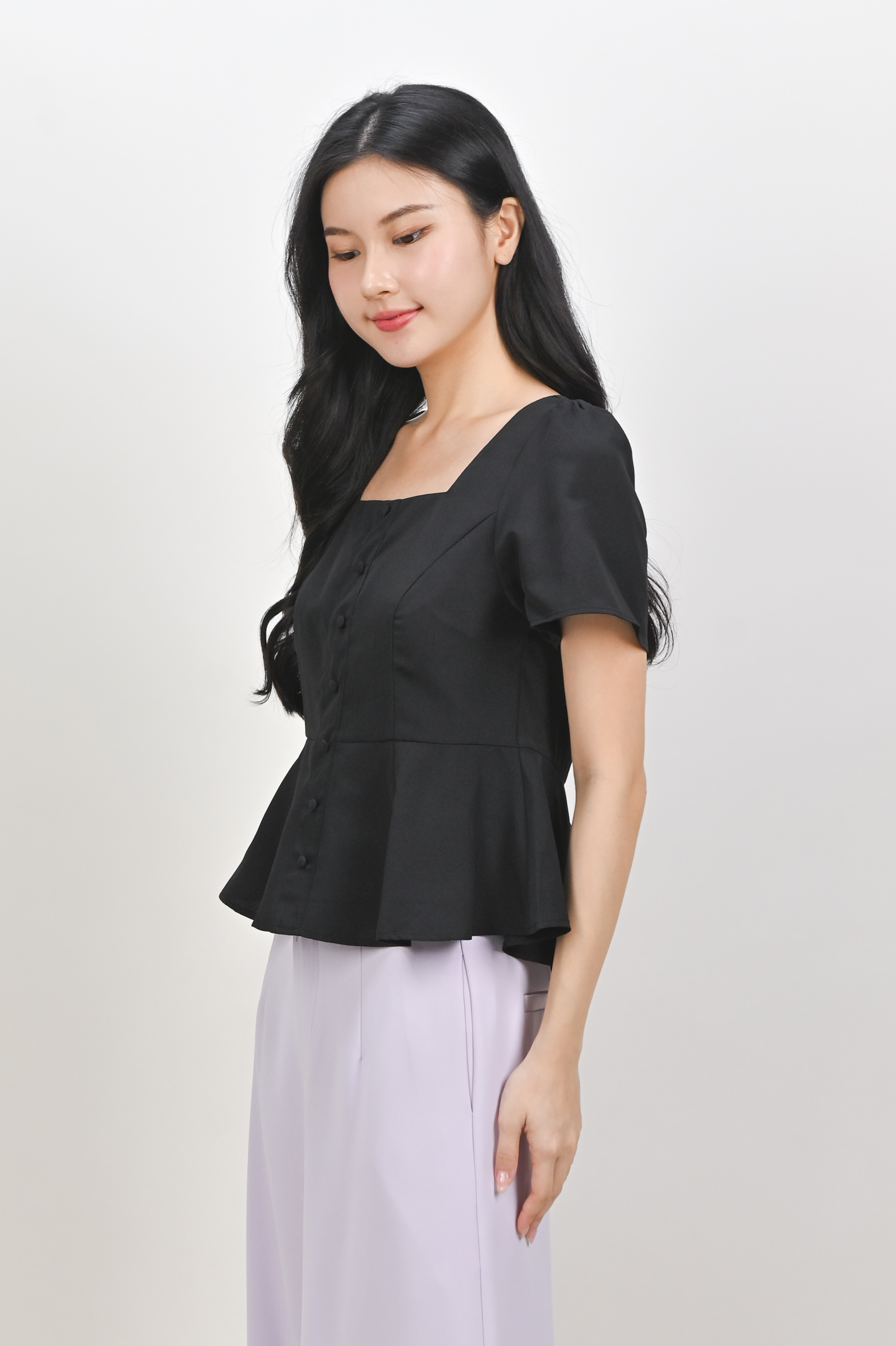 POET SQUARE-NECK SLEEVED PEPLUM TOP IN BLACK