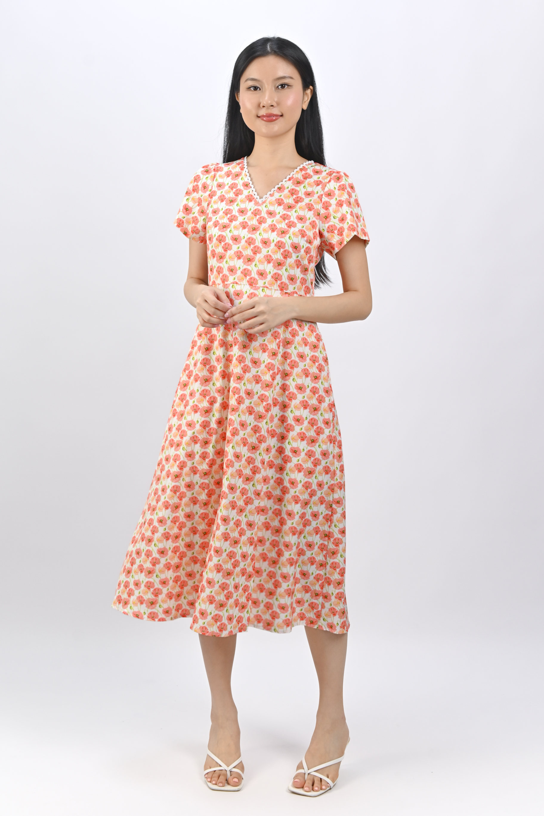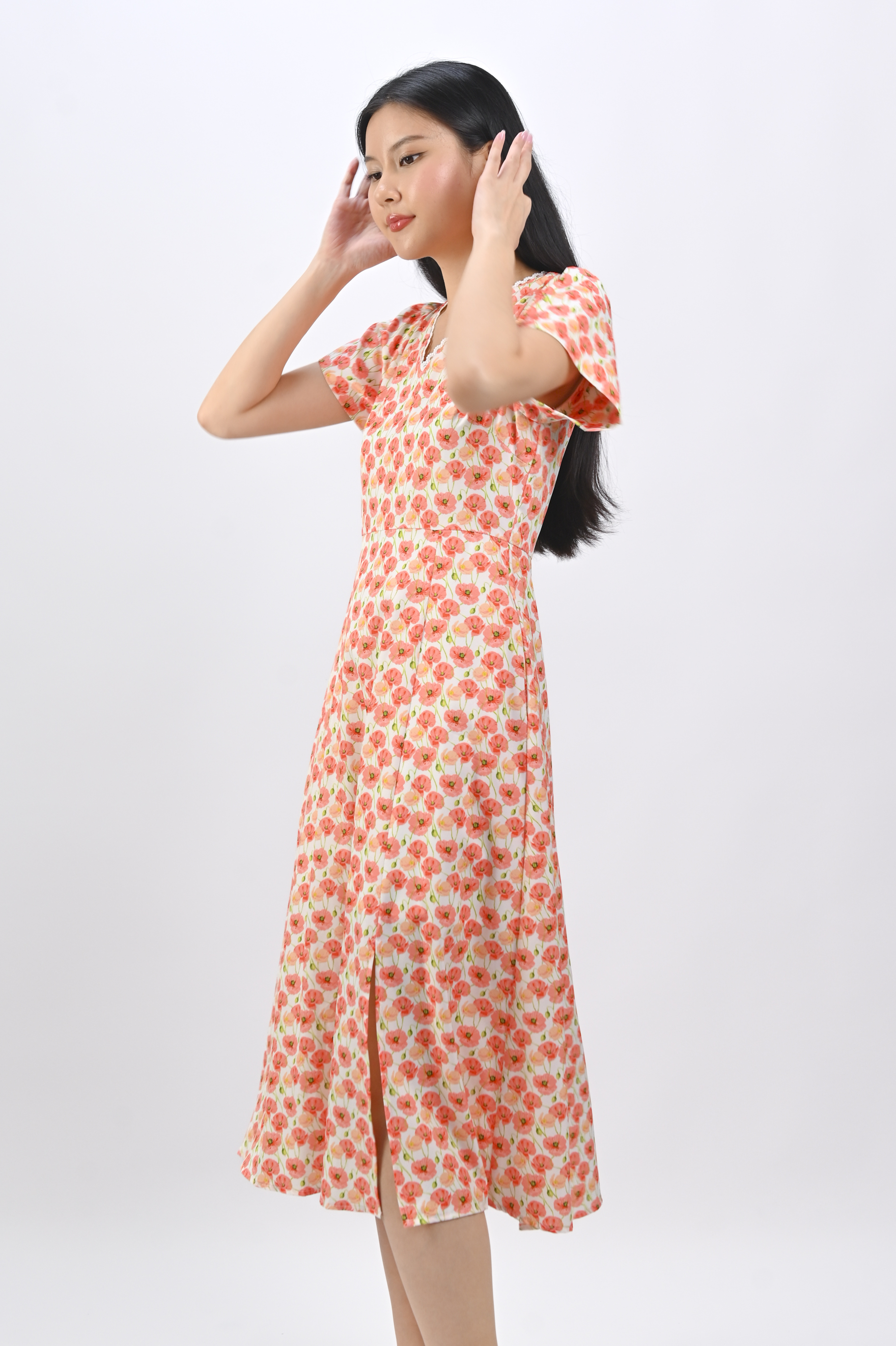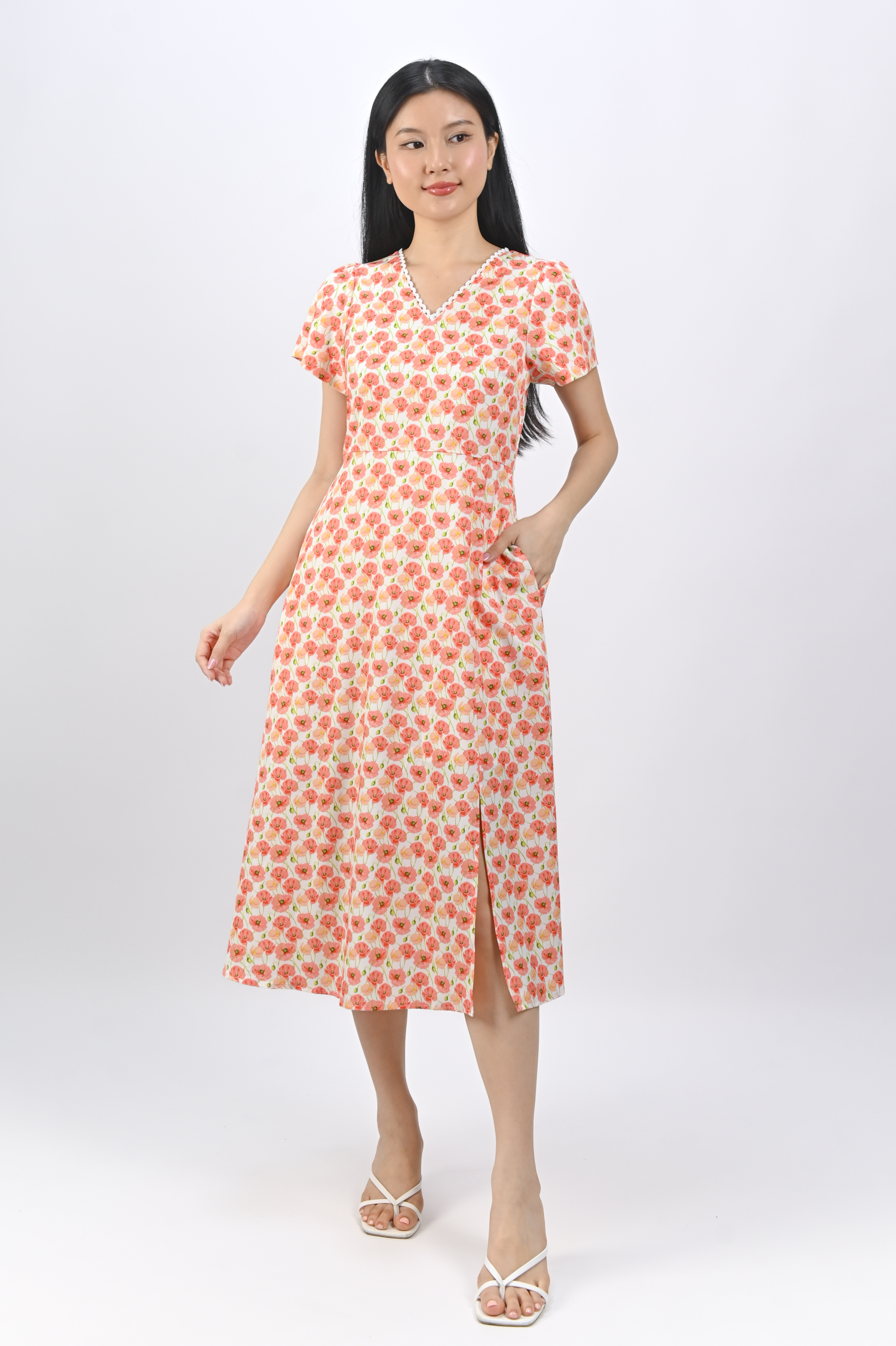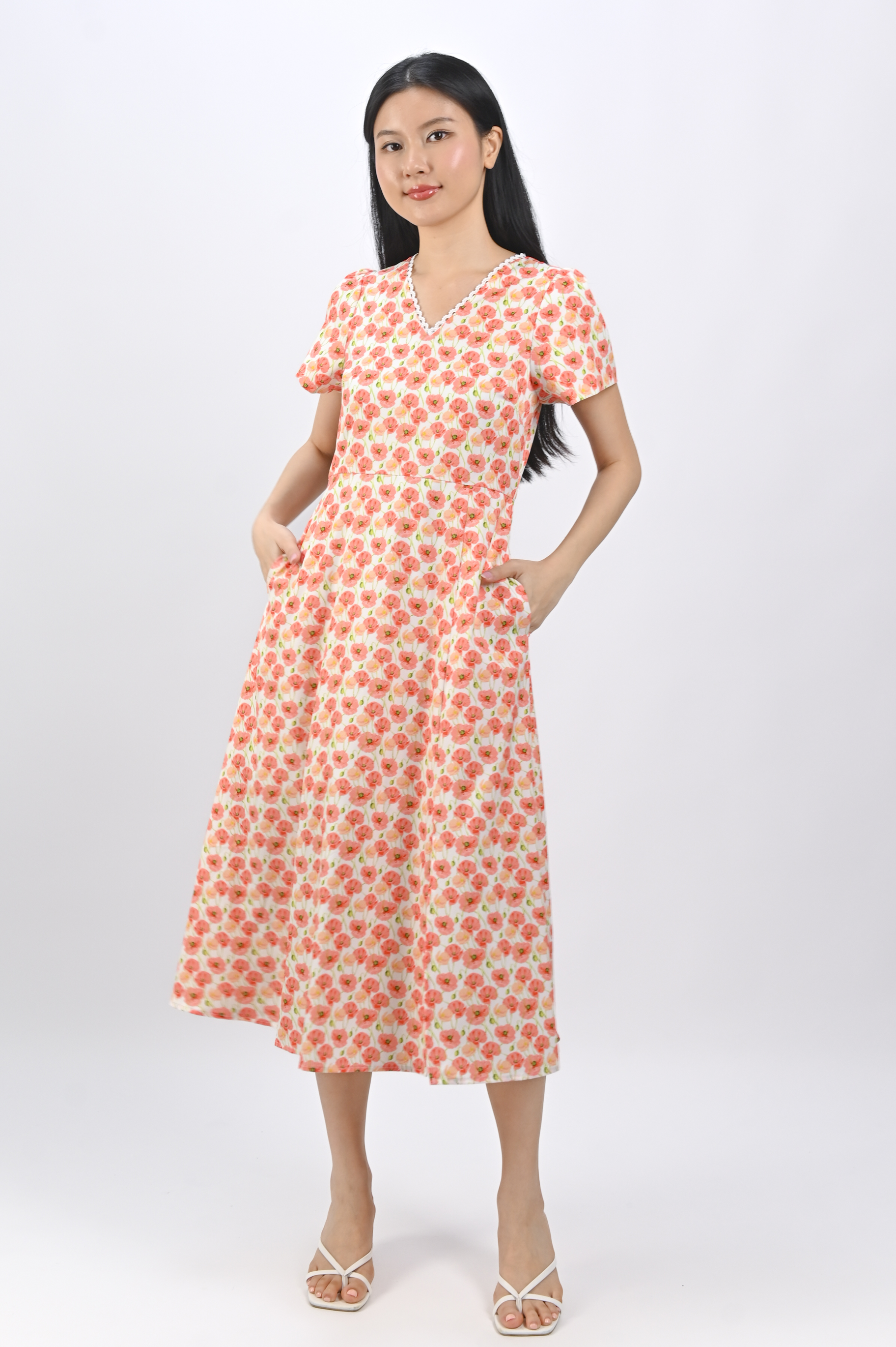Actual stocks may varyBask in floral goodness and let your dreams bloom in our Poppy Garden Sleeved Midi Dress 🌸🌼