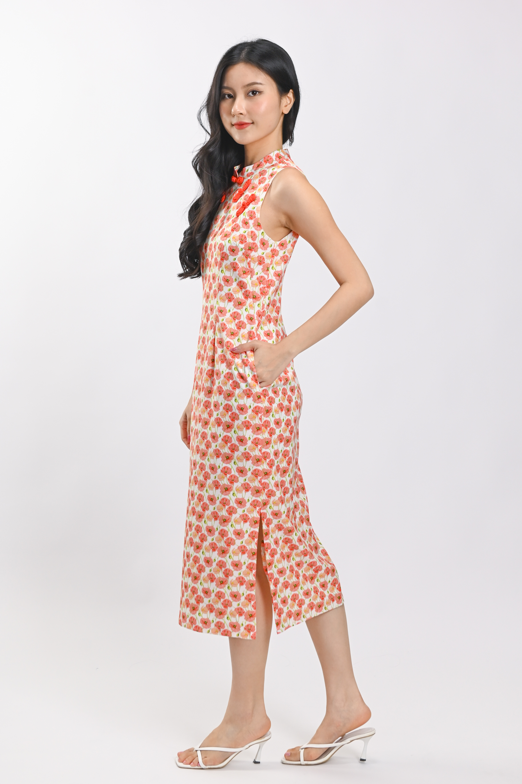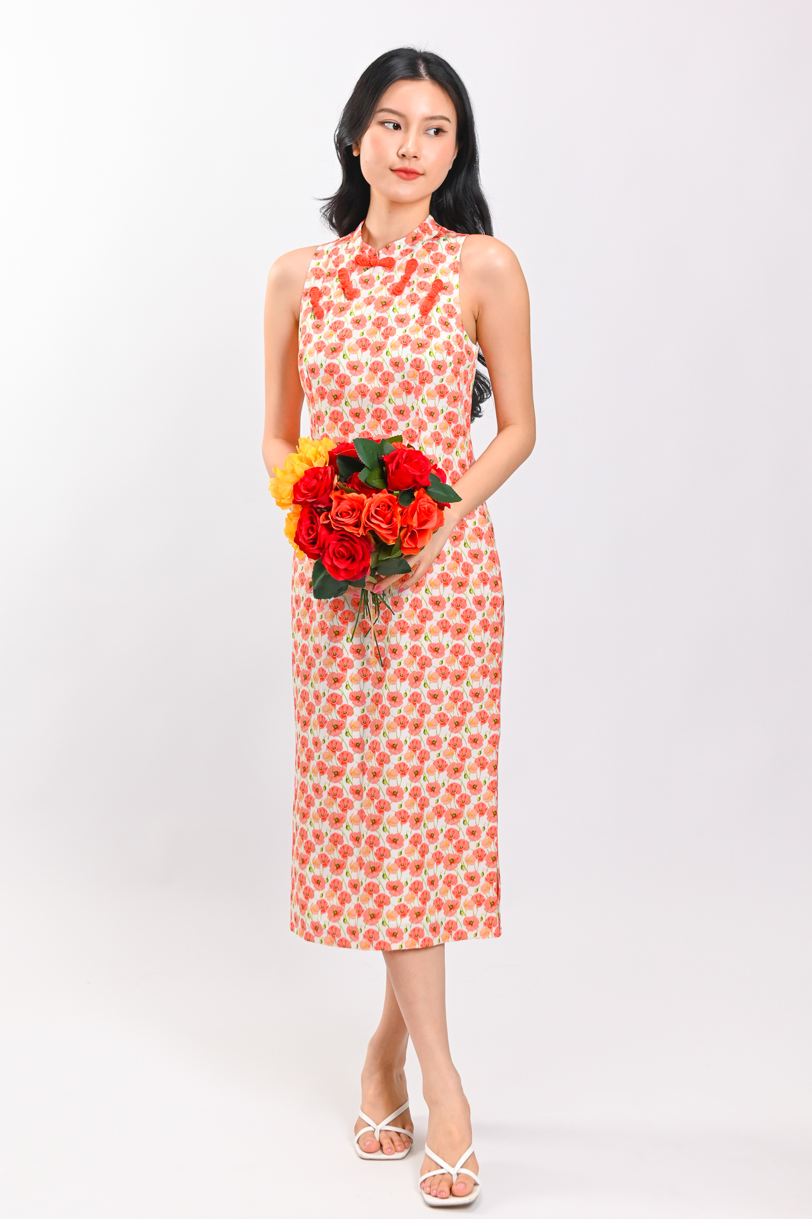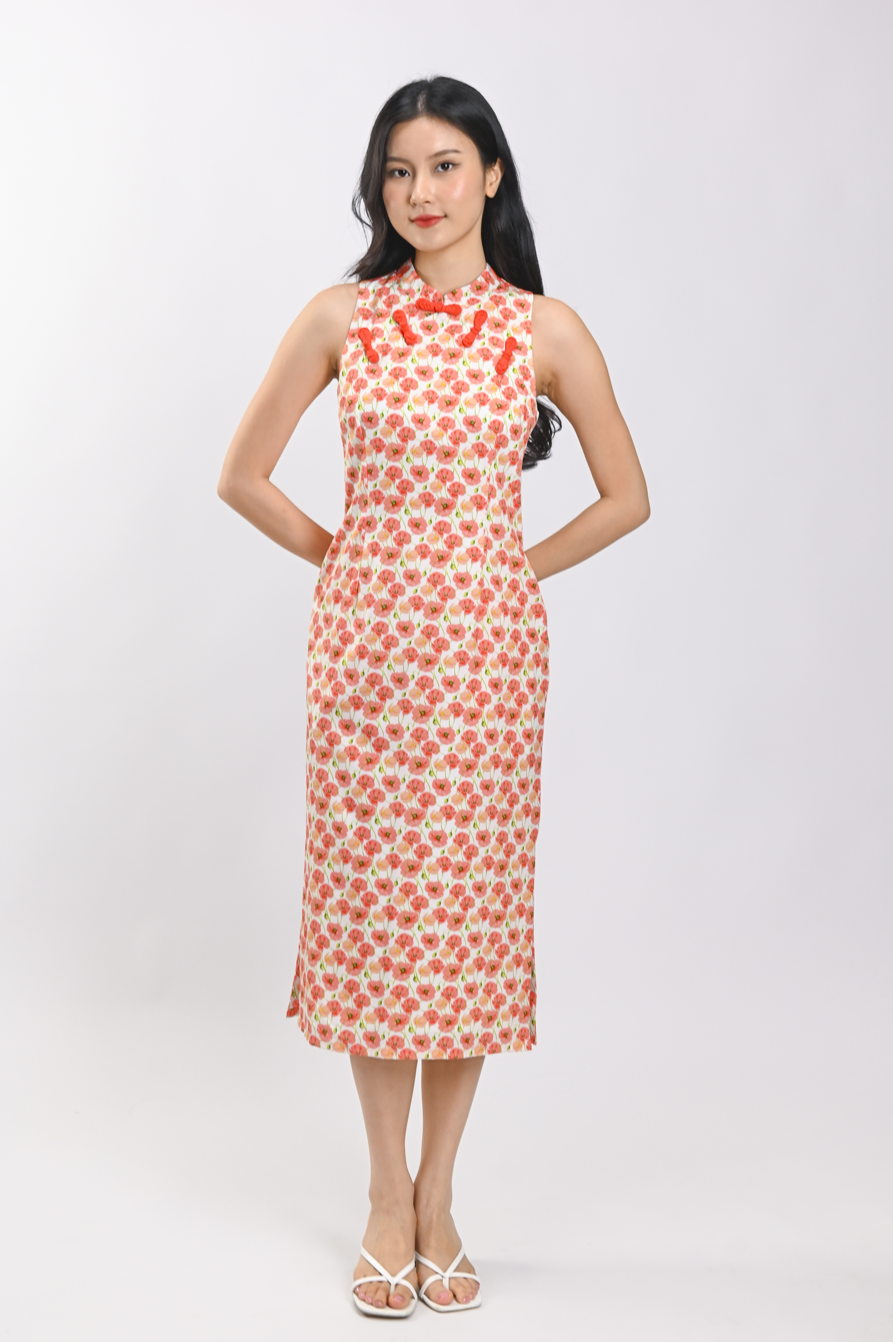 POPPY GARDEN SLEEVELESS CHEONGSAM DRESS