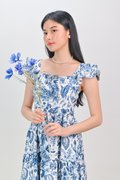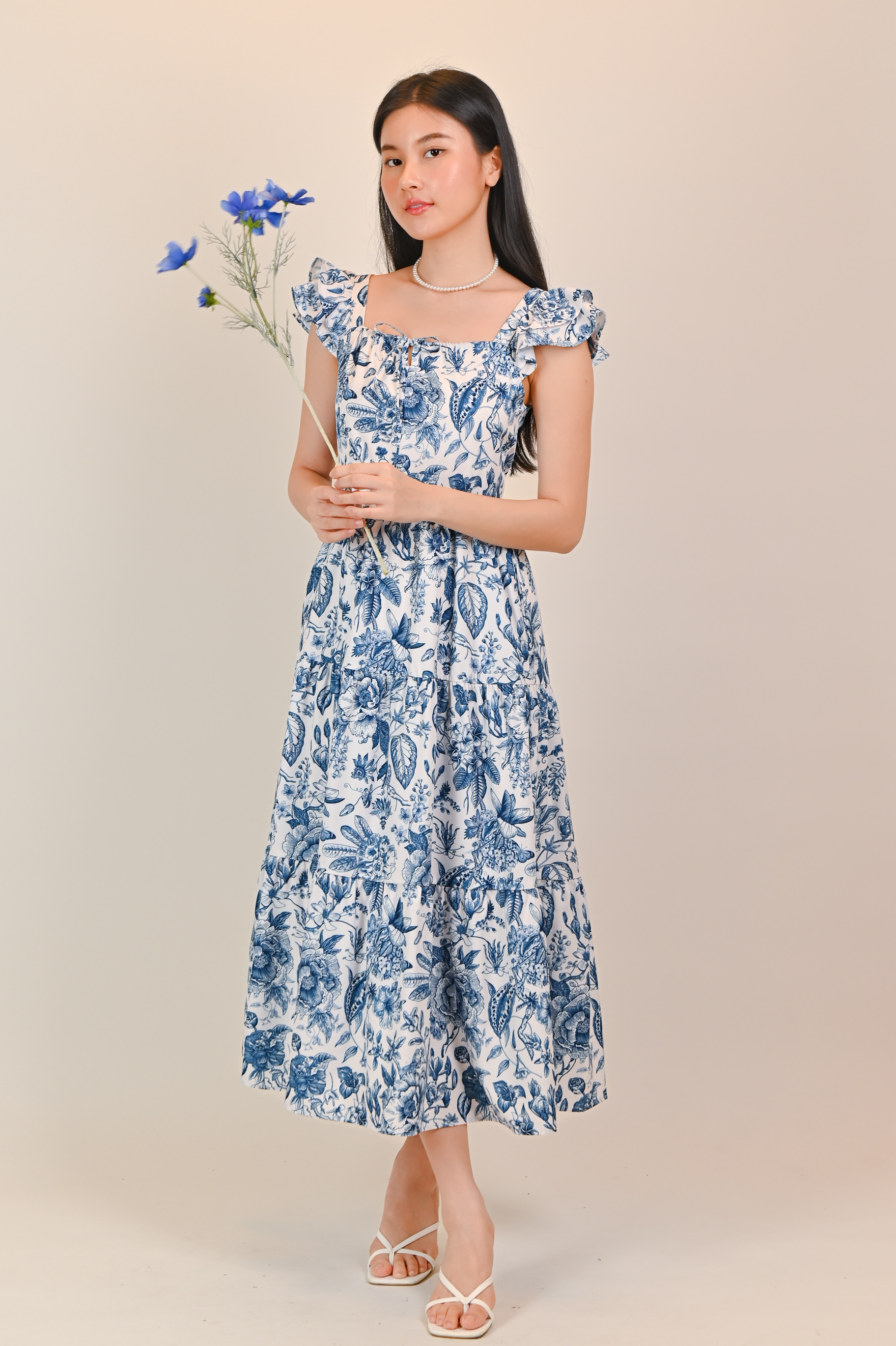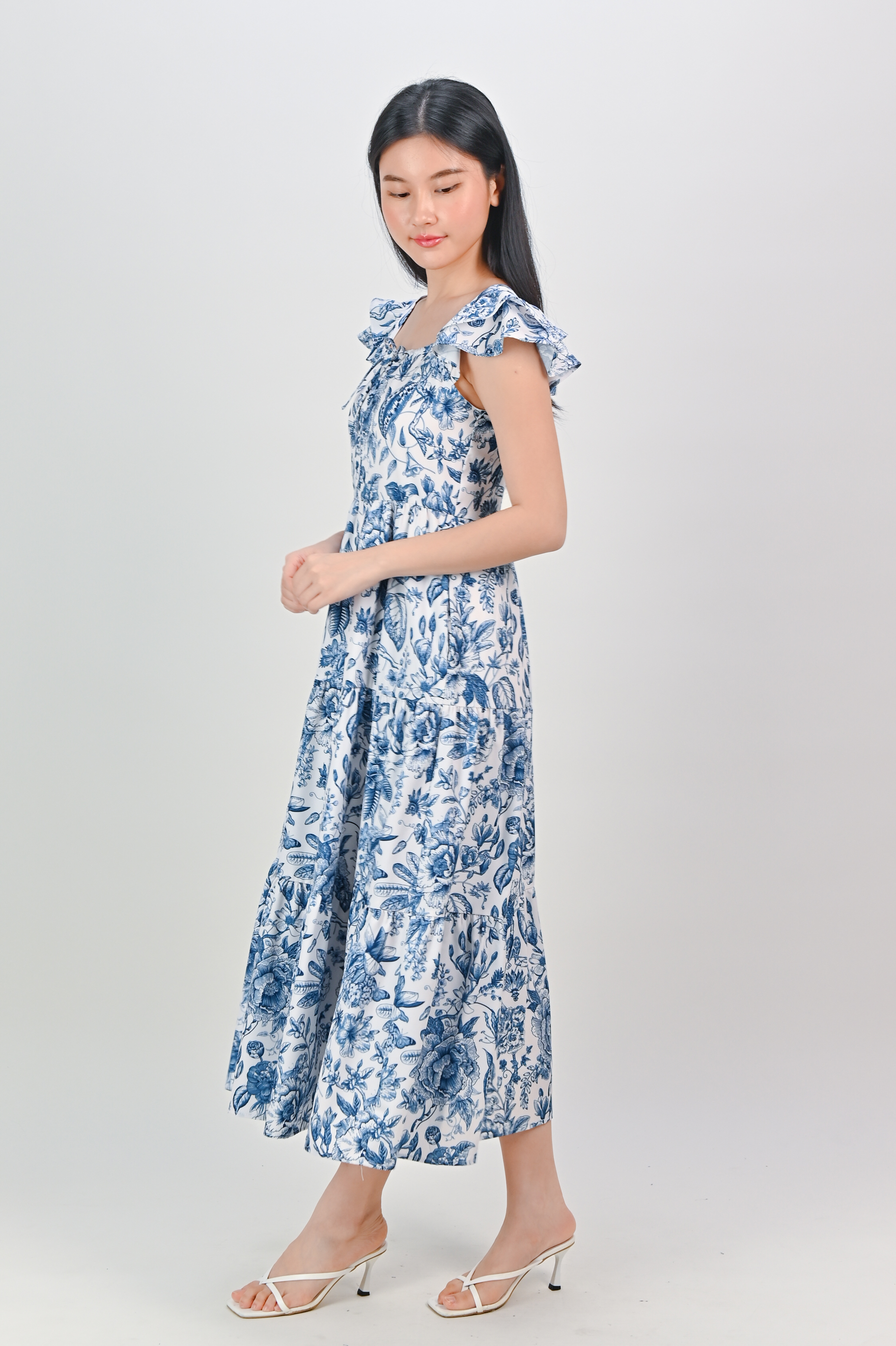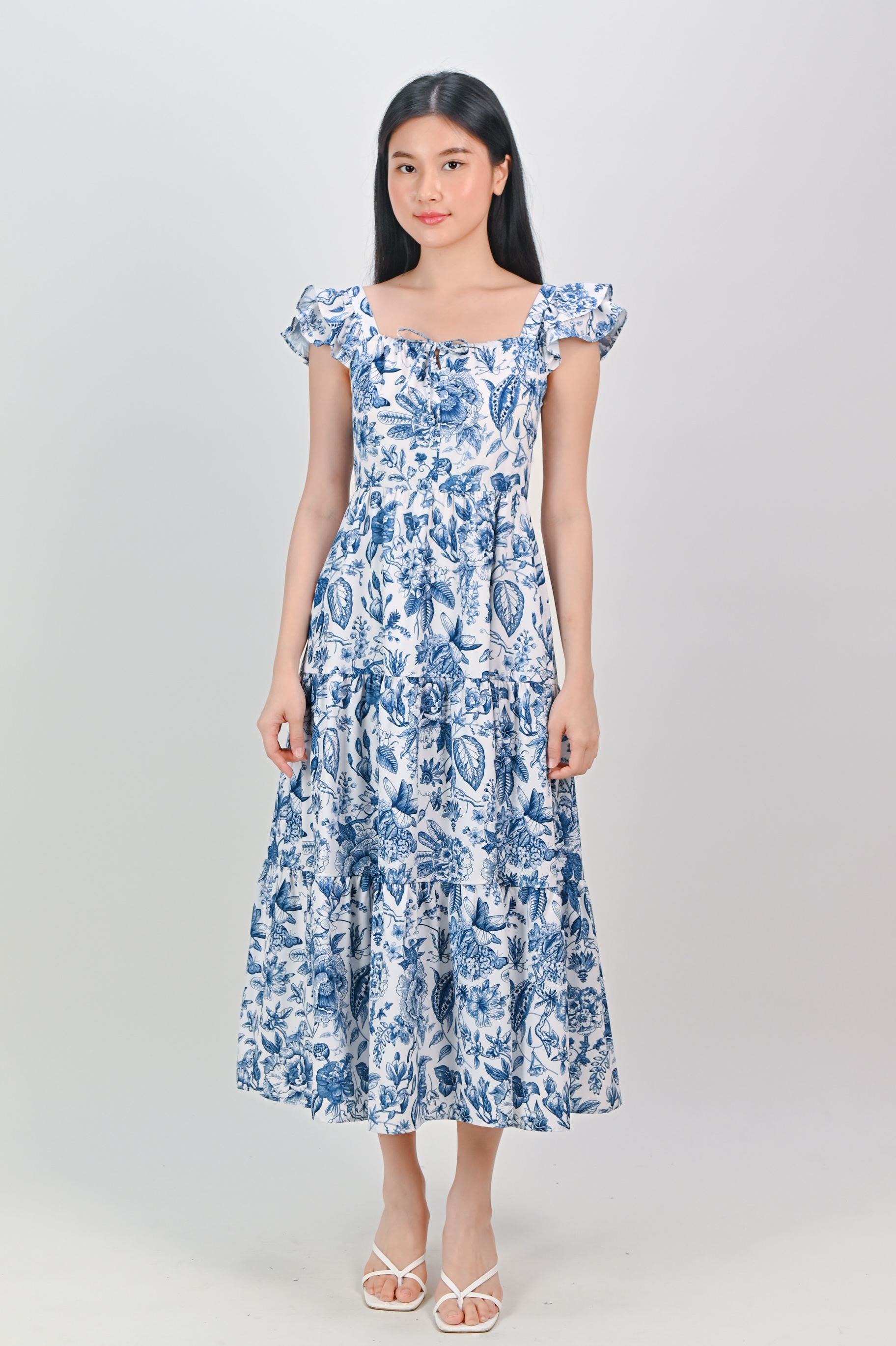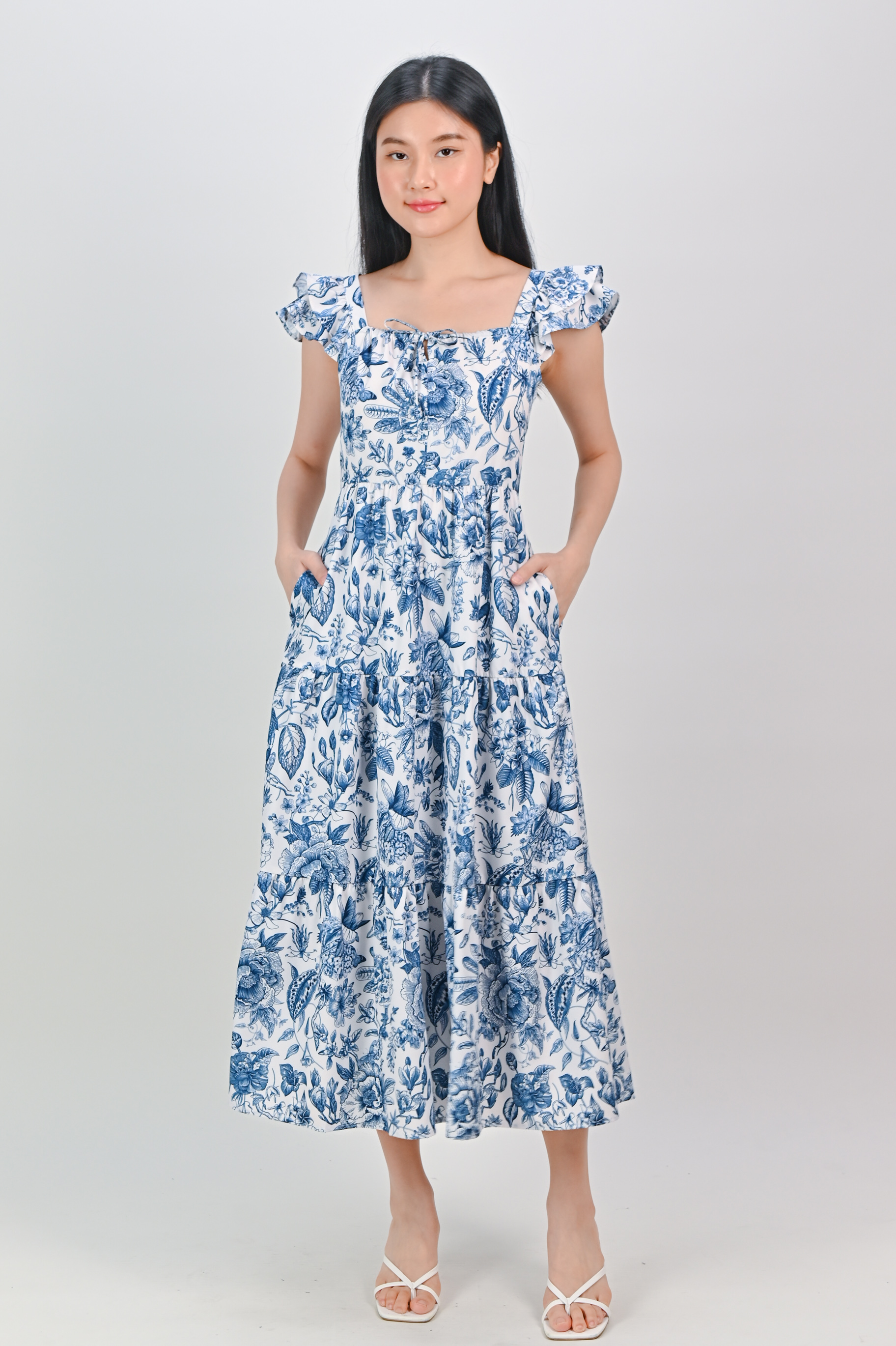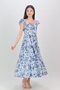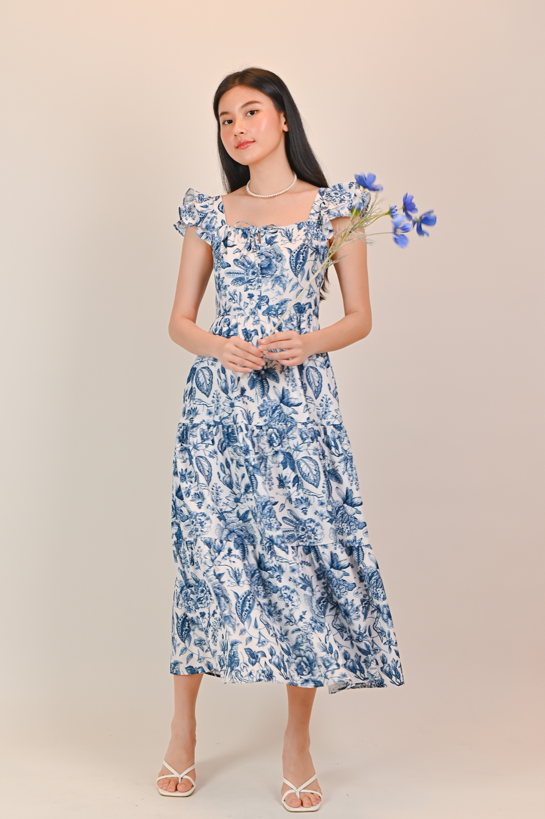 PORCELAIN BLOOMS RUFFLE TIE-DETAIL MAXI