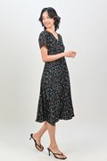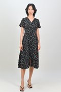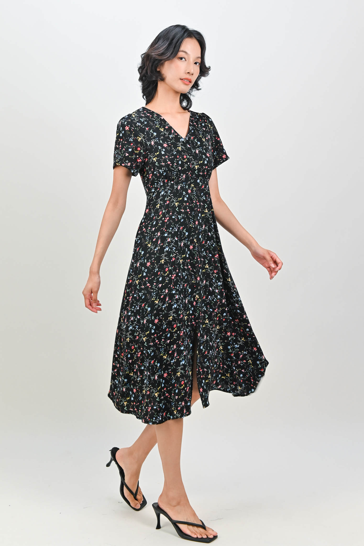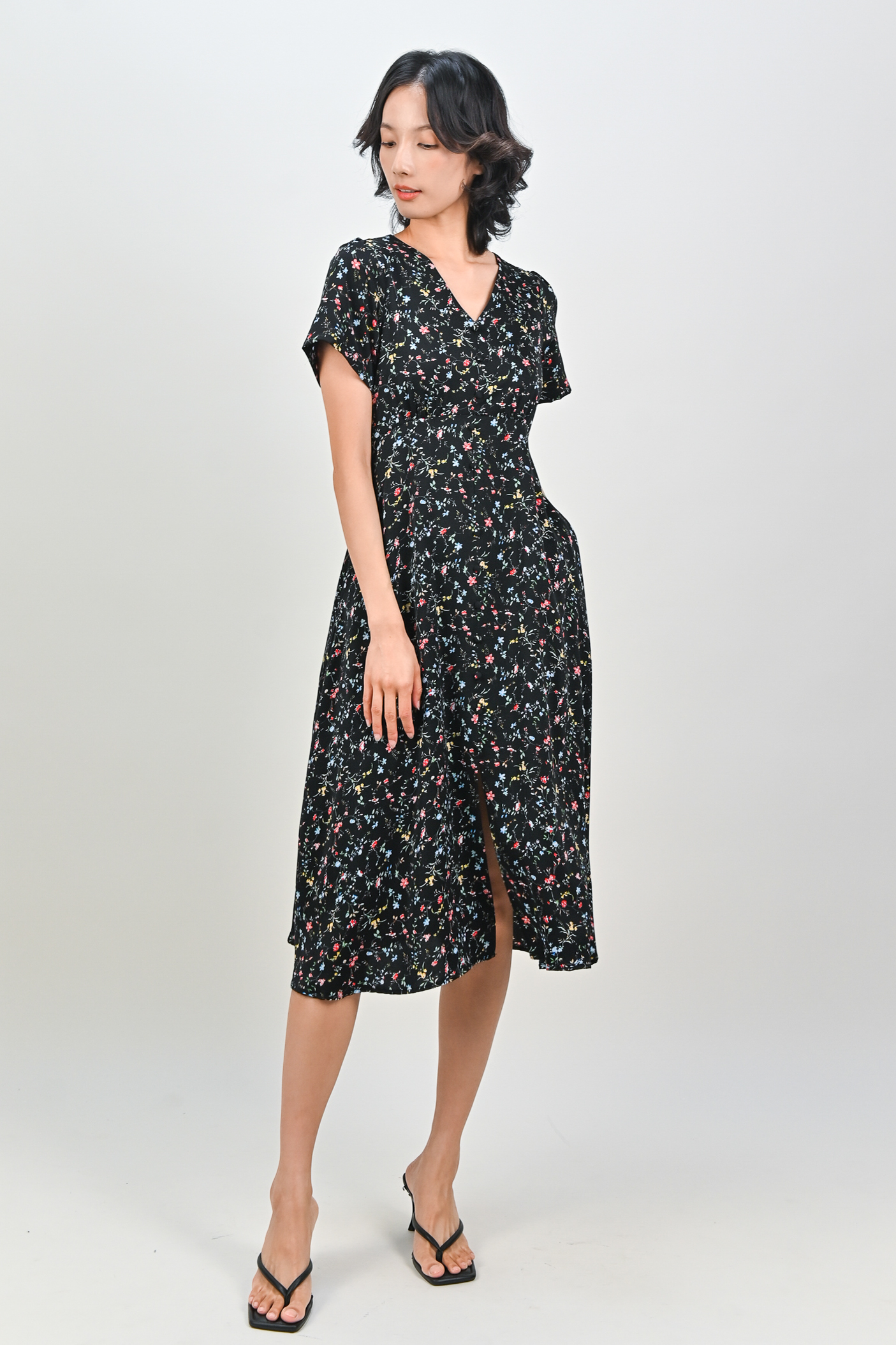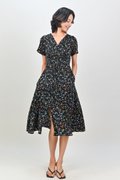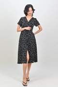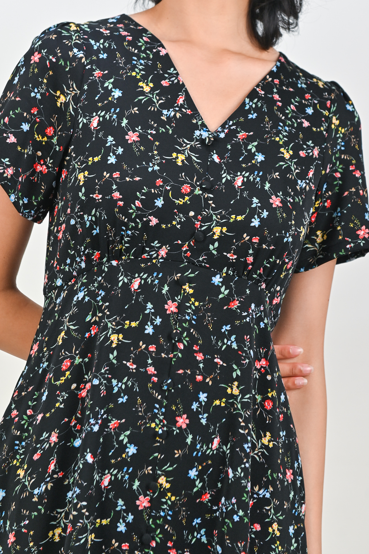 PORTMAN FLORAL SLEEVED BUTTON DRESS IN BLACK