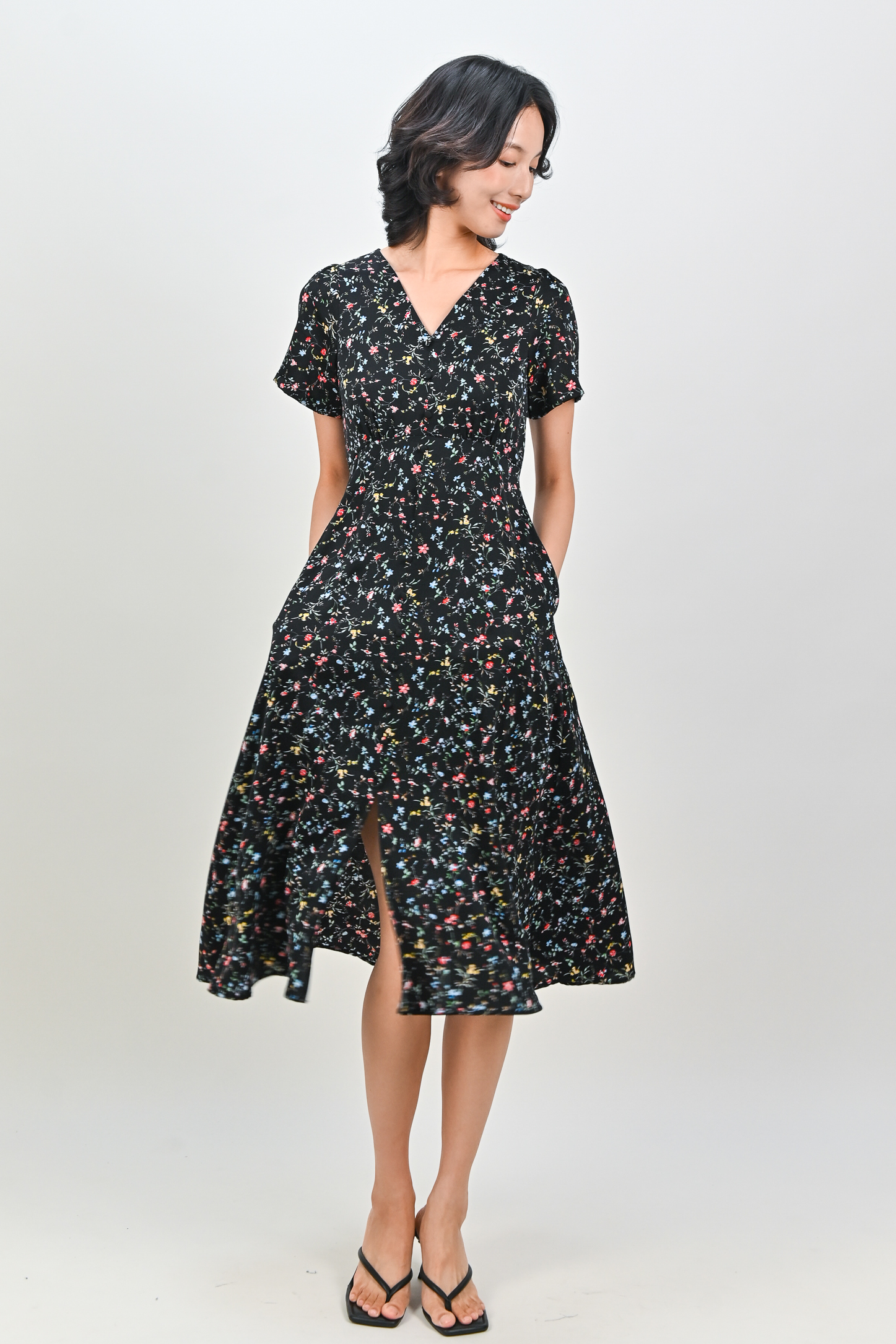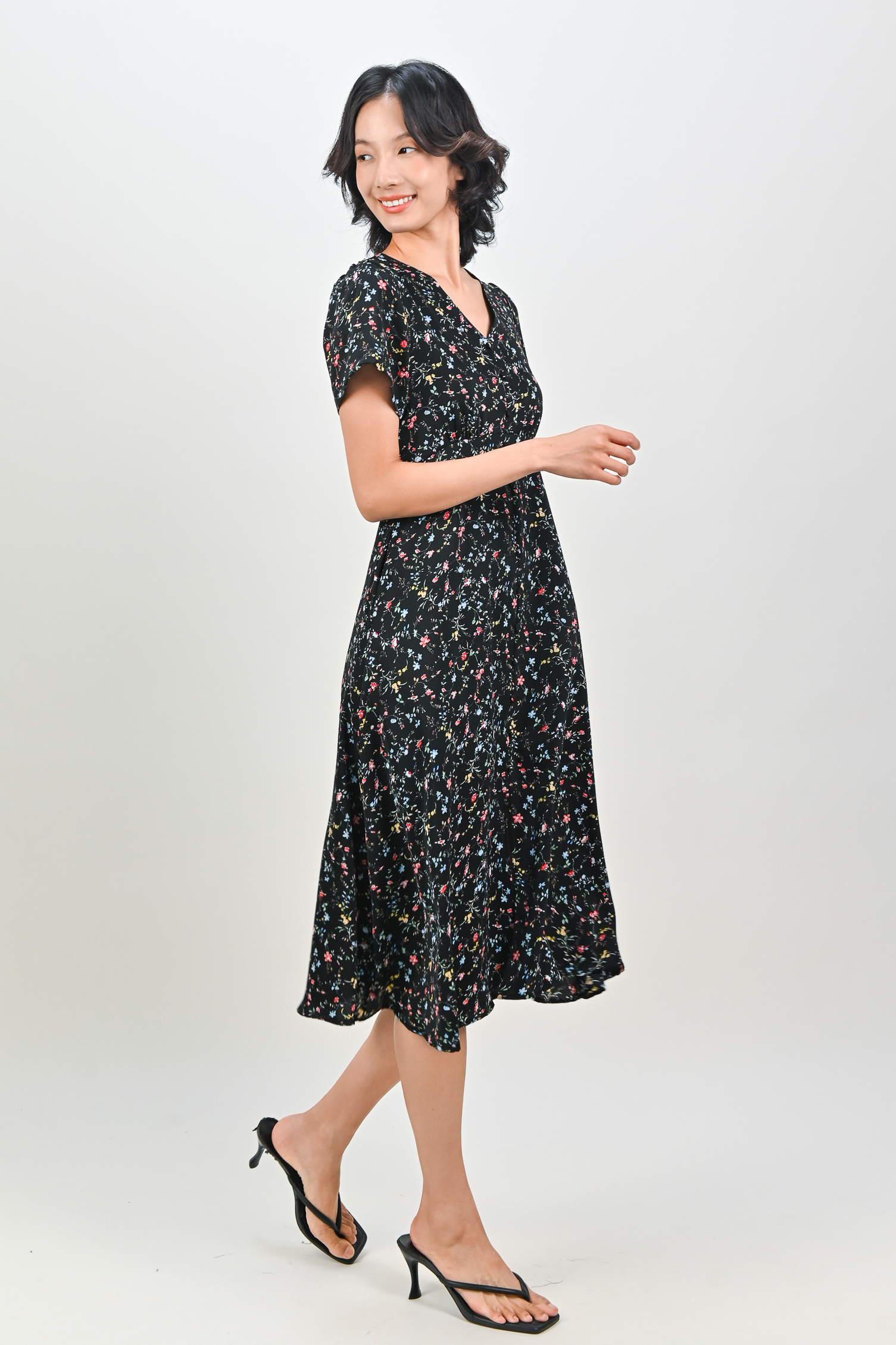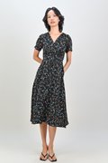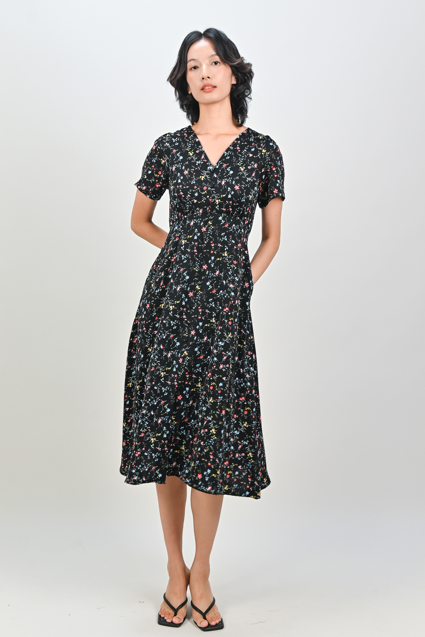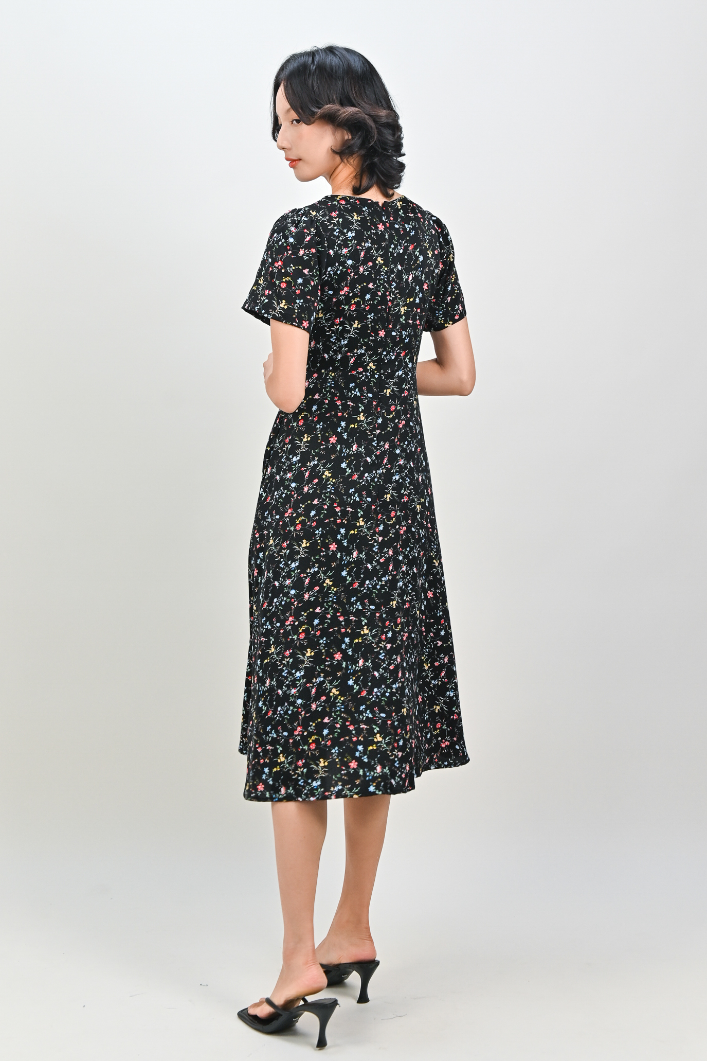 PORTMAN FLORAL SLEEVED BUTTON DRESS IN BLACK