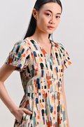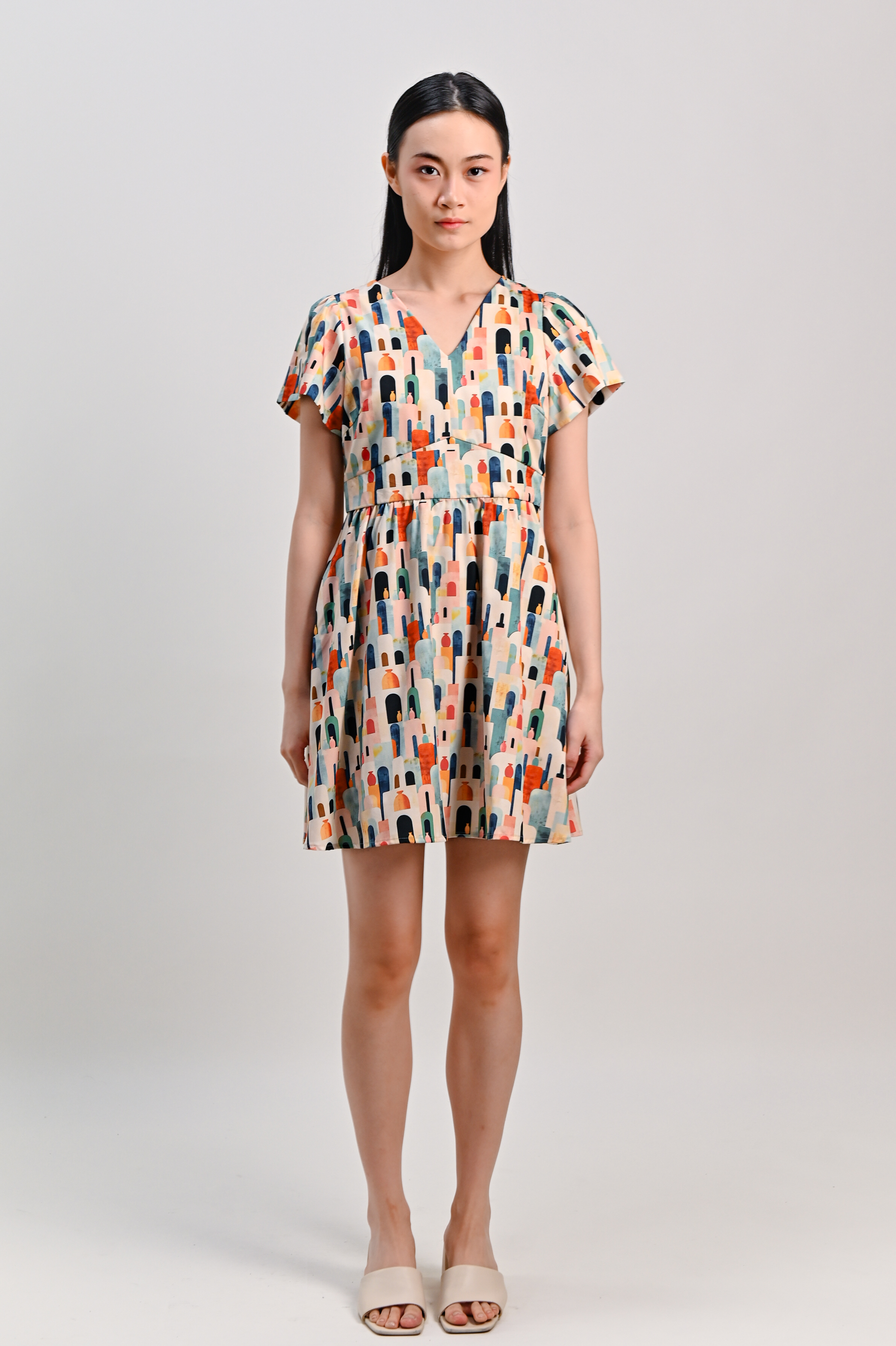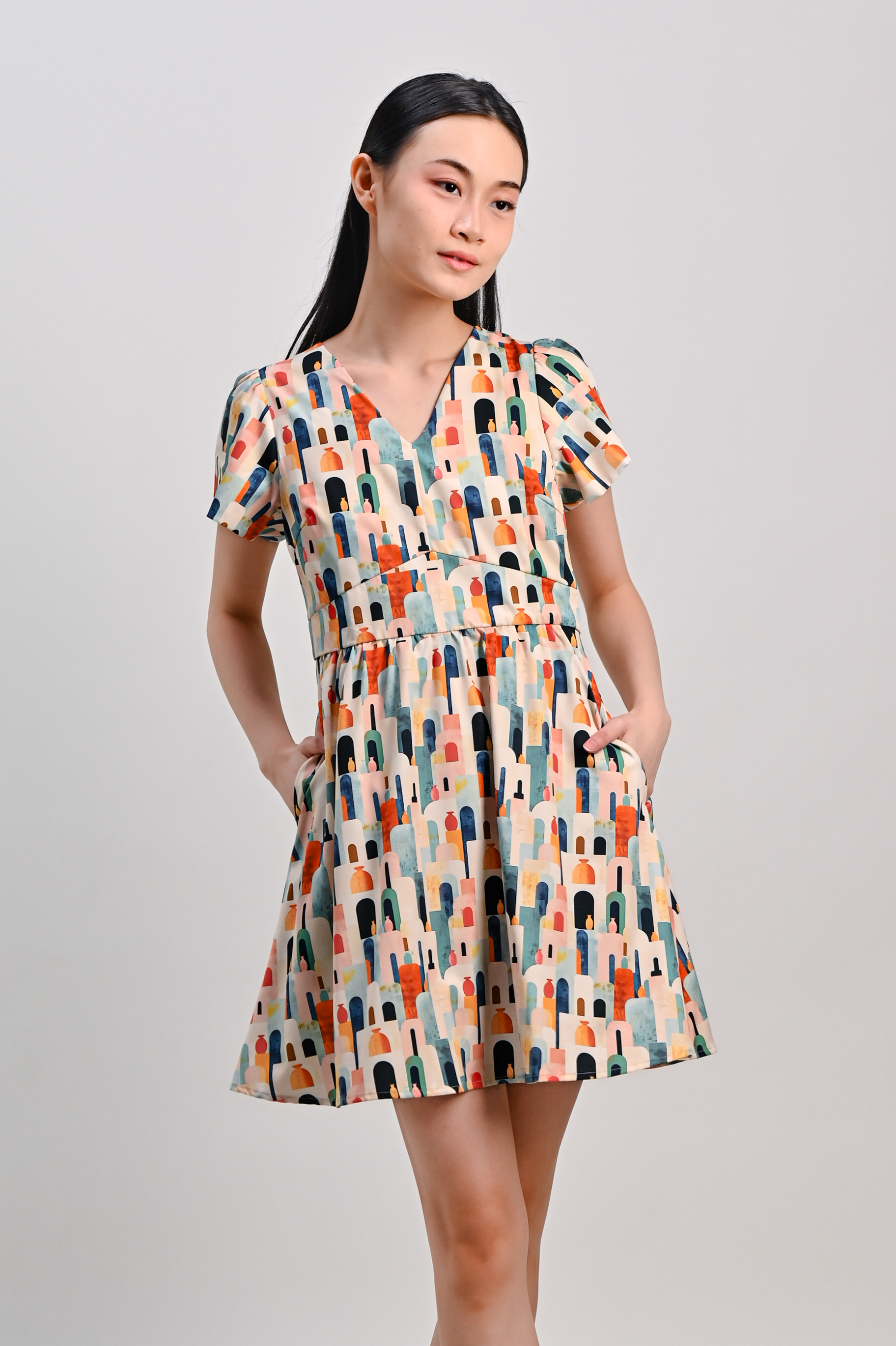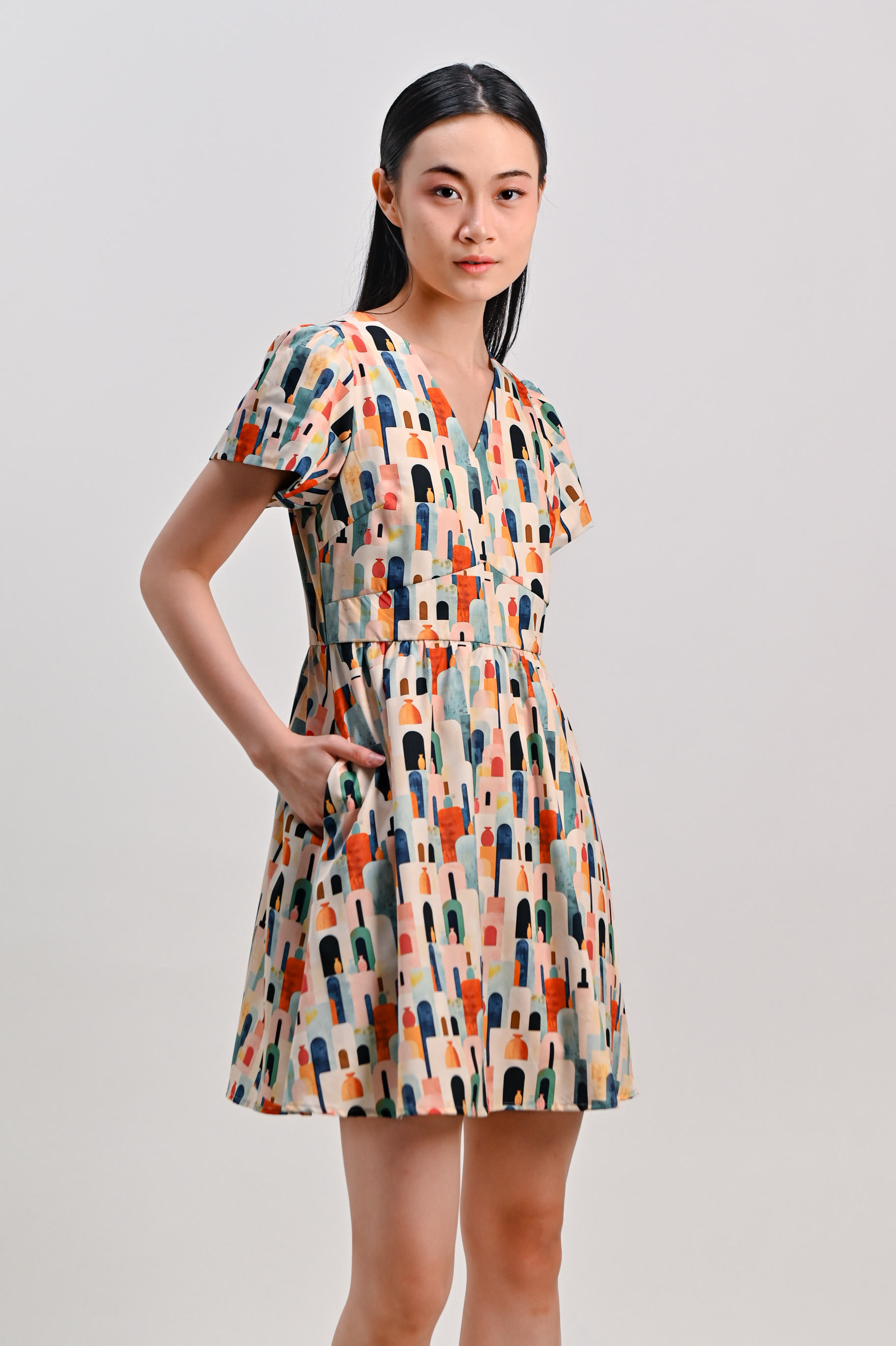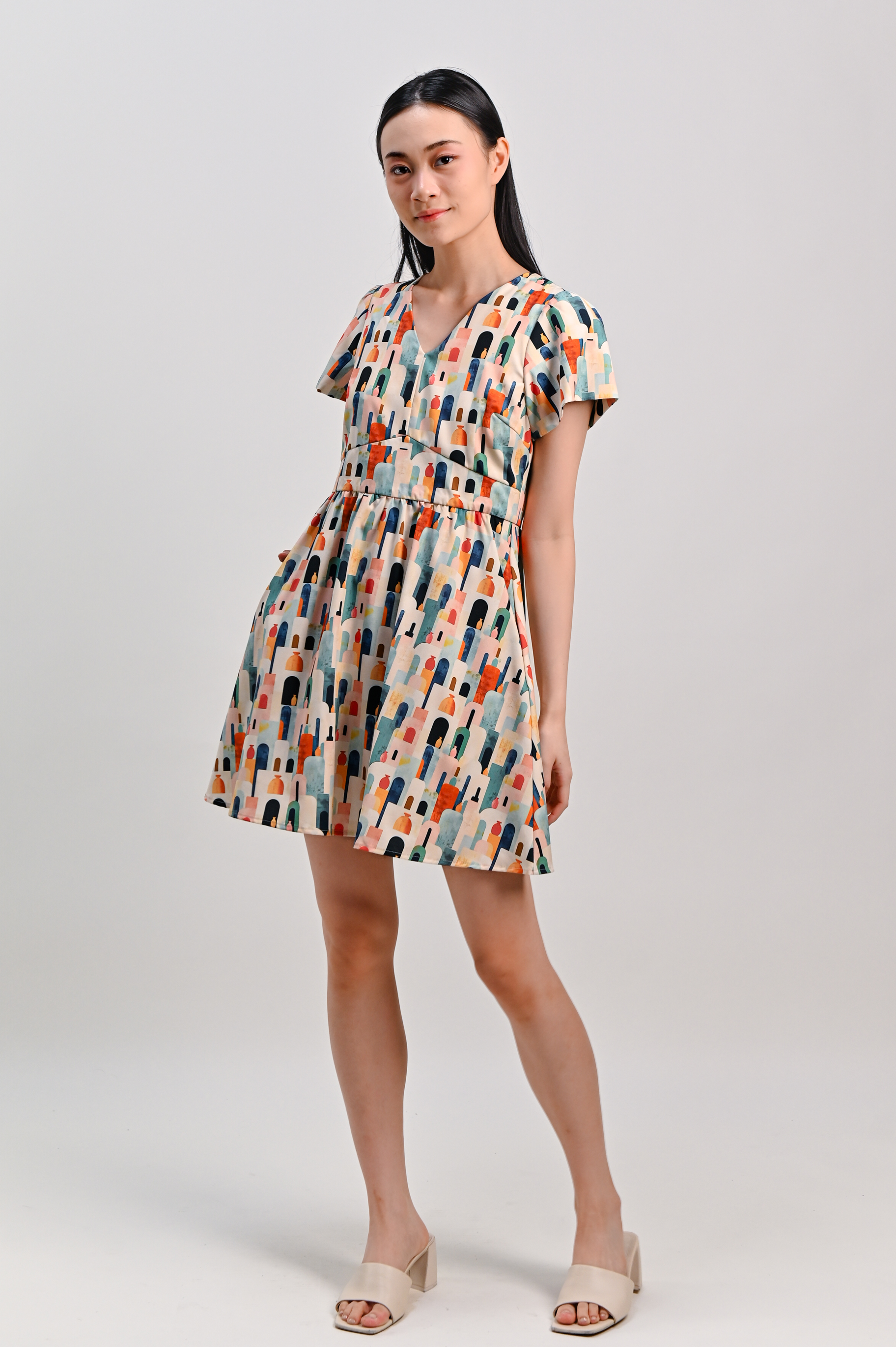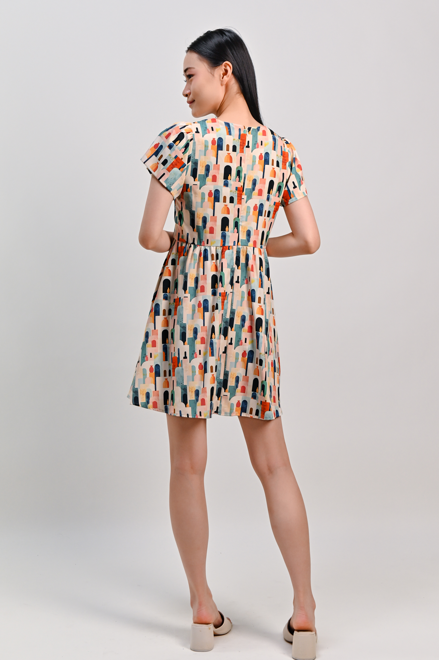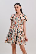 POTTERY TOWN SLEEVED V-NECK DRESS-ROMPER