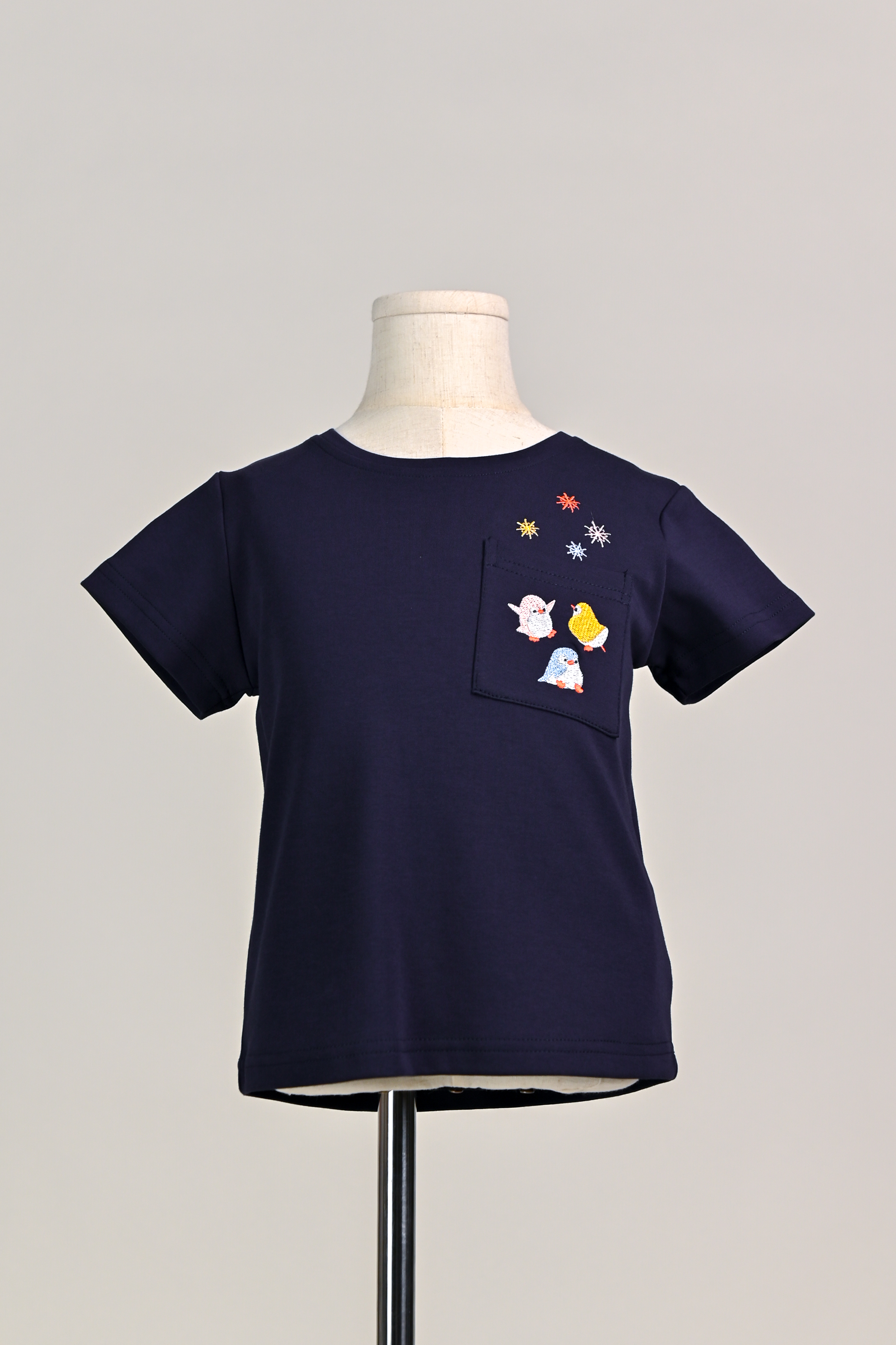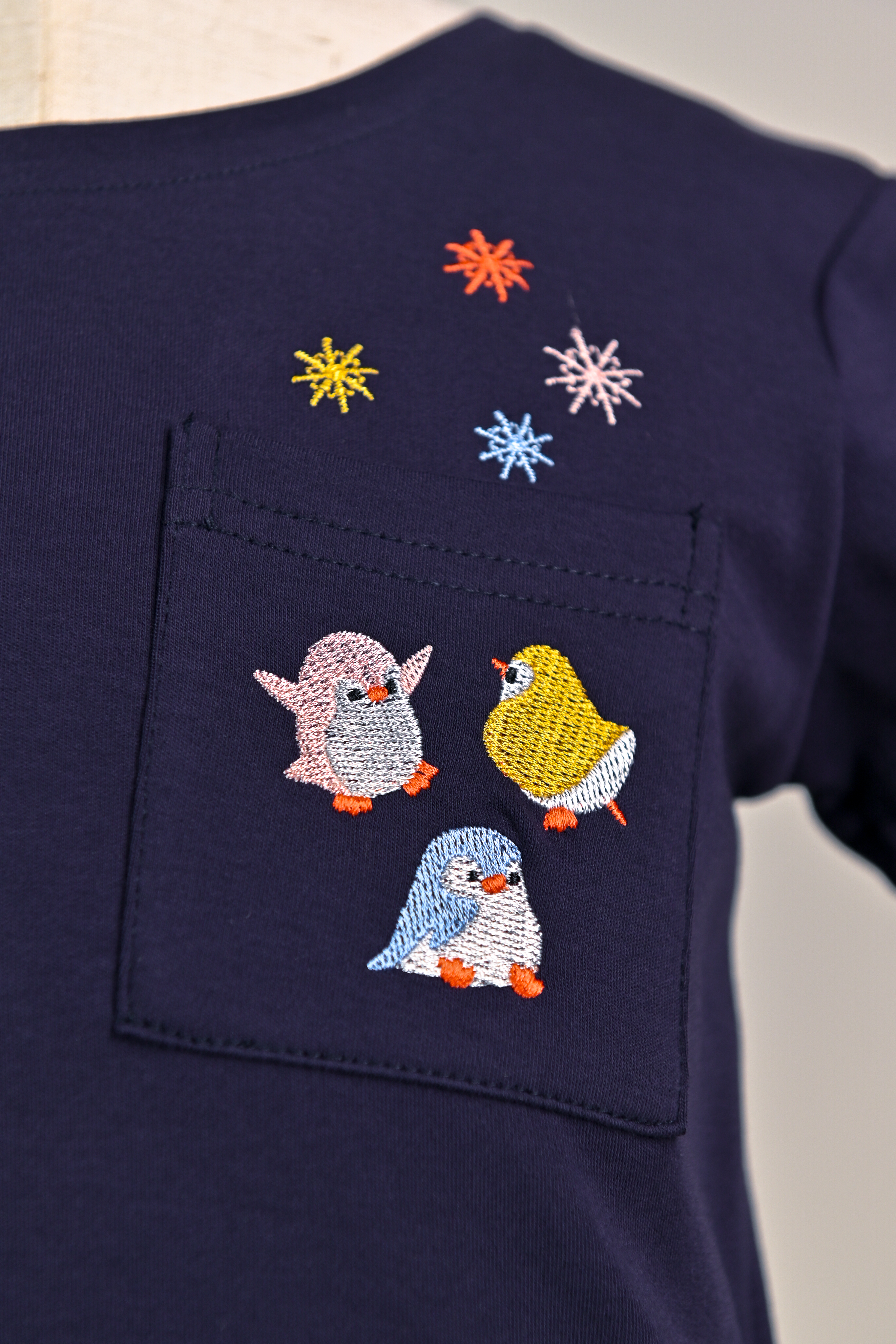 PRETTY PENGUINS EMB. POCKET KIDS' TEE