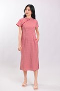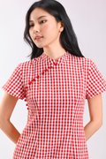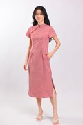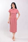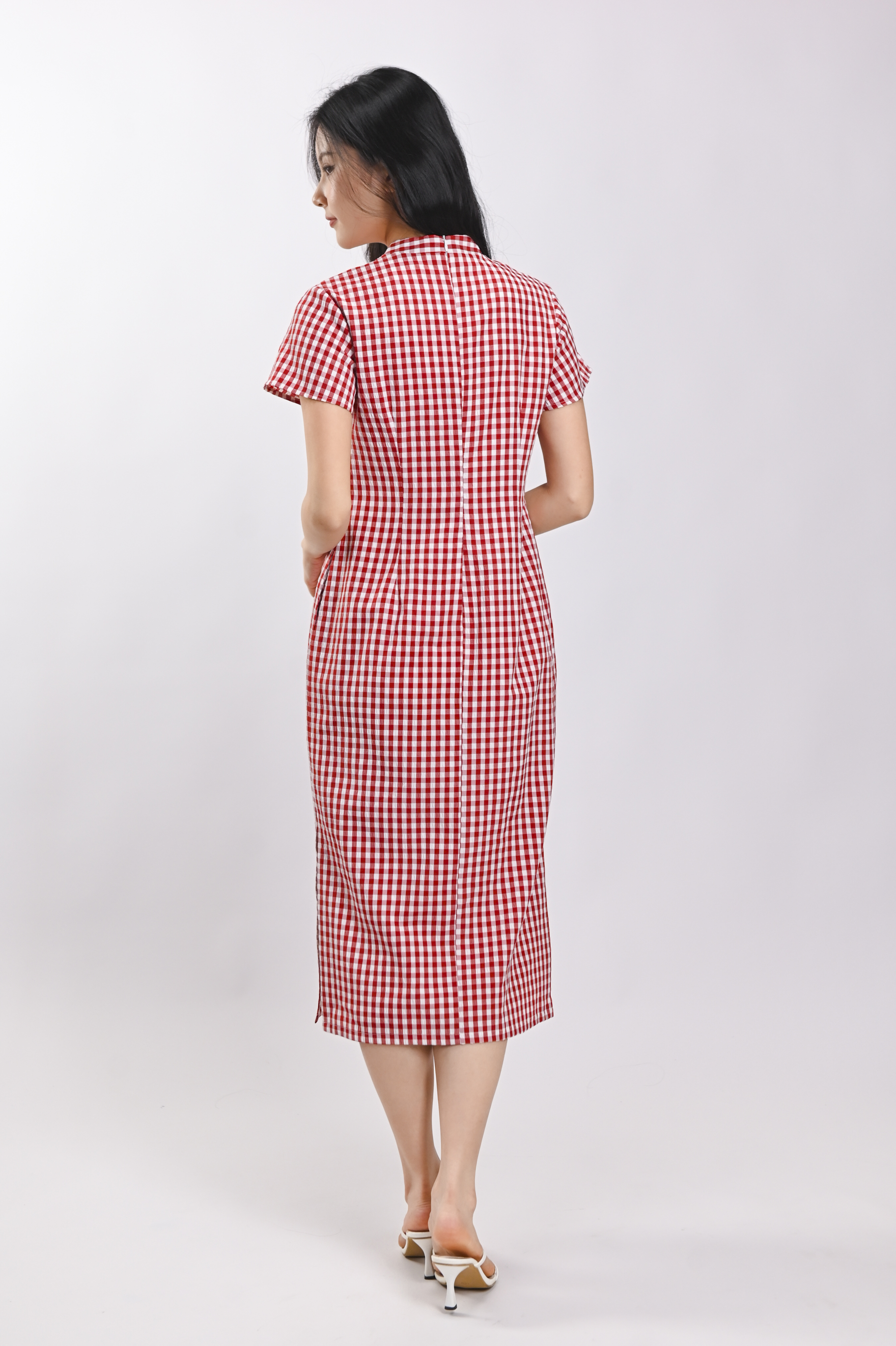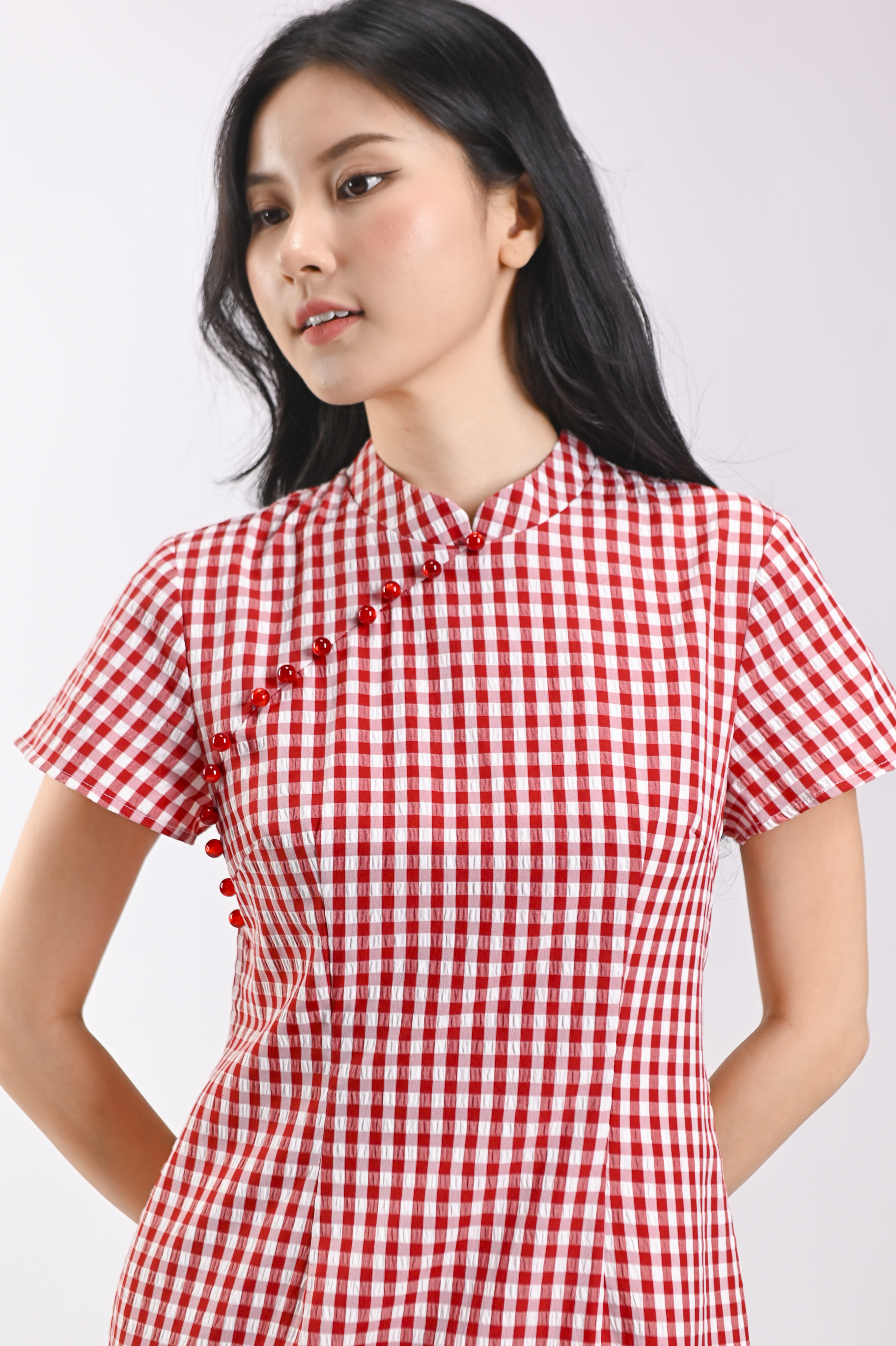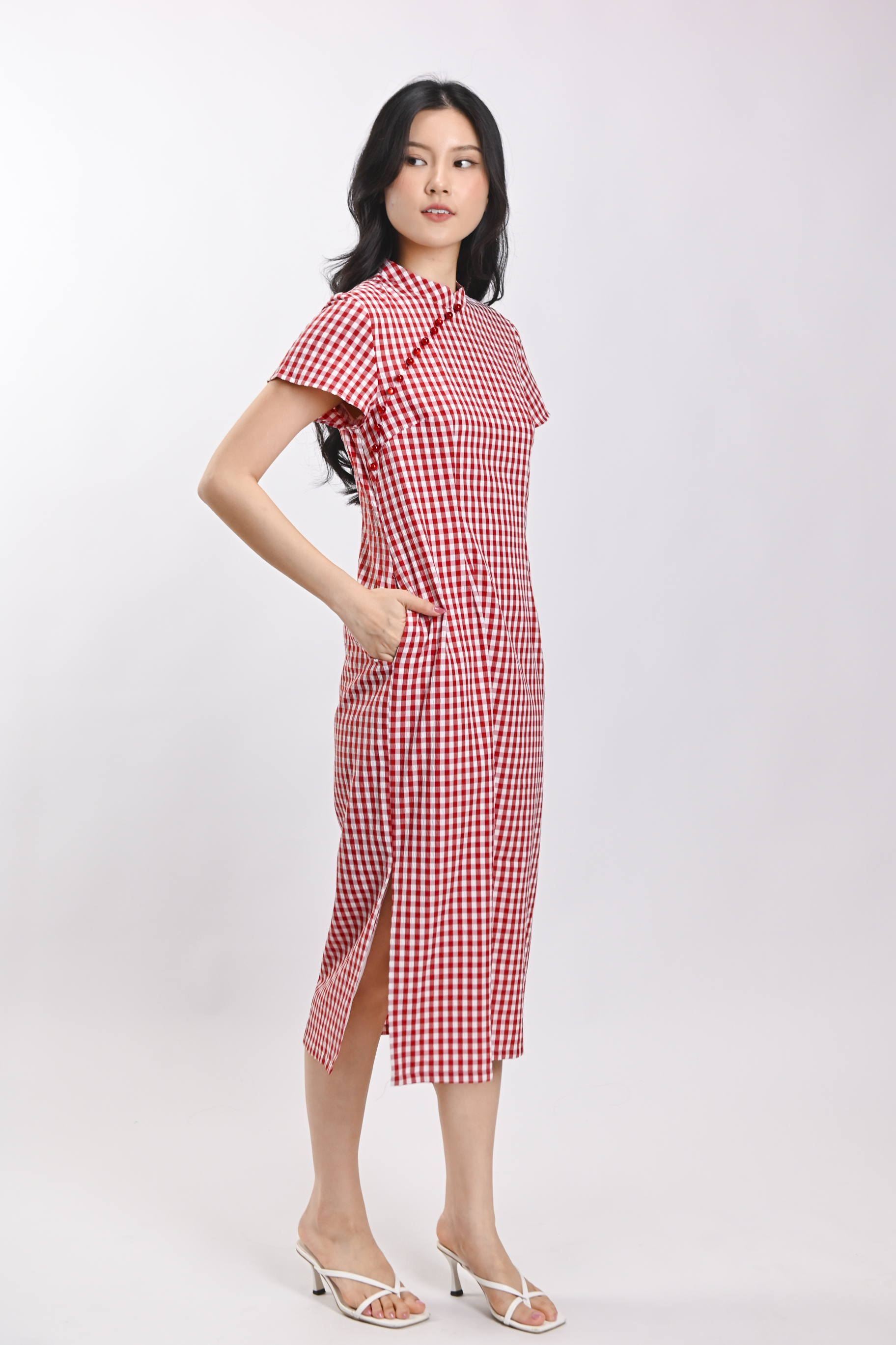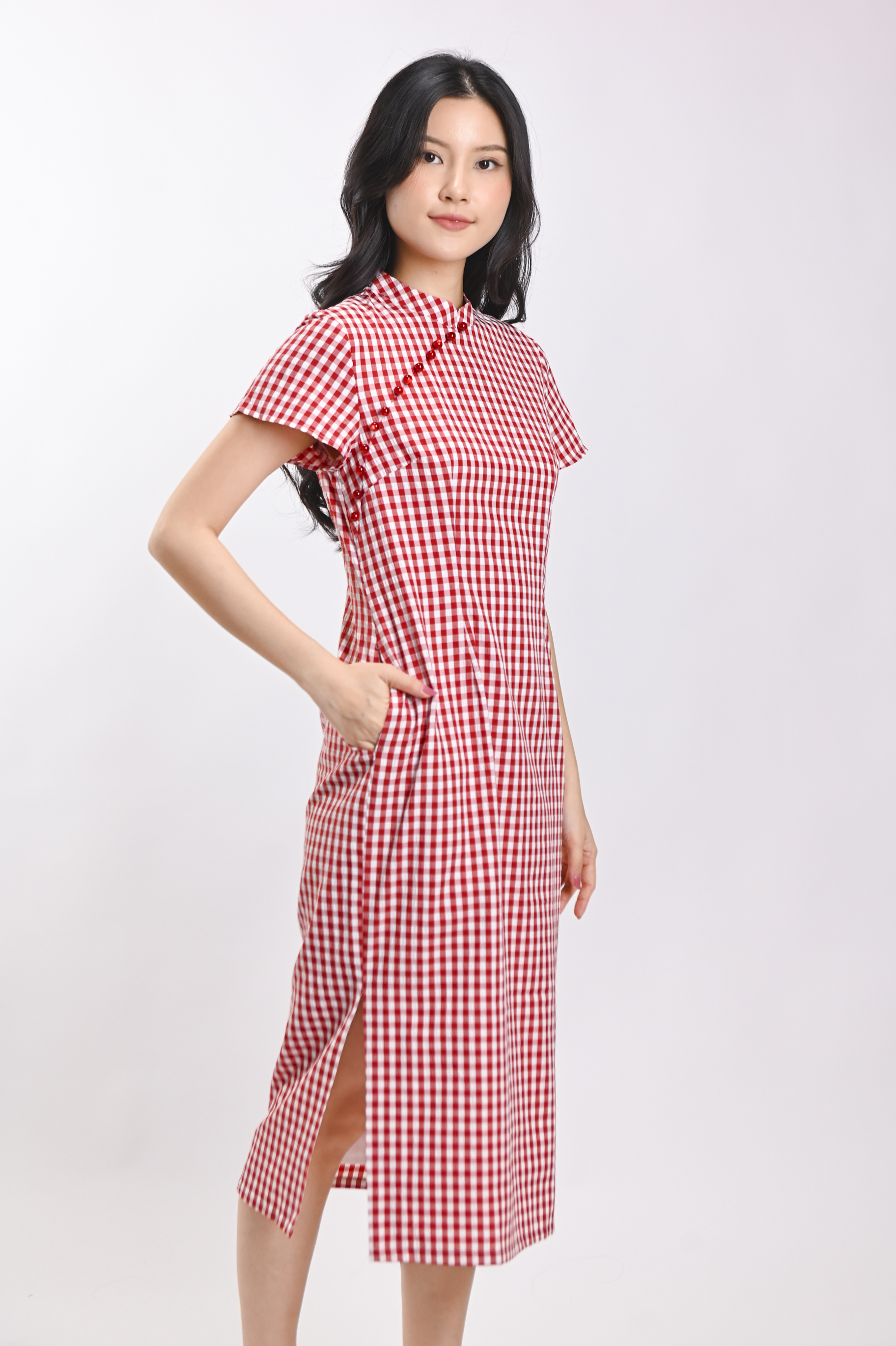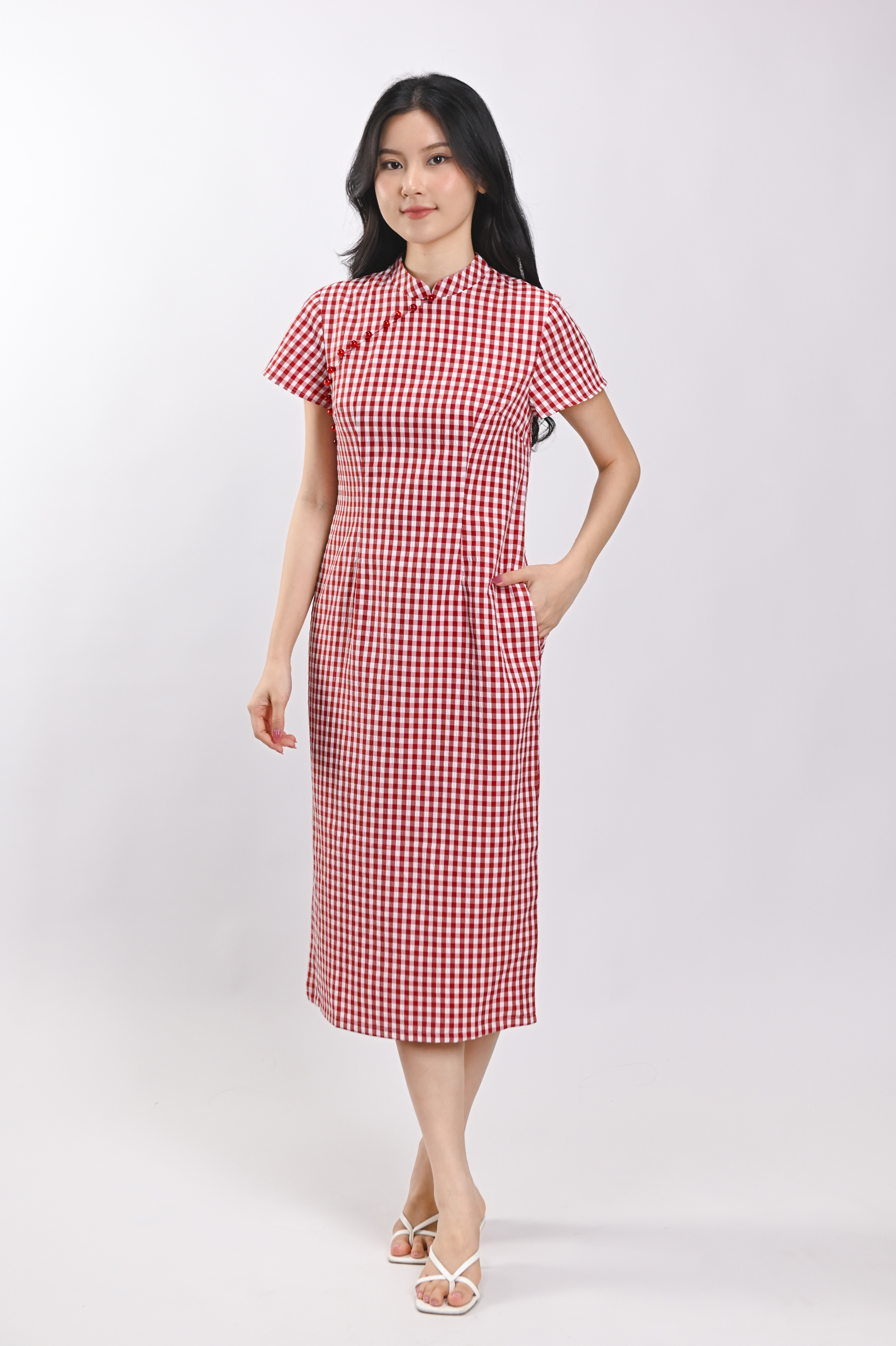 QI’EN SLEEVED GINGHAM CHEONGSAM DRESS IN RED