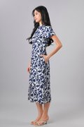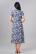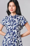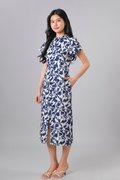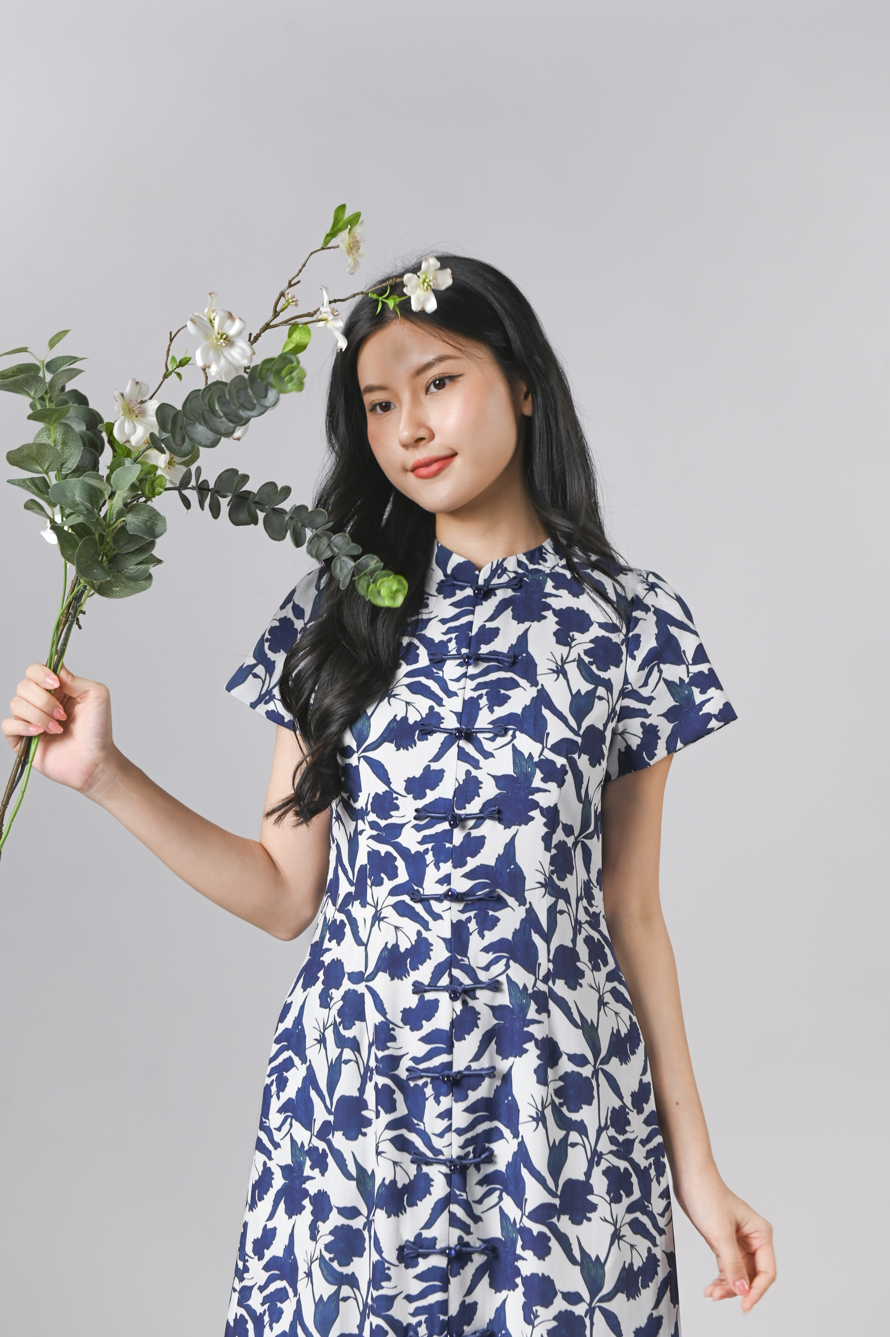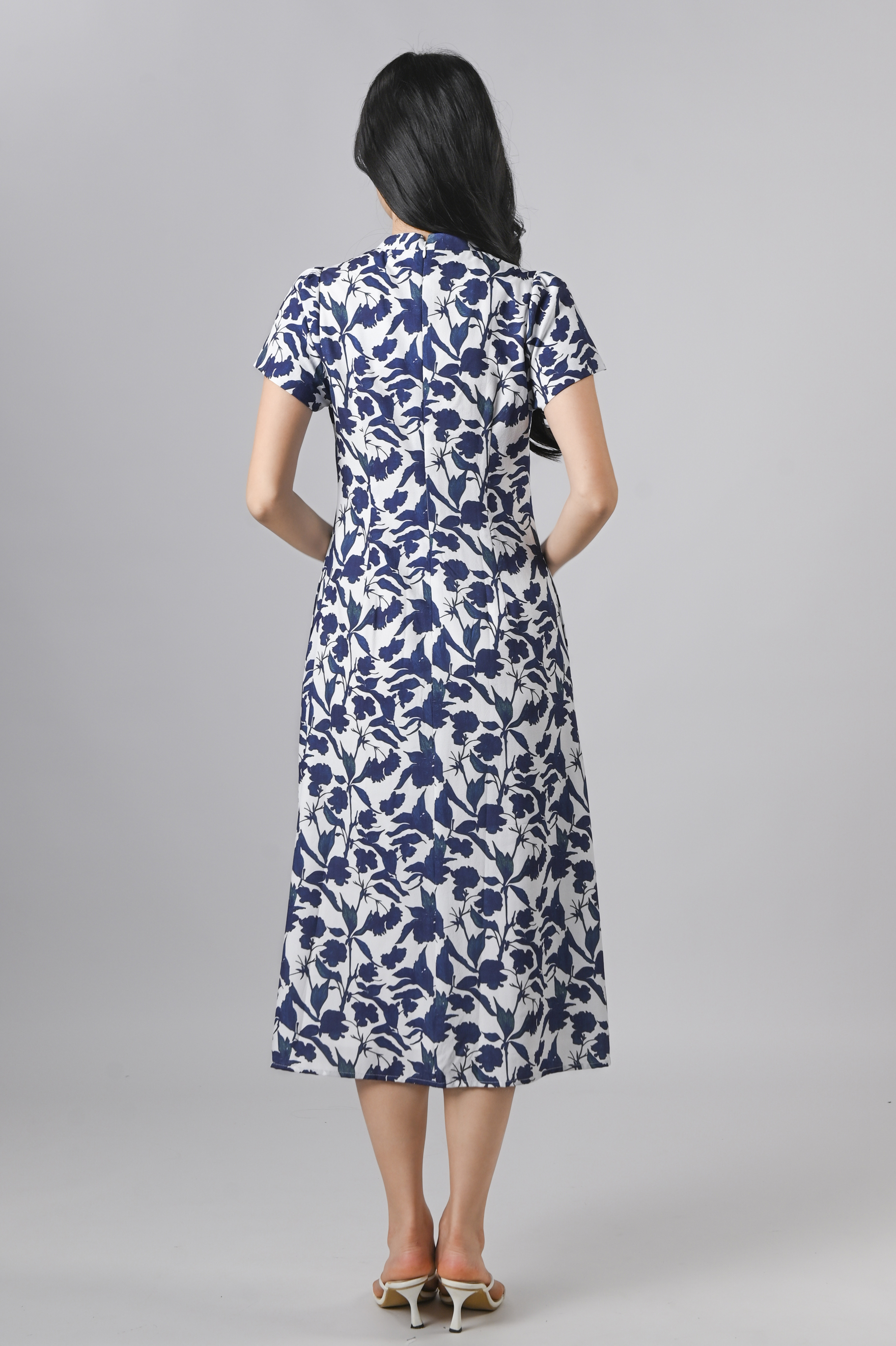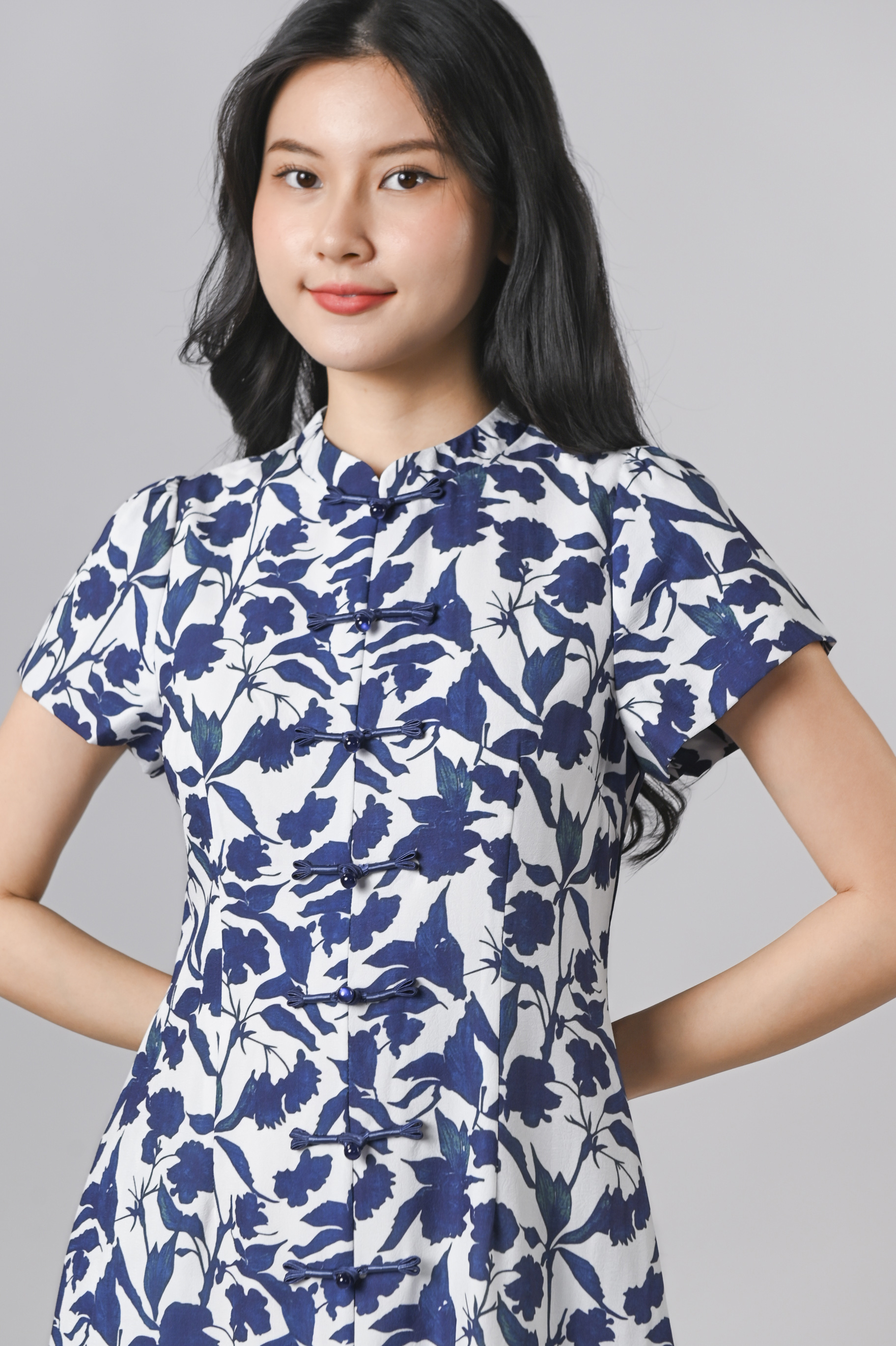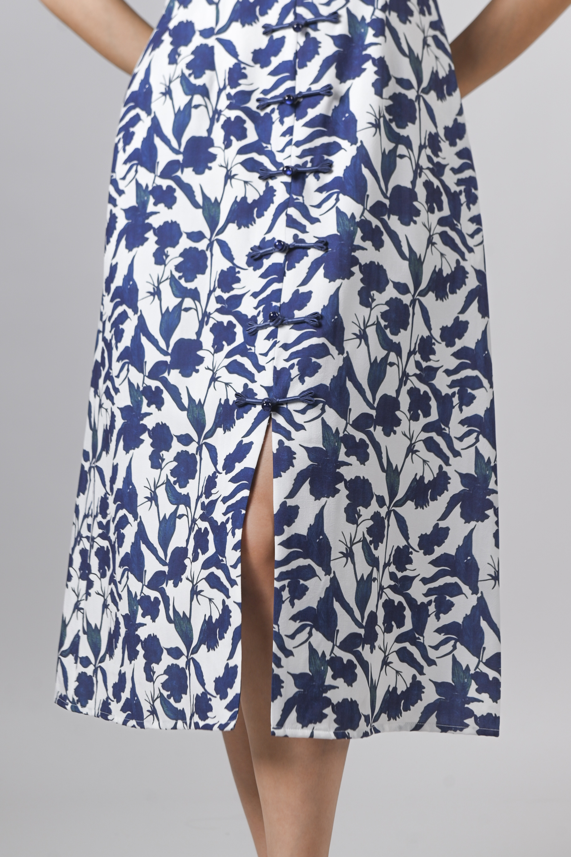 QIANQIAN WHITE-BLUE FLORAL SLEEVED CHEONGSAM DRESS