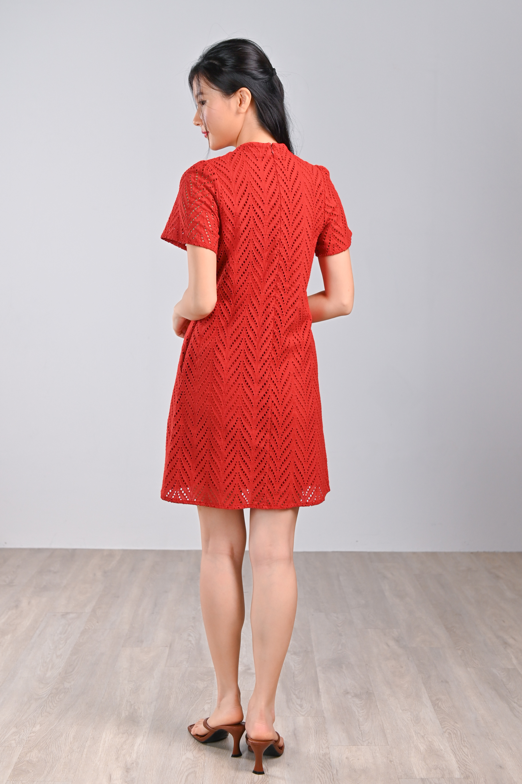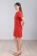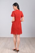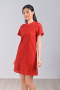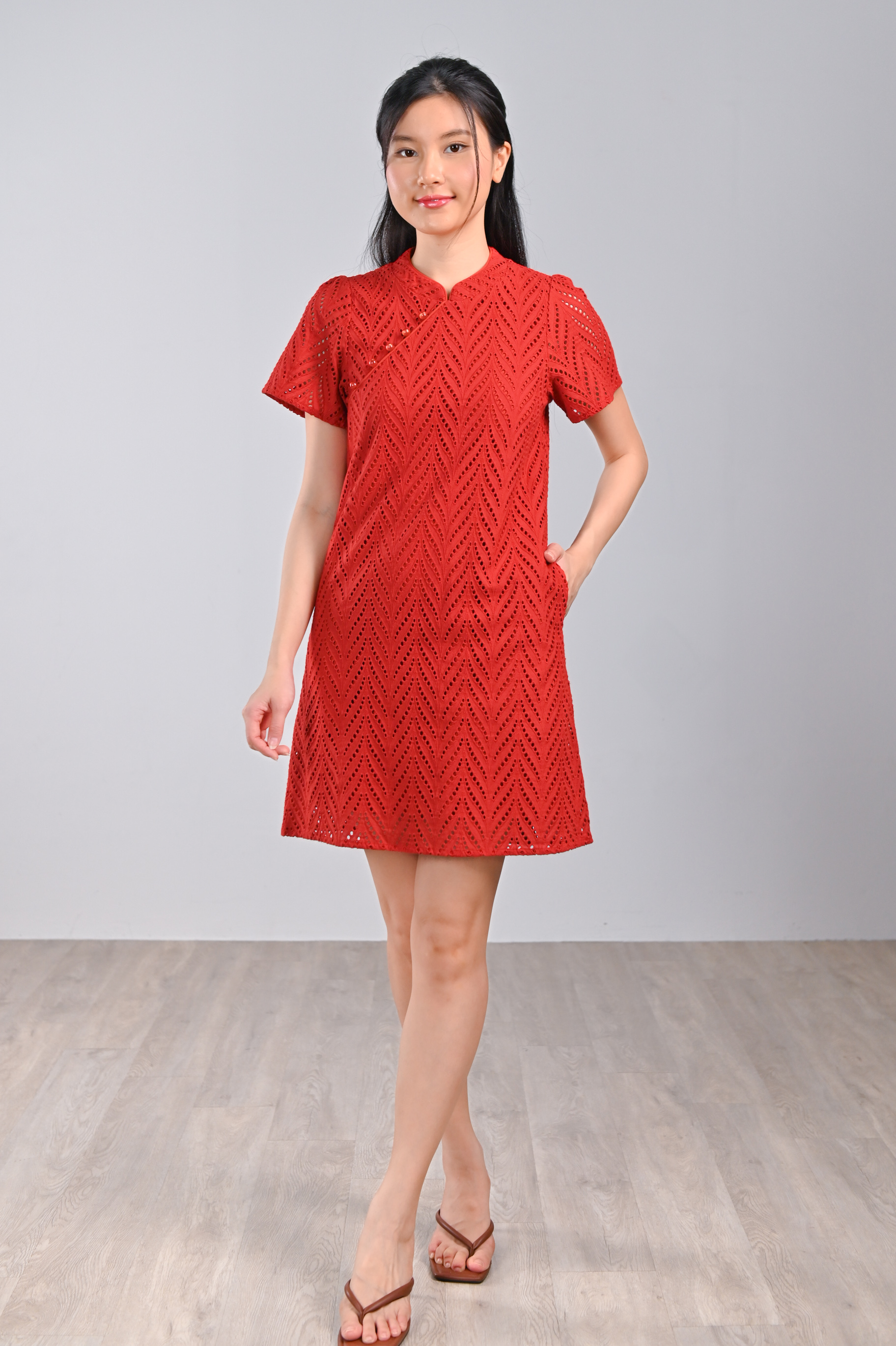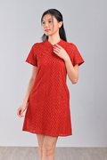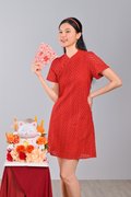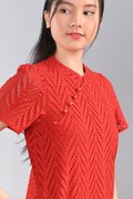 QIUQIU EYELET SLEEVED CHEONGSAM IN ORANGE-RED