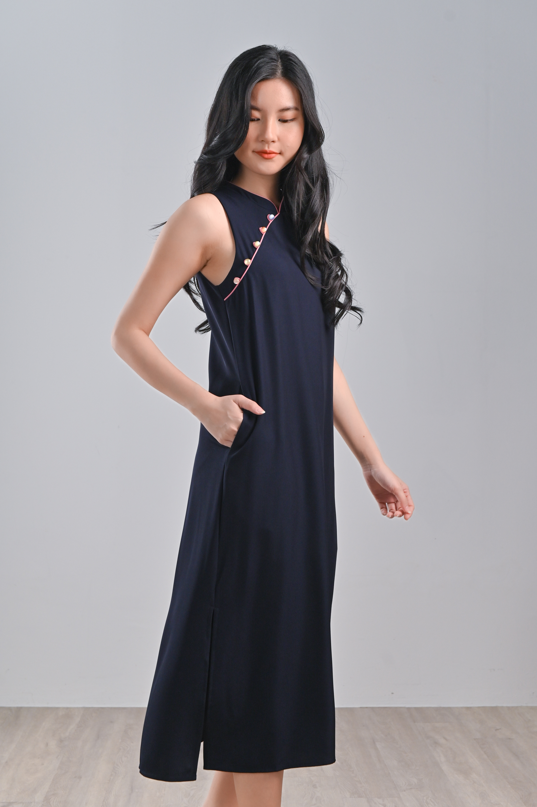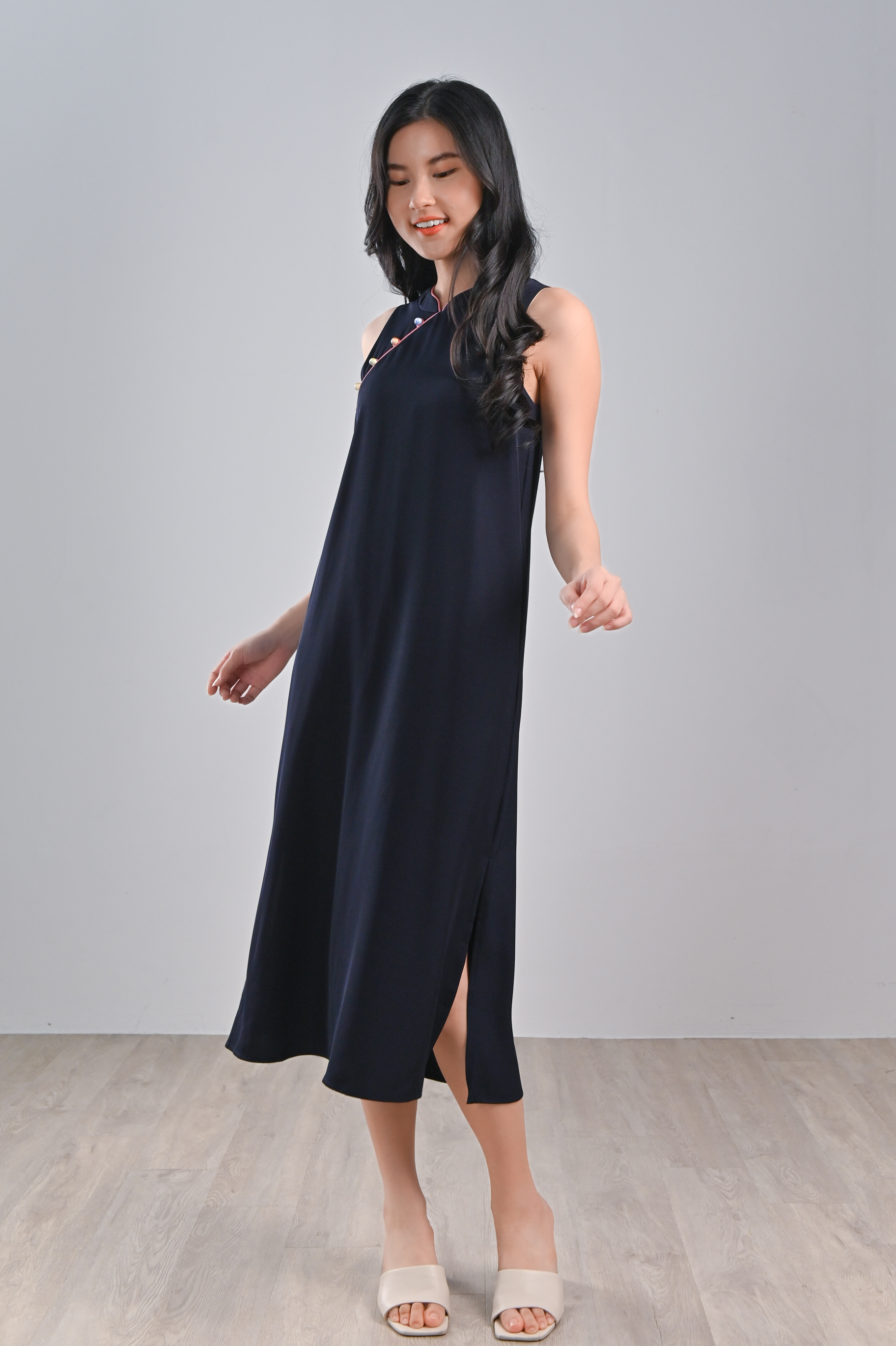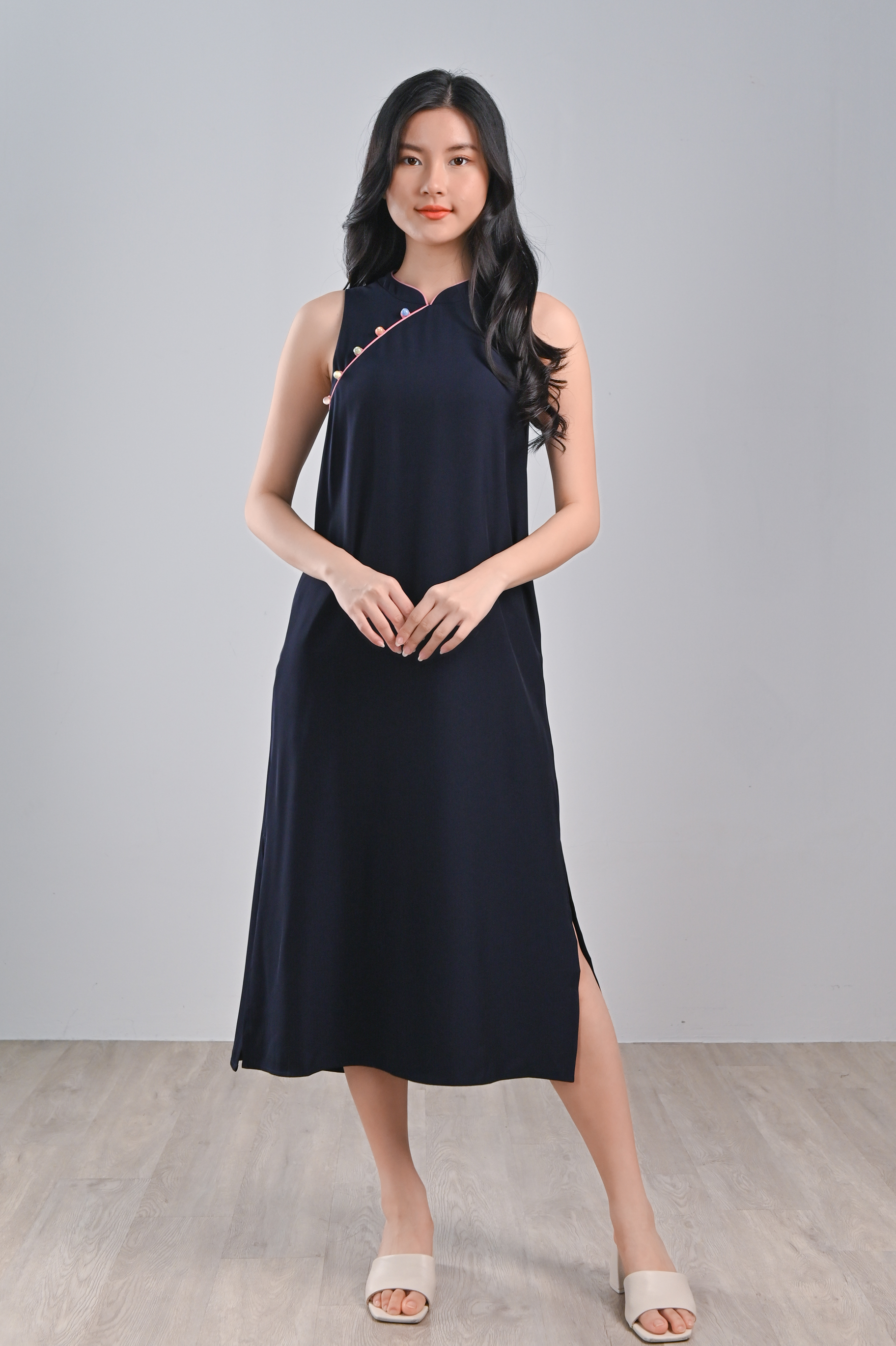 RACHEL NAVY SIDE-SLIT CHEONGSAM
