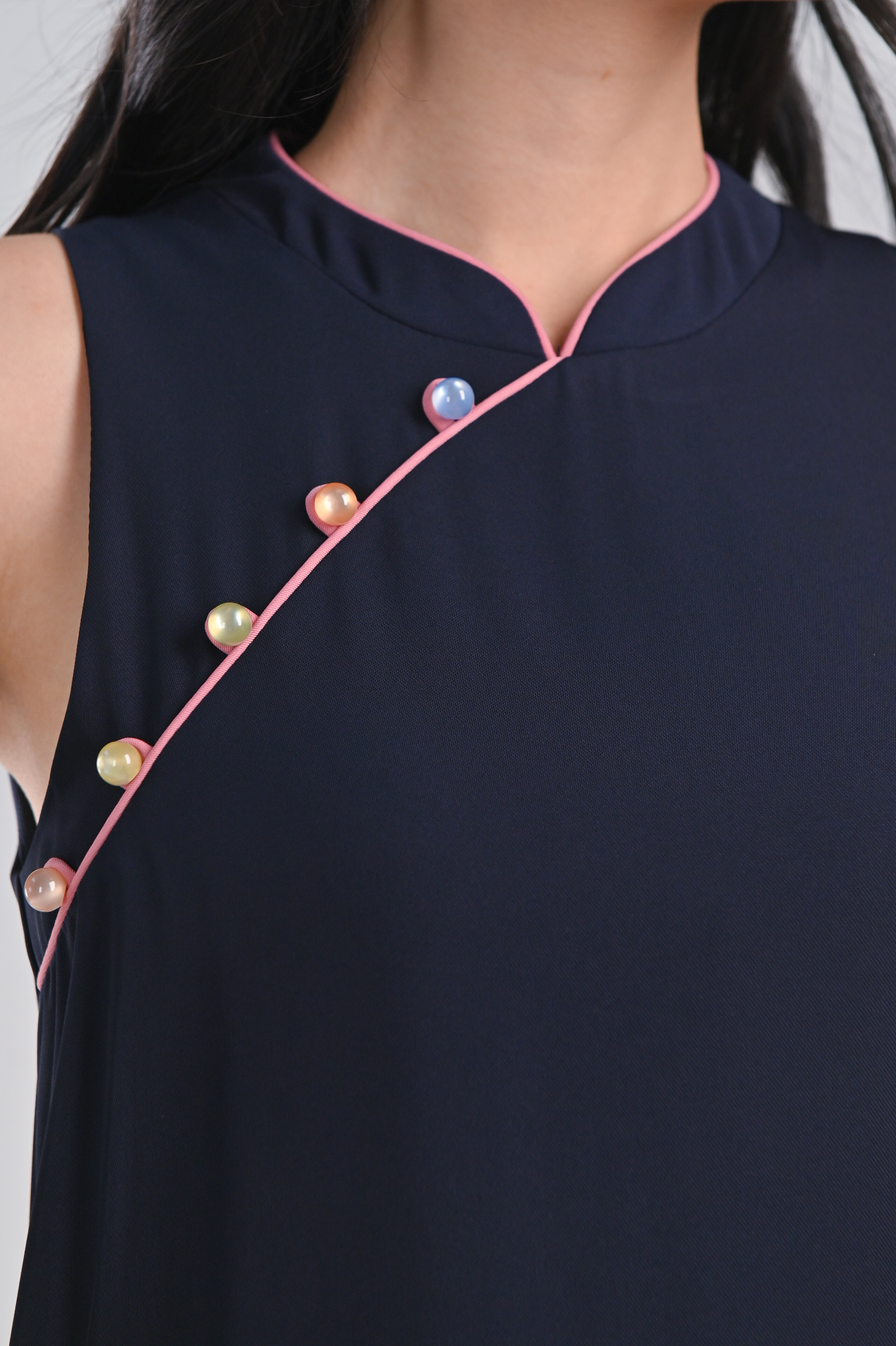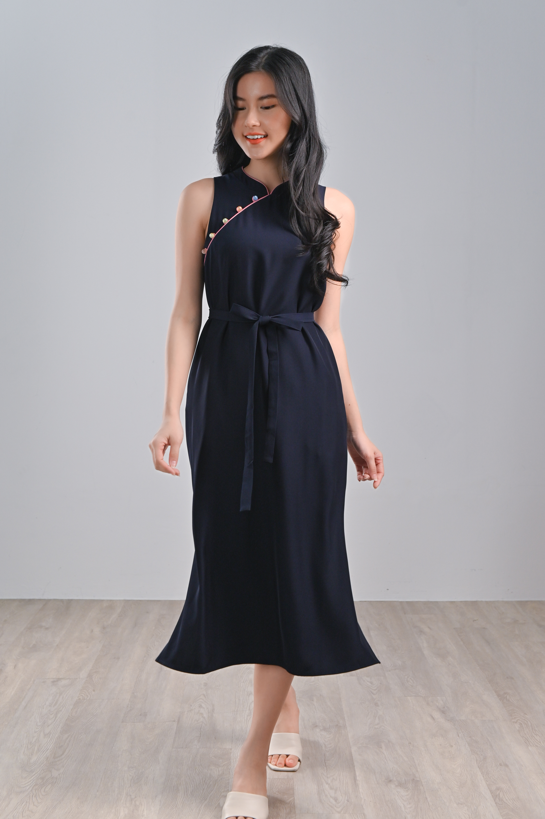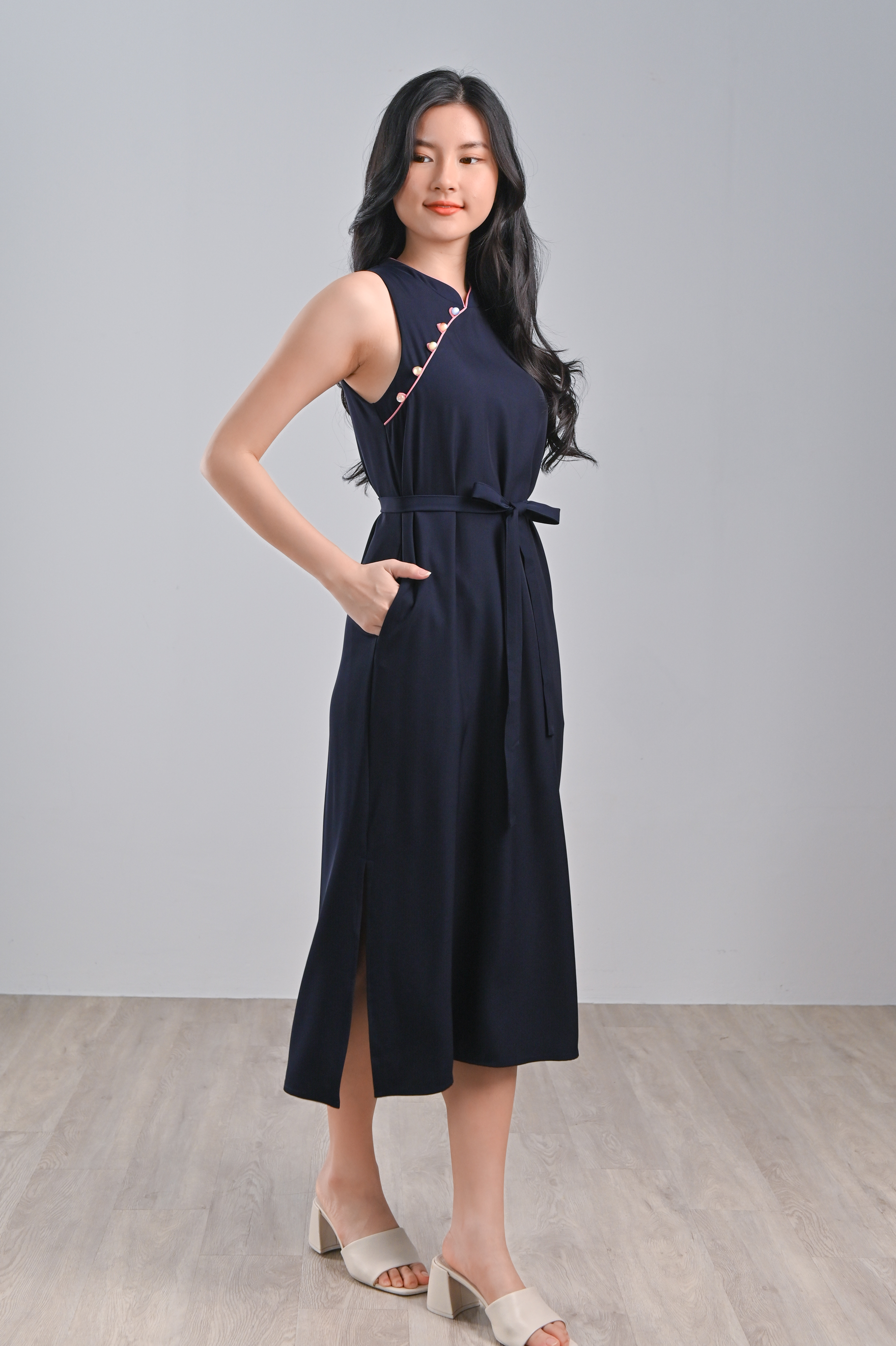 RACHEL NAVY SIDE-SLIT CHEONGSAM