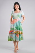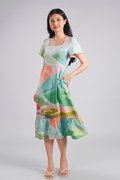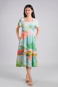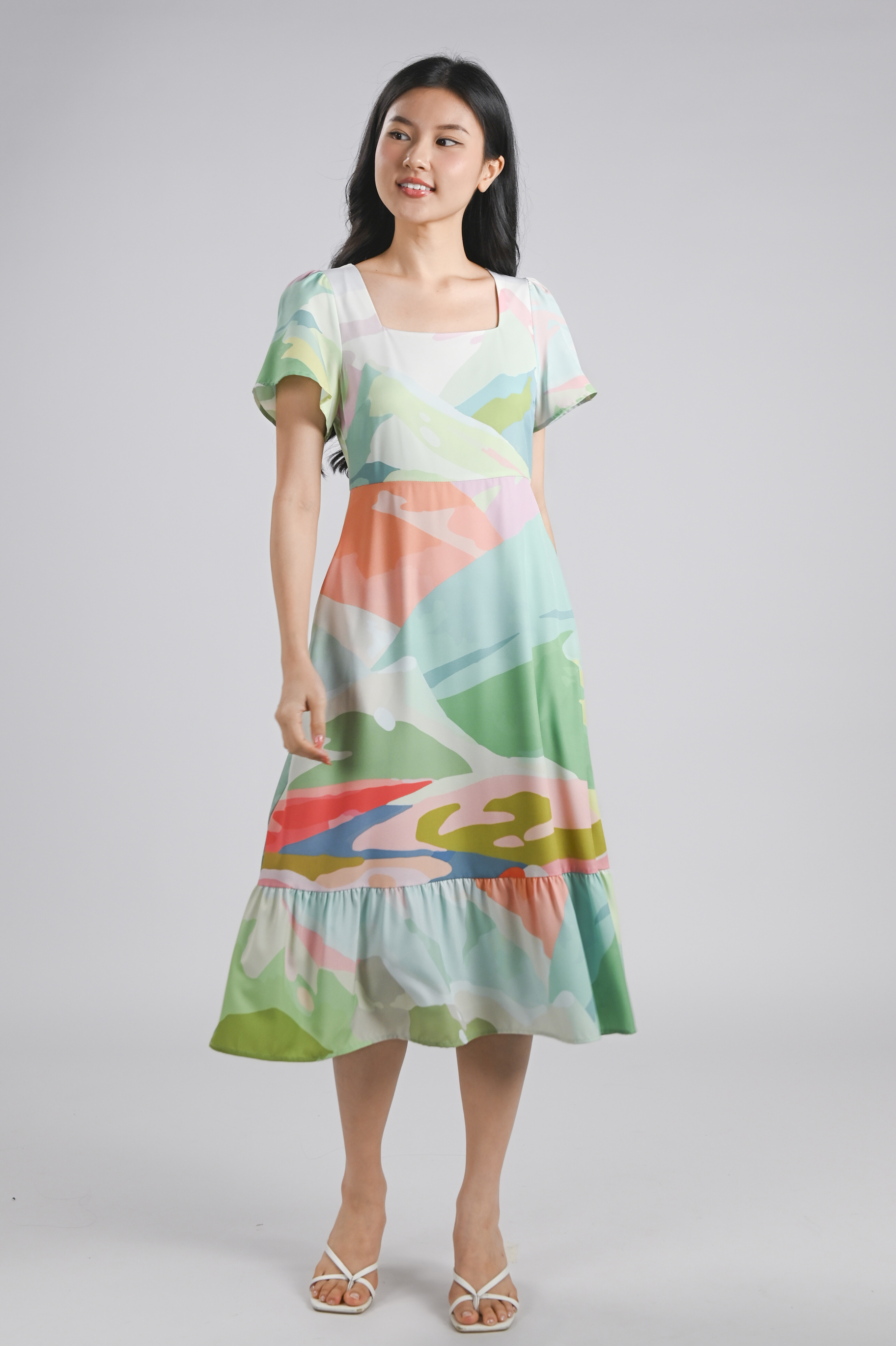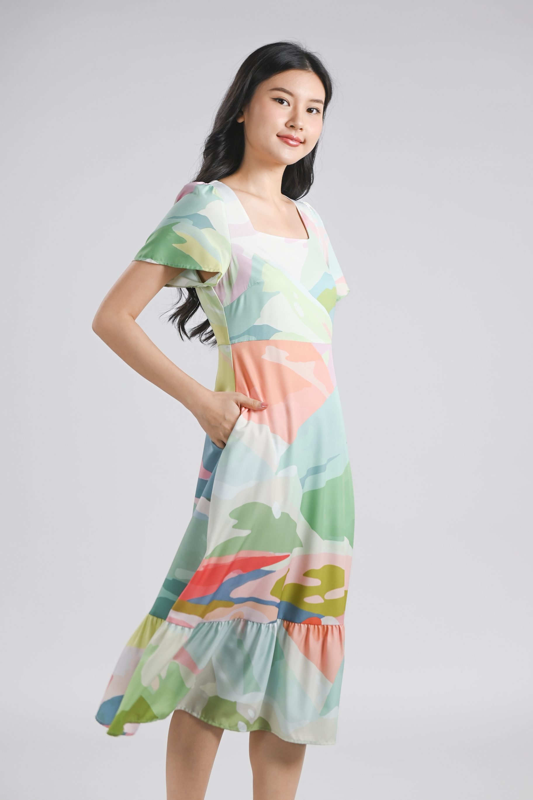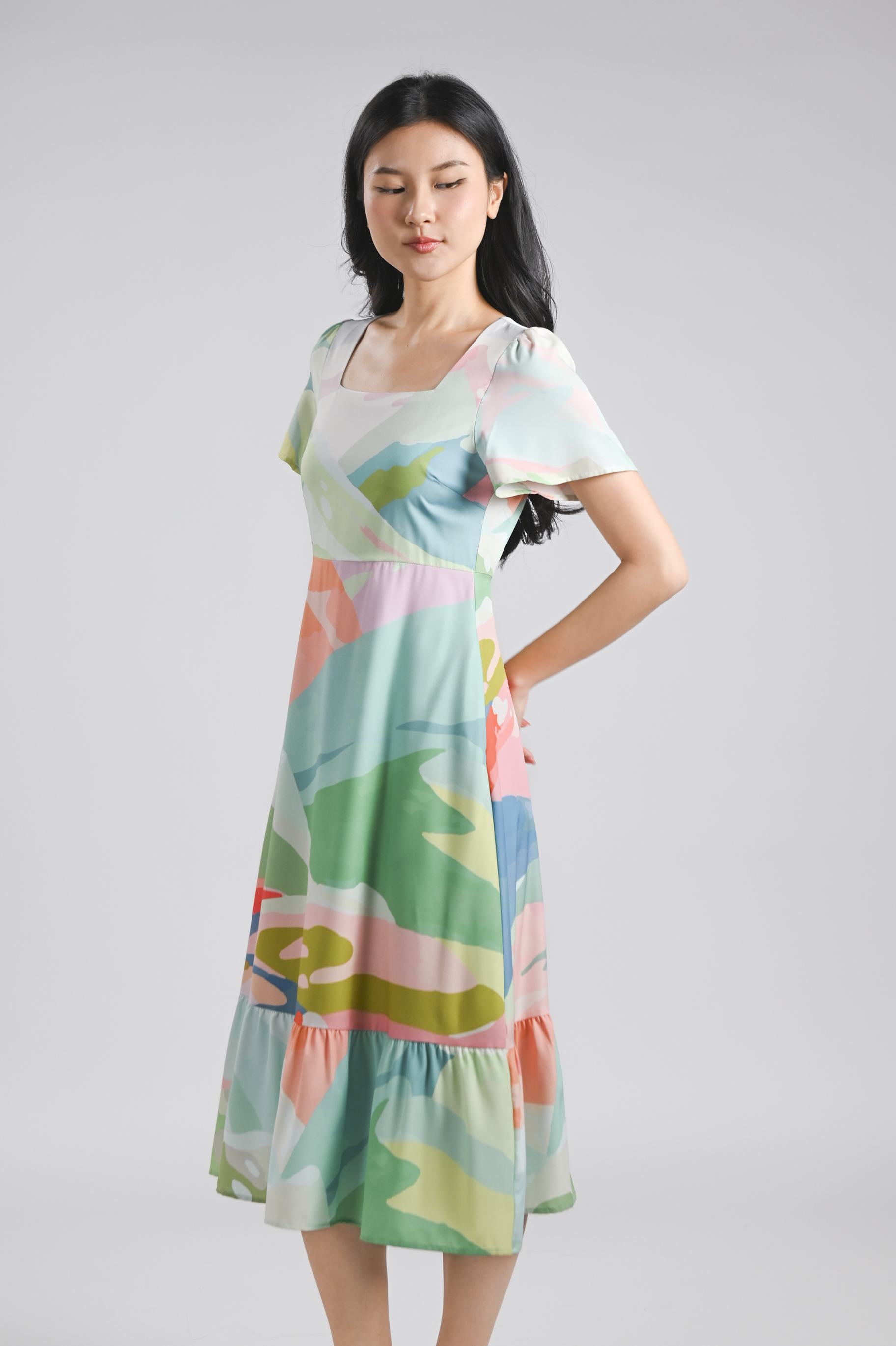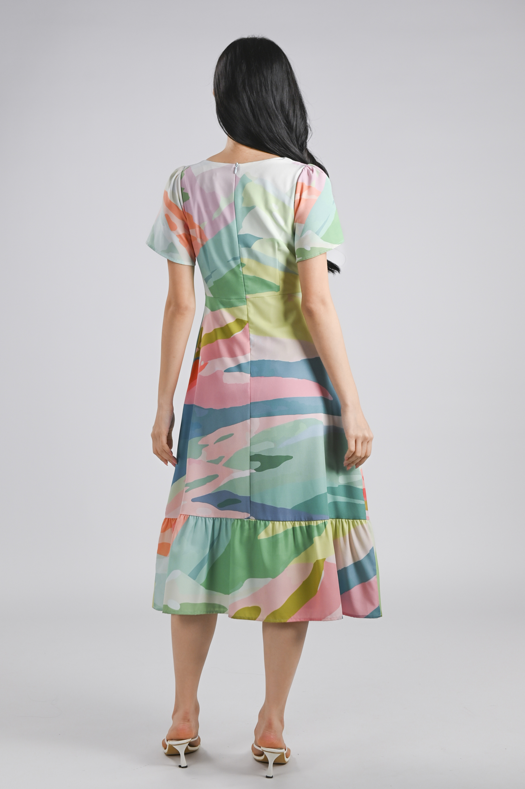 RAINBOW CANYON SQUARE-NECK SLEEVED MIDI DRESS