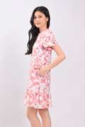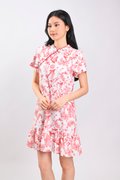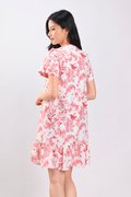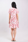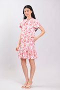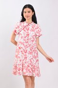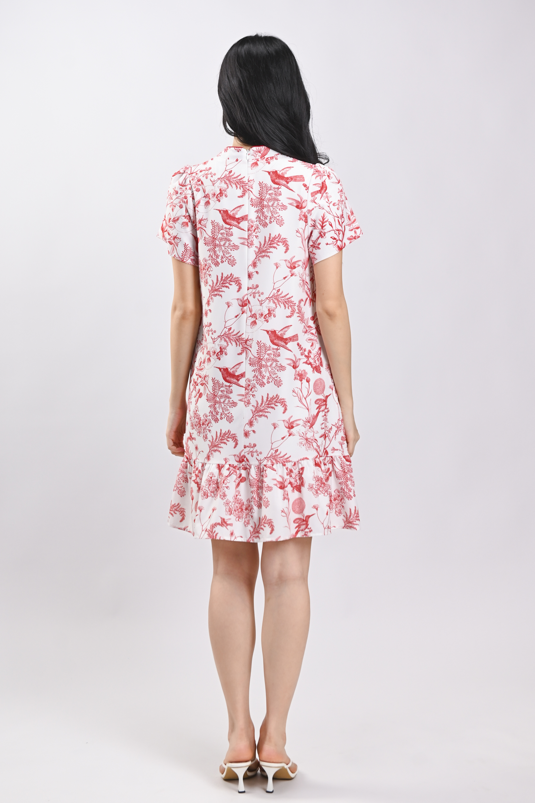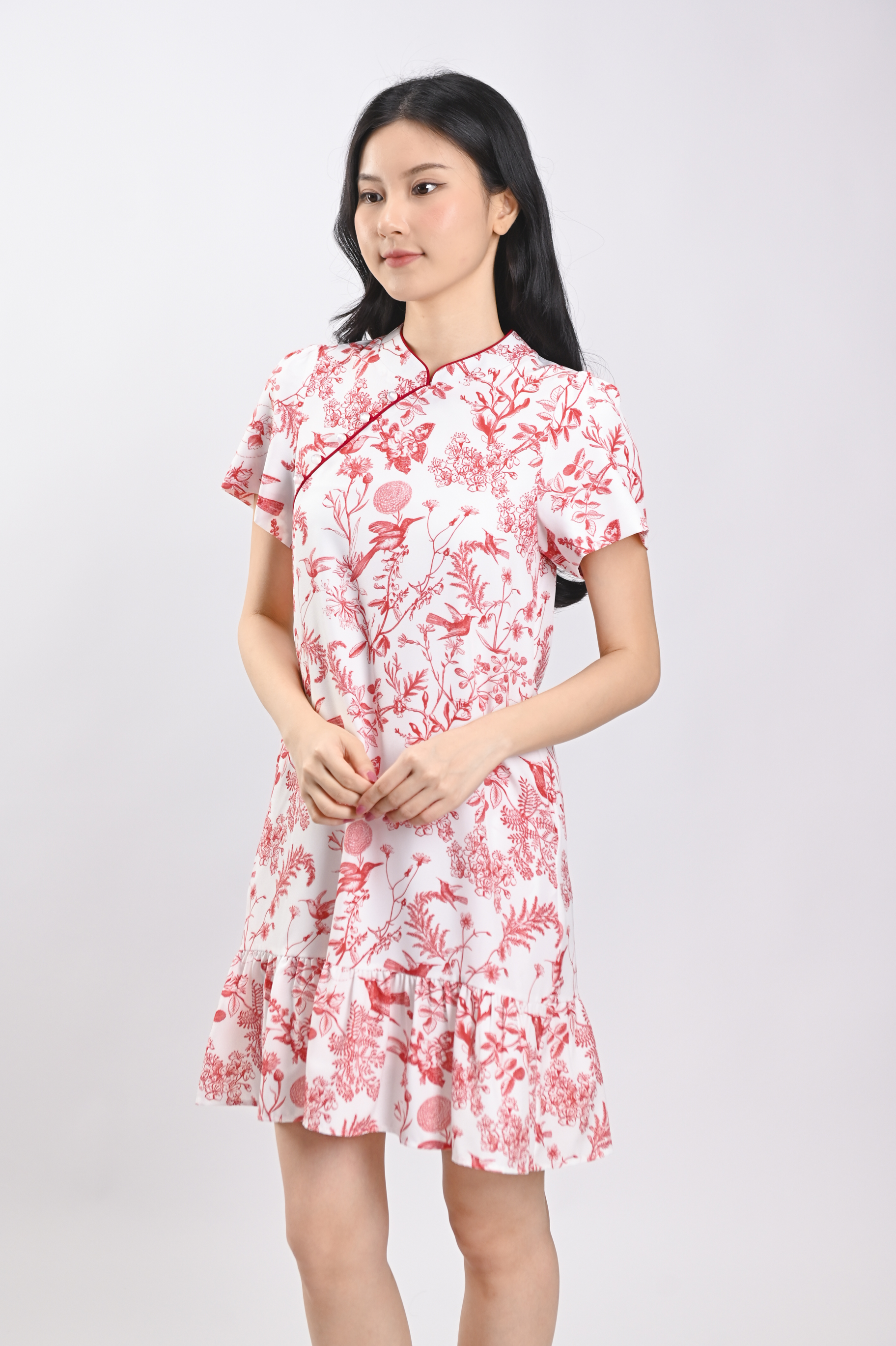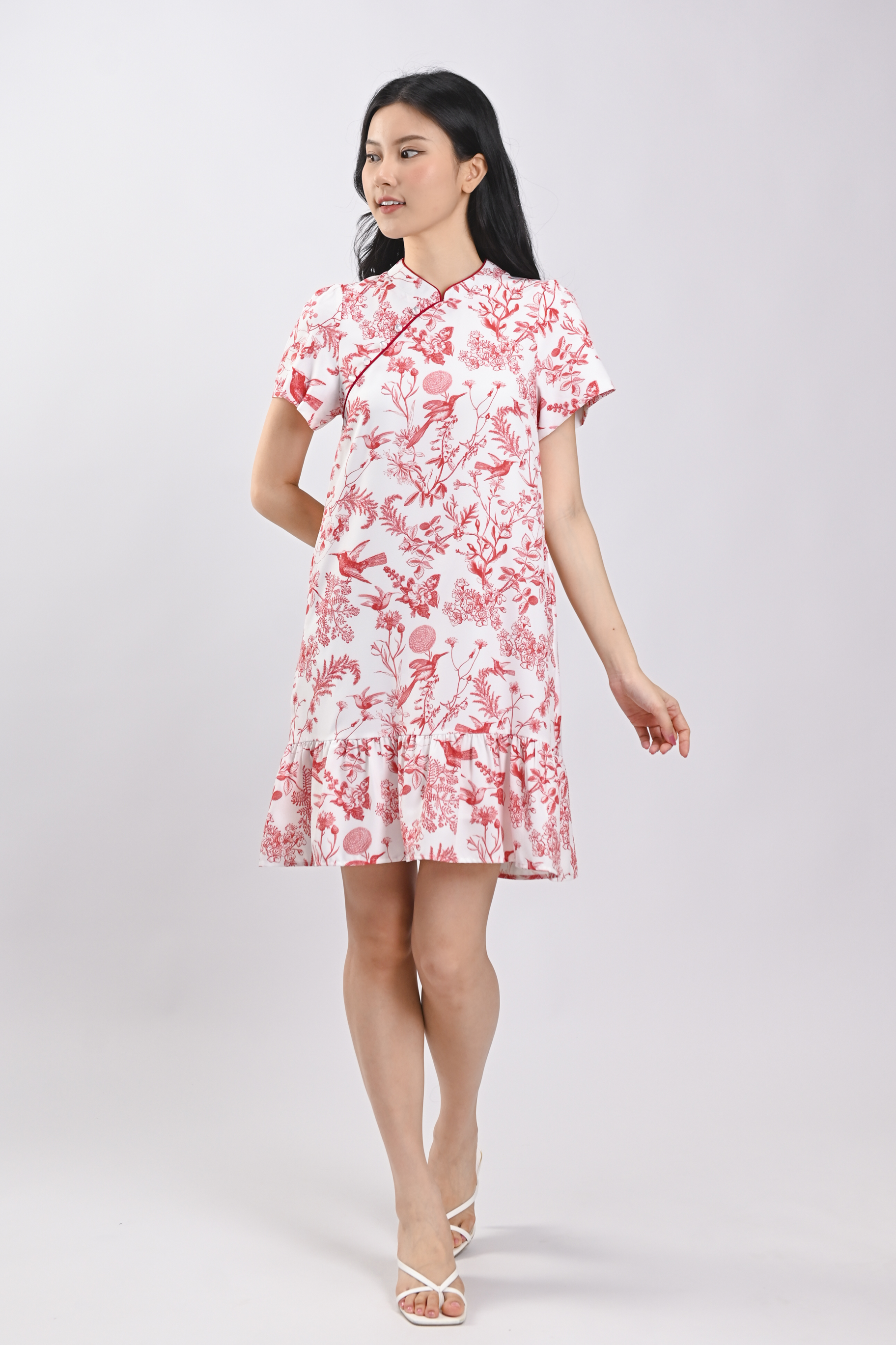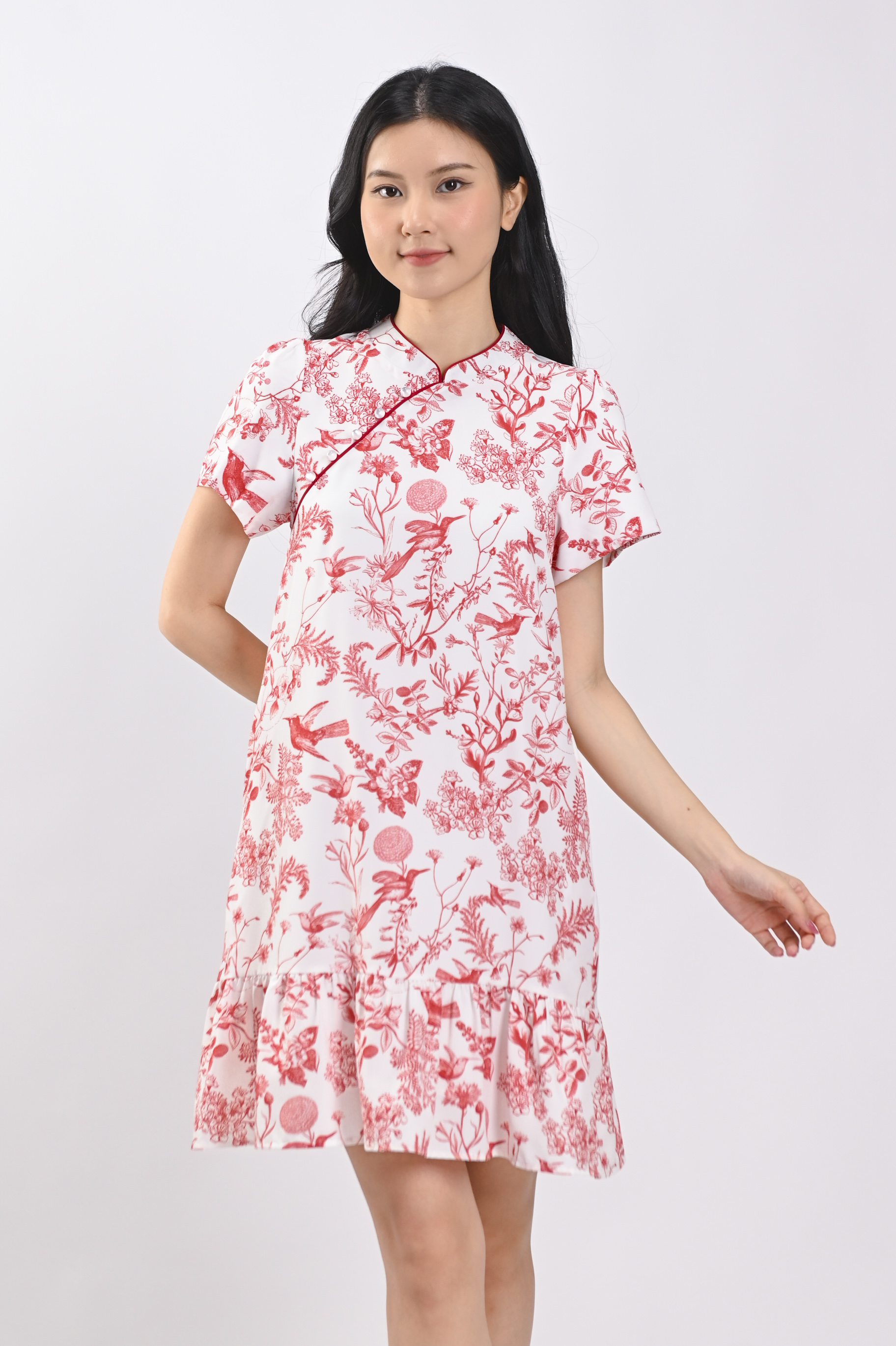 RED HUMMINGBIRD SLEEVED FLOUNCE CHEONGSAM DRESS