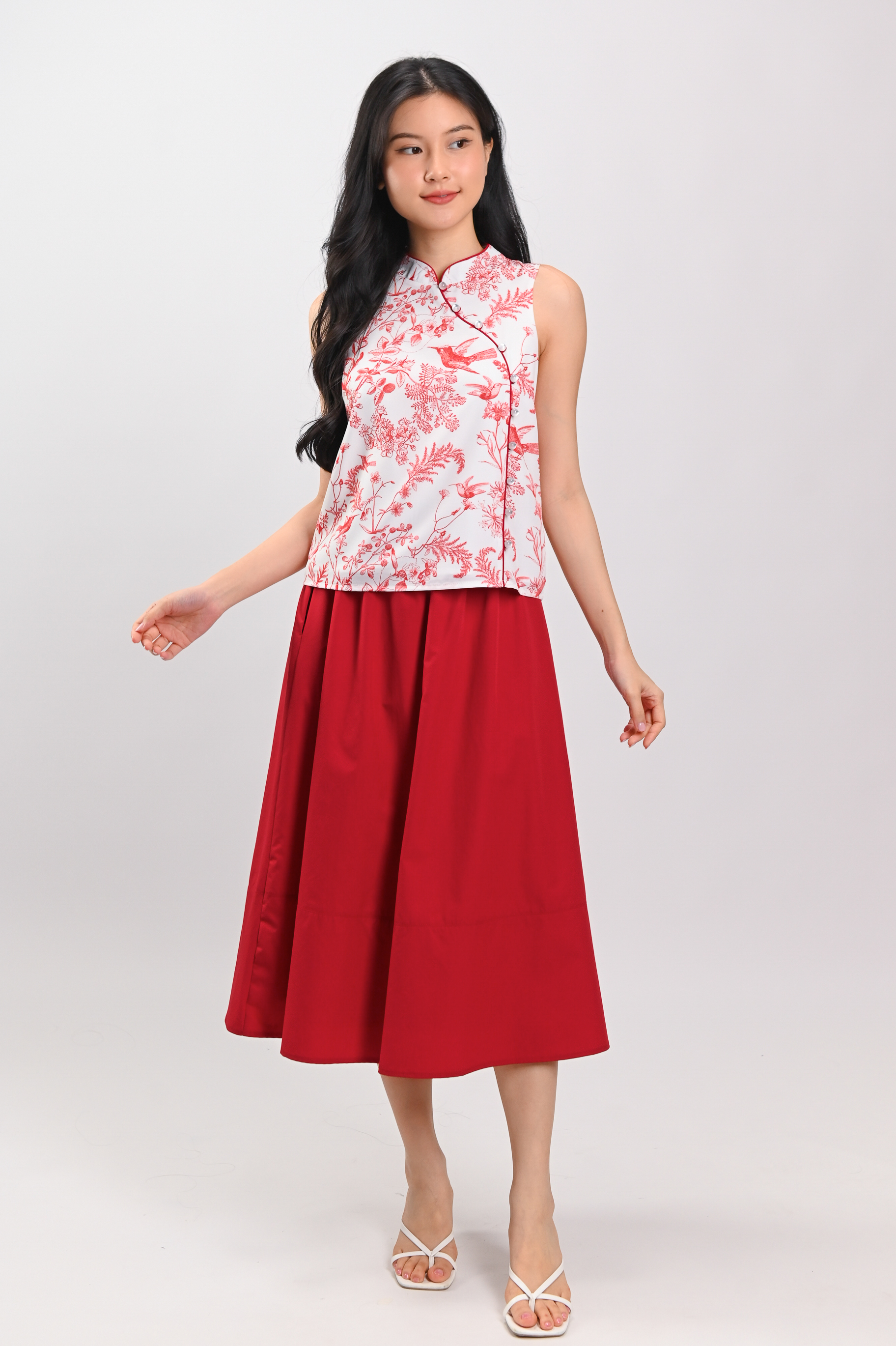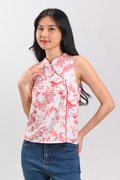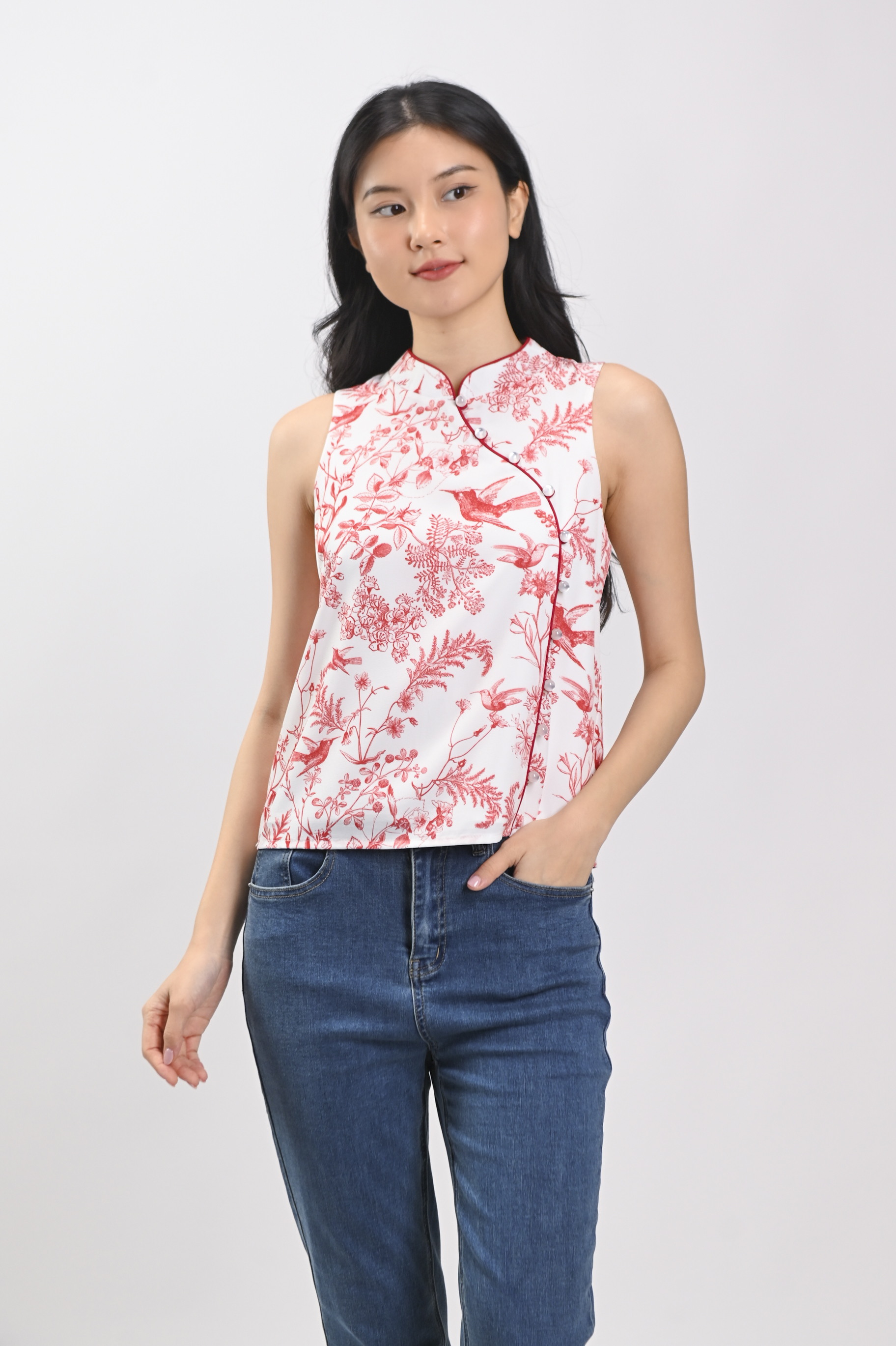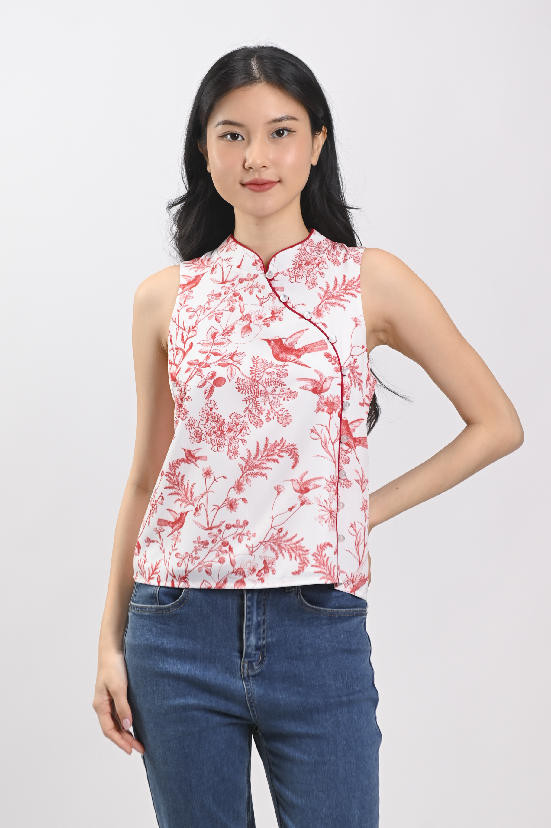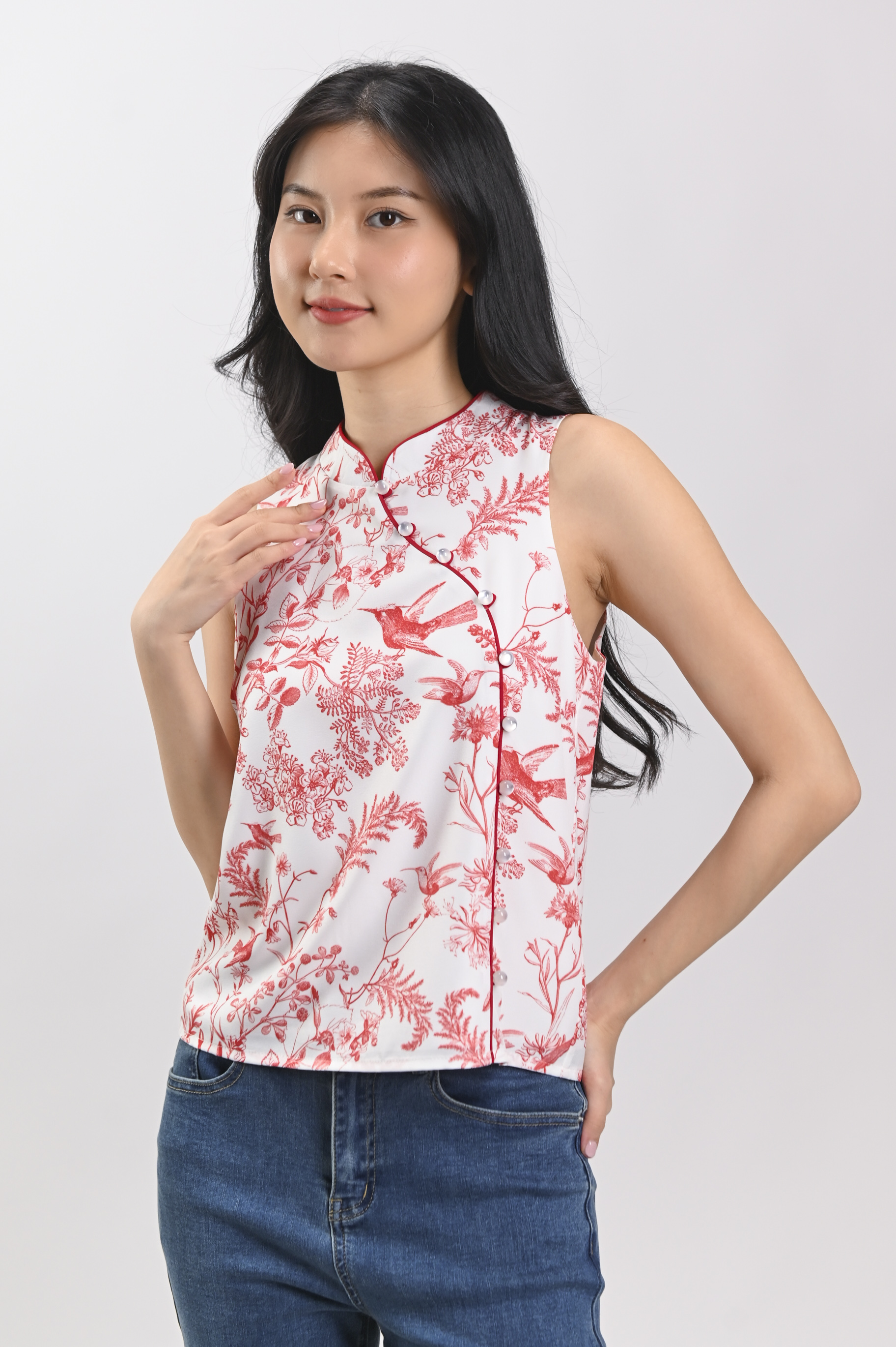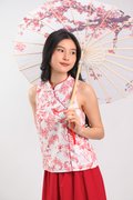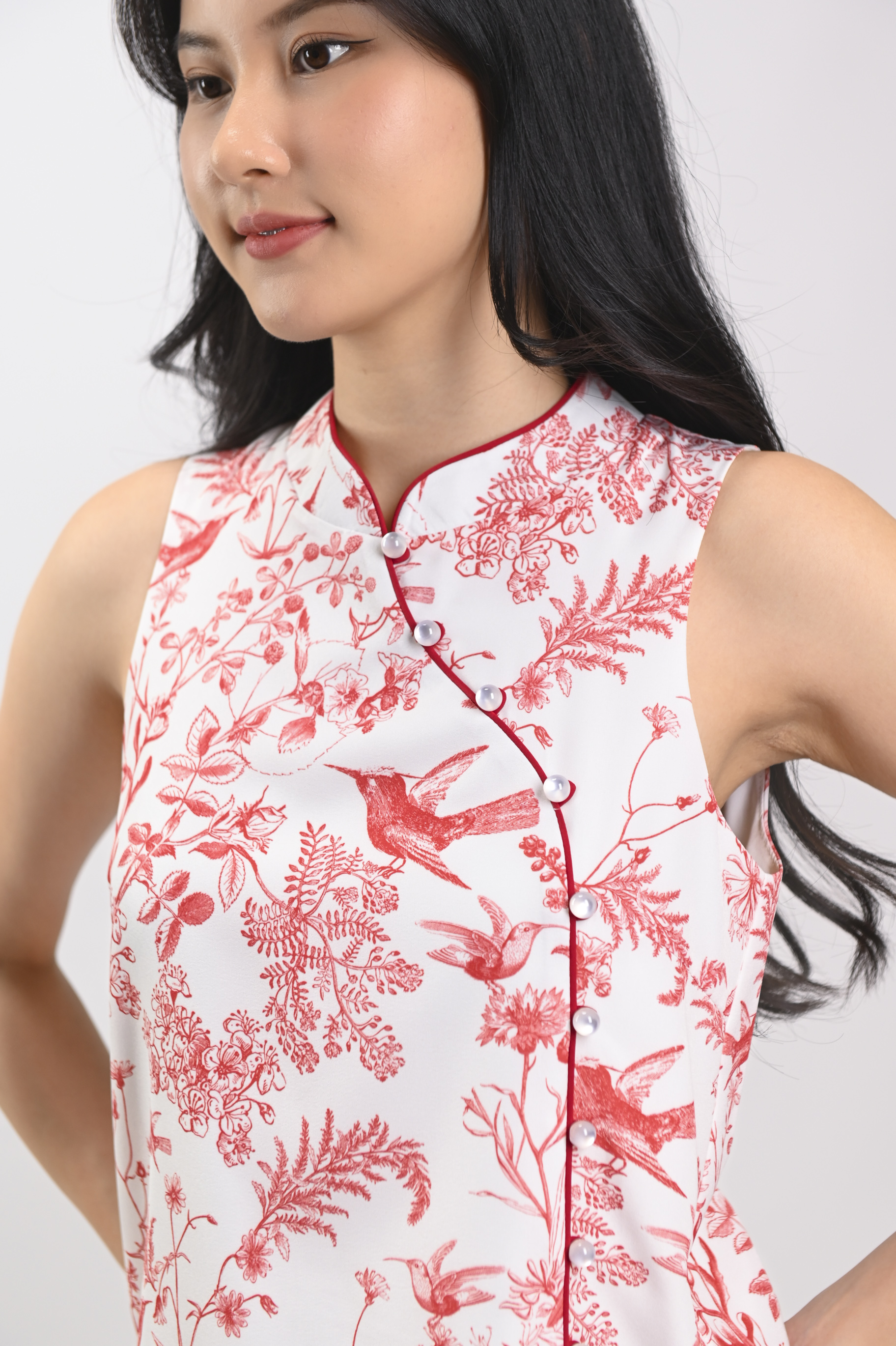 RED HUMMINGBIRD SLEEVELESS CHEONGSAM TOP