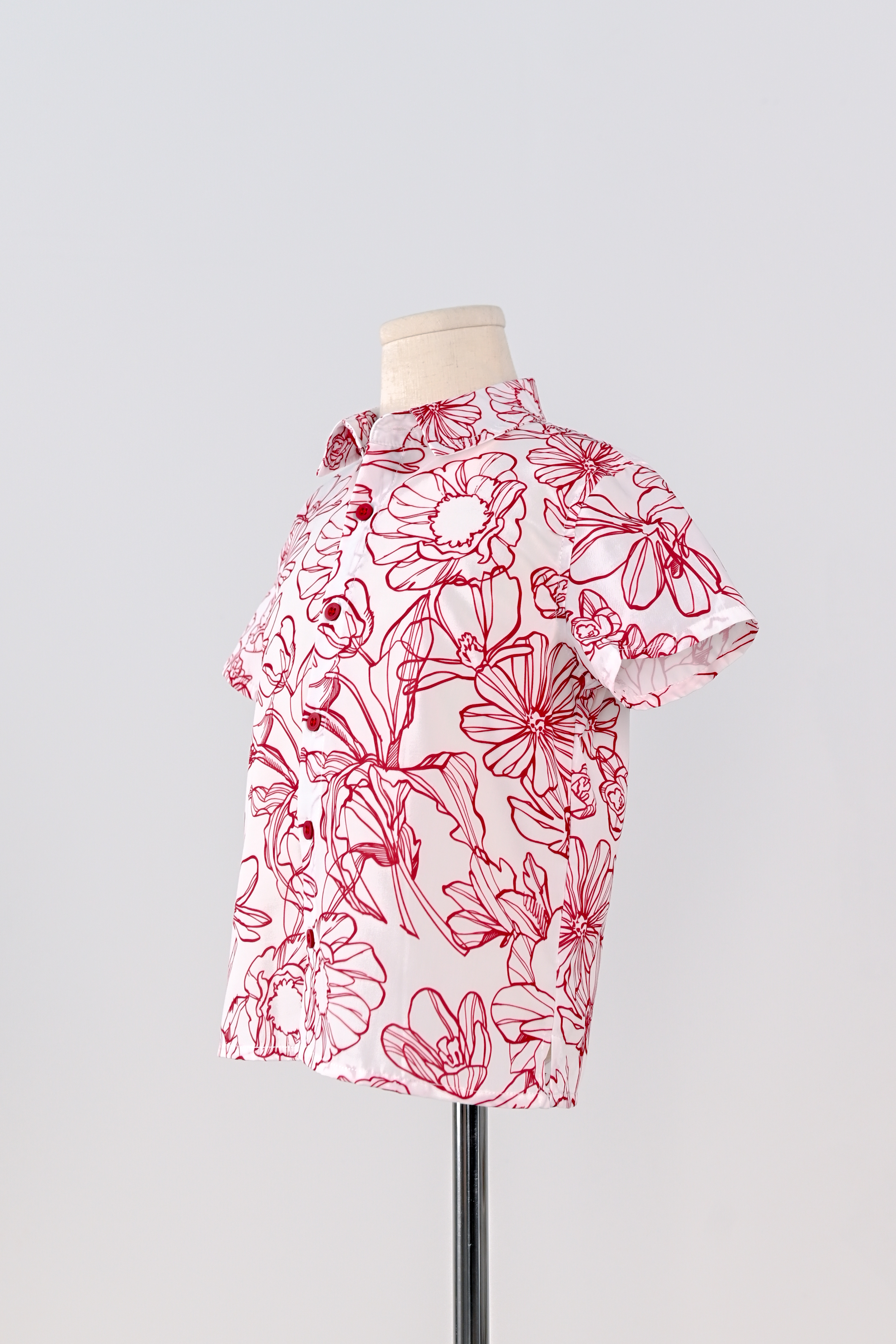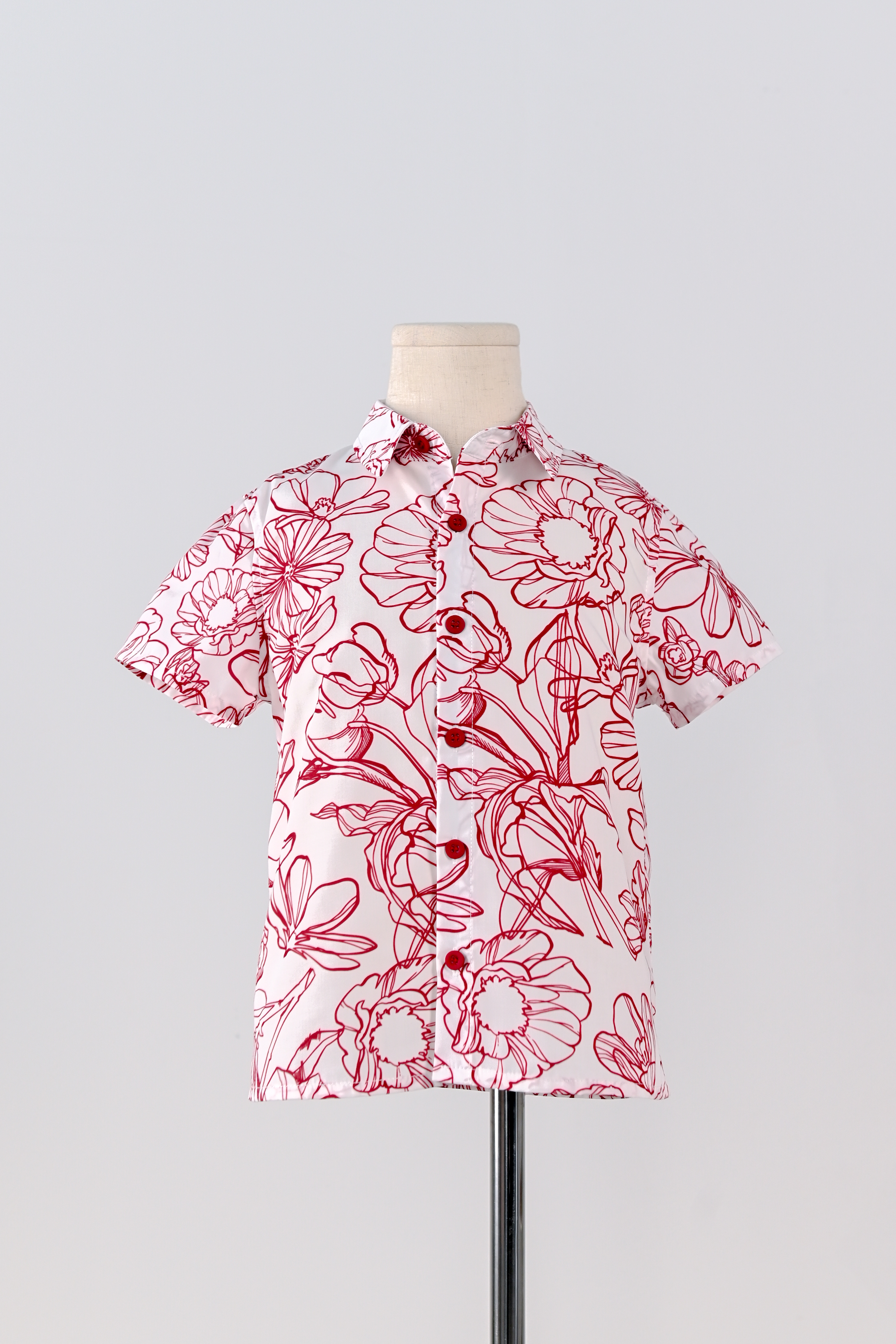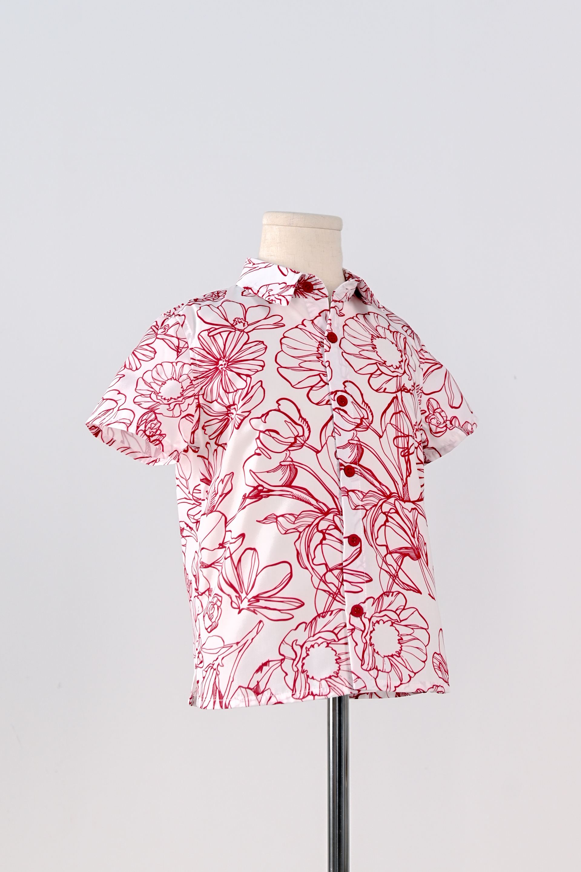 RED SKETCHED FLORALS KIDS’ SHIRT