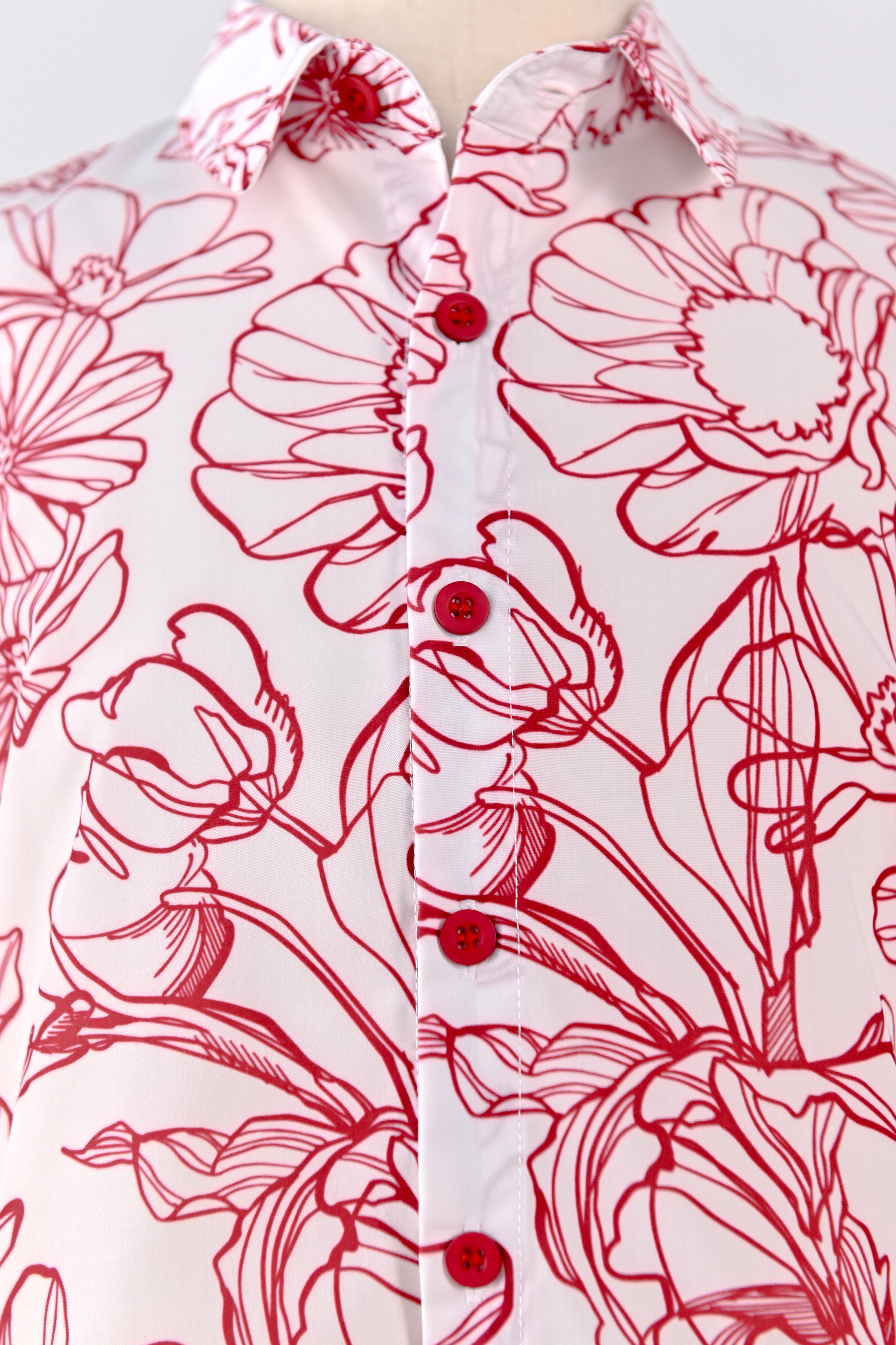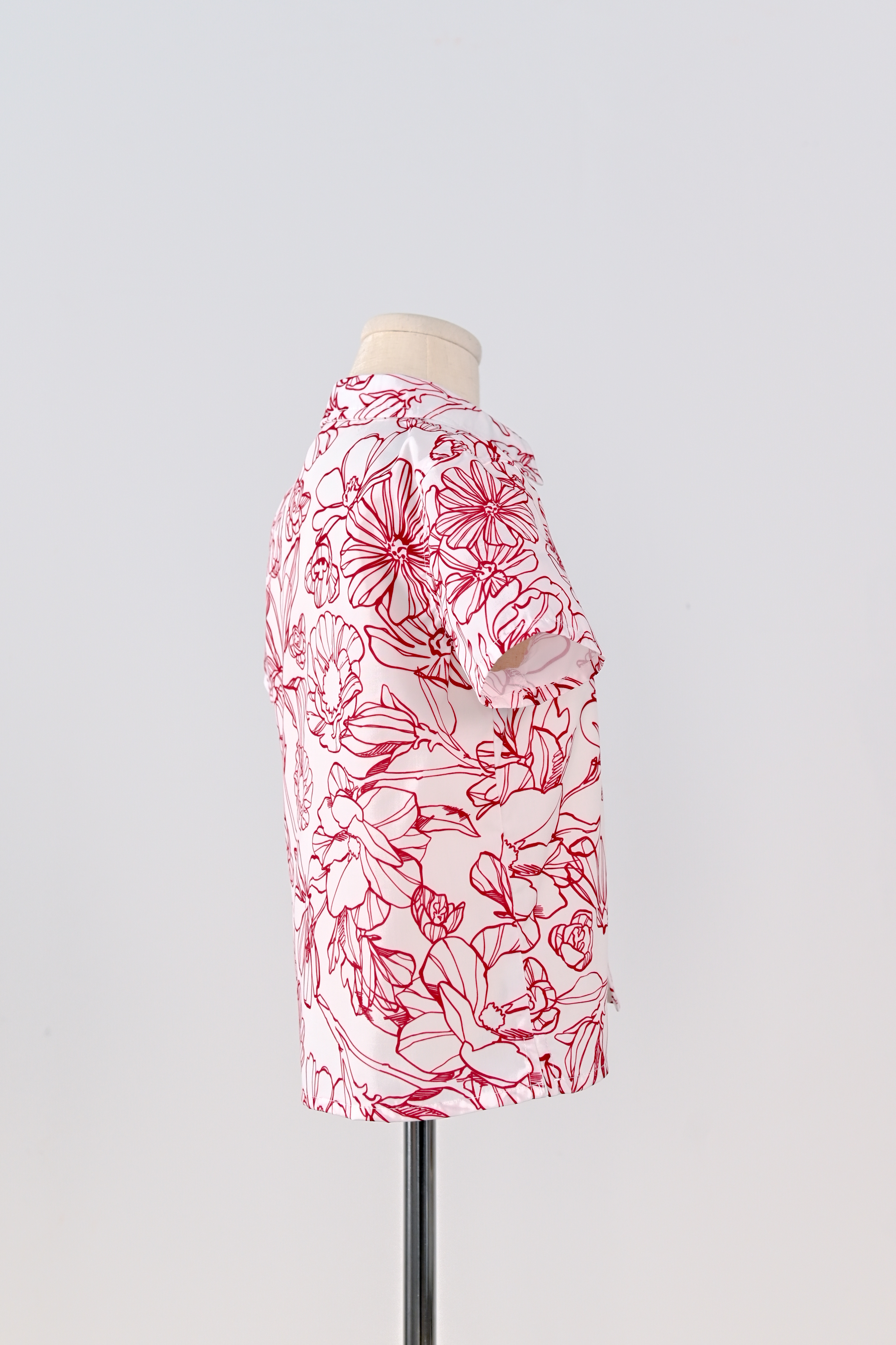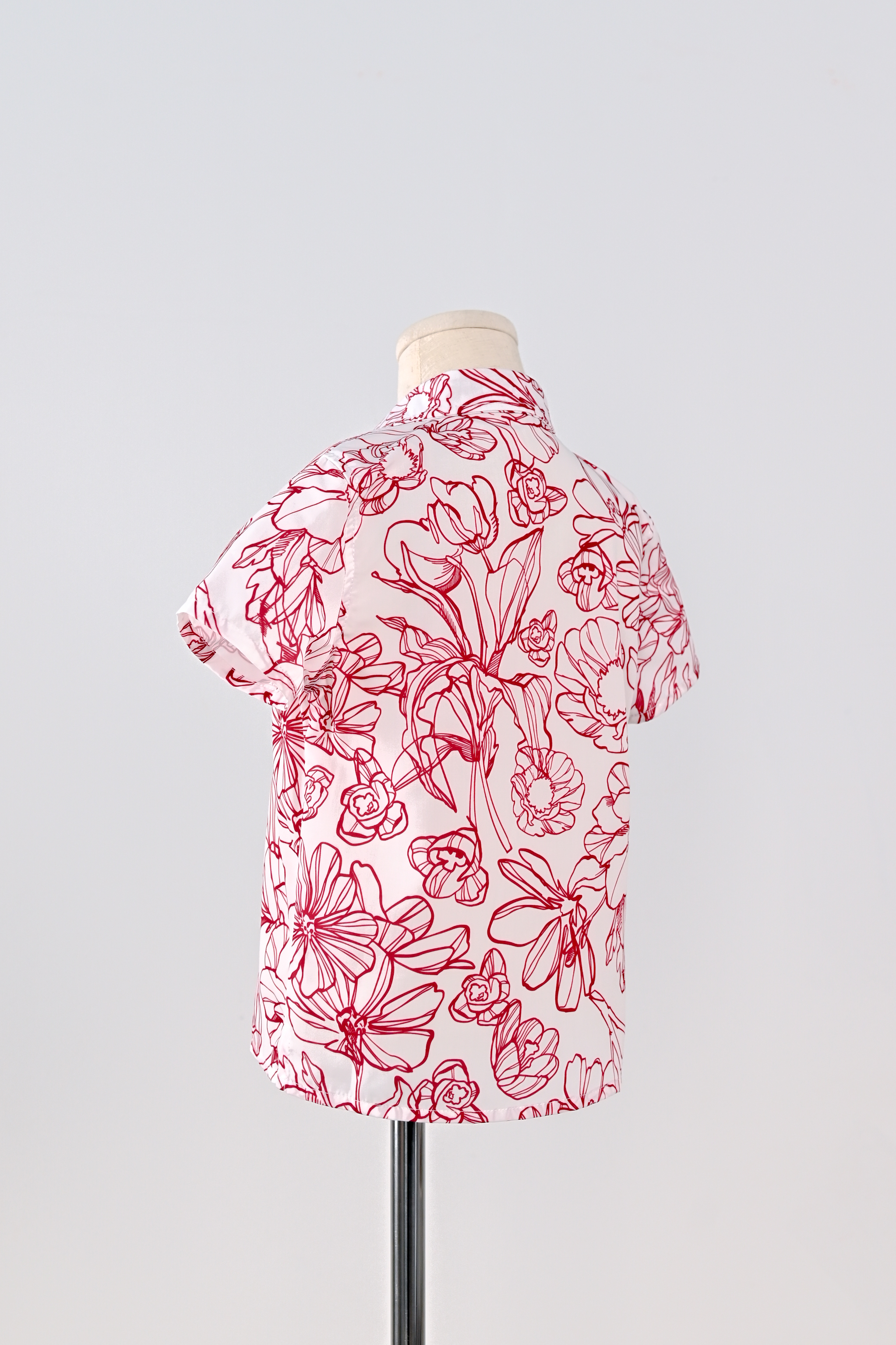 RED SKETCHED FLORALS KIDS’ SHIRT