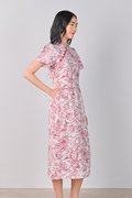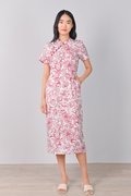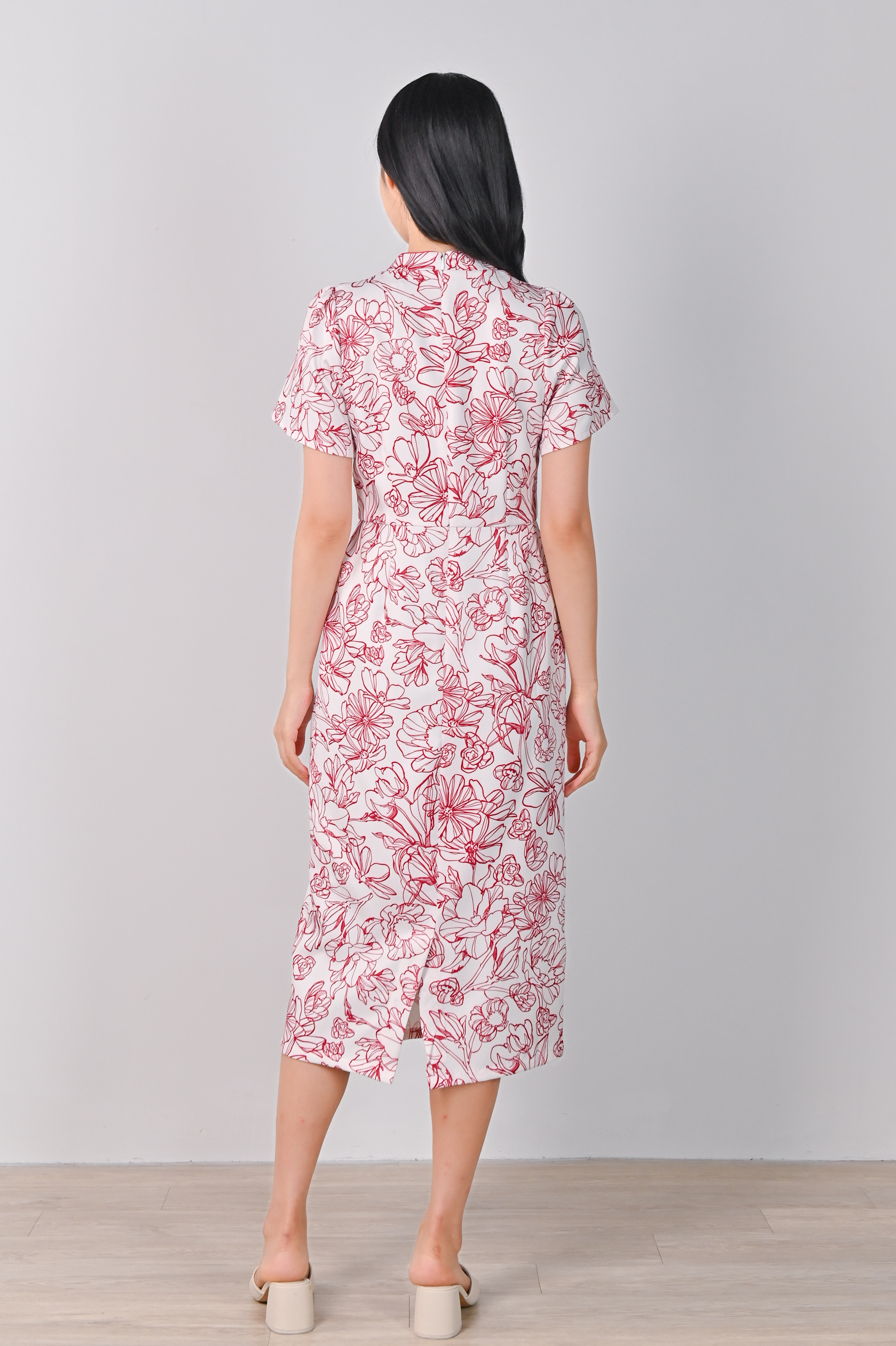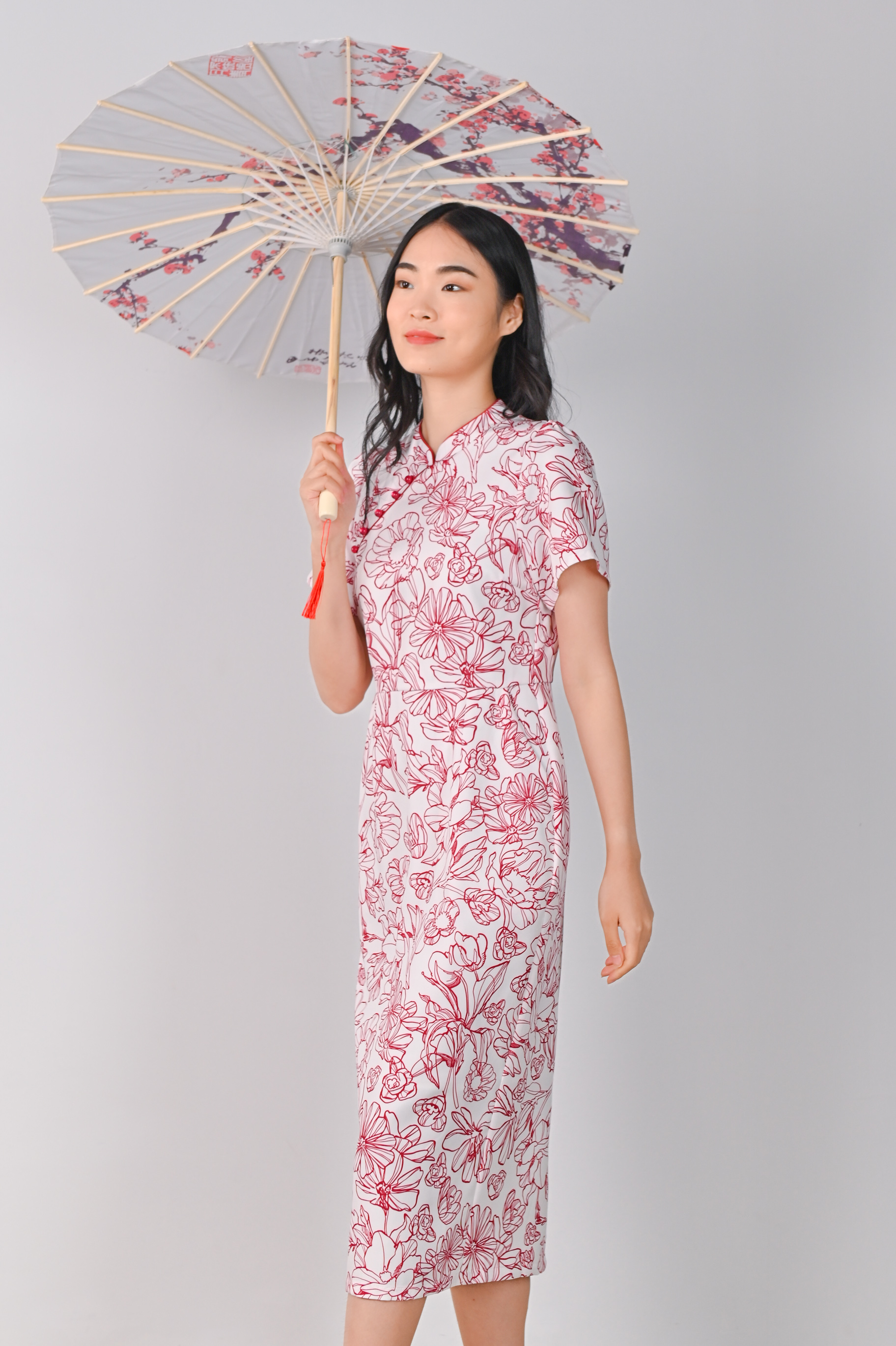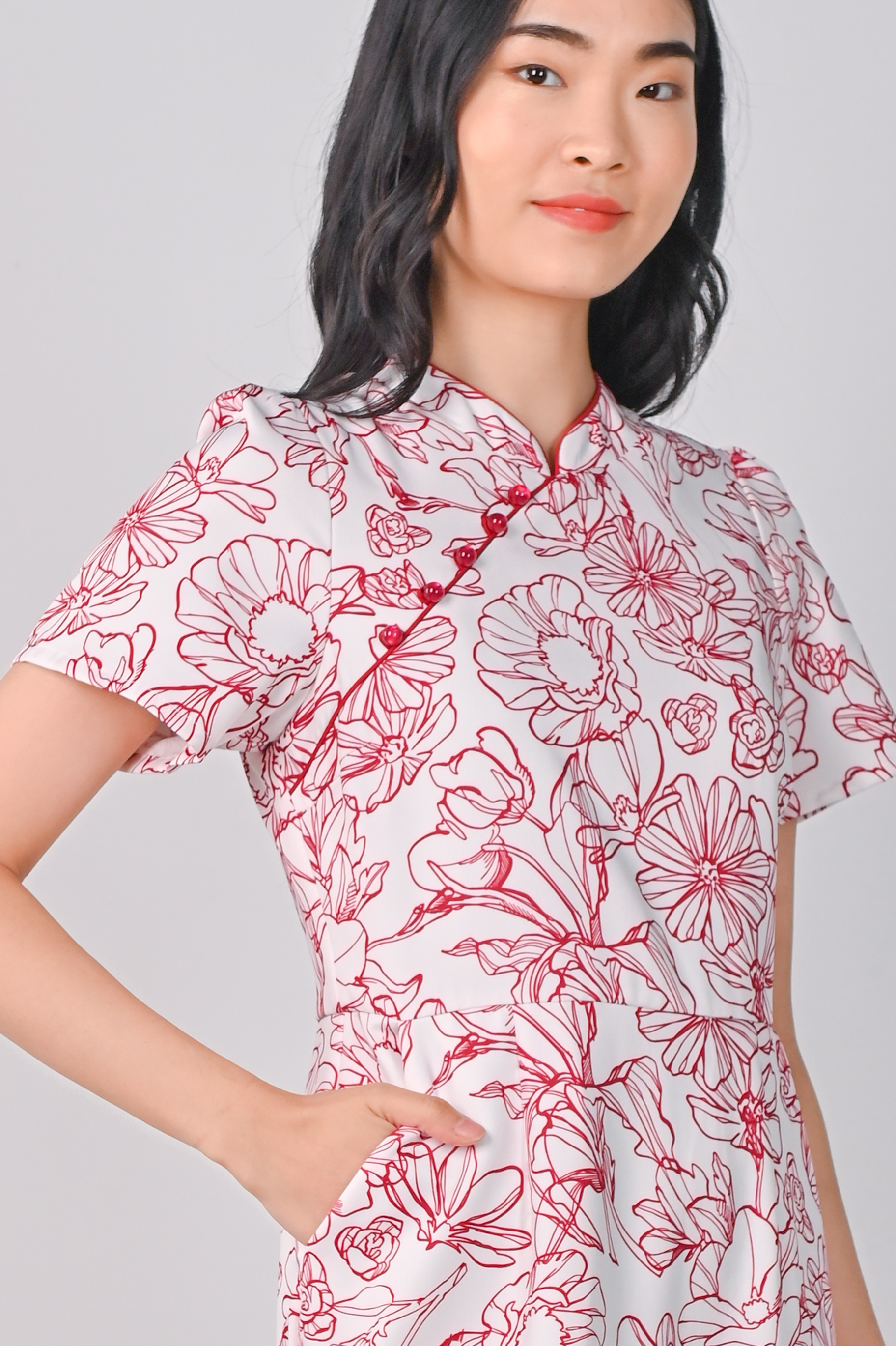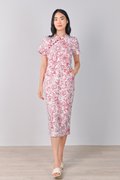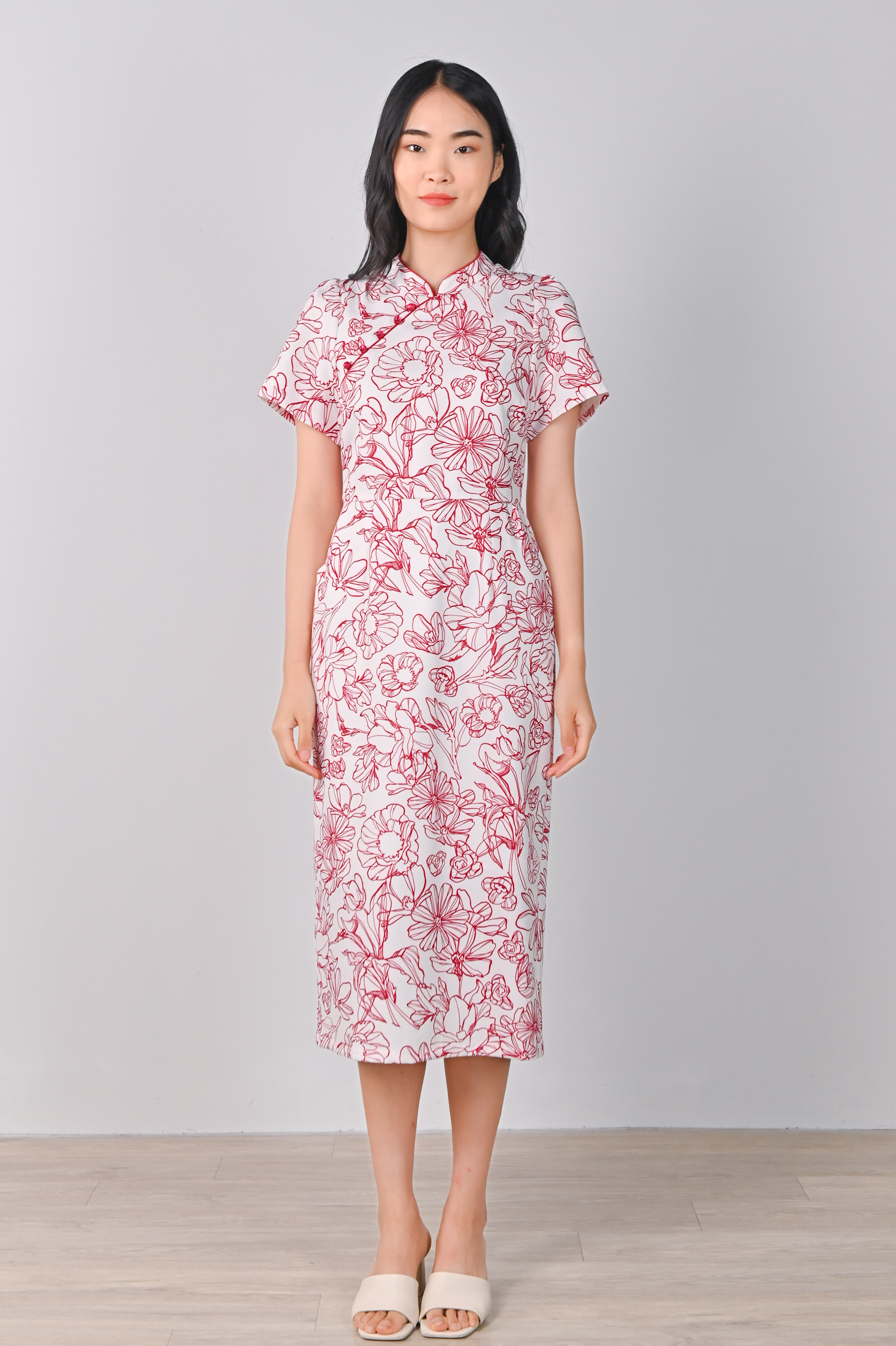 RED SKETCHED FLORALS PENCIL CHEONGSAM